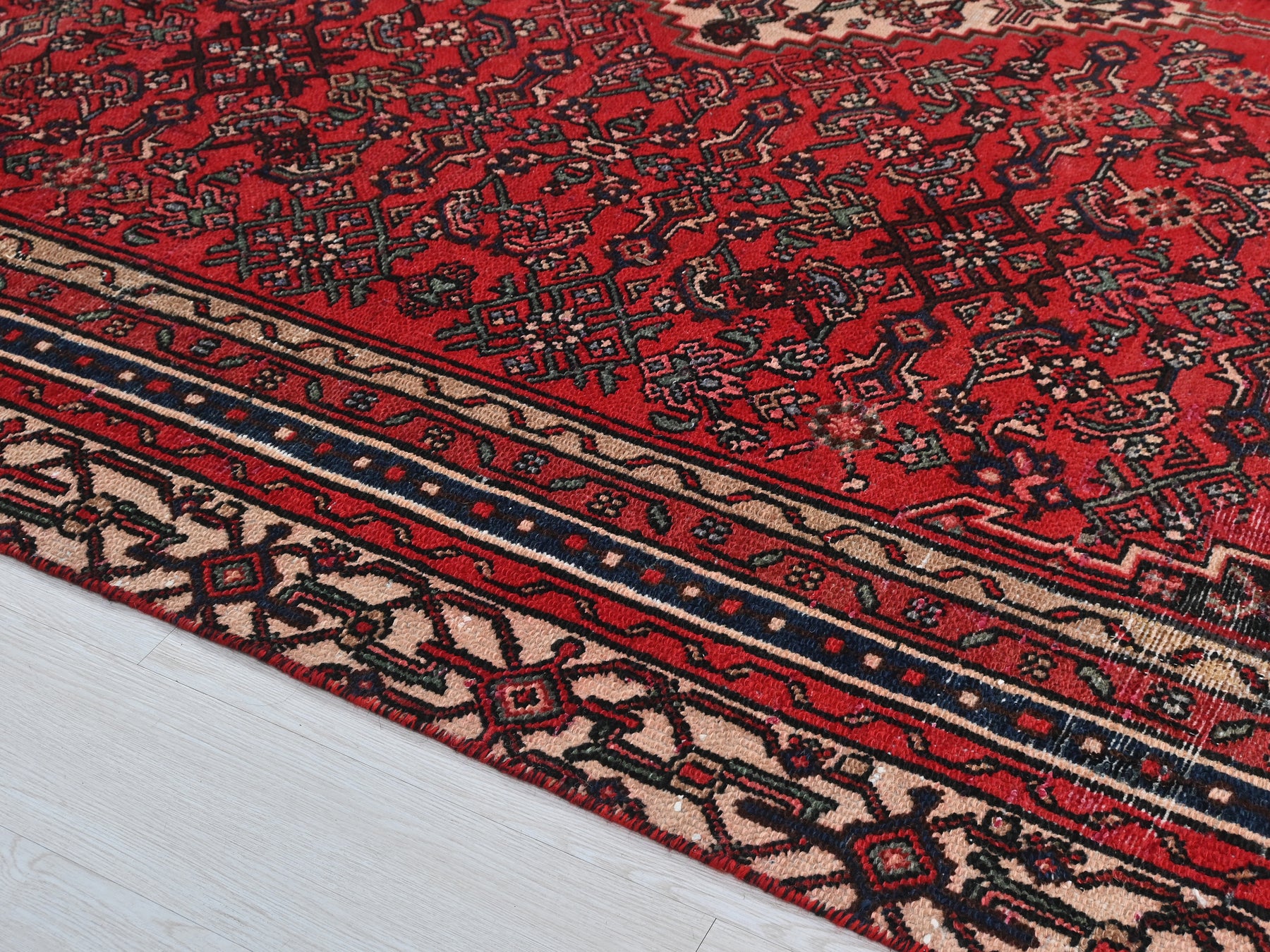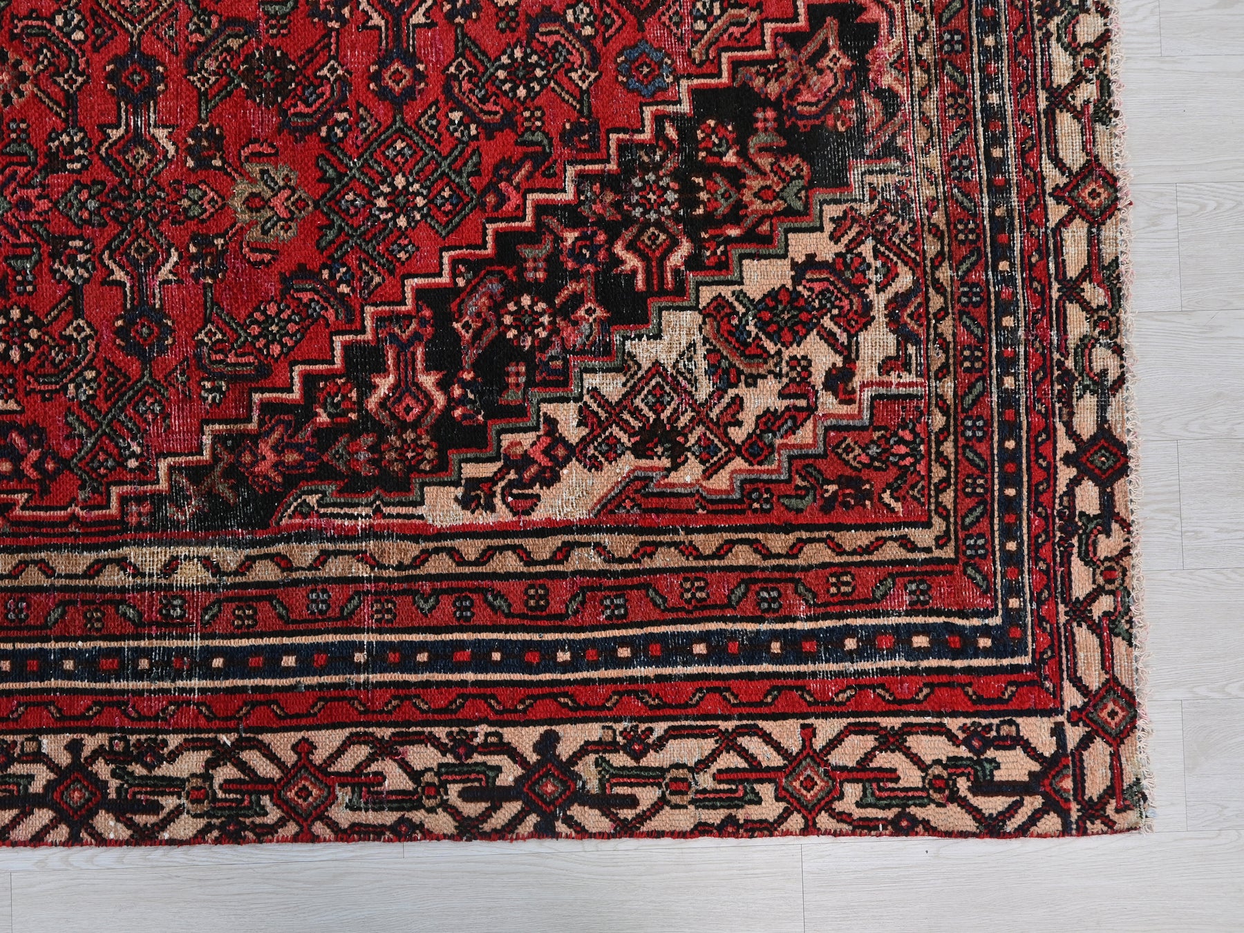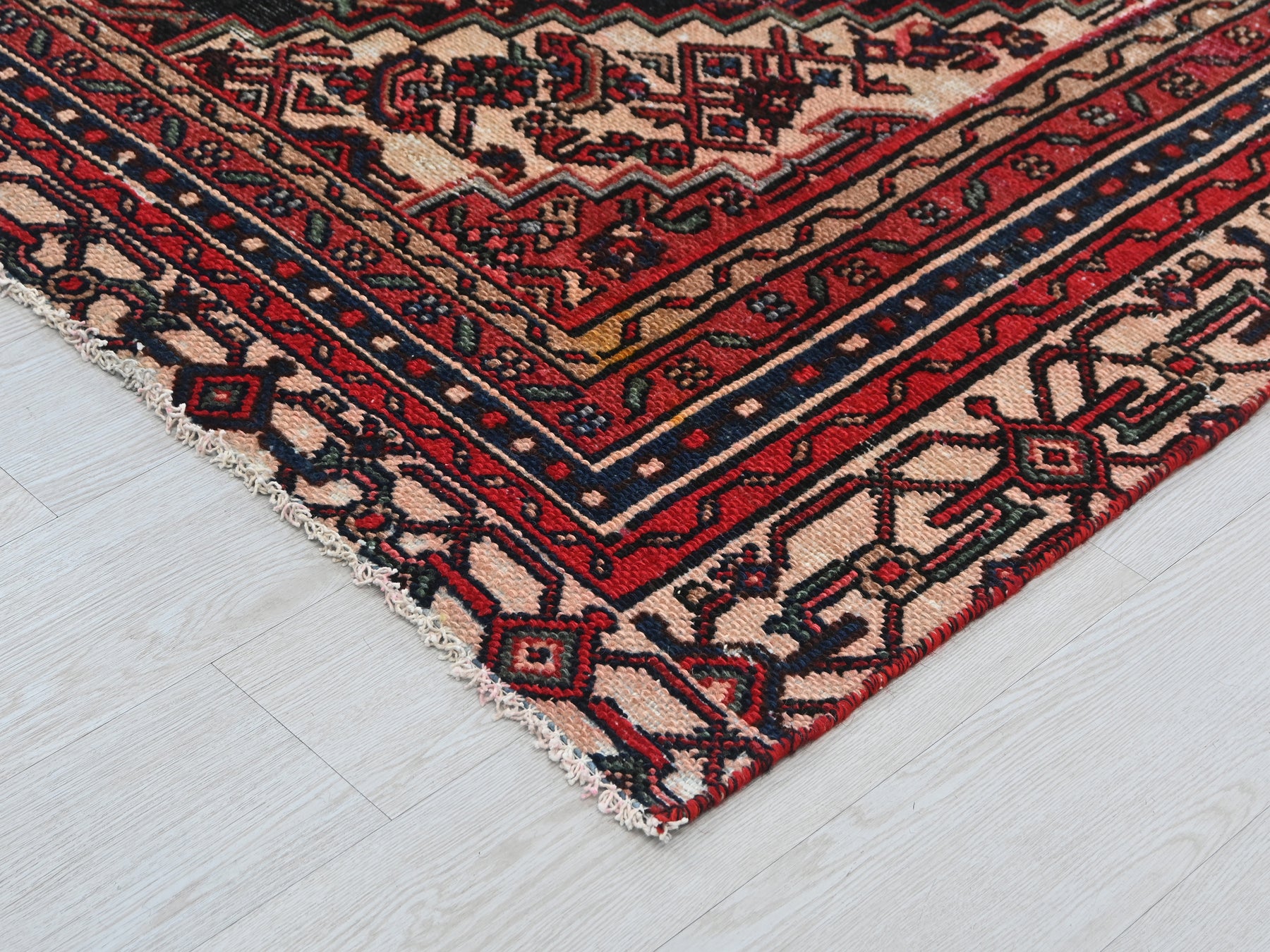 This is a hand-knotted, one-of-a-kind vintage rug. Due to the nature of this piece, there may be slight imperfections in its wear, shape, dimensions, and color. All of our rugs are professionally cleaned and repaired.