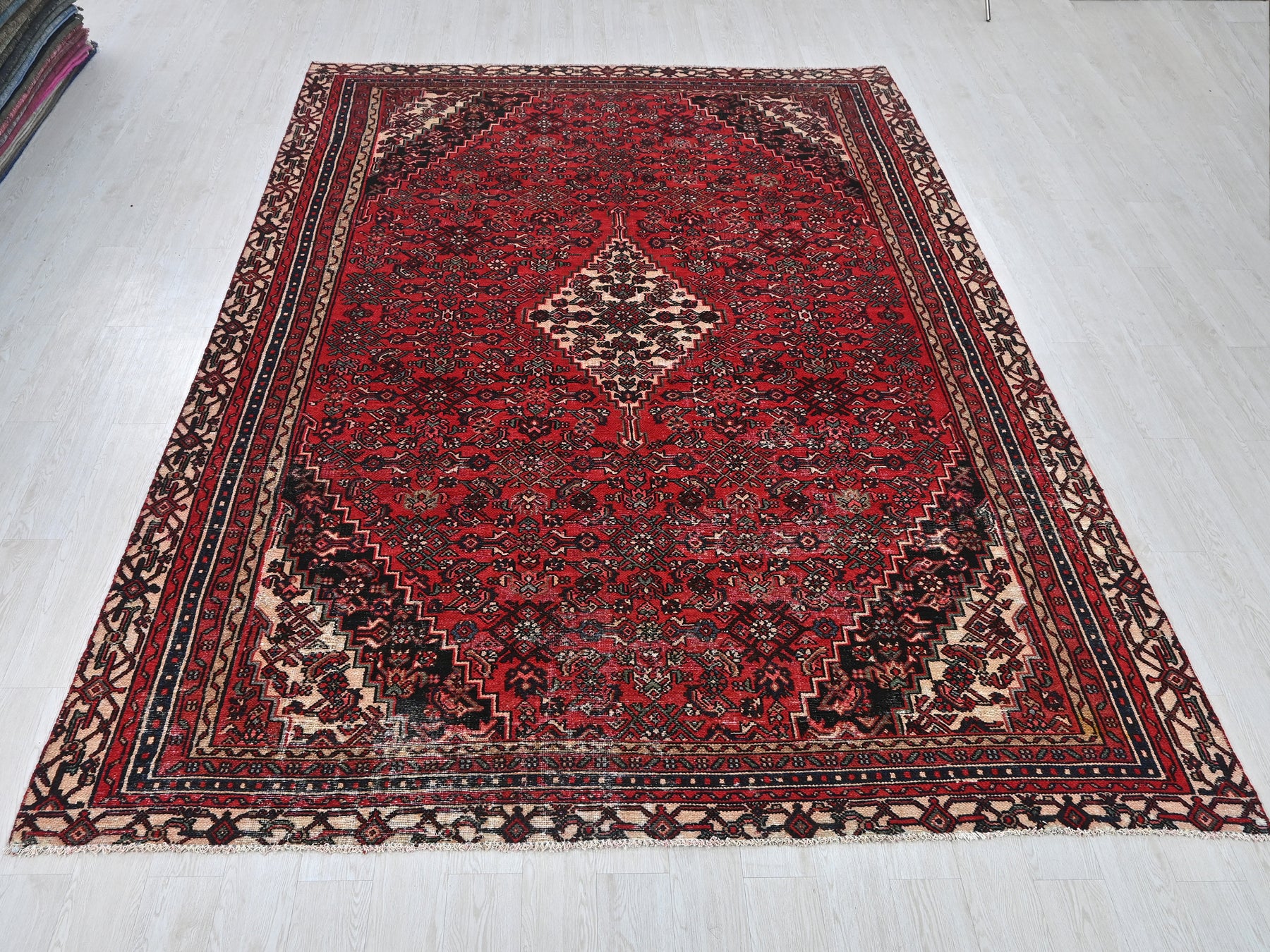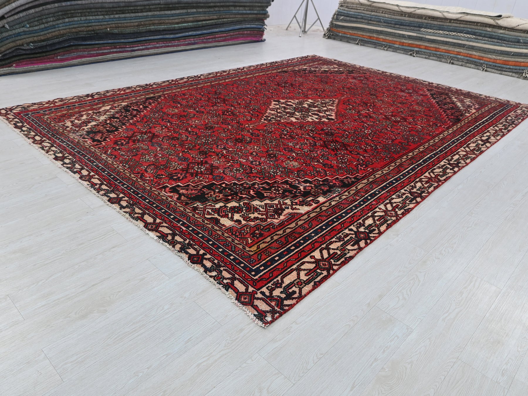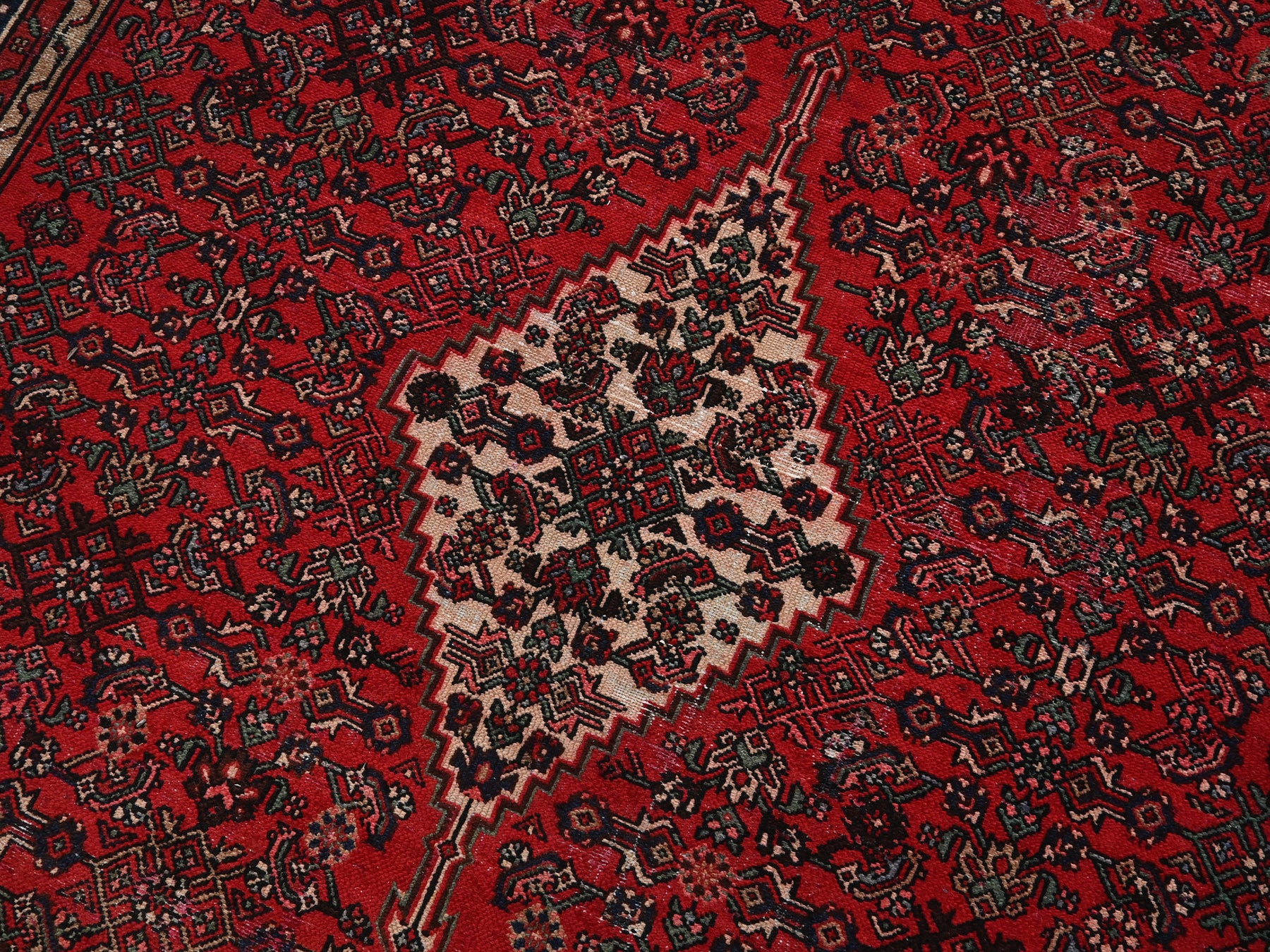 This is a hand-knotted, one-of-a-kind vintage rug. Due to the nature of this piece, there may be slight imperfections in its wear, shape, dimensions, and color. All of our rugs are professionally cleaned and repaired.