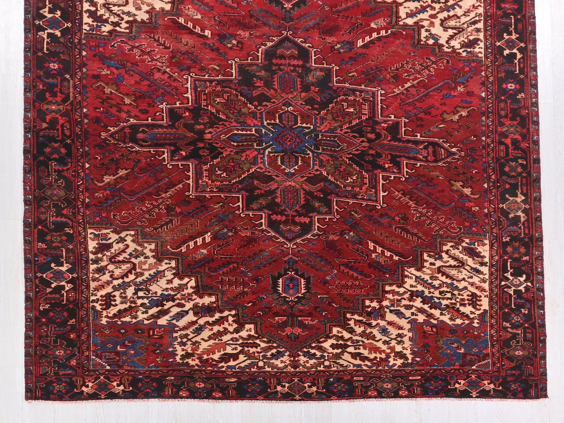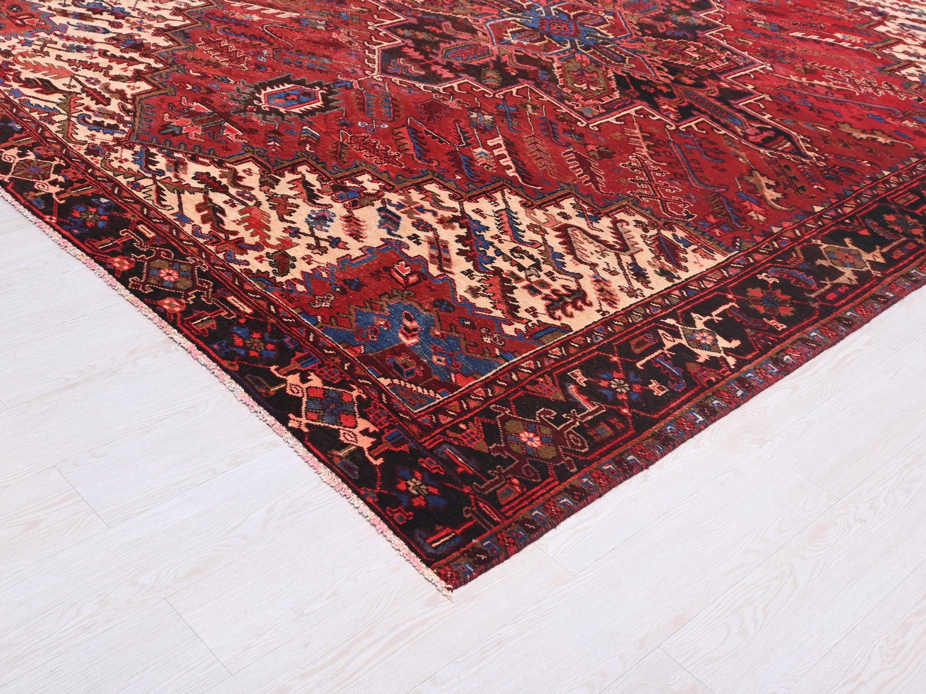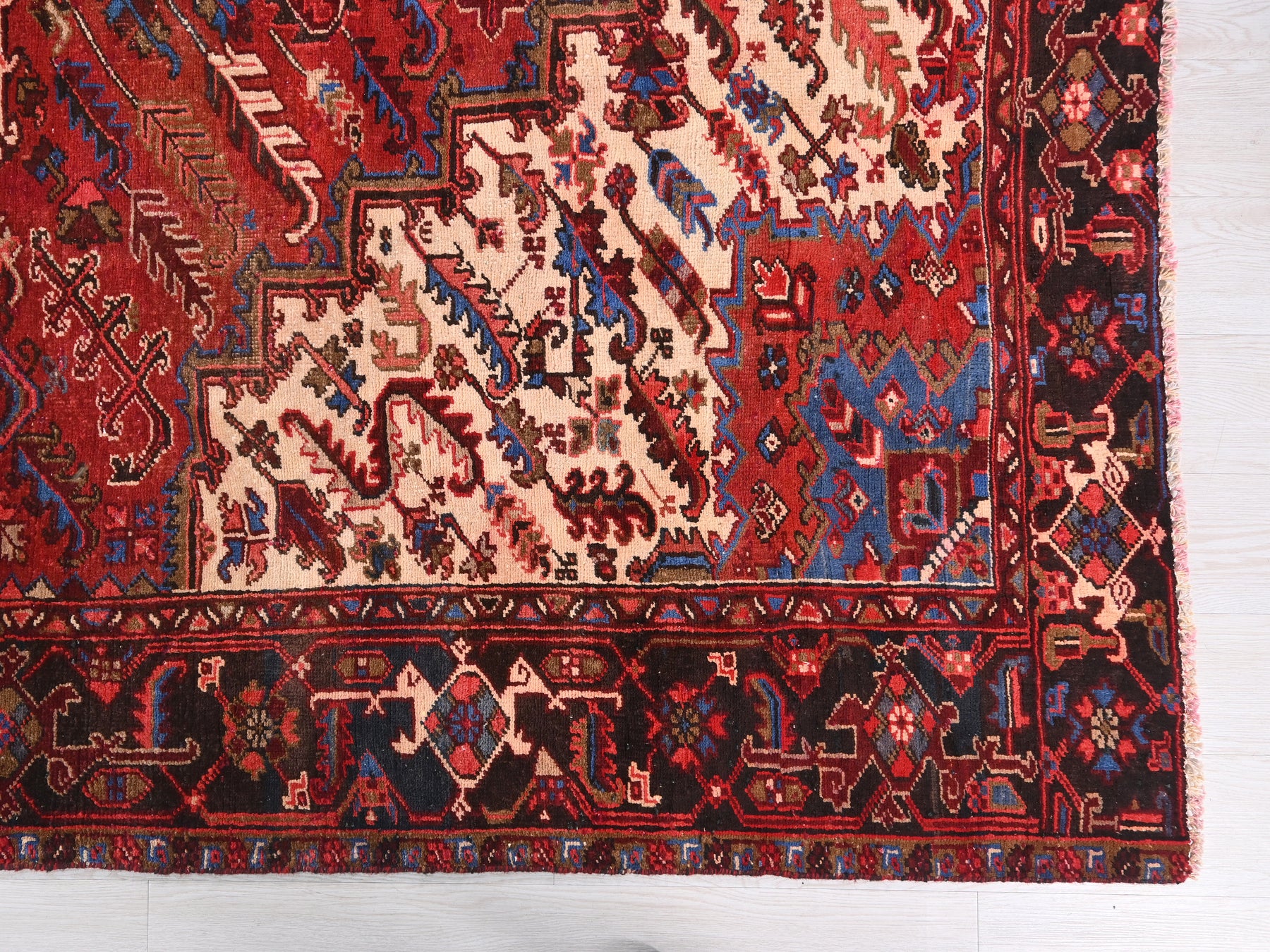 This is a hand-knotted, one-of-a-kind vintage rug. Due to the nature of this piece, there may be slight imperfections in its wear, shape, dimensions, and color. All of our rugs are professionally cleaned and repaired.