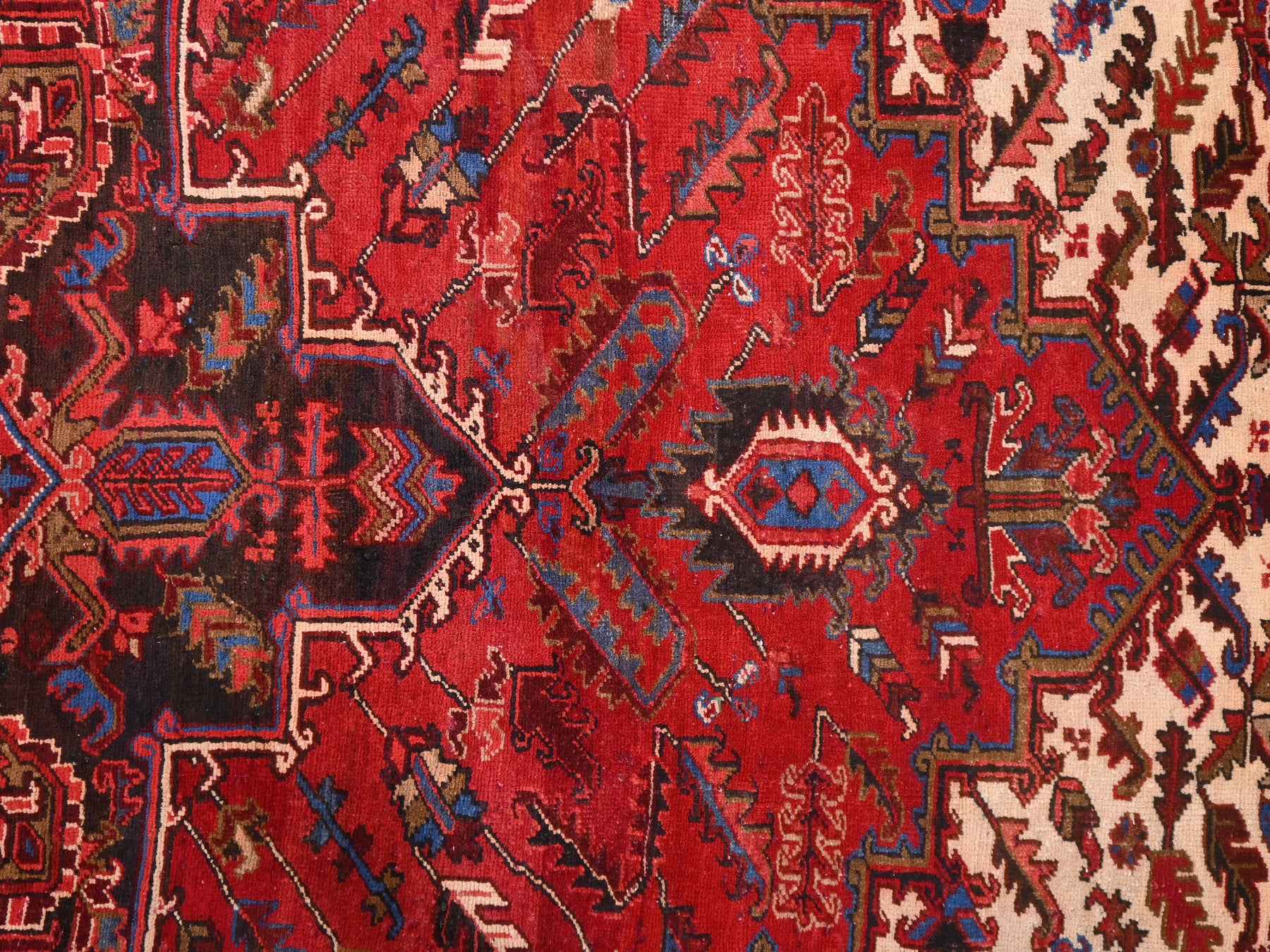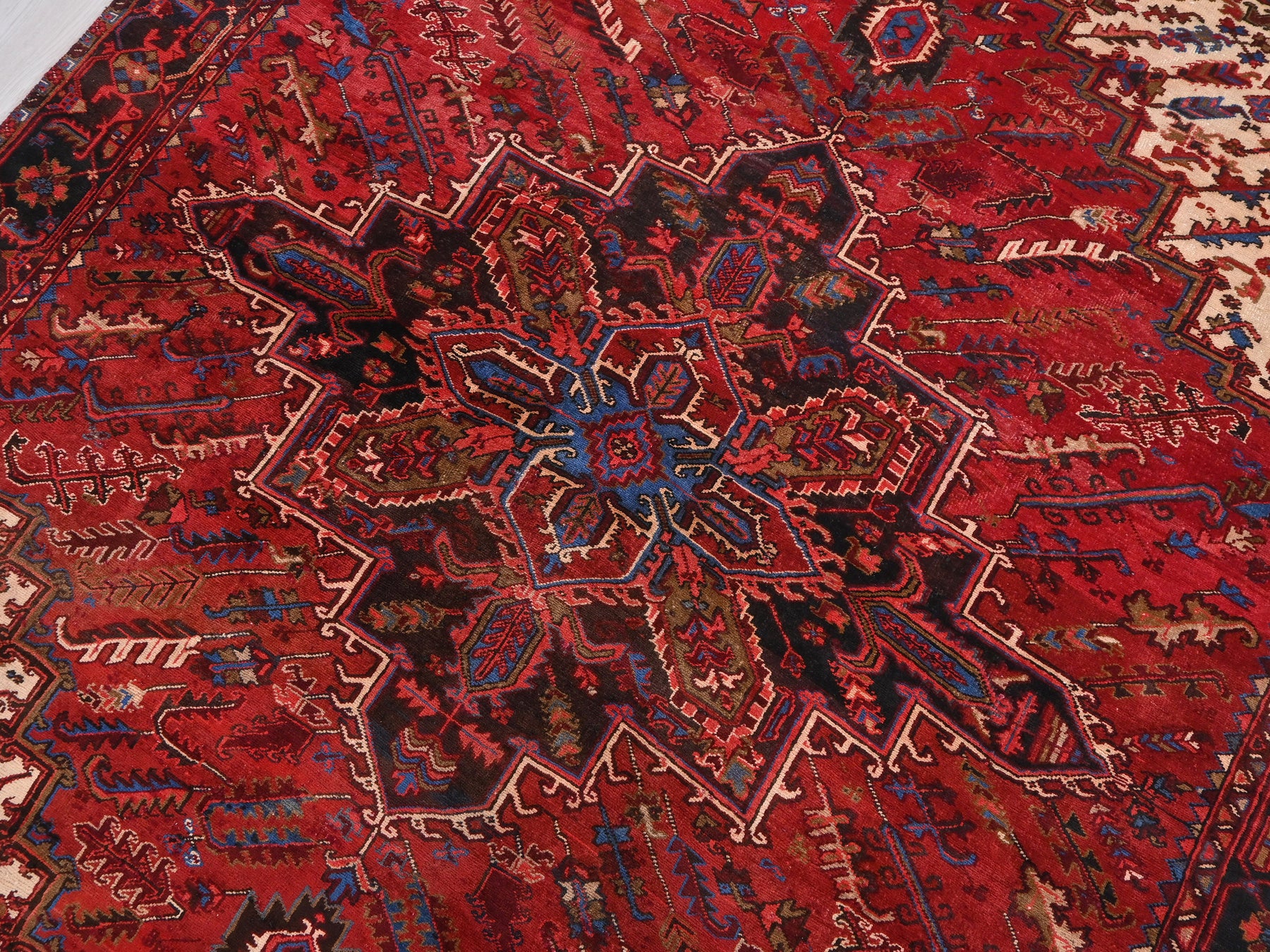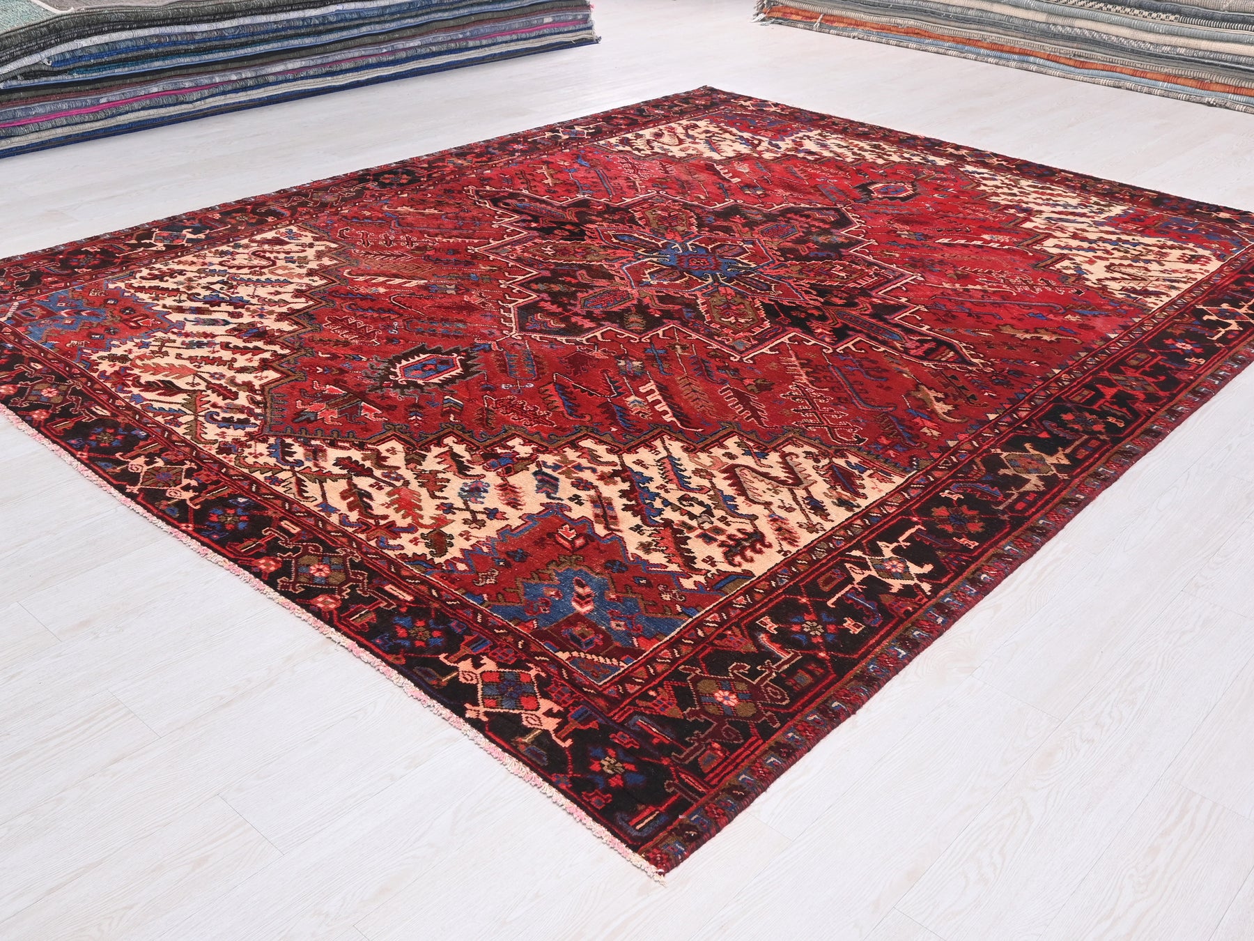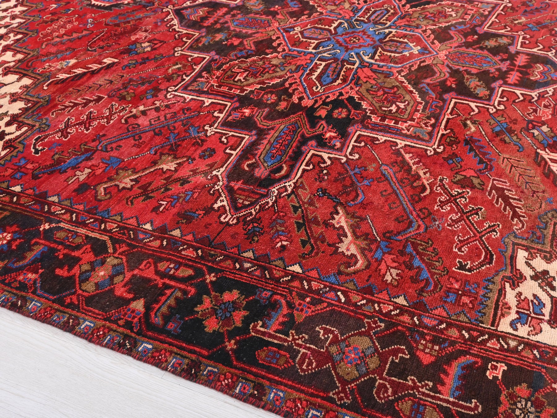 This is a hand-knotted, one-of-a-kind vintage rug. Due to the nature of this piece, there may be slight imperfections in its wear, shape, dimensions, and color. All of our rugs are professionally cleaned and repaired.