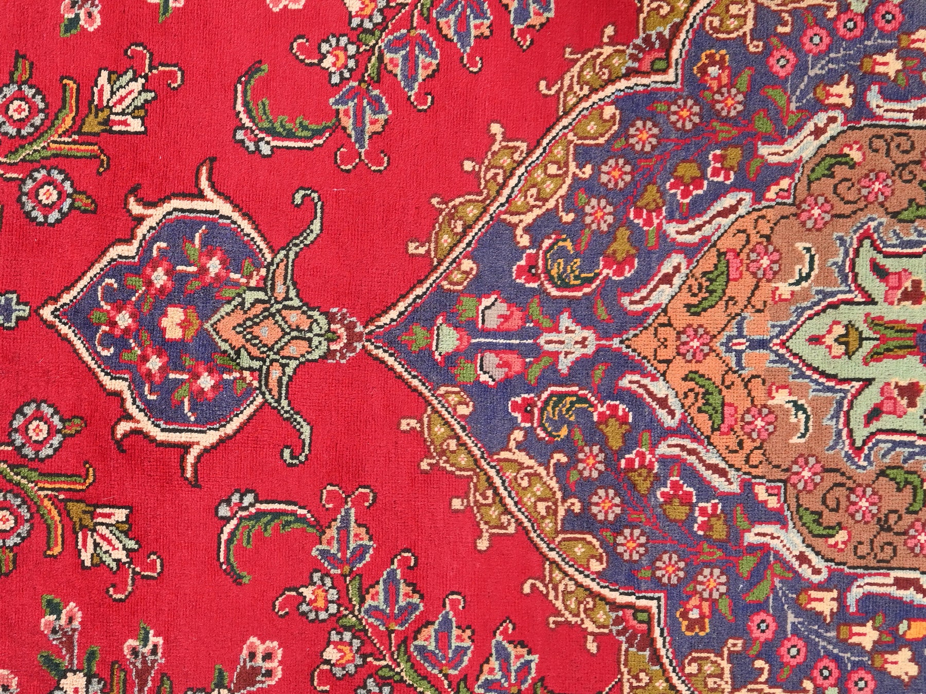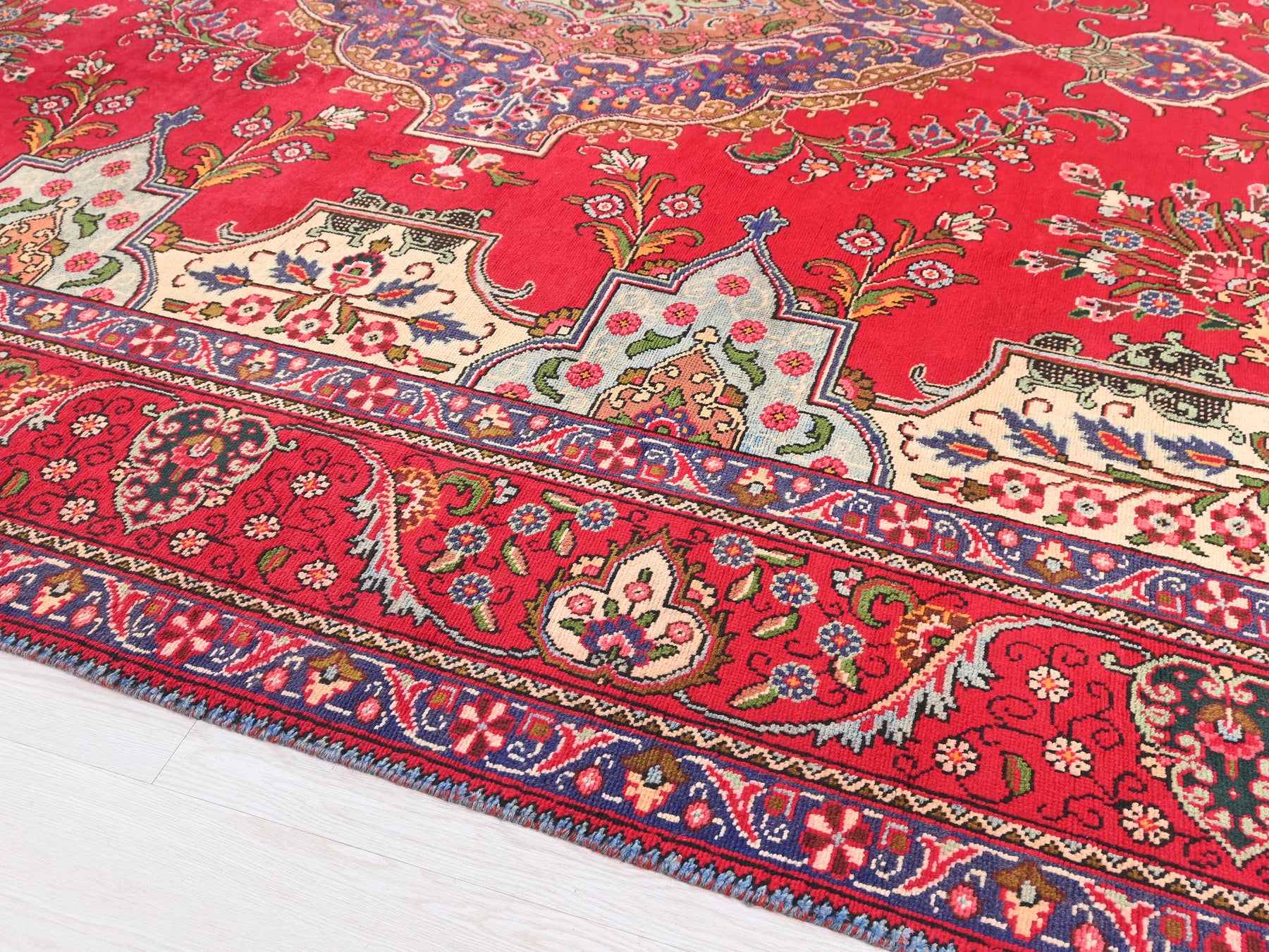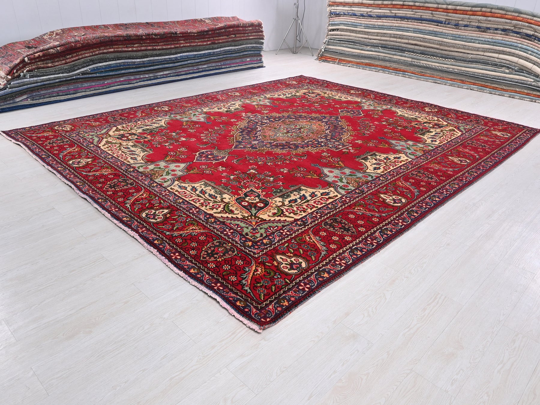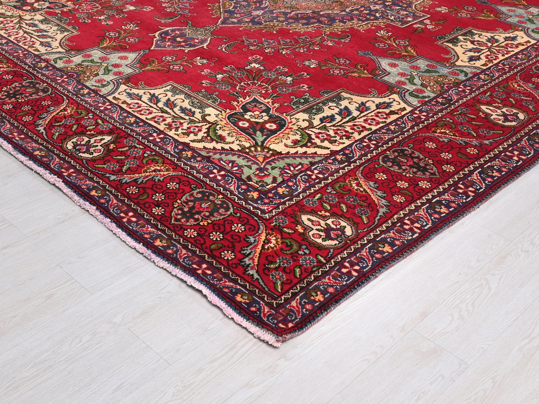 This is a hand-knotted, one-of-a-kind vintage rug. Due to the nature of this piece, there may be slight imperfections in its wear, shape, dimensions, and color. All of our rugs are professionally cleaned and repaired.