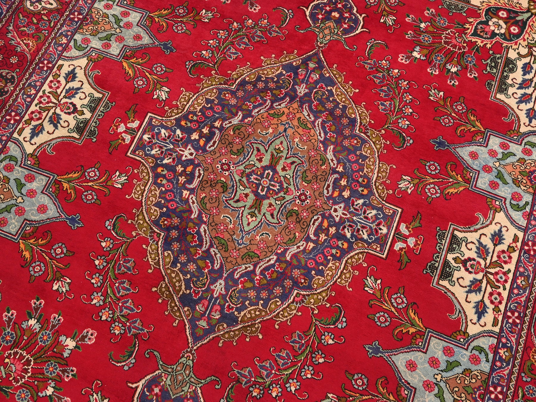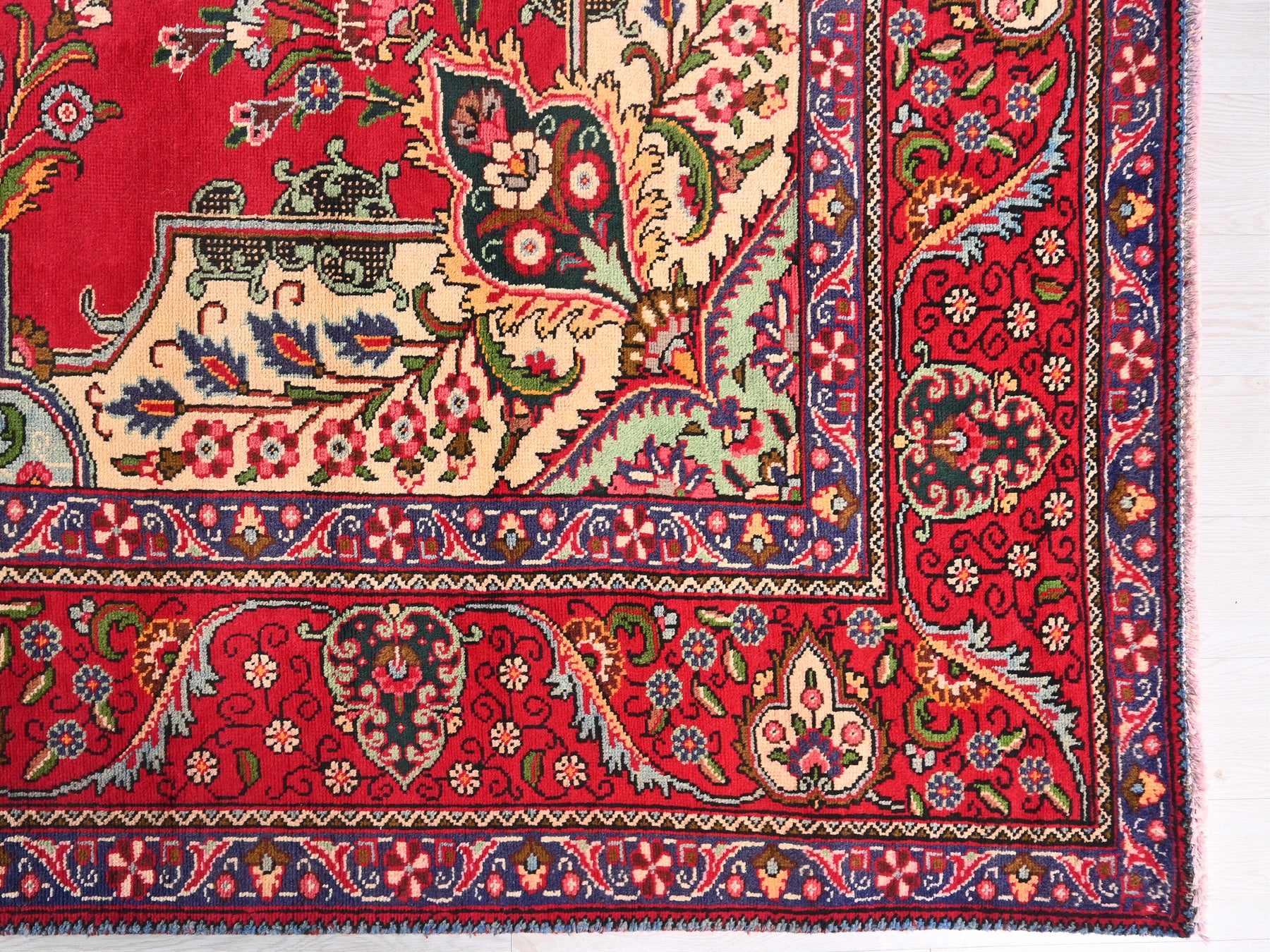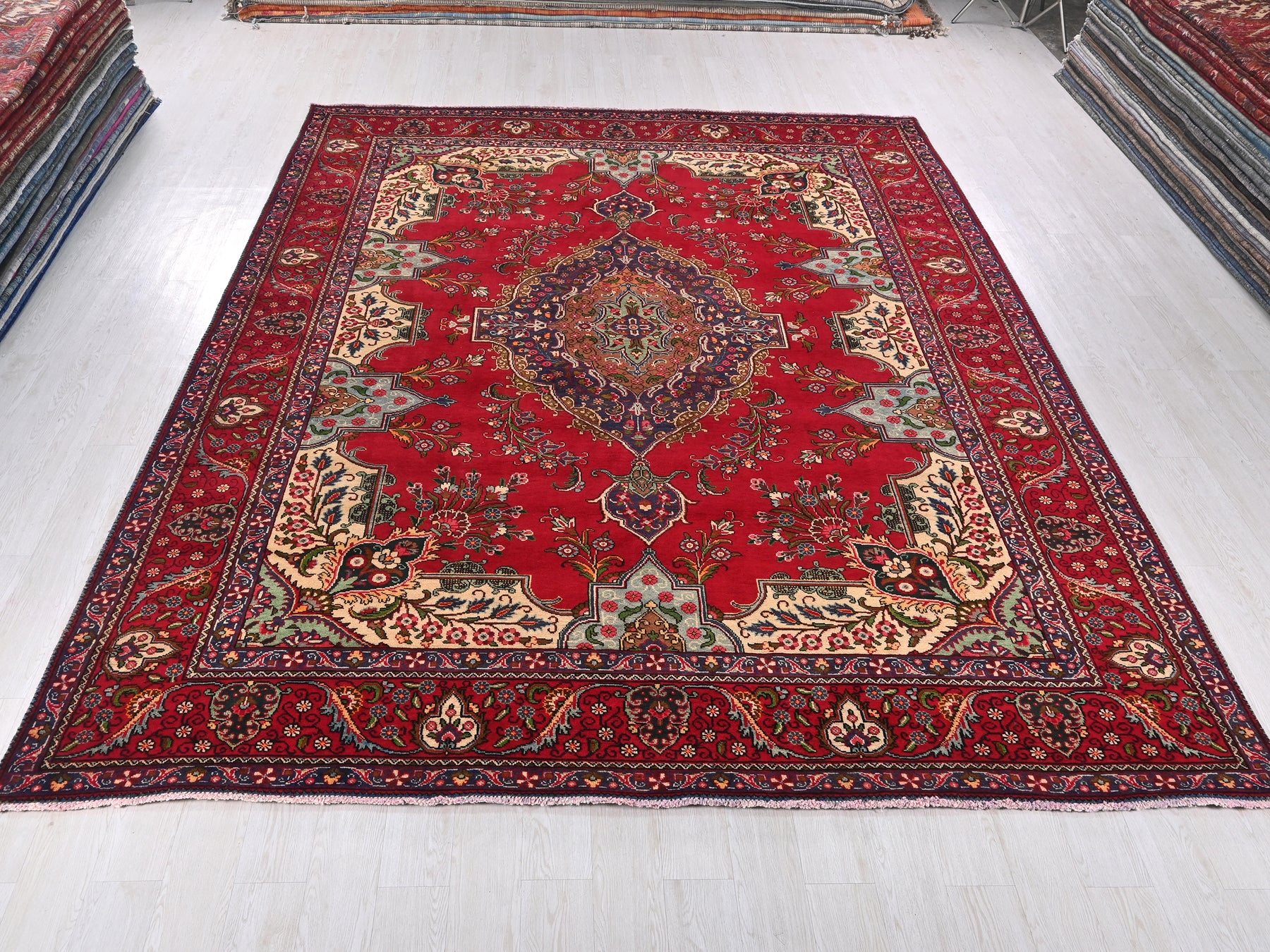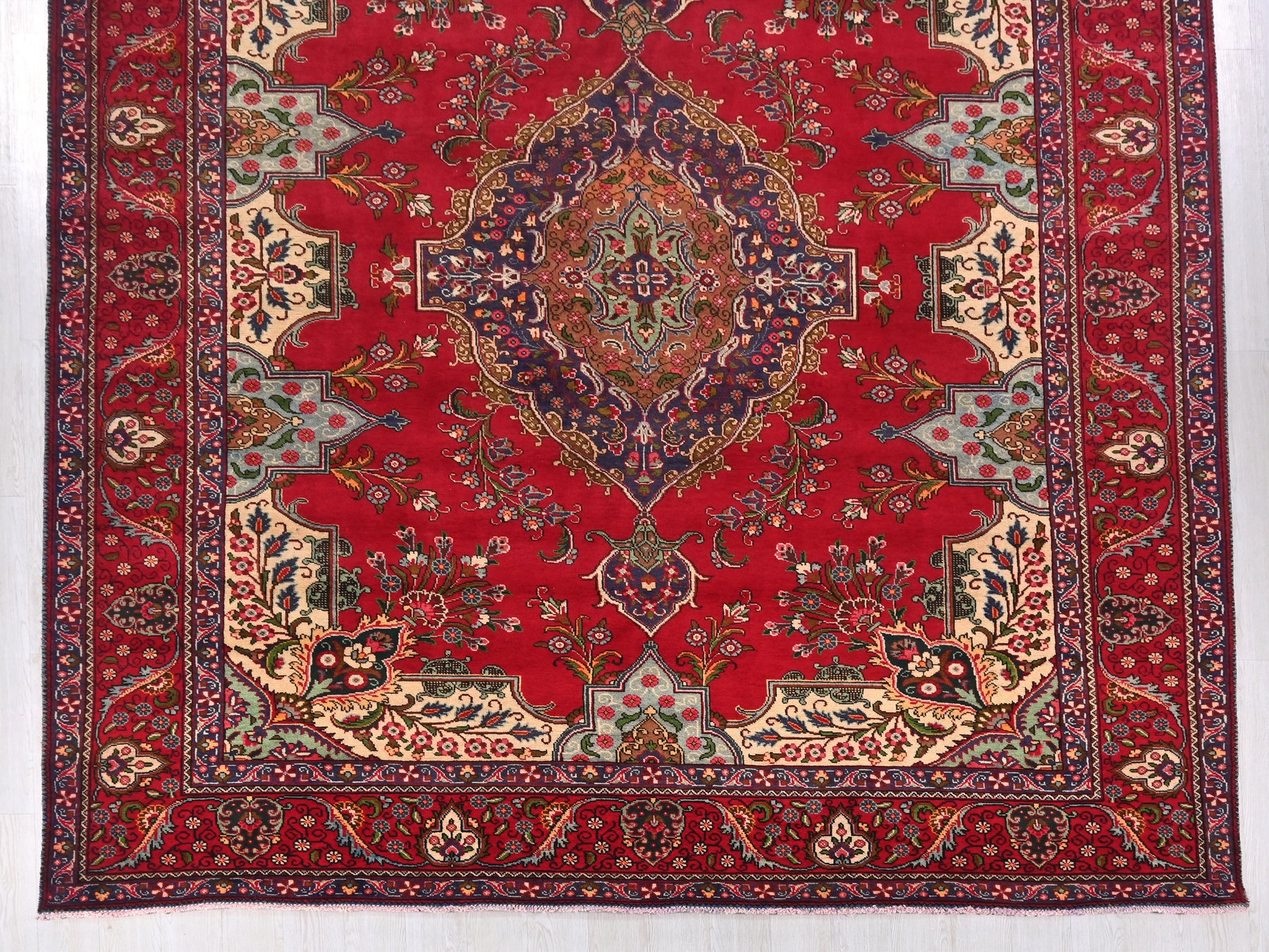 This is a hand-knotted, one-of-a-kind vintage rug. Due to the nature of this piece, there may be slight imperfections in its wear, shape, dimensions, and color. All of our rugs are professionally cleaned and repaired.