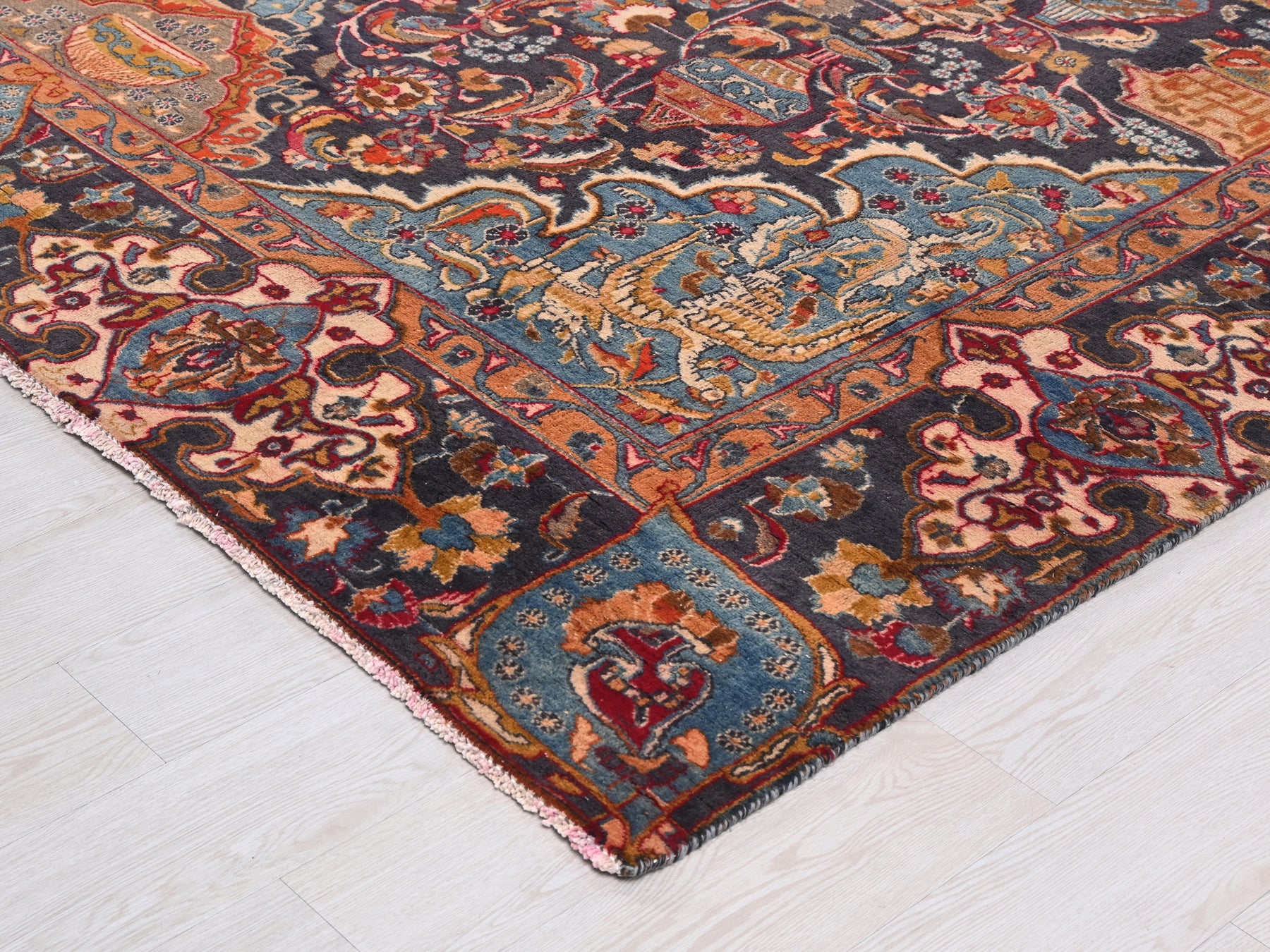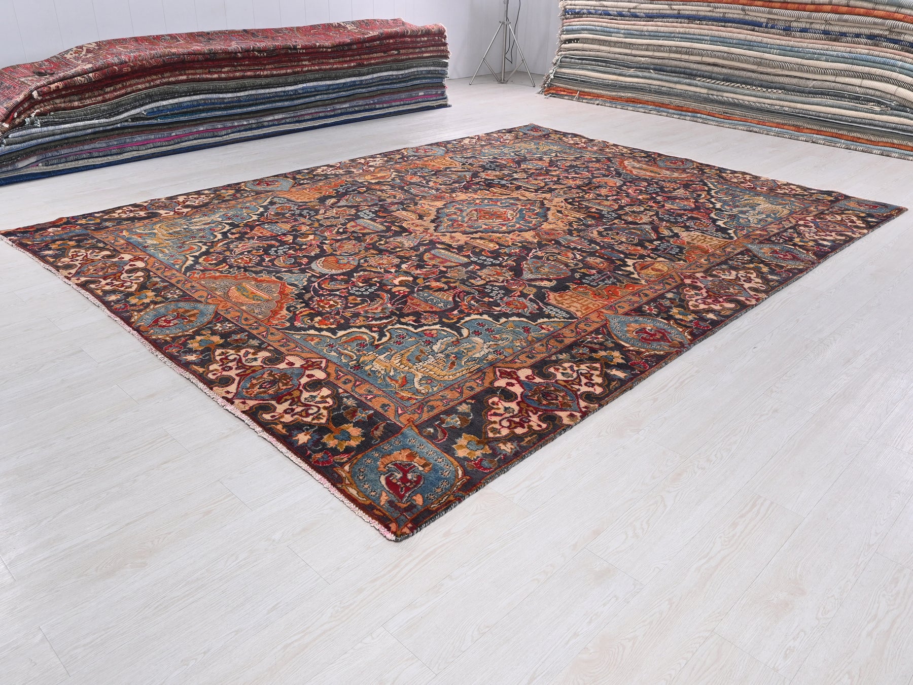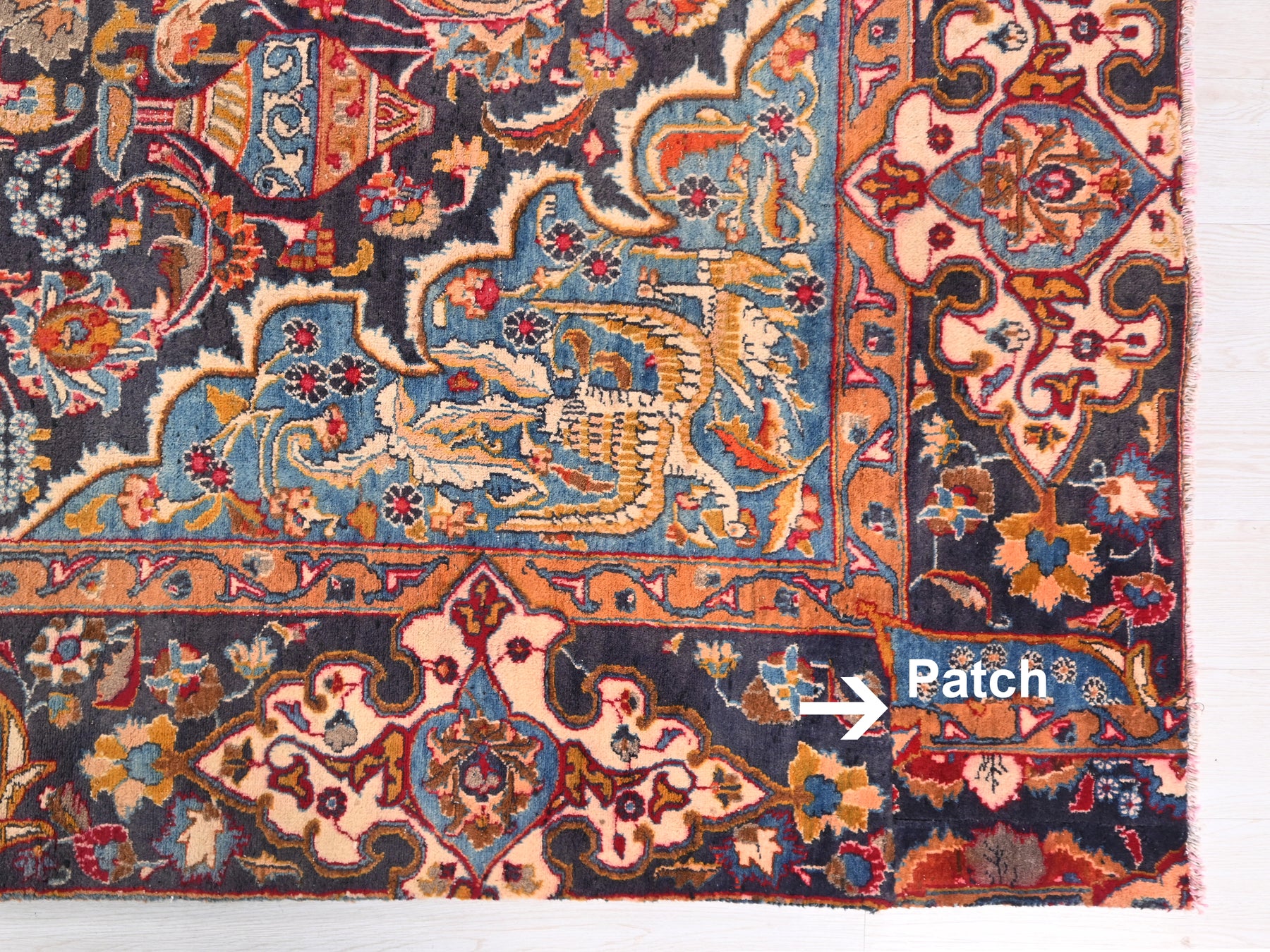 This is a hand-knotted, one-of-a-kind vintage rug. Due to the nature of this piece, there may be slight imperfections in its wear, shape, dimensions, and color. All of our rugs are professionally cleaned and repaired.