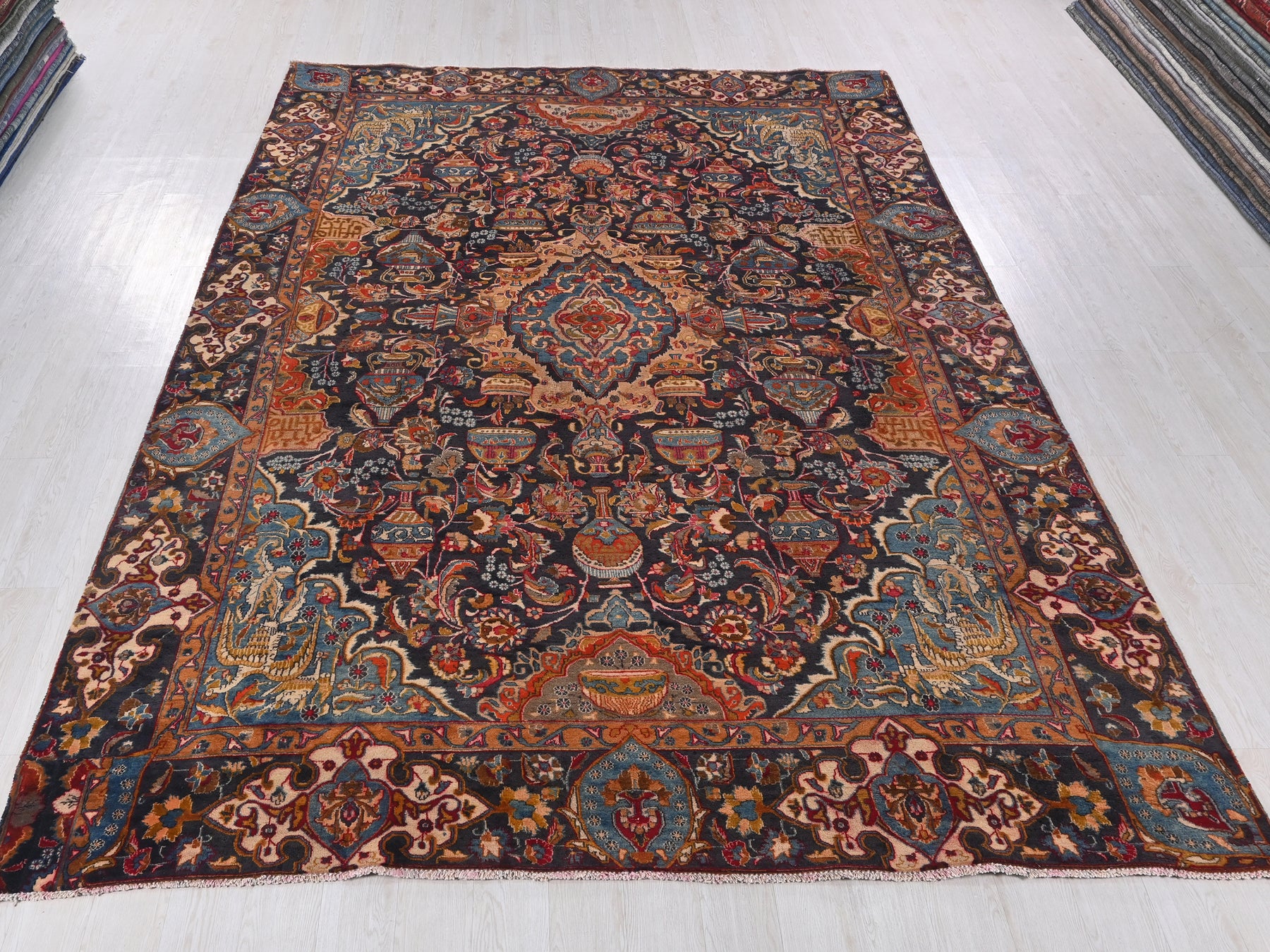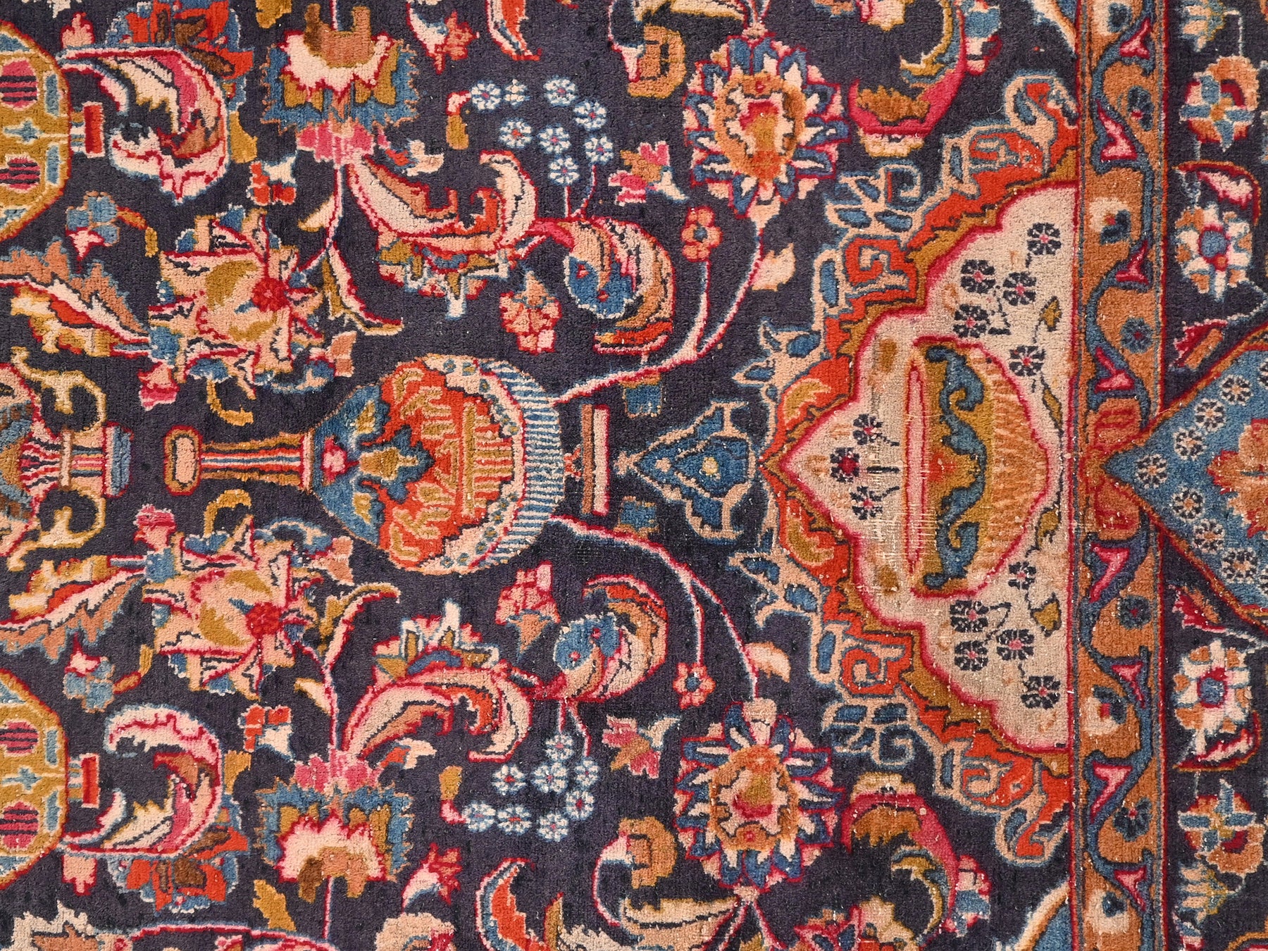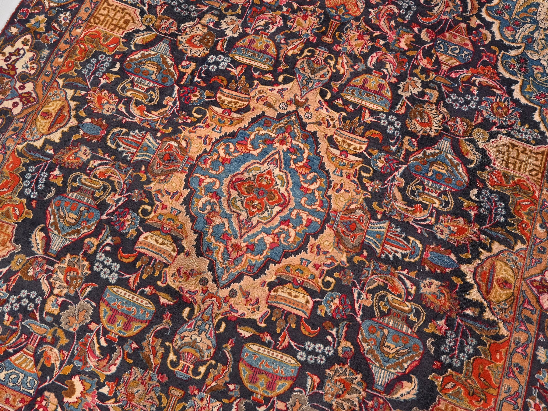 This is a hand-knotted, one-of-a-kind vintage rug. Due to the nature of this piece, there may be slight imperfections in its wear, shape, dimensions, and color. All of our rugs are professionally cleaned and repaired.