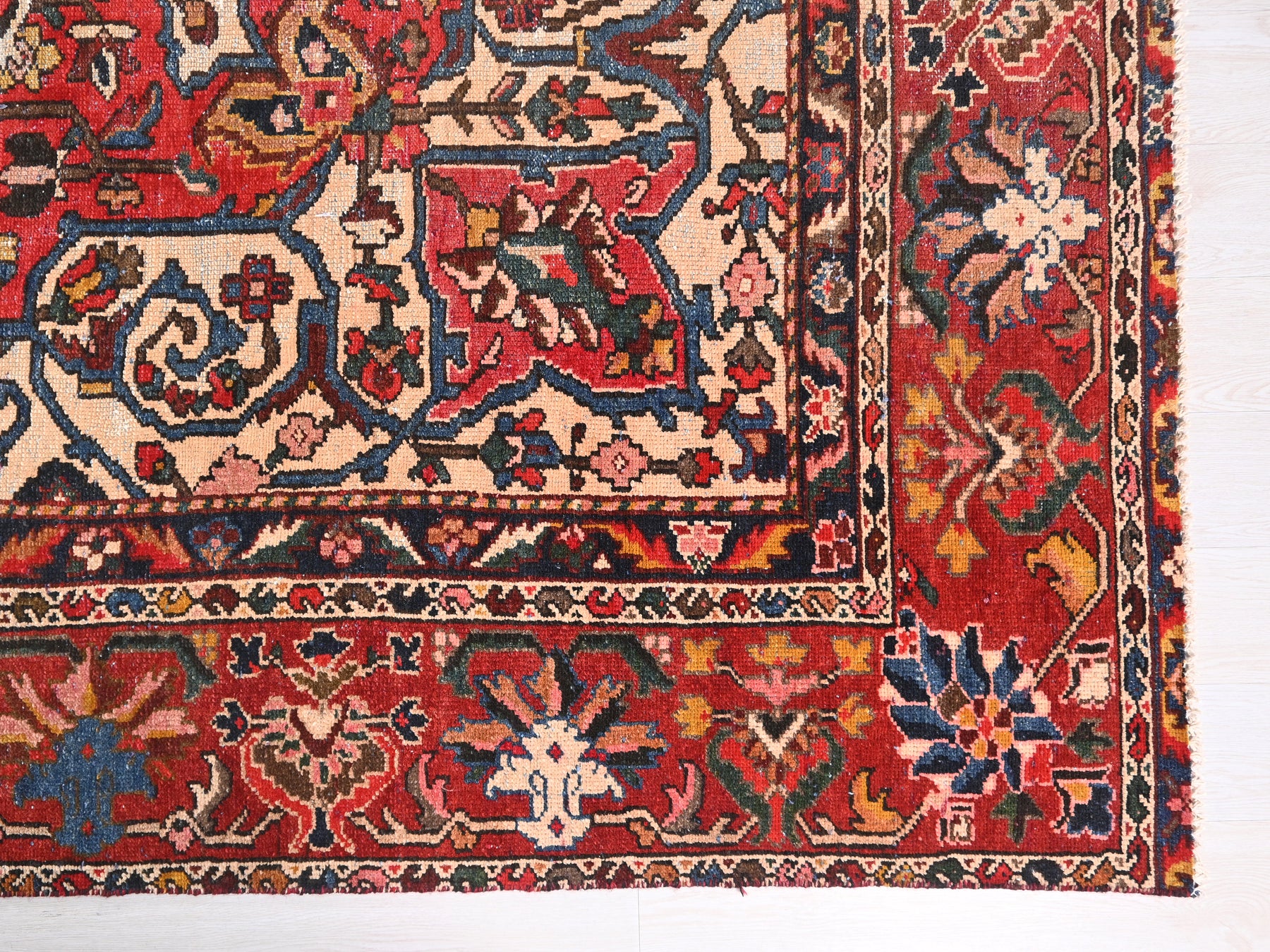 This is a hand-knotted, one-of-a-kind vintage rug. Due to the nature of this piece, there may be slight imperfections in its wear, shape, dimensions, and color. All of our rugs are professionally cleaned and repaired.