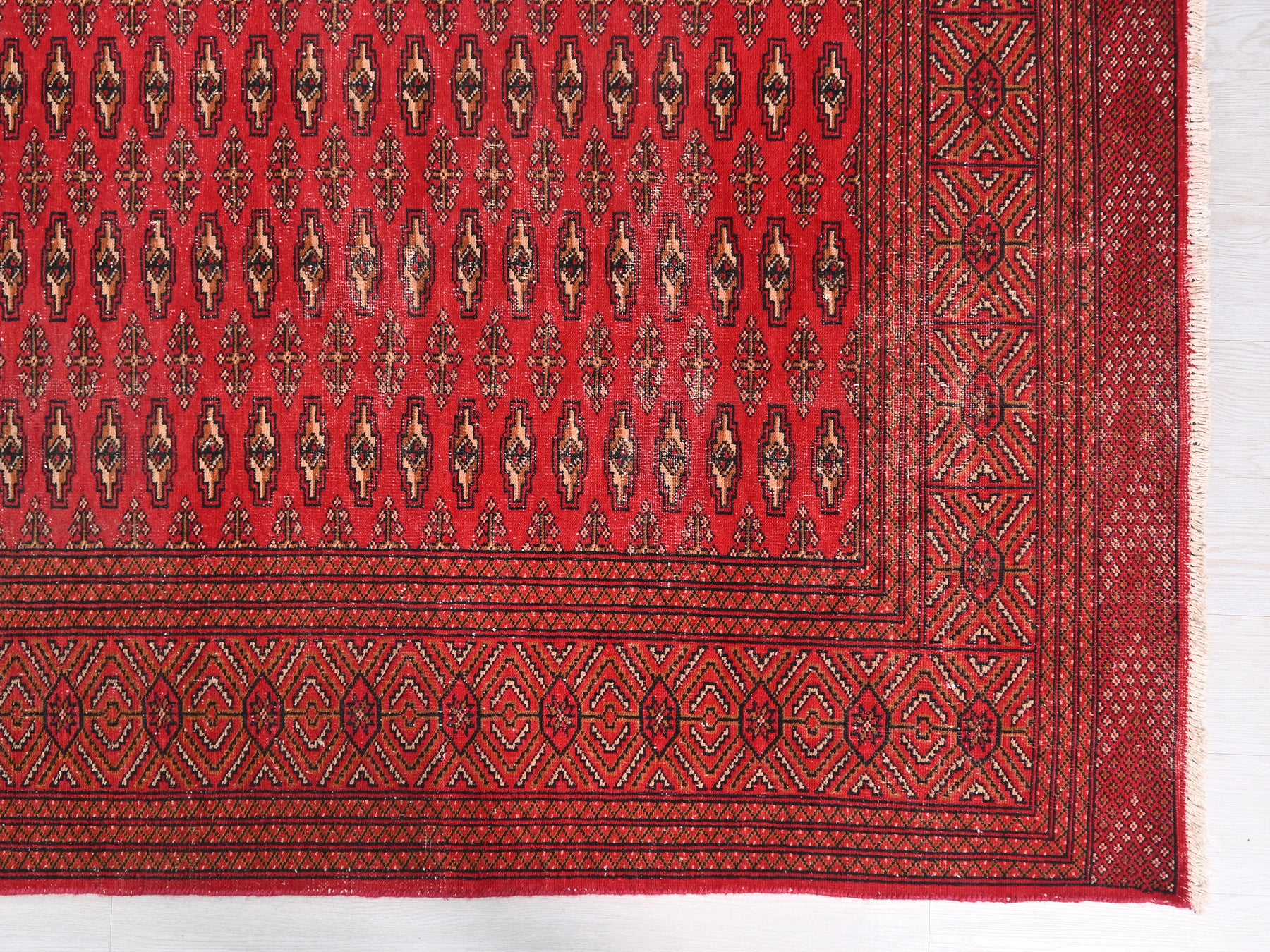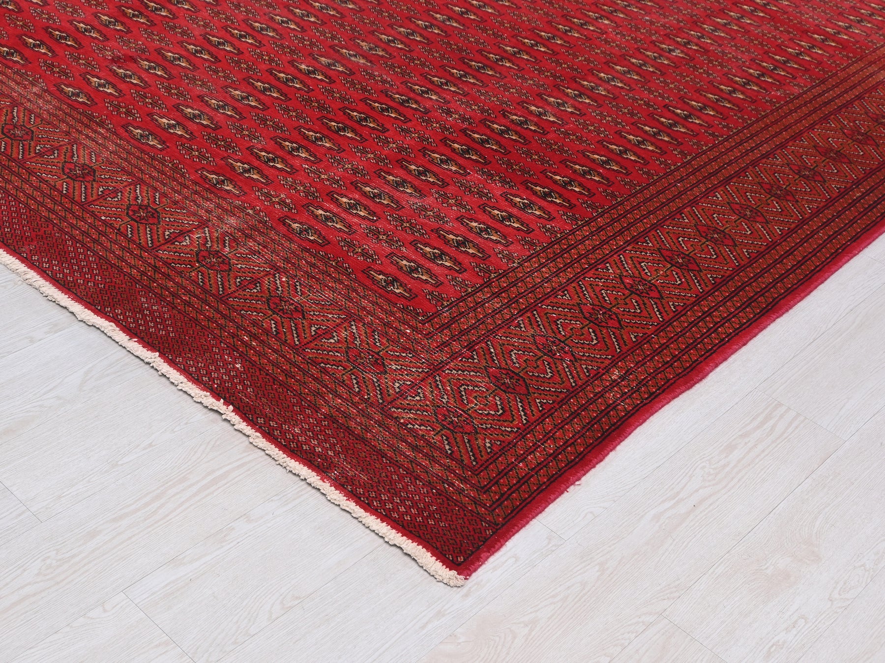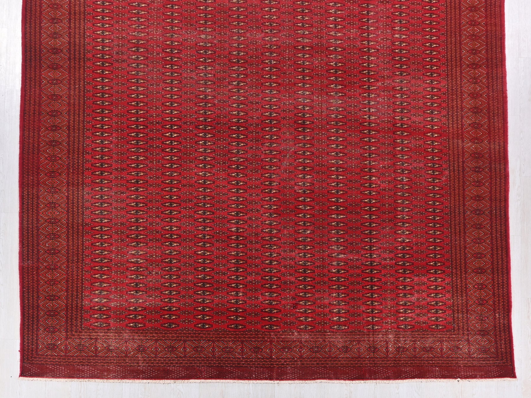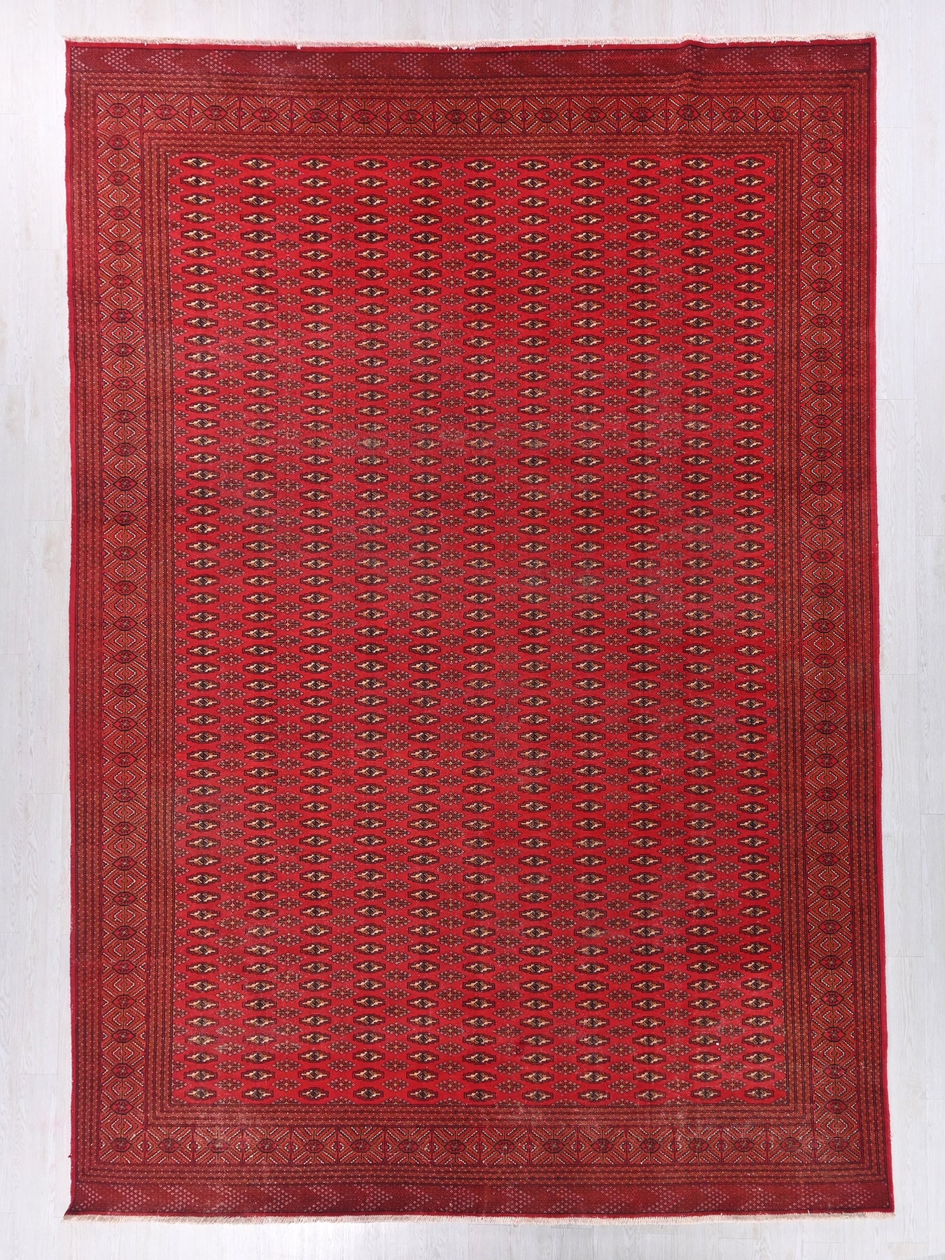 This is a hand-knotted, one-of-a-kind vintage rug. Due to the nature of this piece, there may be slight imperfections in its wear, shape, dimensions, and color. All of our rugs are professionally cleaned and repaired.