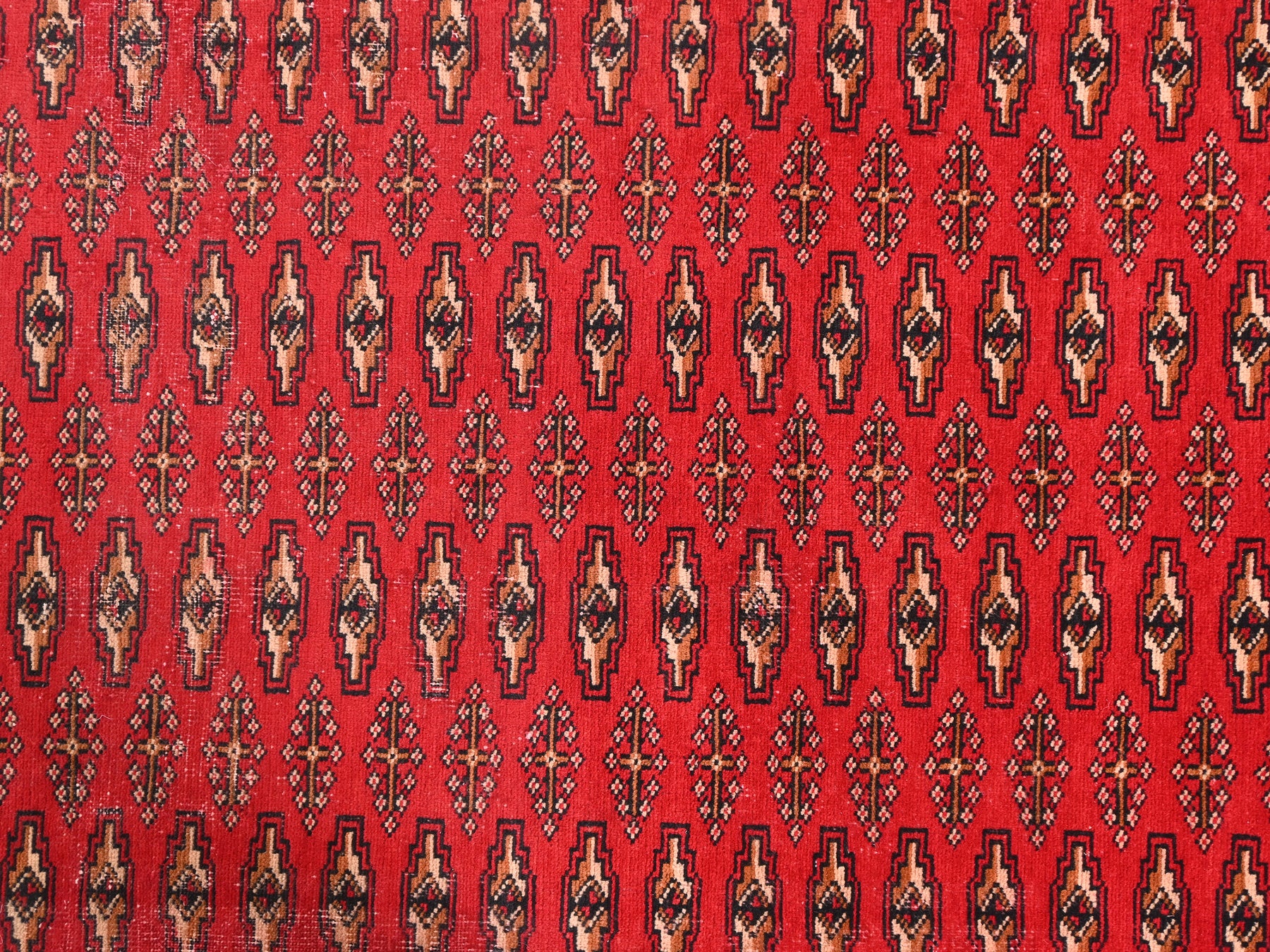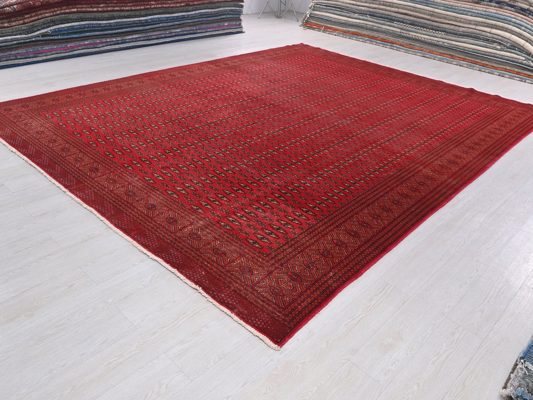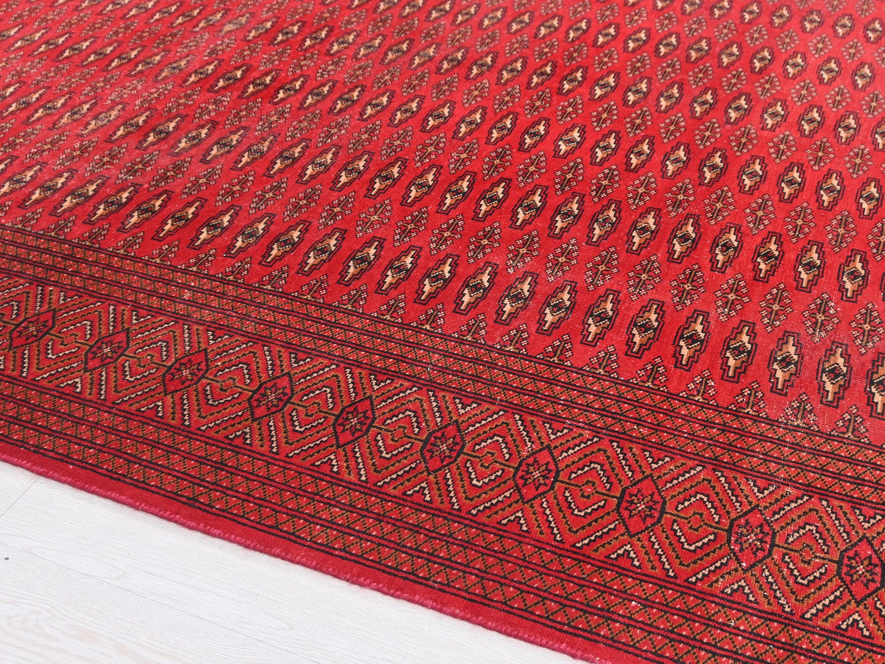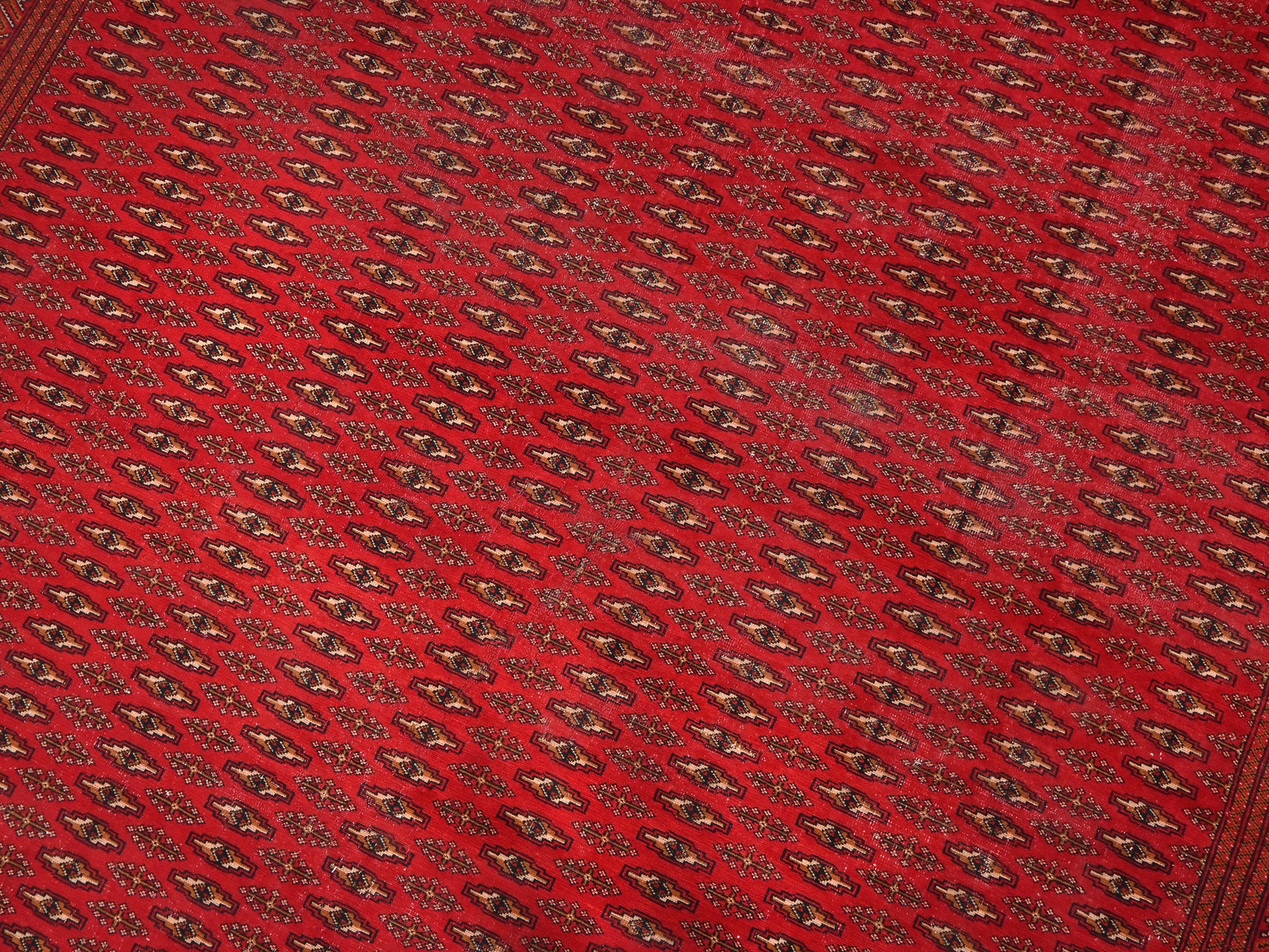 This is a hand-knotted, one-of-a-kind vintage rug. Due to the nature of this piece, there may be slight imperfections in its wear, shape, dimensions, and color. All of our rugs are professionally cleaned and repaired.