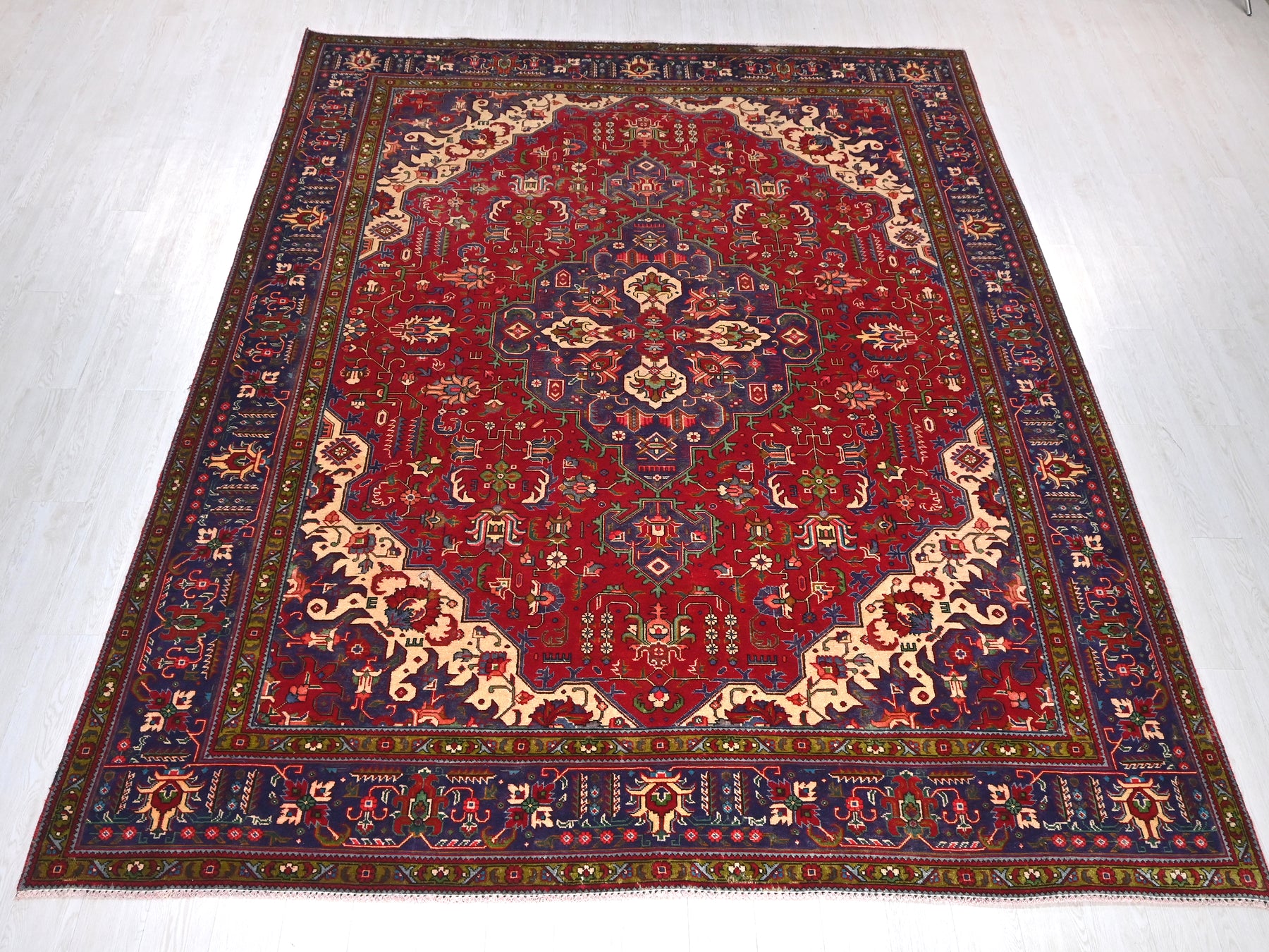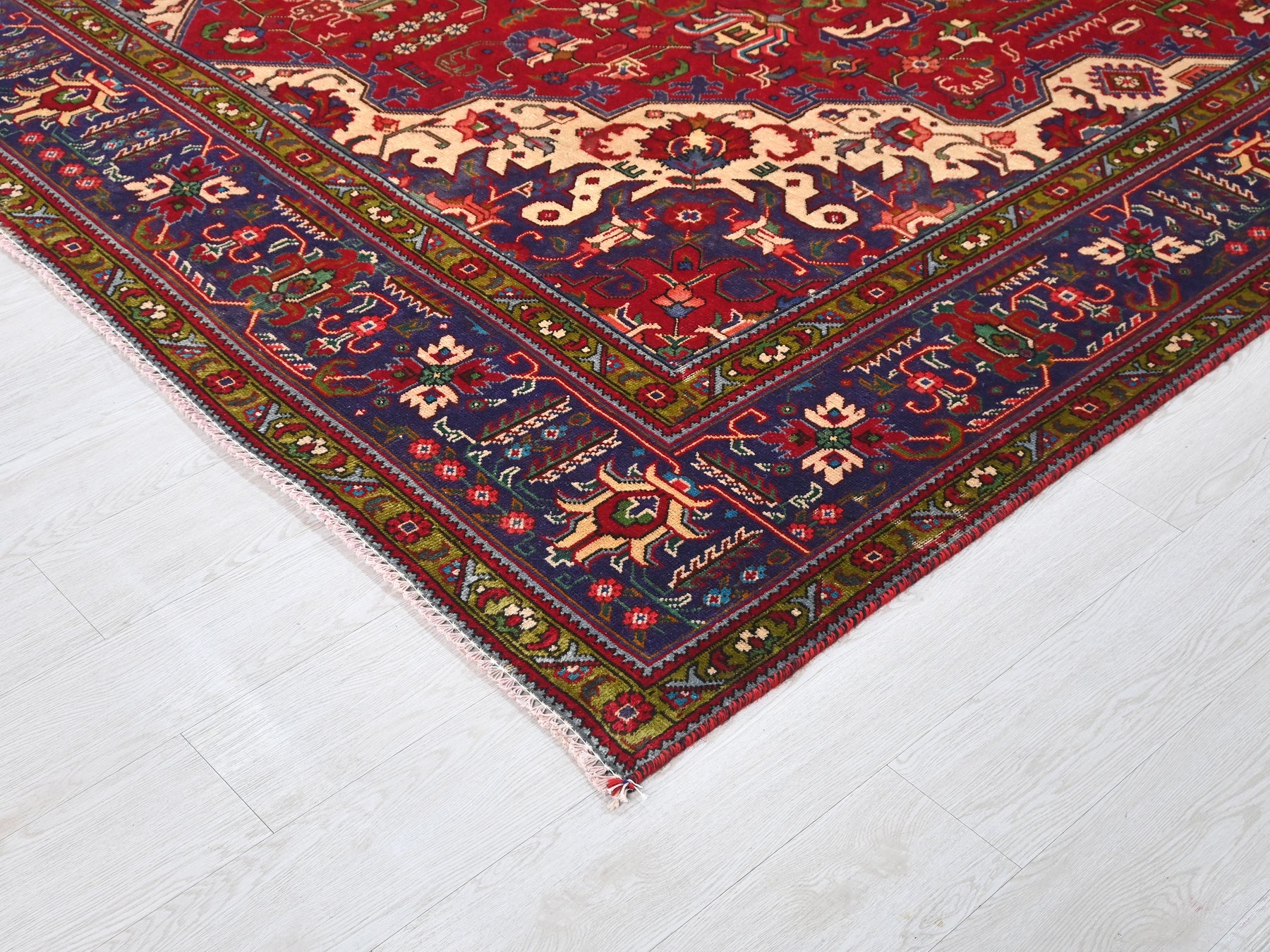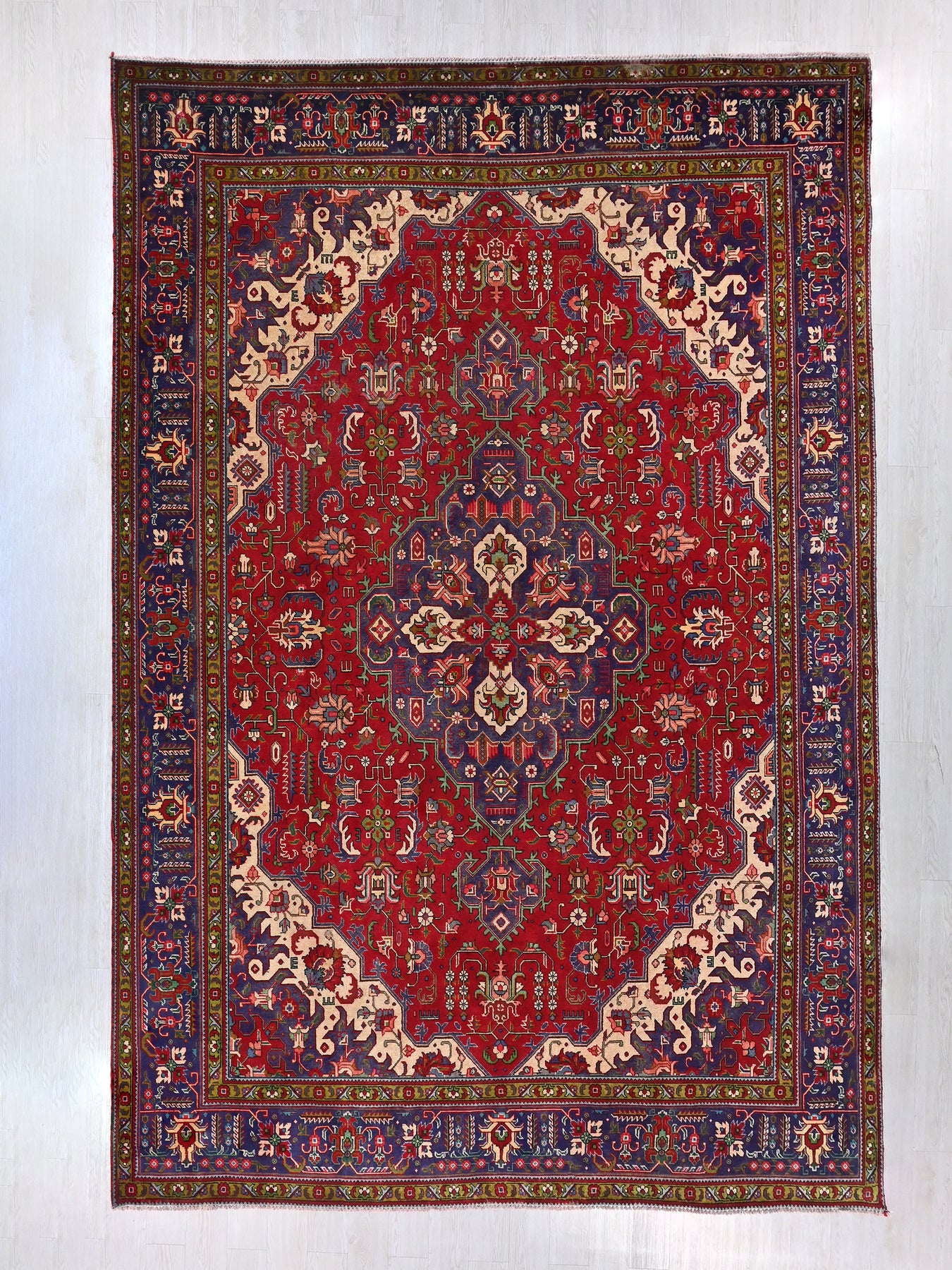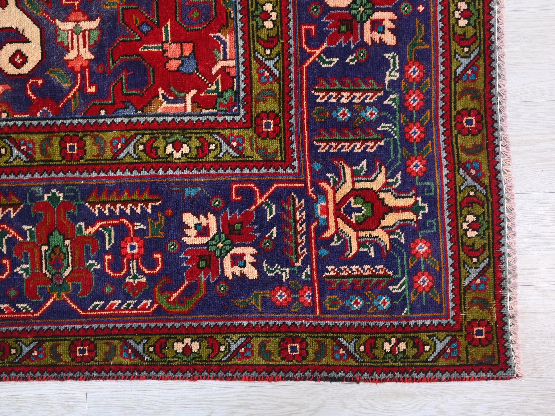 This is a hand-knotted, one-of-a-kind vintage rug. Due to the nature of this piece, there may be slight imperfections in its wear, shape, dimensions, and color. All of our rugs are professionally cleaned and repaired.