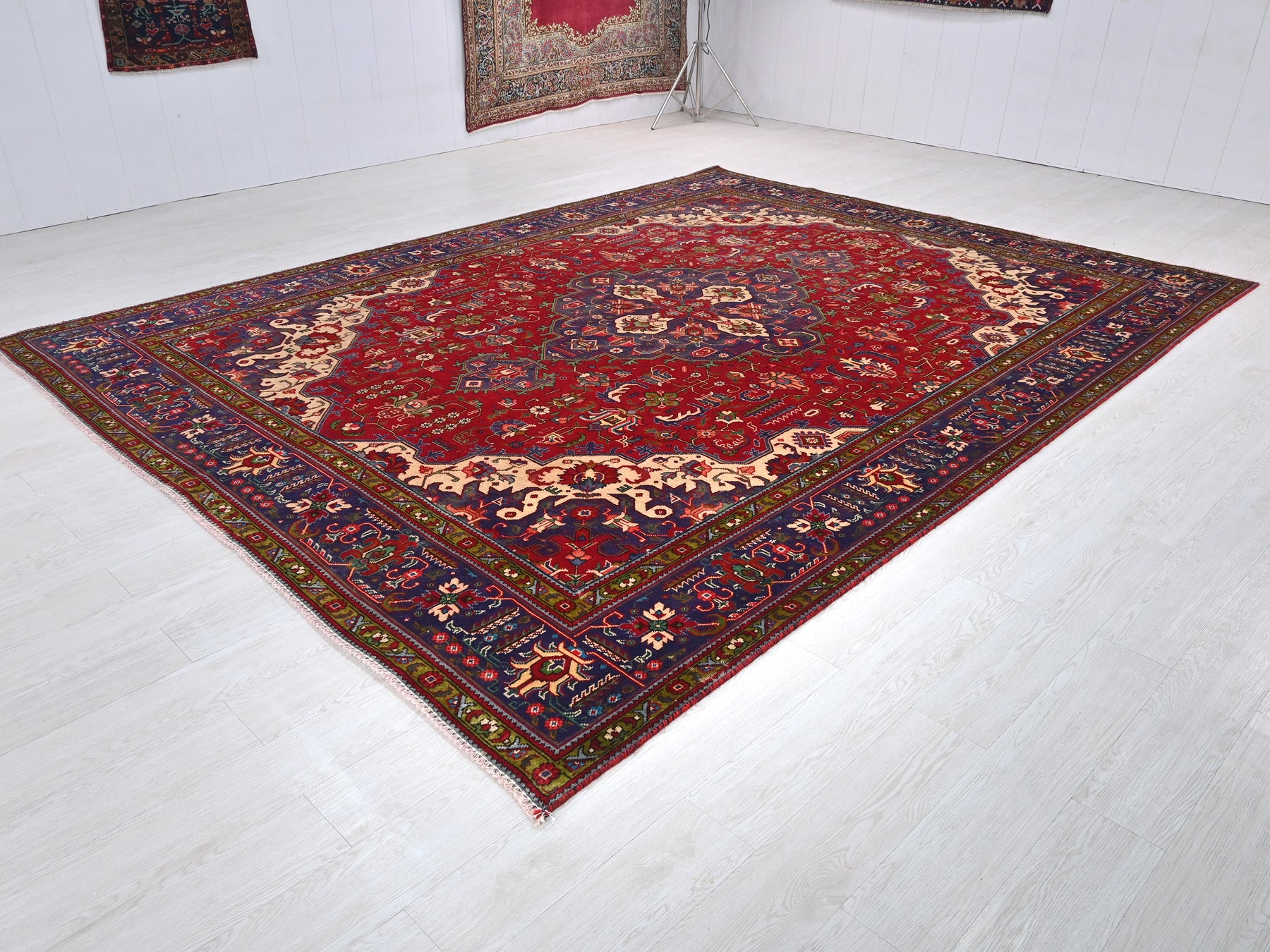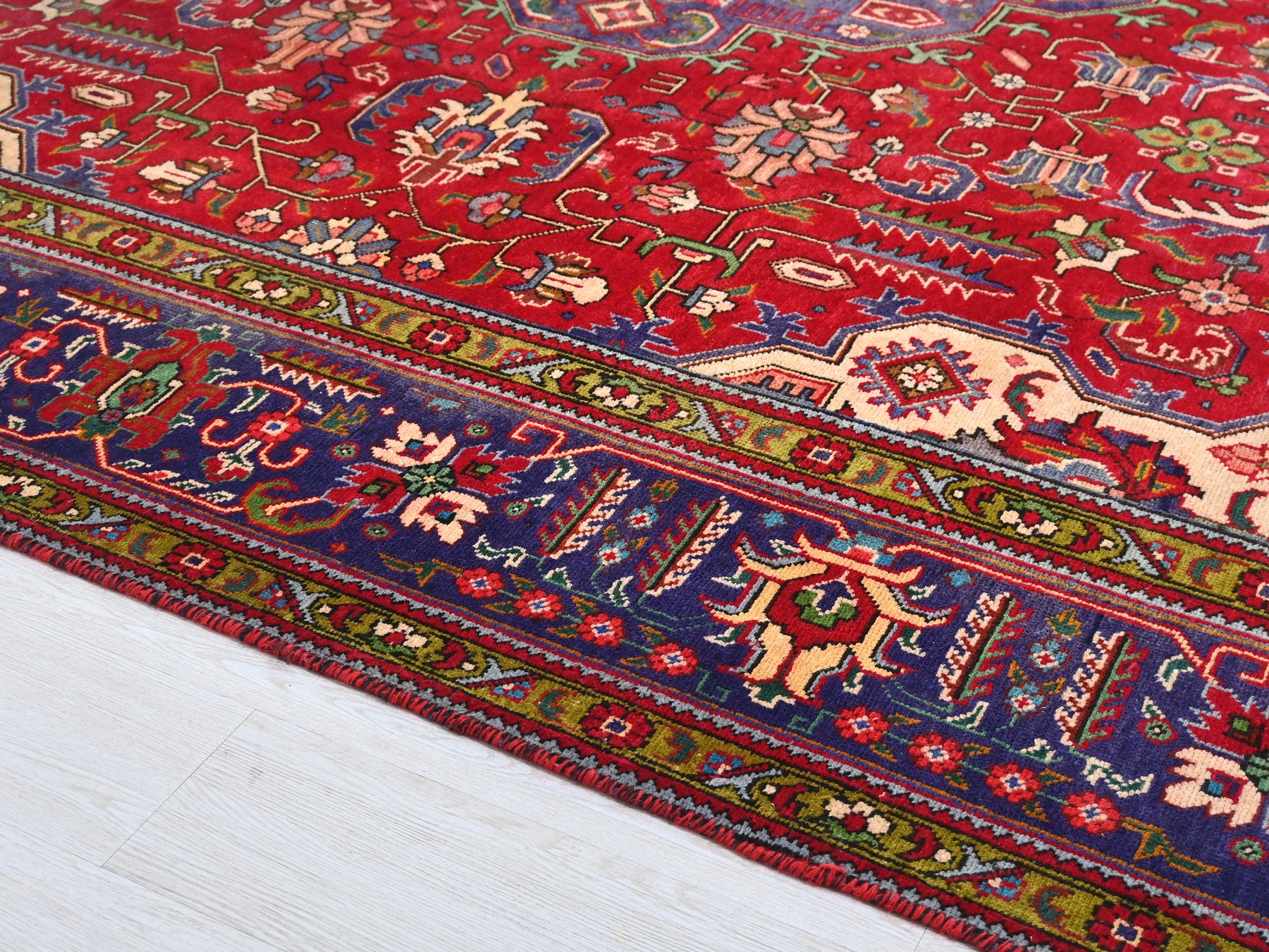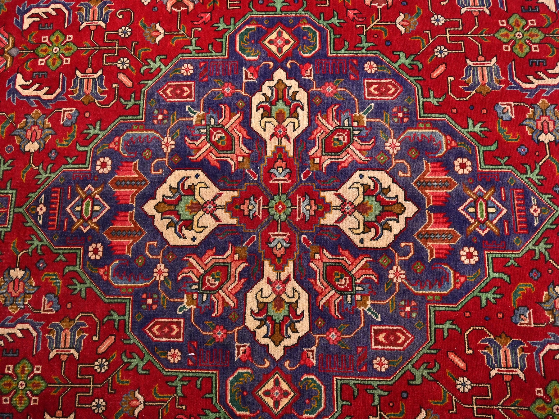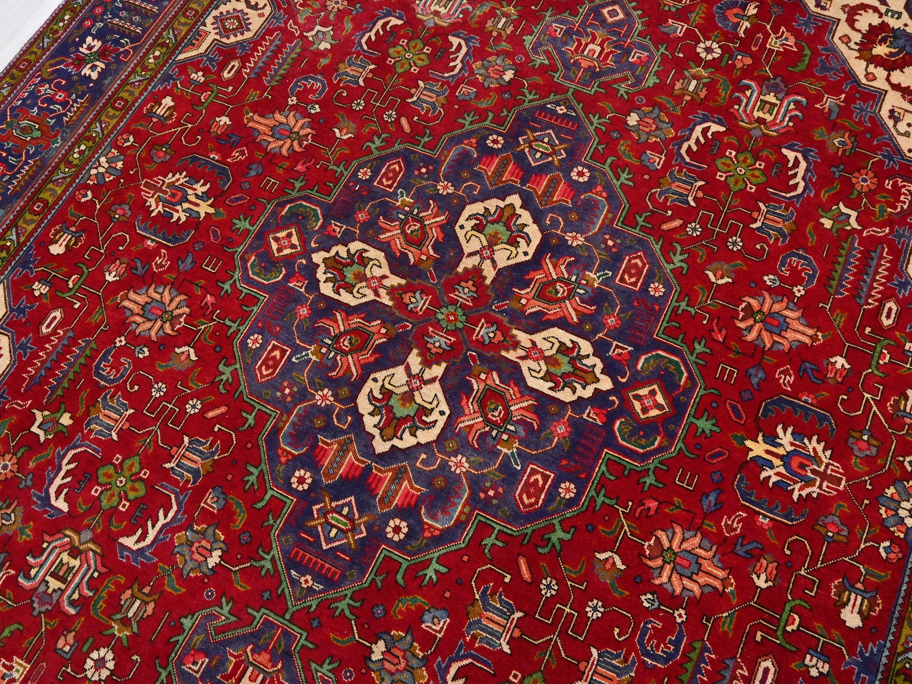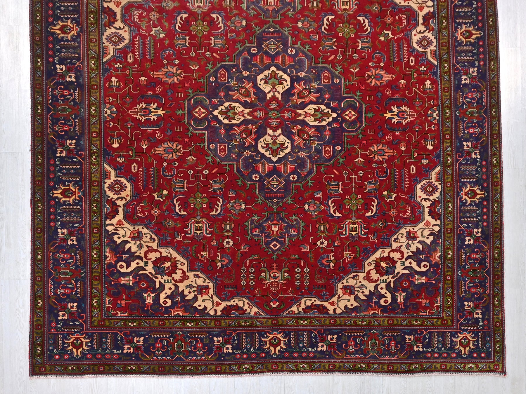 This is a hand-knotted, one-of-a-kind vintage rug. Due to the nature of this piece, there may be slight imperfections in its wear, shape, dimensions, and color. All of our rugs are professionally cleaned and repaired.