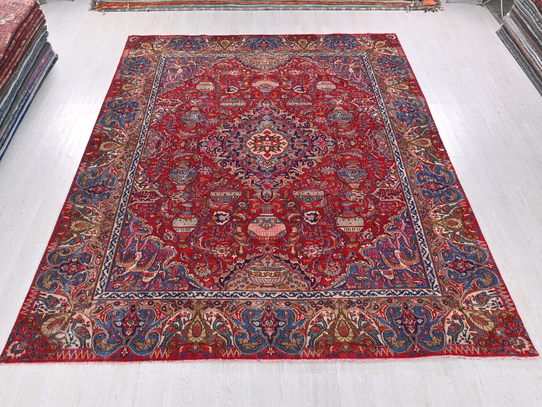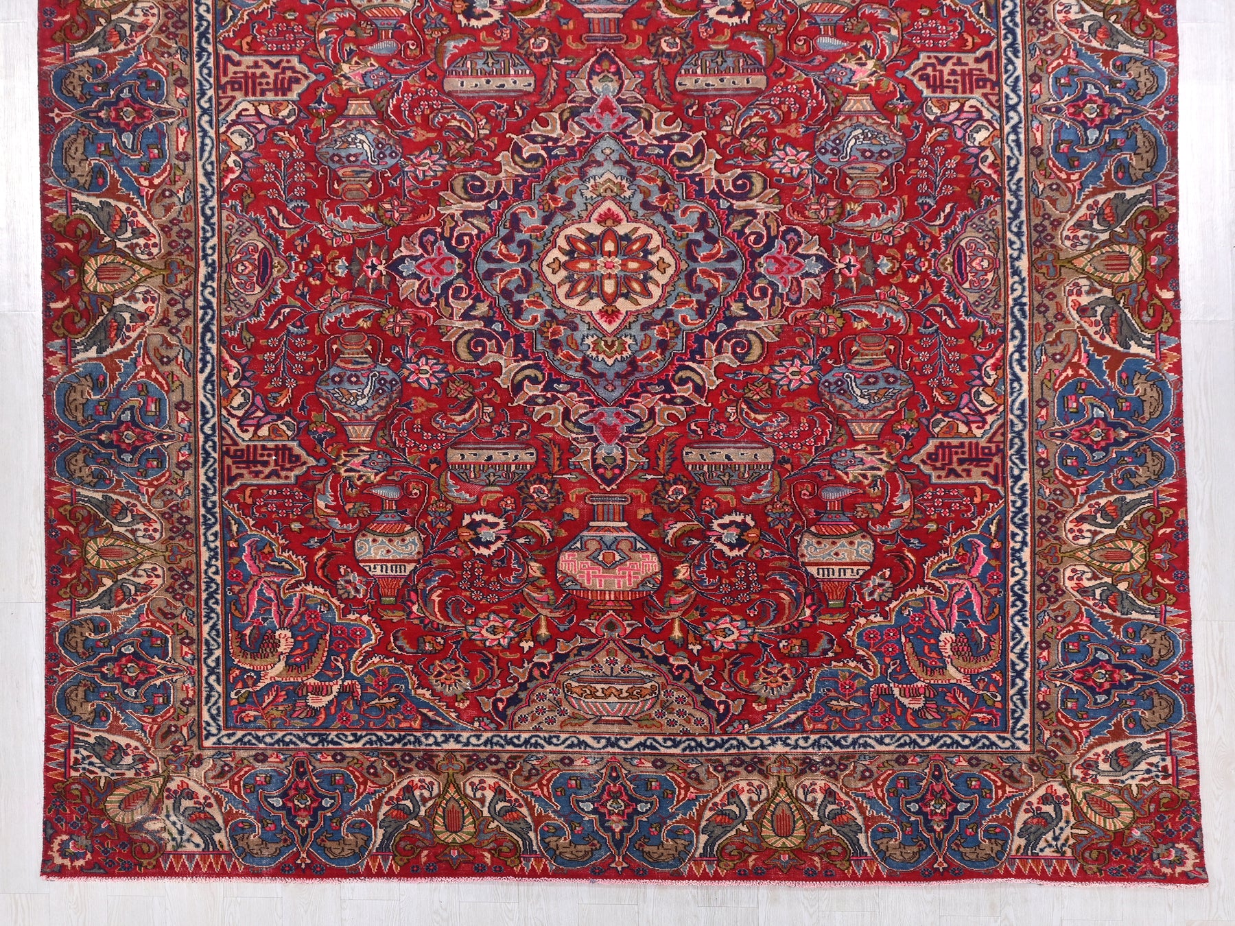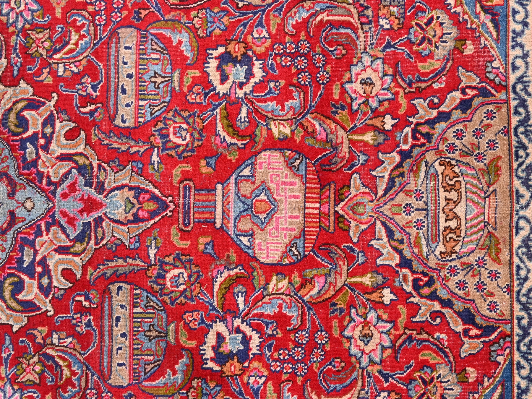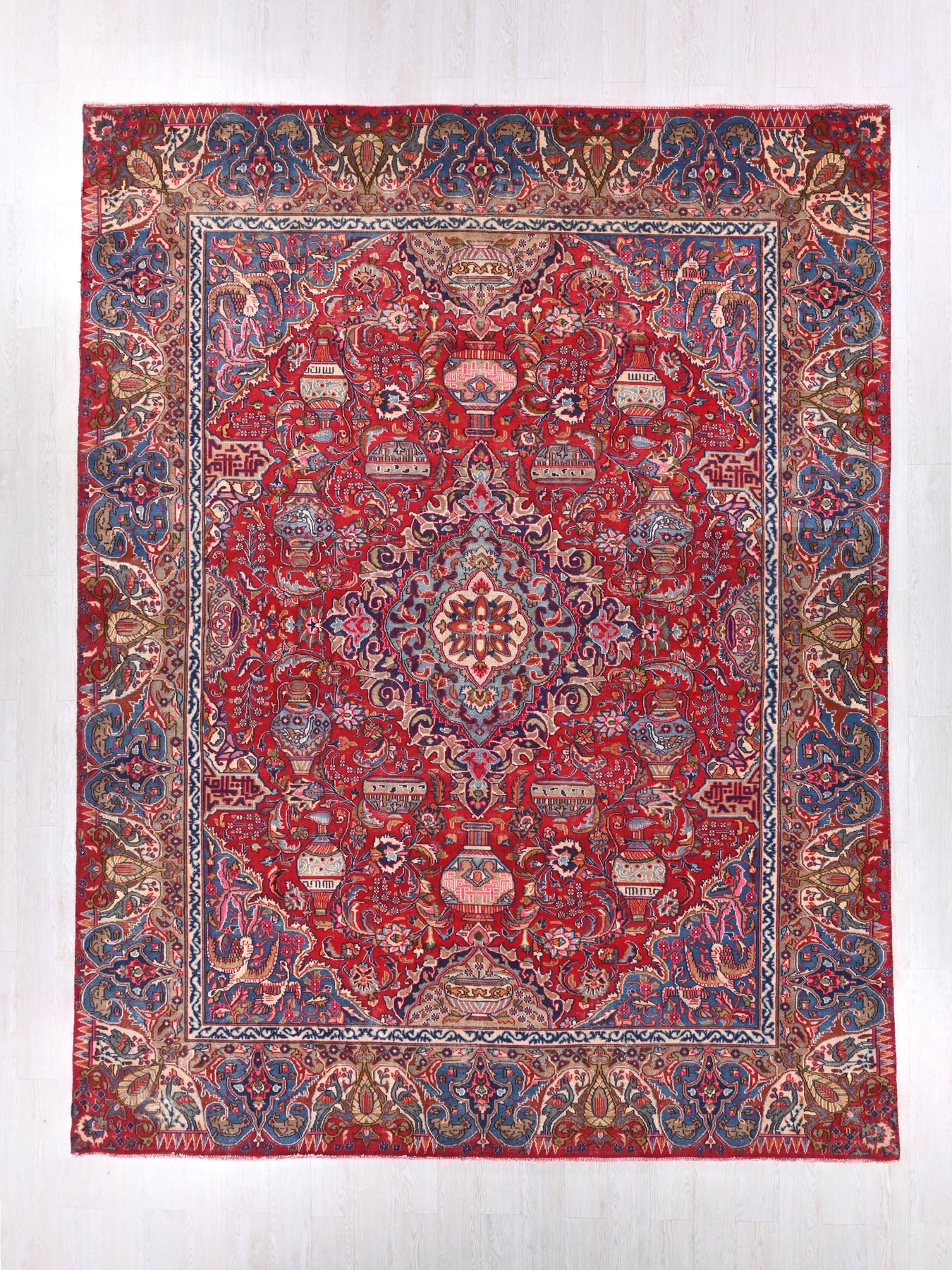 This is a hand-knotted, one-of-a-kind vintage rug. Due to the nature of this piece, there may be slight imperfections in its wear, shape, dimensions, and color. All of our rugs are professionally cleaned and repaired.