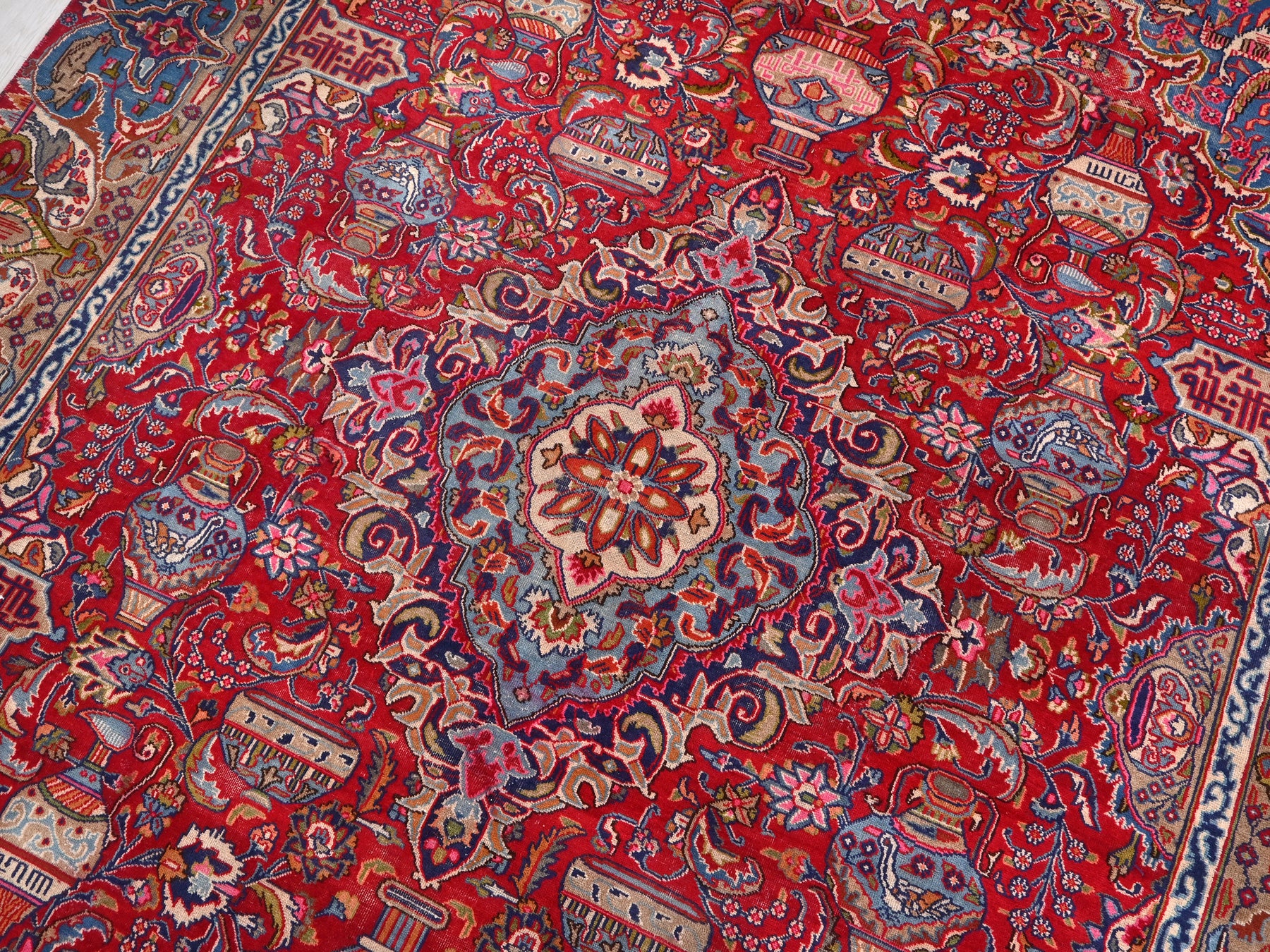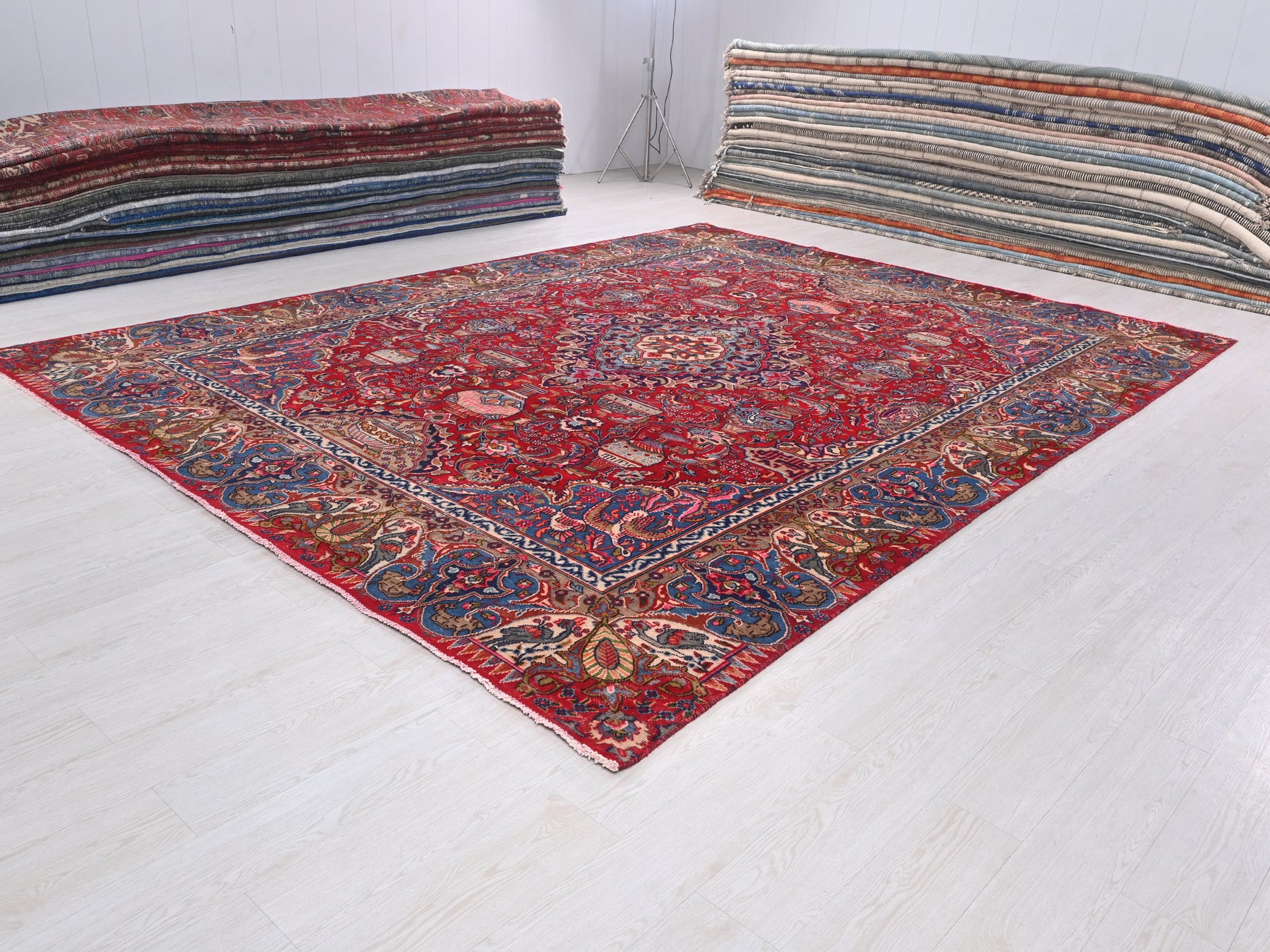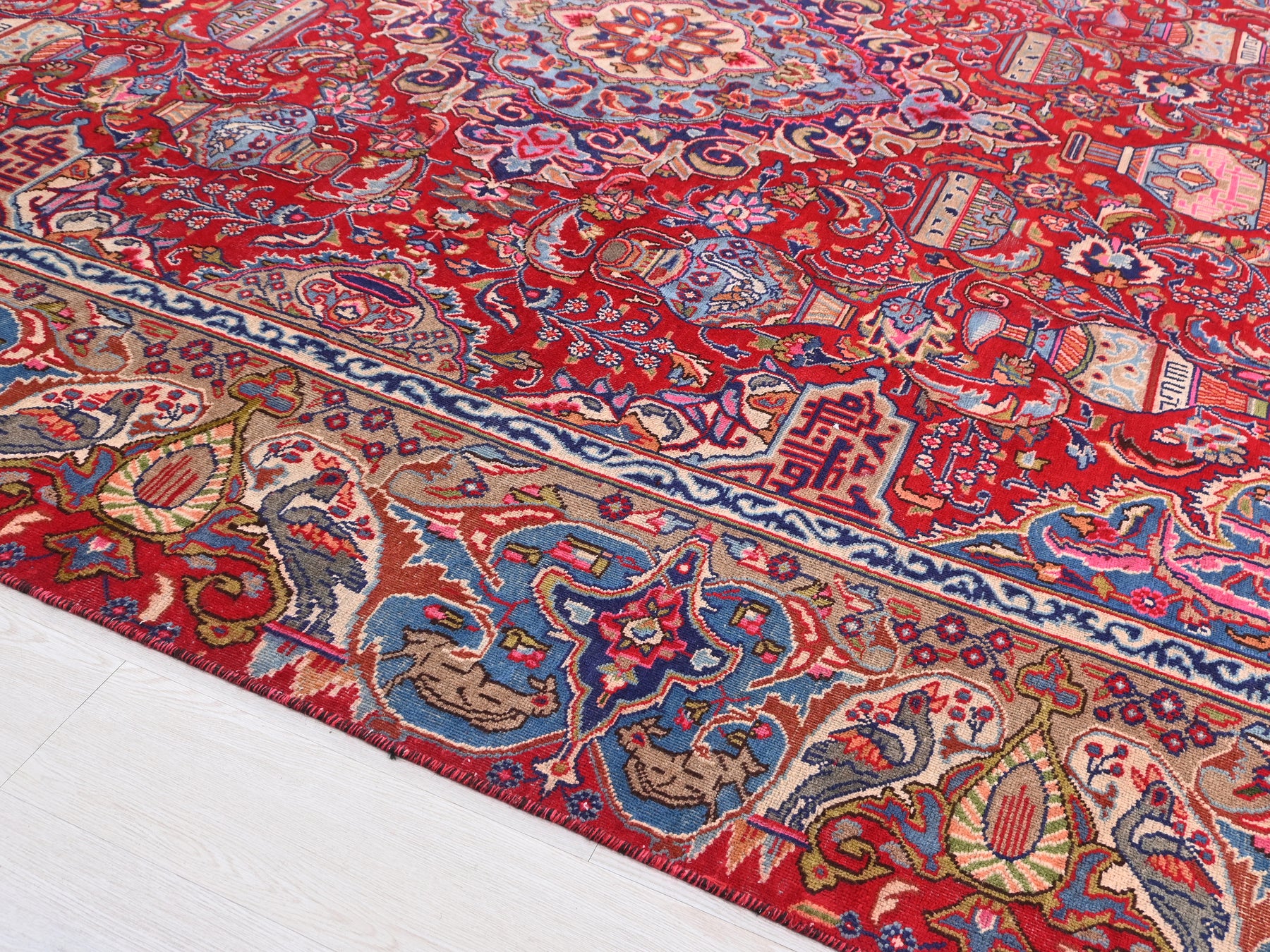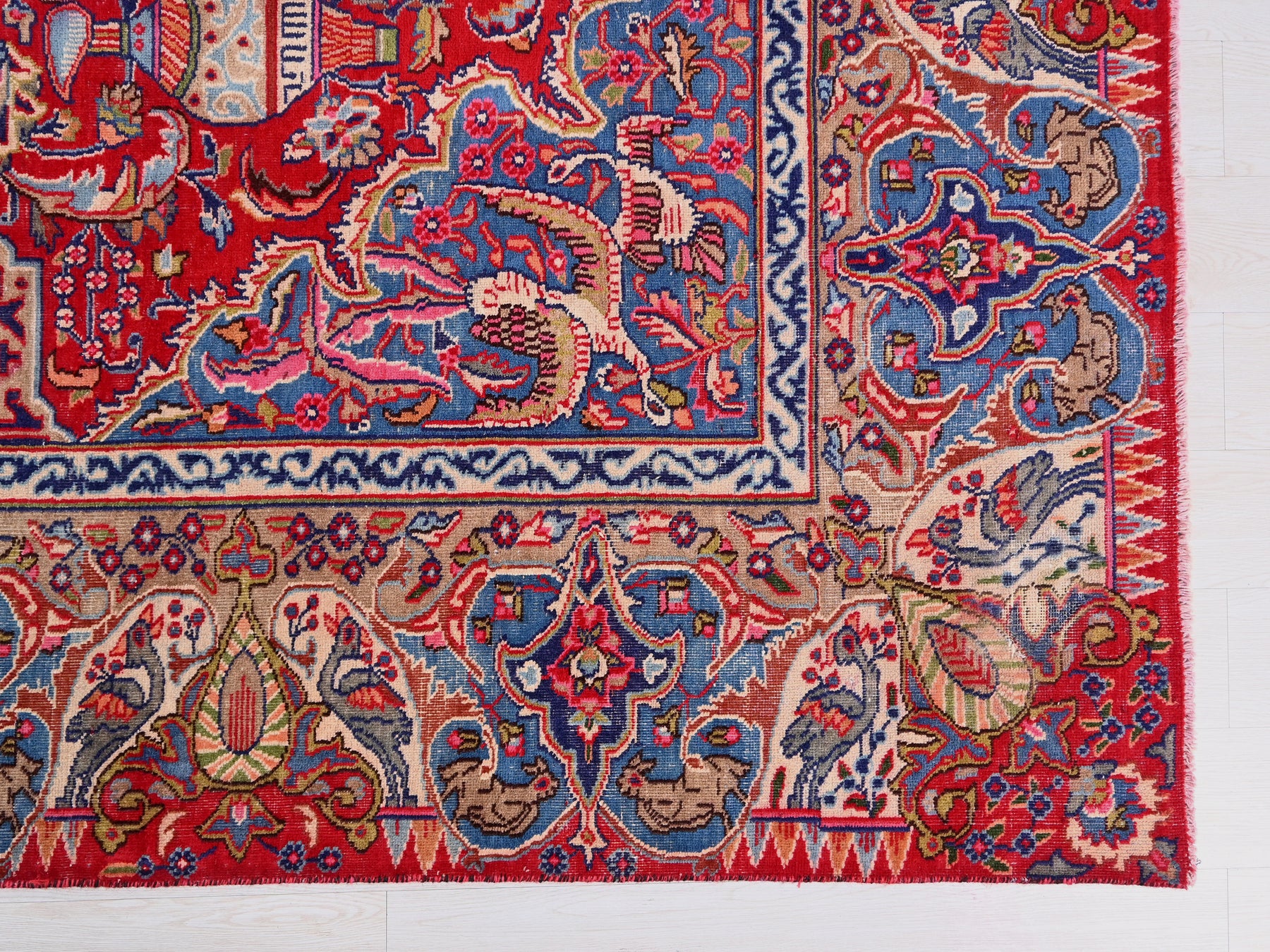 This is a hand-knotted, one-of-a-kind vintage rug. Due to the nature of this piece, there may be slight imperfections in its wear, shape, dimensions, and color. All of our rugs are professionally cleaned and repaired.