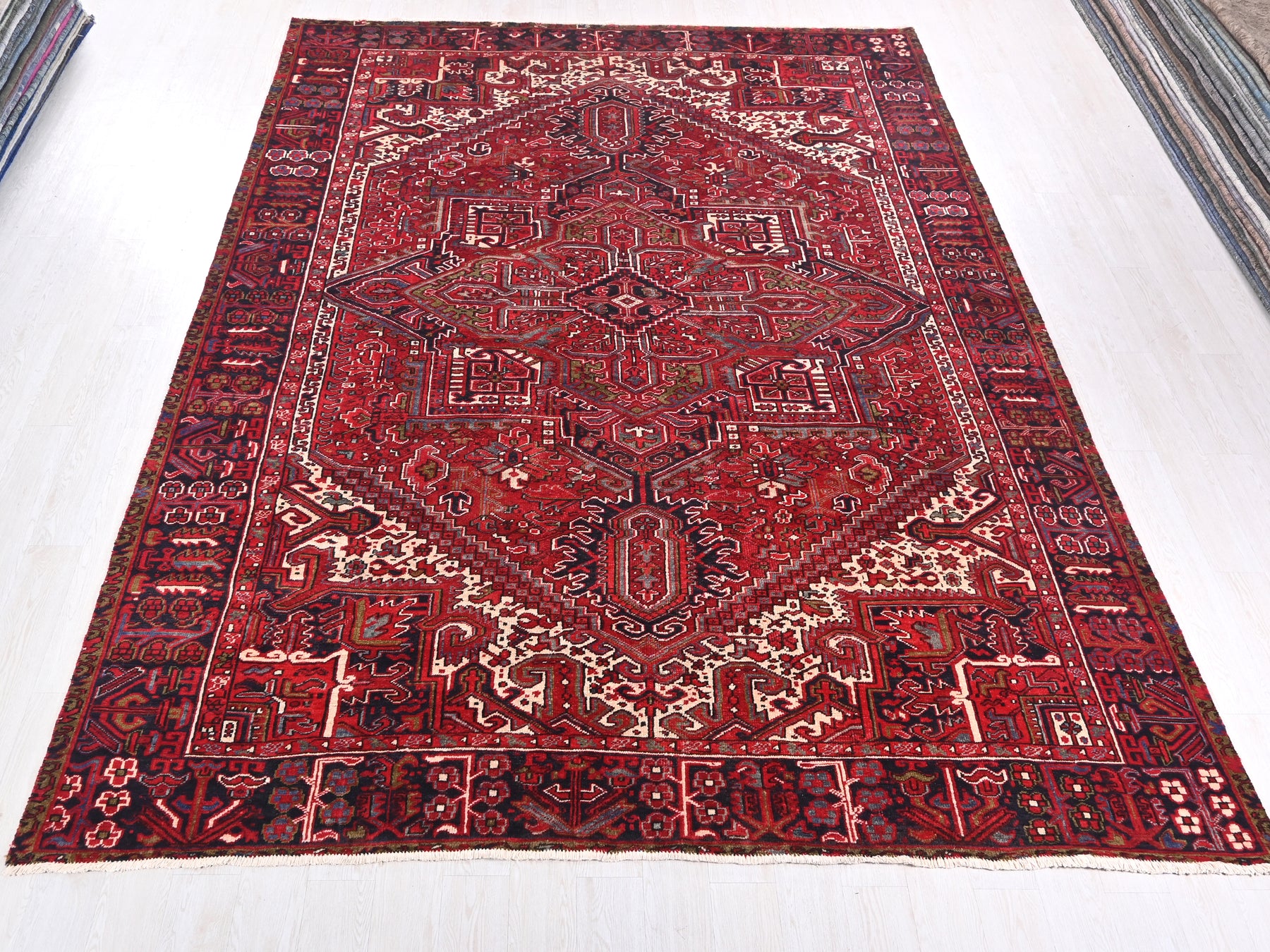 This is a hand-knotted, one-of-a-kind vintage rug. Due to the nature of this piece, there may be slight imperfections in its wear, shape, dimensions, and color. All of our rugs are professionally cleaned and repaired.