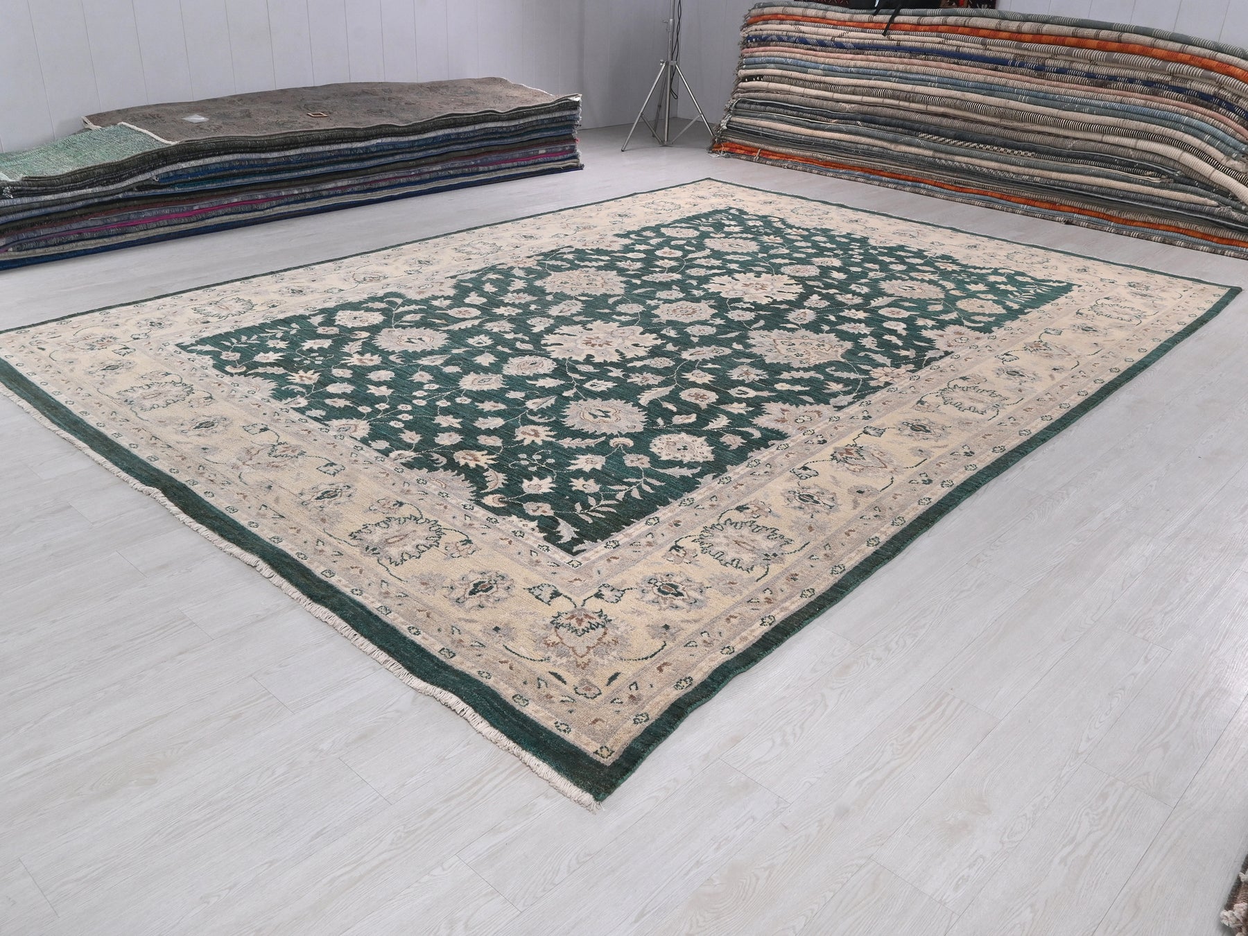 This is a hand-knotted, one-of-a-kind vintage rug. Due to the nature of this piece, there may be slight imperfections in its wear, shape, dimensions, and color. All of our rugs are professionally cleaned and repaired.