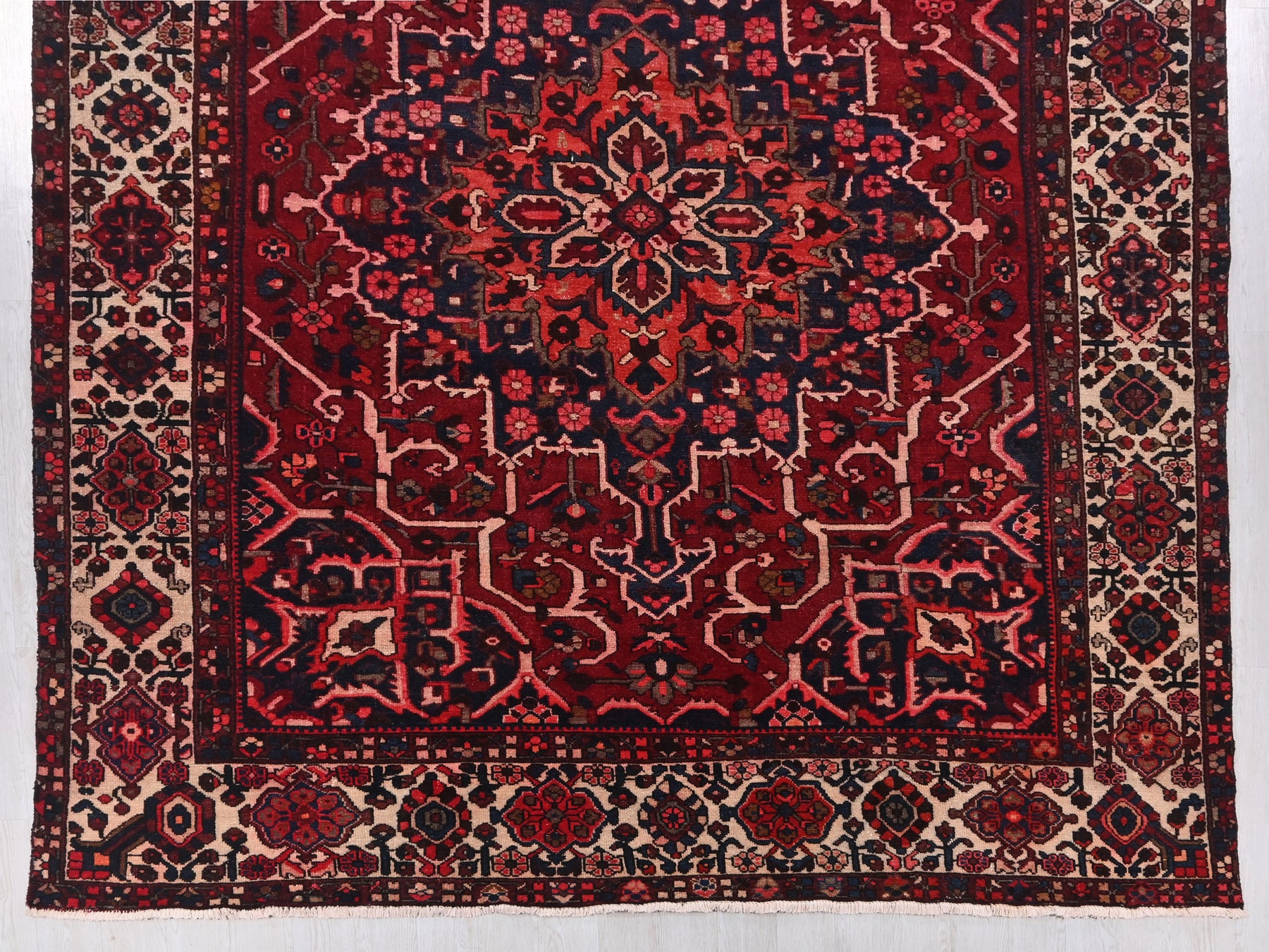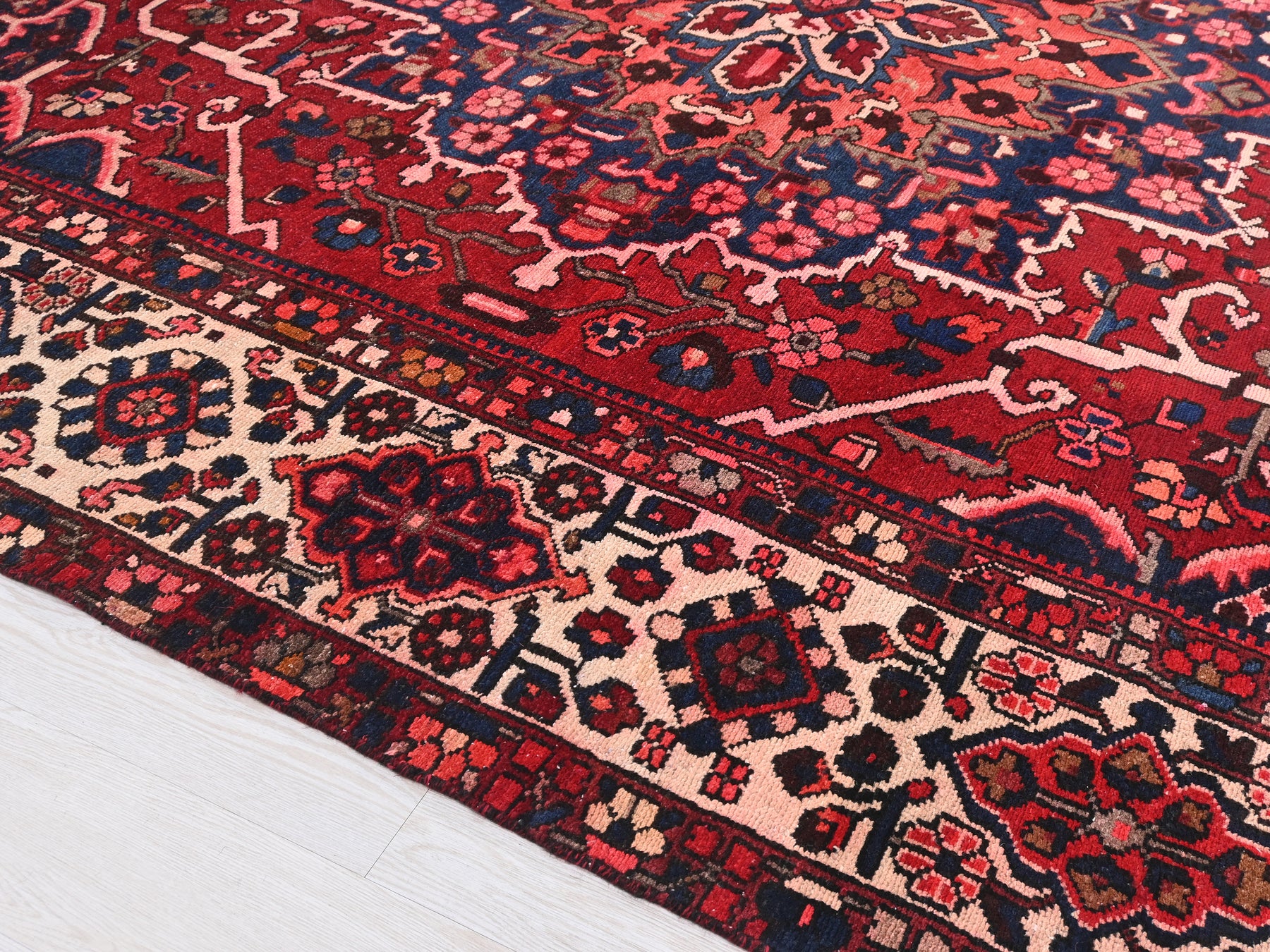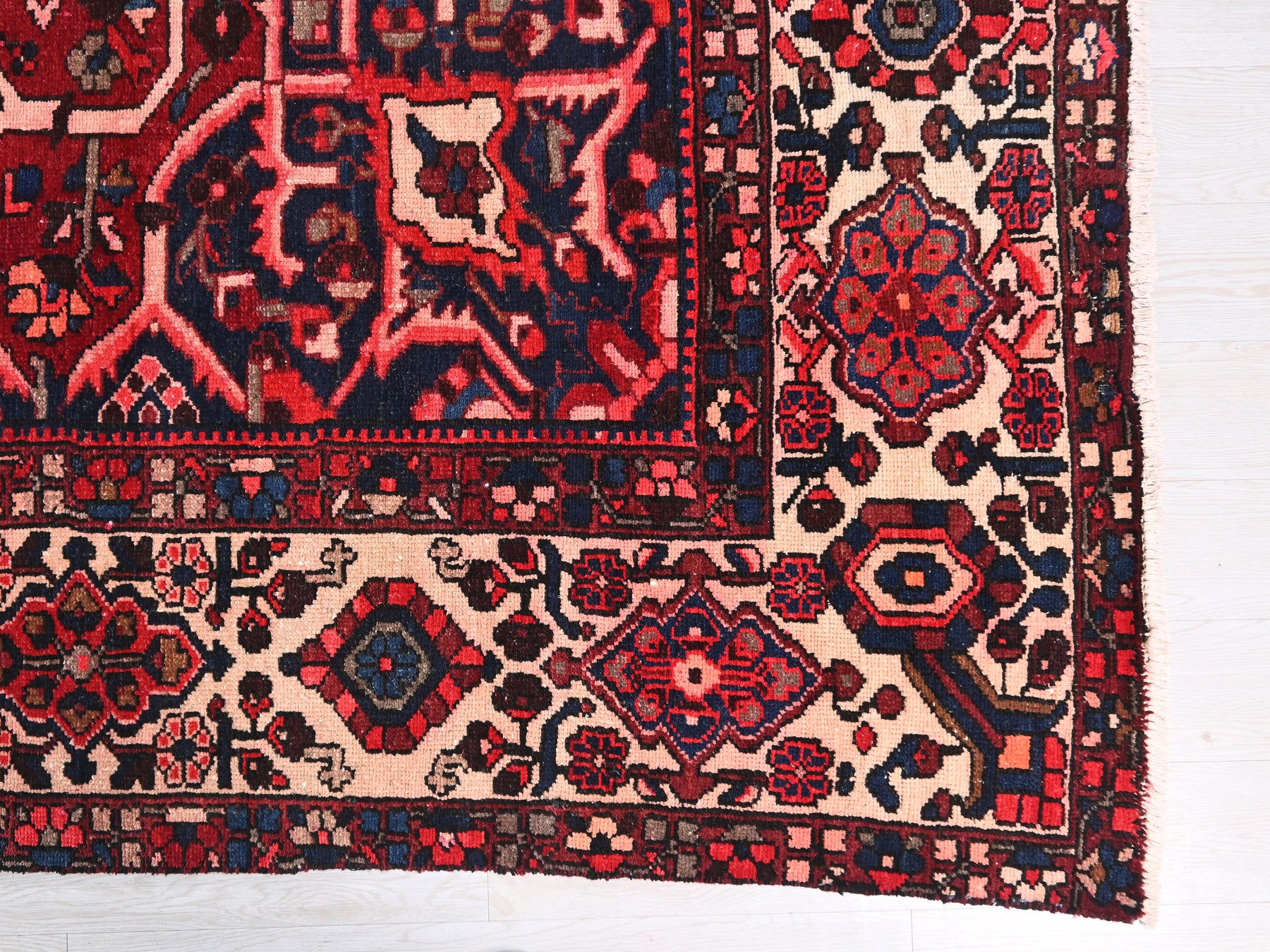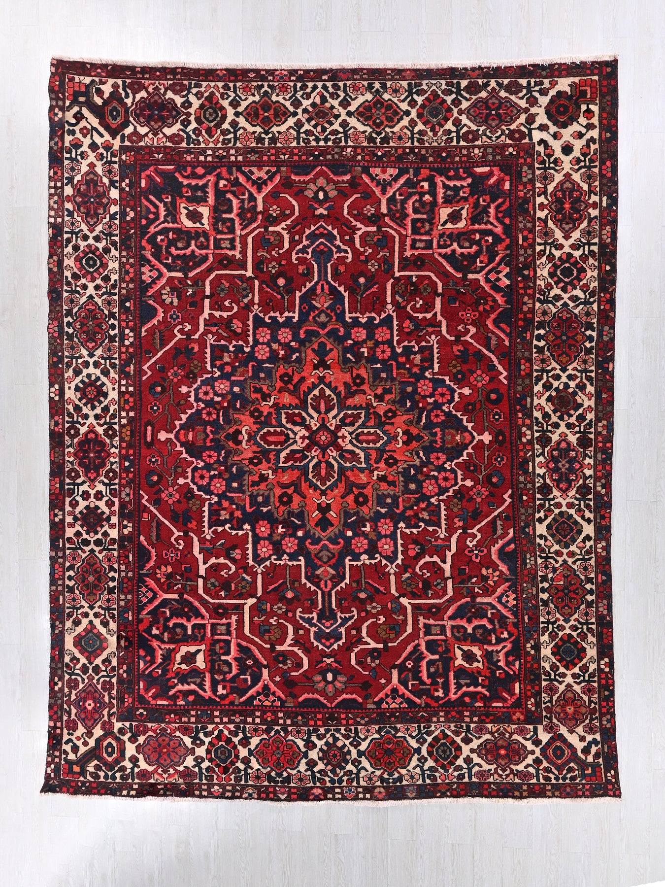 This is a hand-knotted, one-of-a-kind vintage rug. Due to the nature of this piece, there may be slight imperfections in its wear, shape, dimensions, and color. All of our rugs are professionally cleaned and repaired.