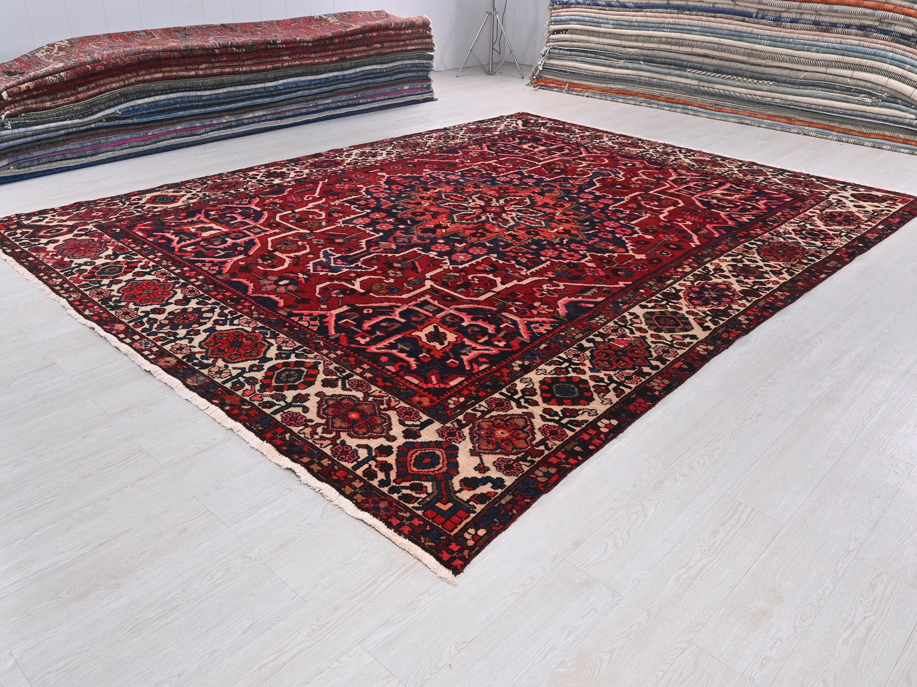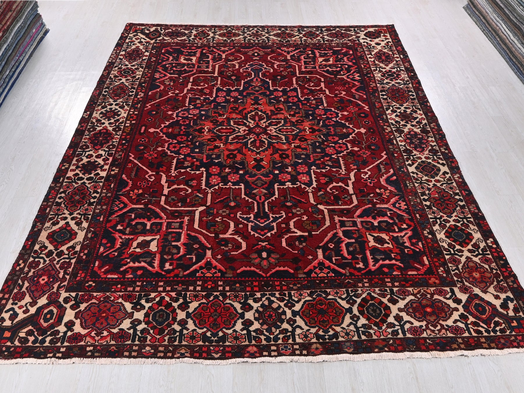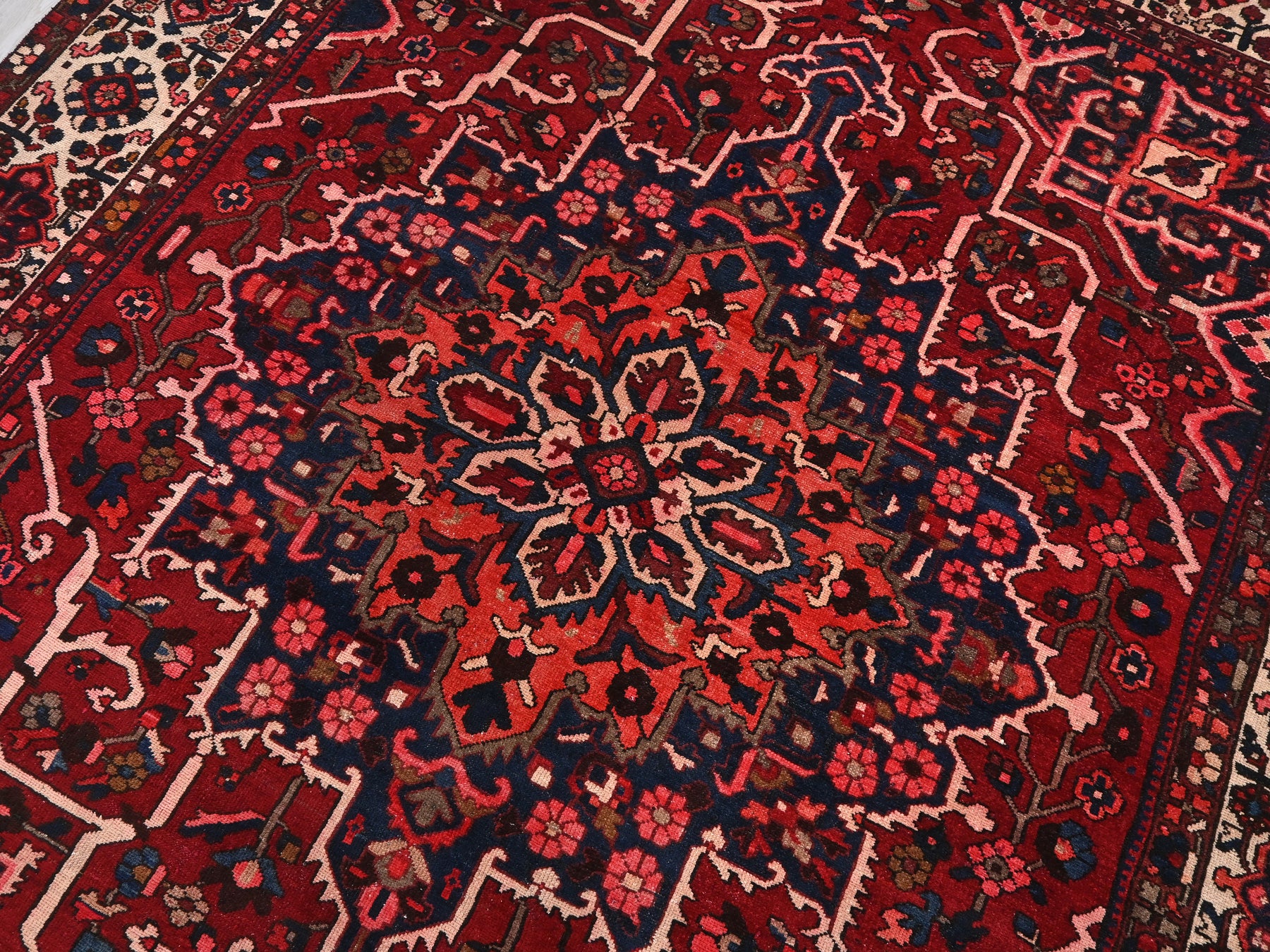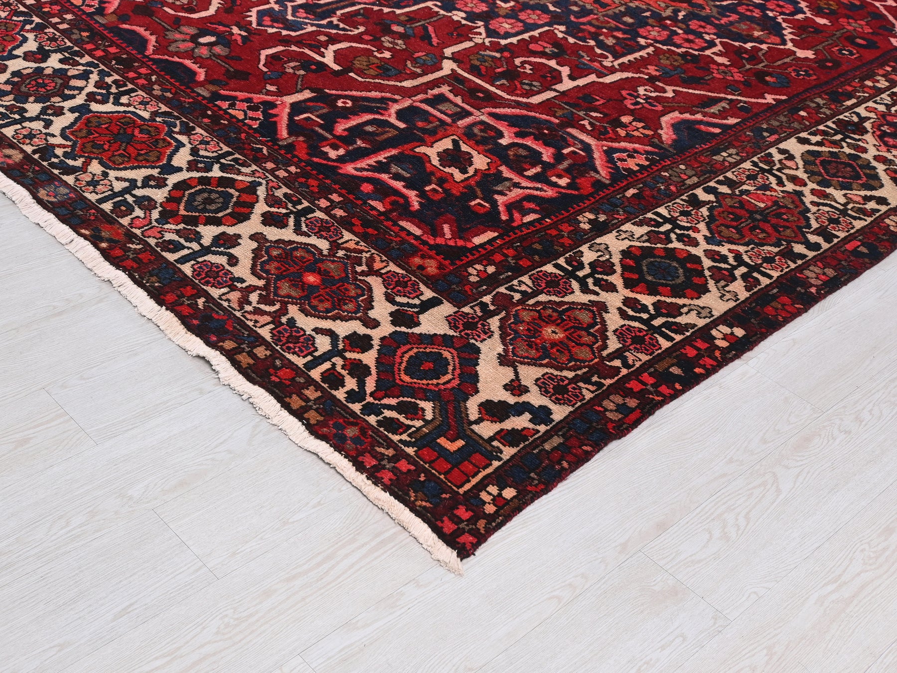 This is a hand-knotted, one-of-a-kind vintage rug. Due to the nature of this piece, there may be slight imperfections in its wear, shape, dimensions, and color. All of our rugs are professionally cleaned and repaired.