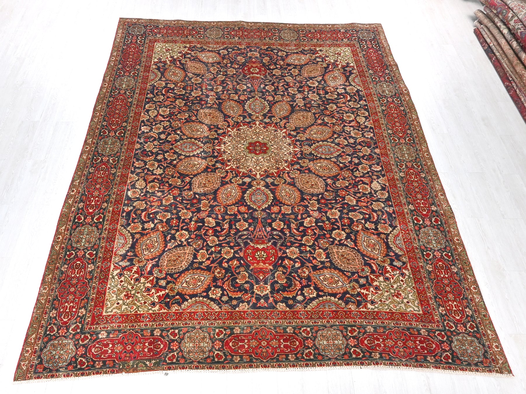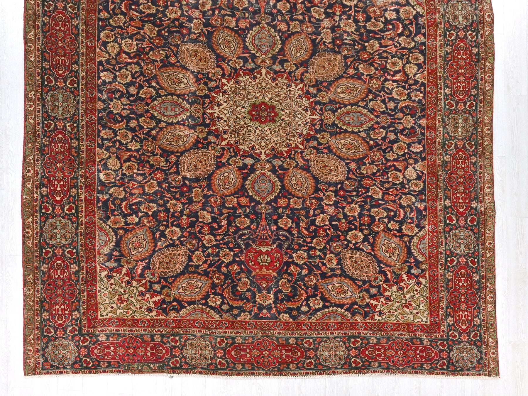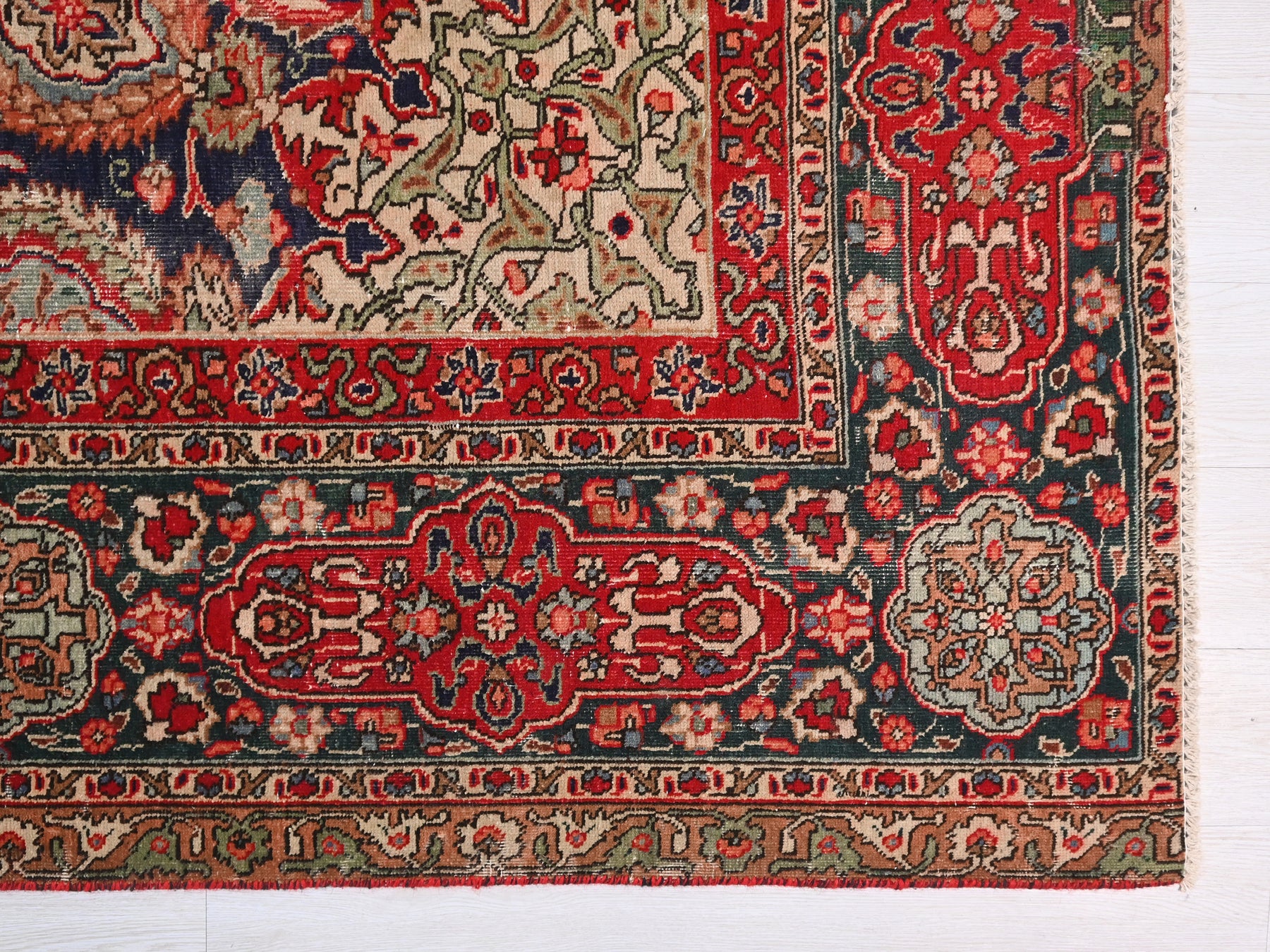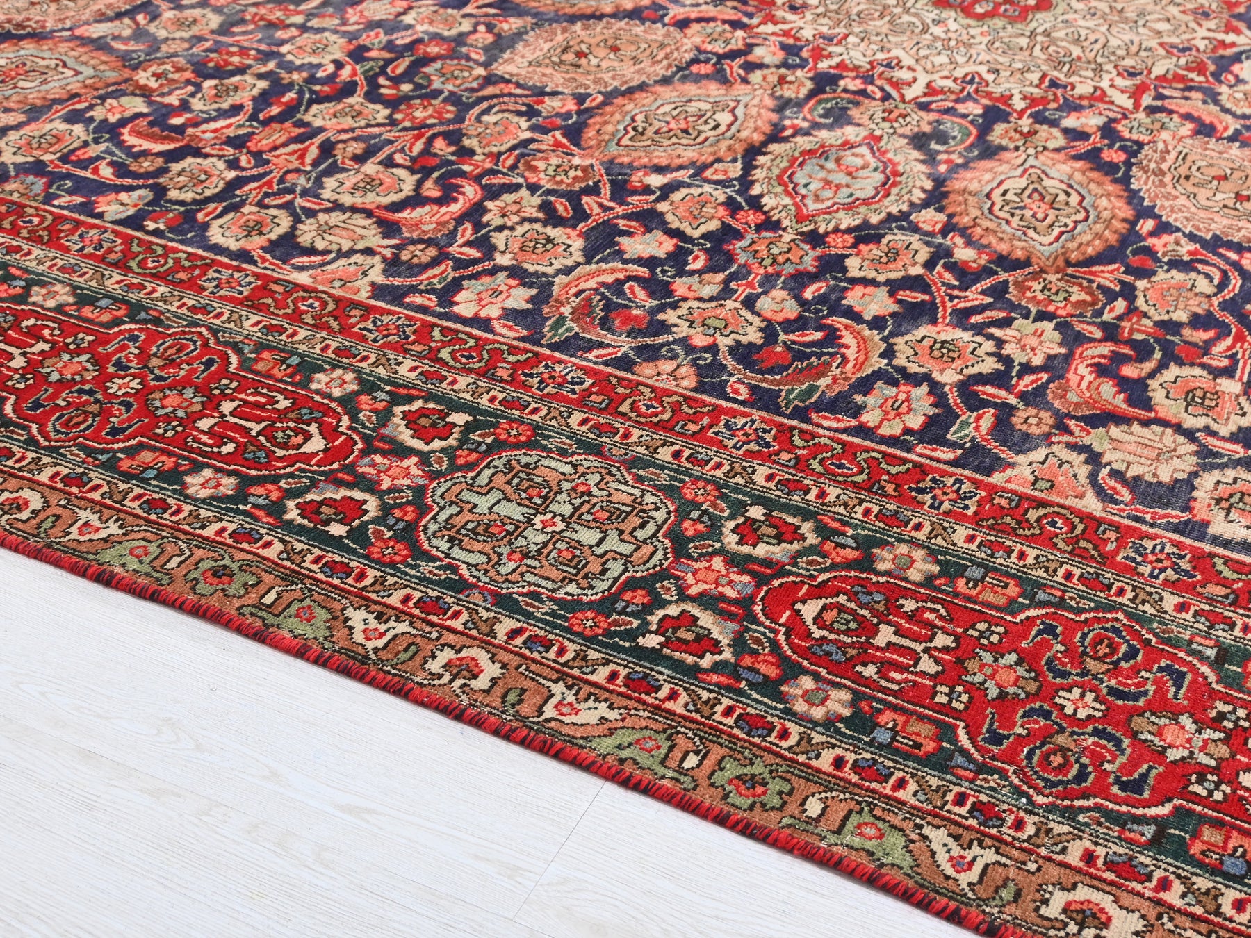 This is a hand-knotted, one-of-a-kind vintage rug. Due to the nature of this piece, there may be slight imperfections in its wear, shape, dimensions, and color. All of our rugs are professionally cleaned and repaired.