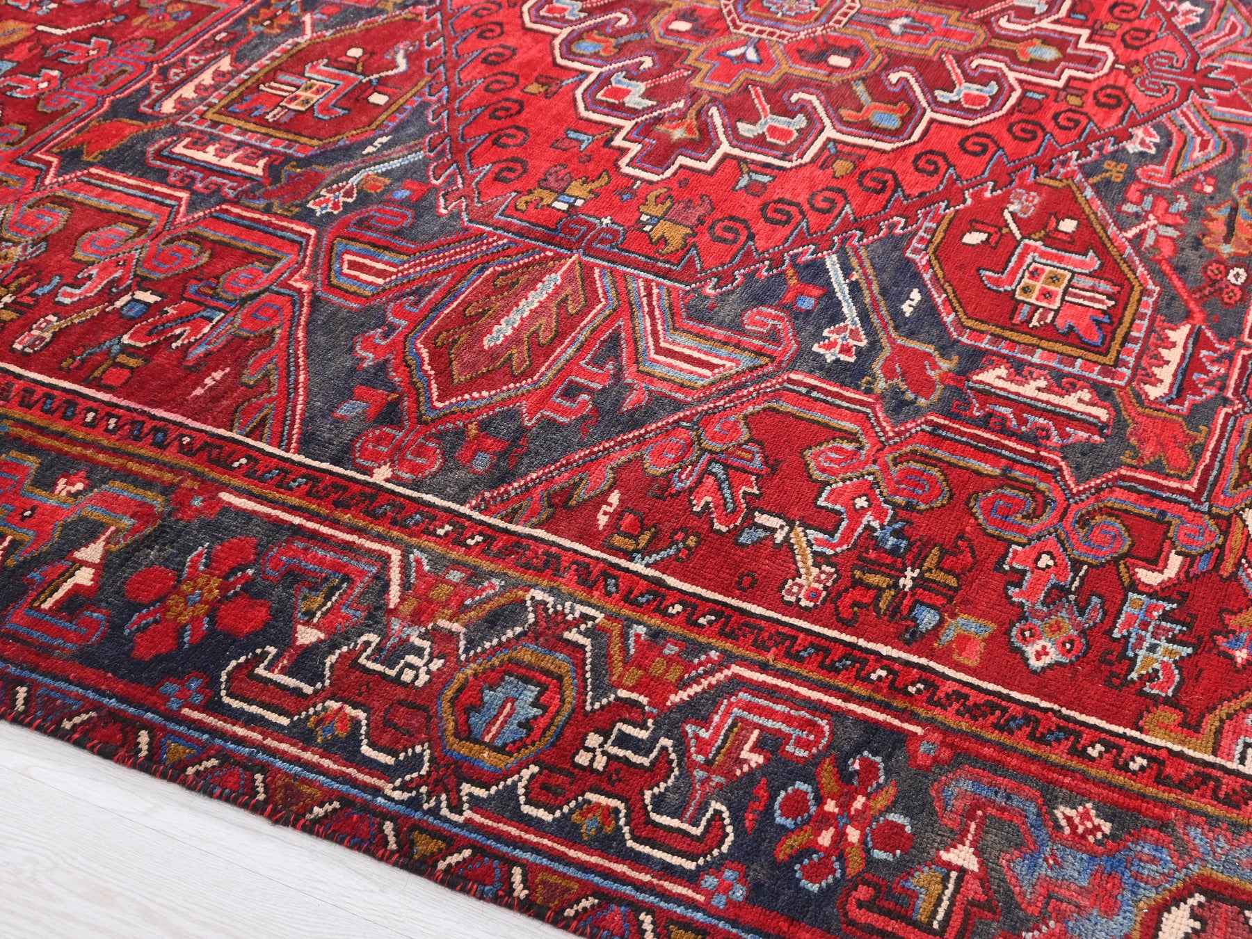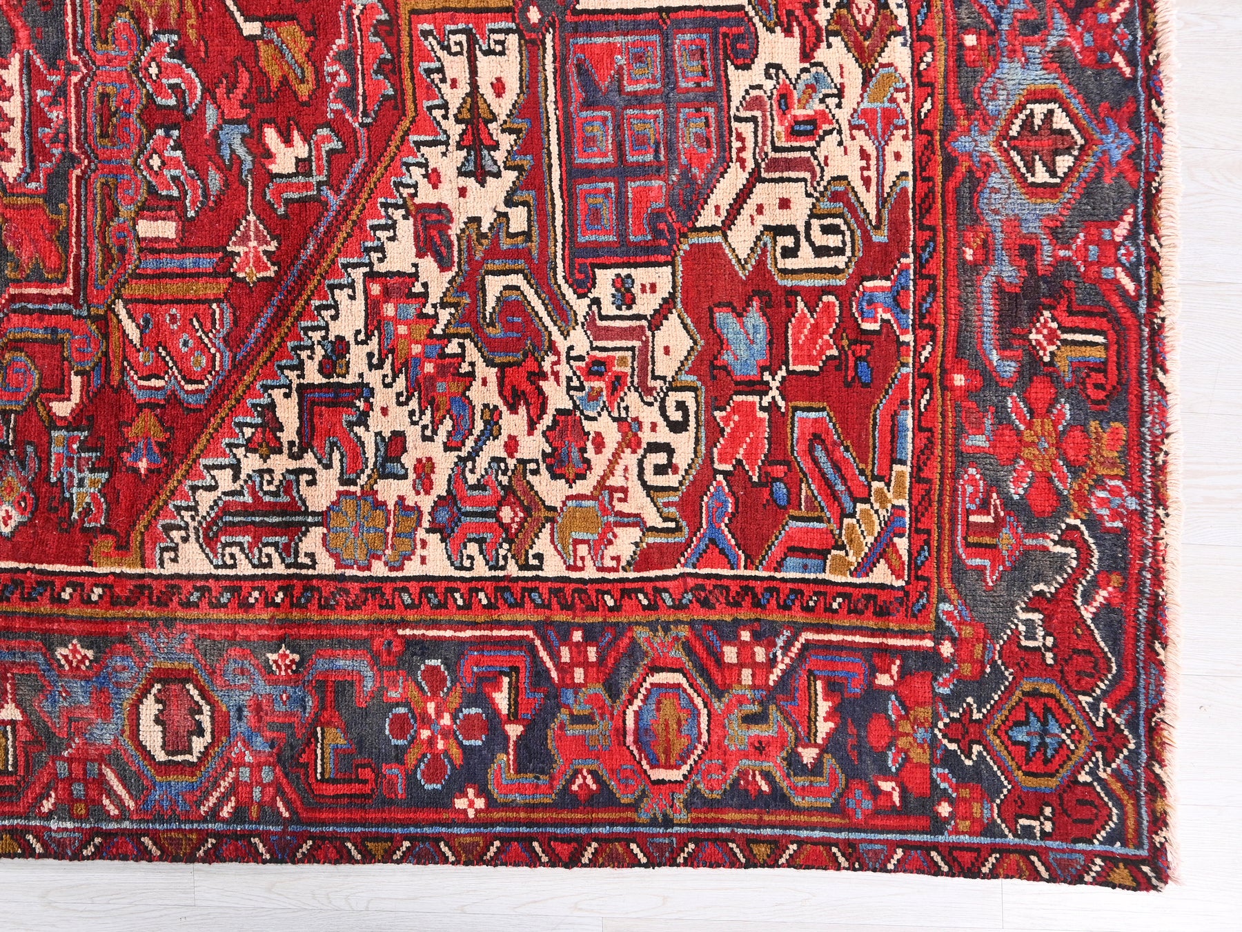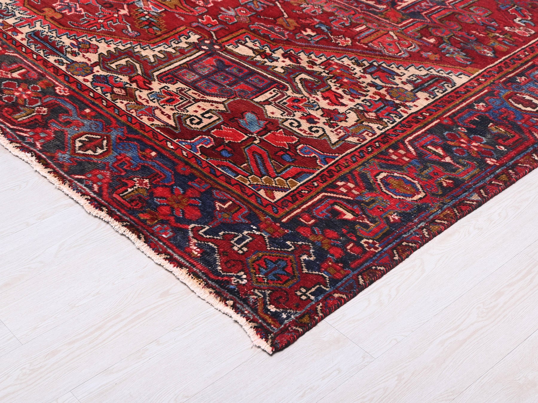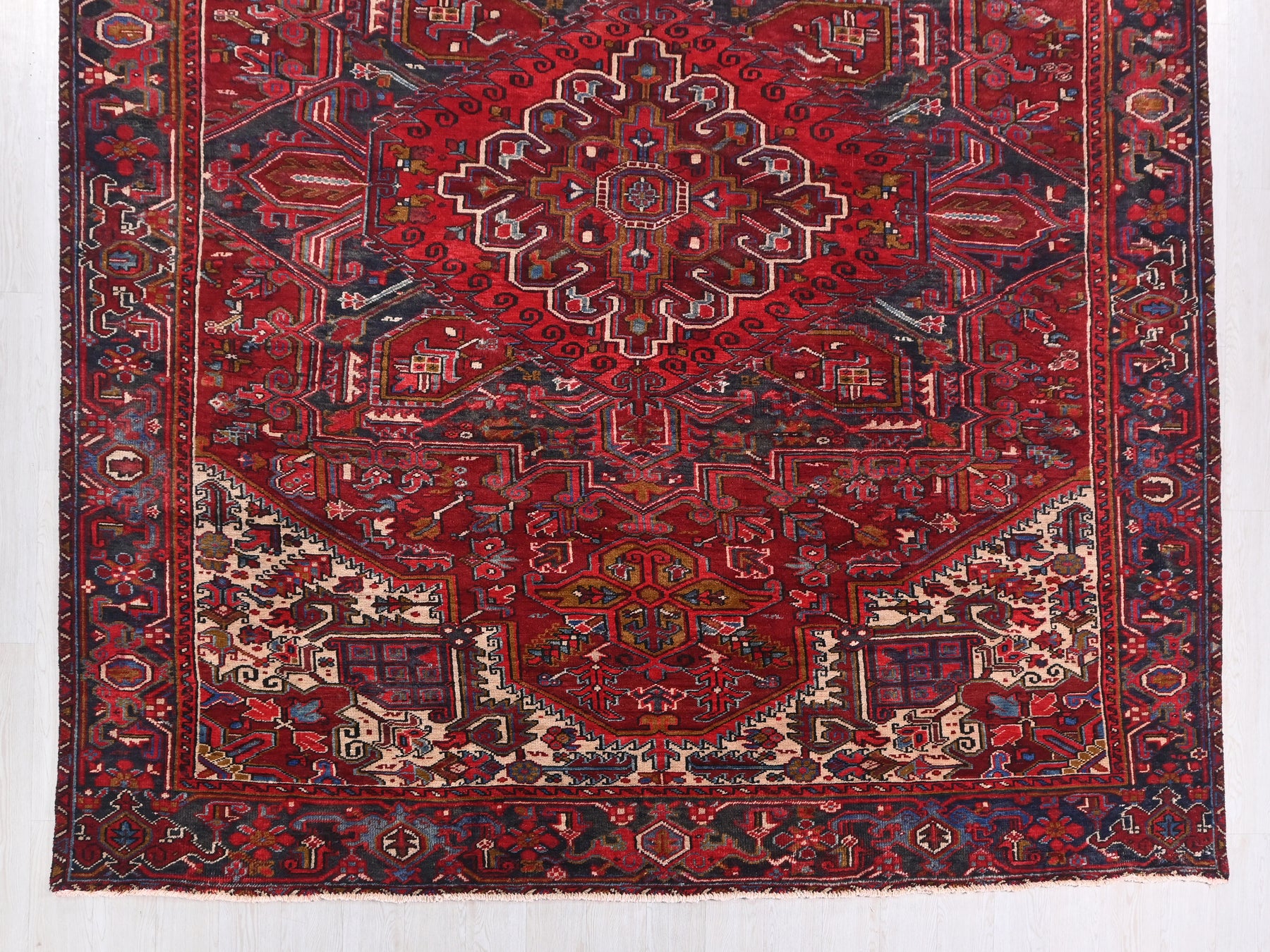 This is a hand-knotted, one-of-a-kind vintage rug. Due to the nature of this piece, there may be slight imperfections in its wear, shape, dimensions, and color. All of our rugs are professionally cleaned and repaired.