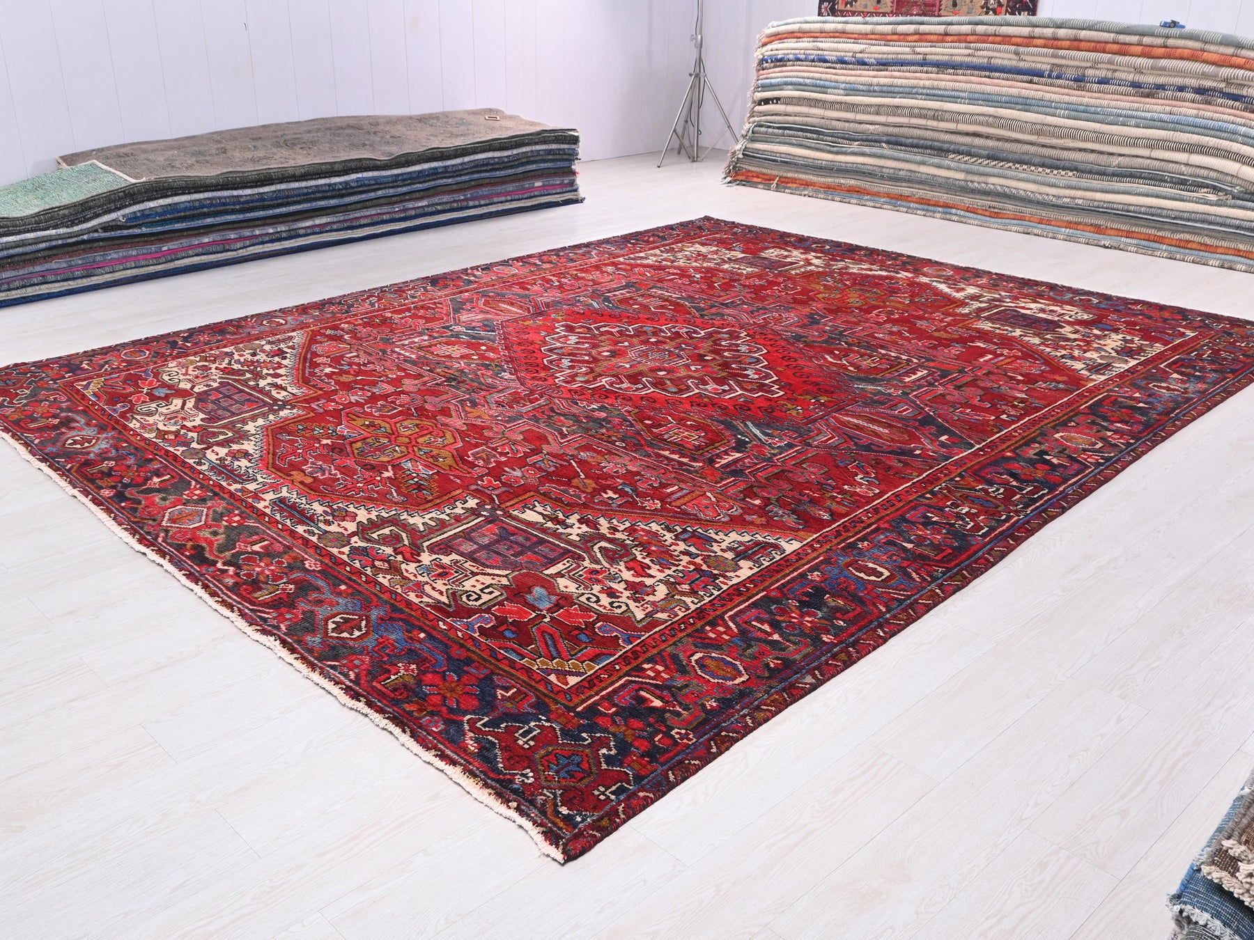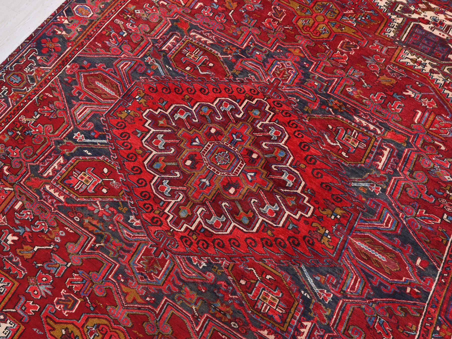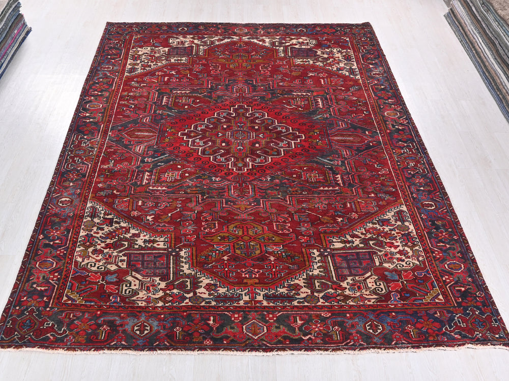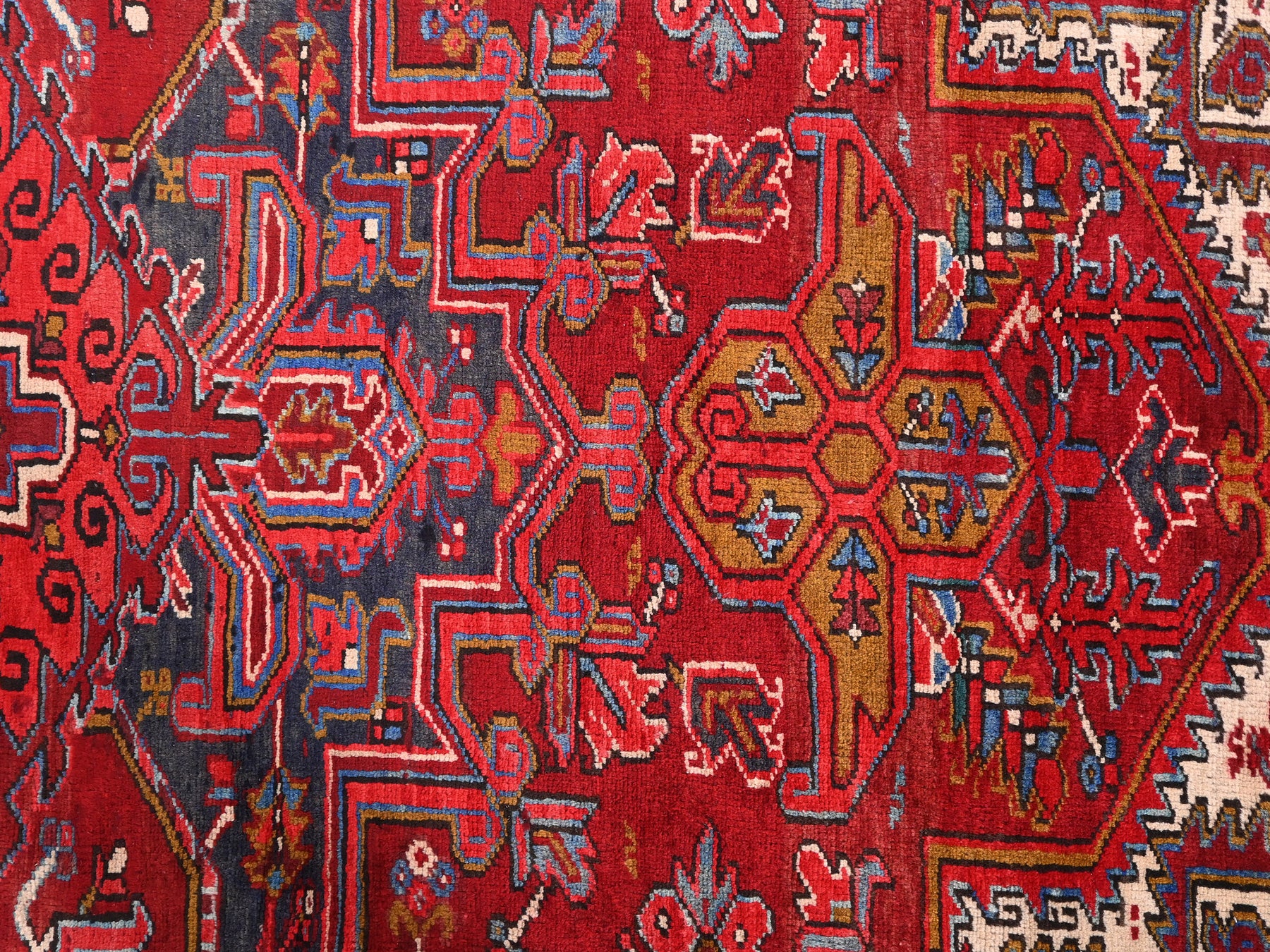 This is a hand-knotted, one-of-a-kind vintage rug. Due to the nature of this piece, there may be slight imperfections in its wear, shape, dimensions, and color. All of our rugs are professionally cleaned and repaired.