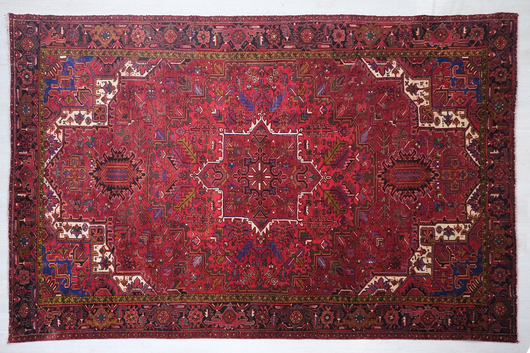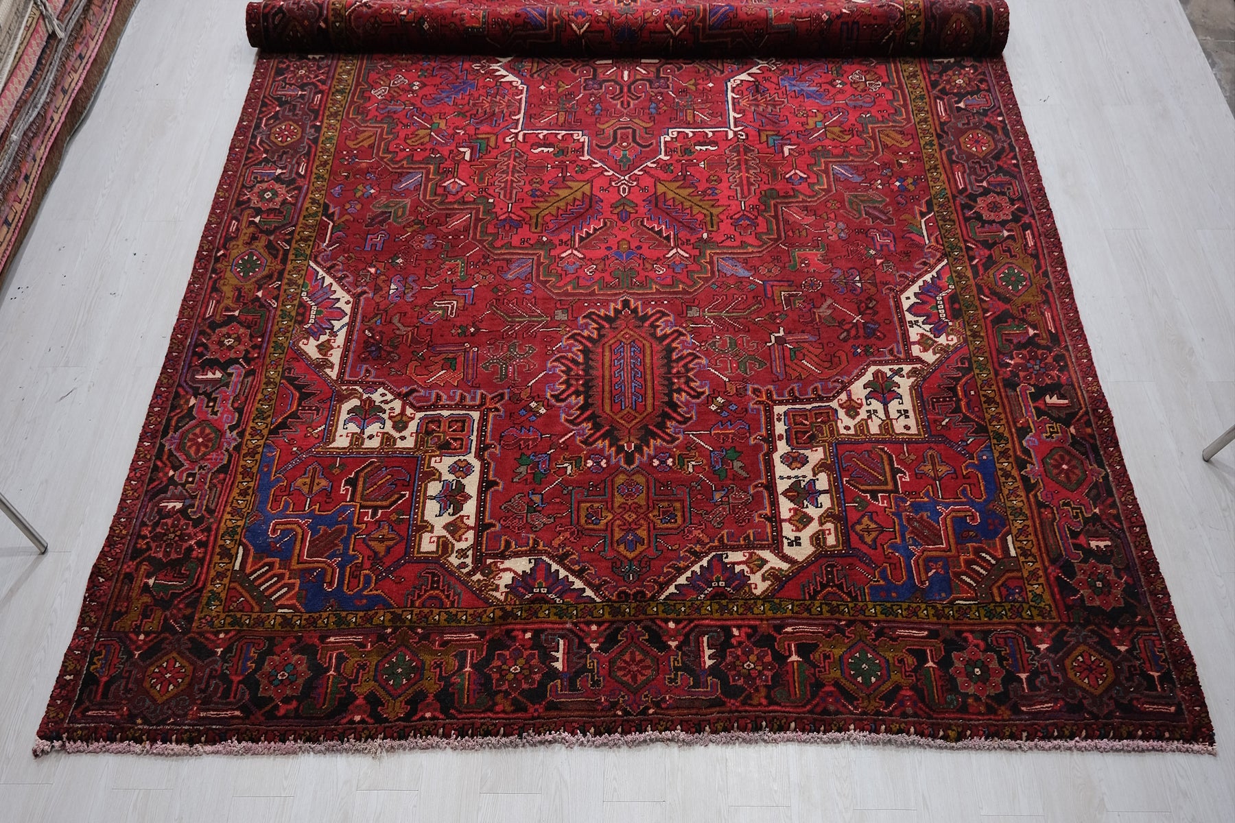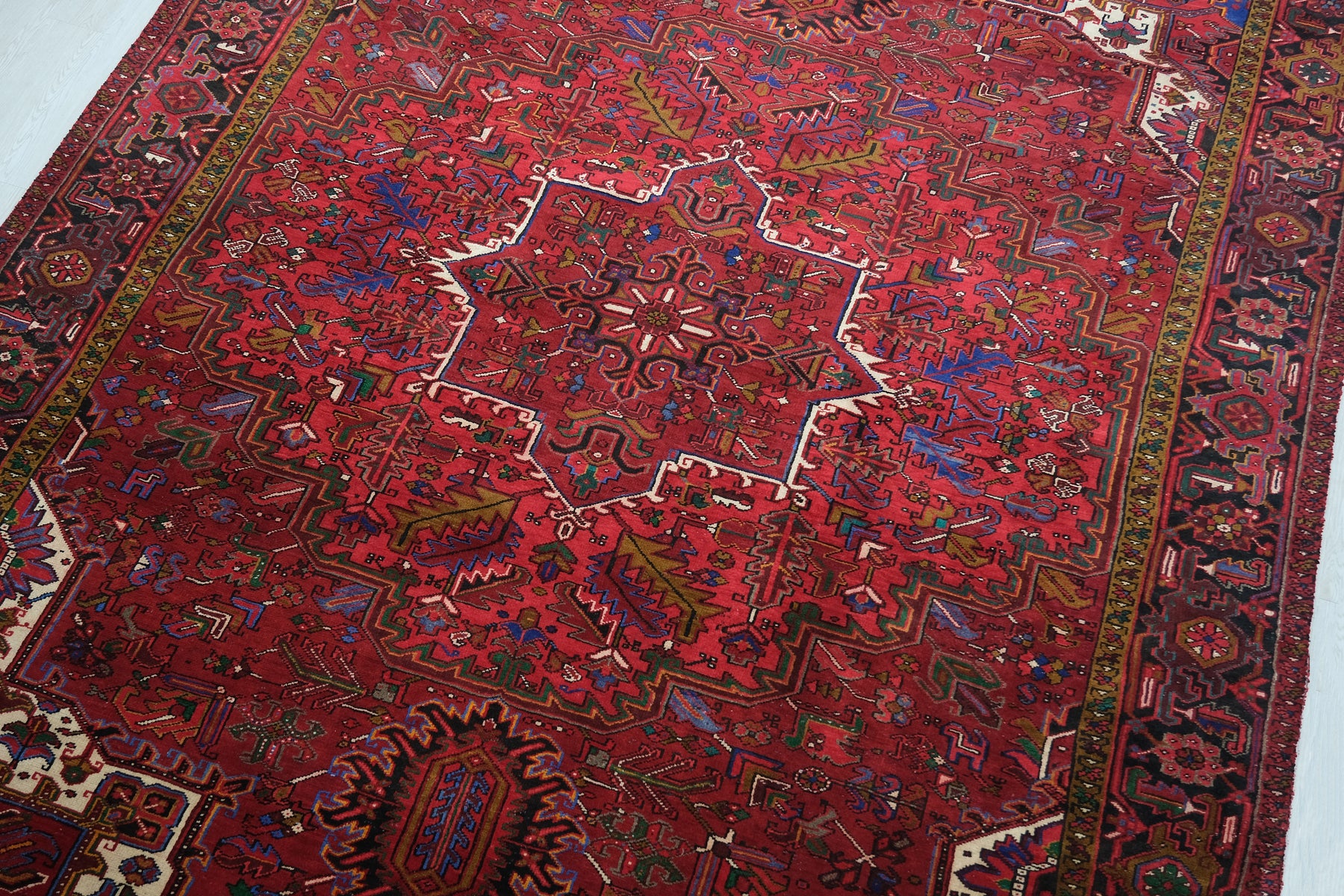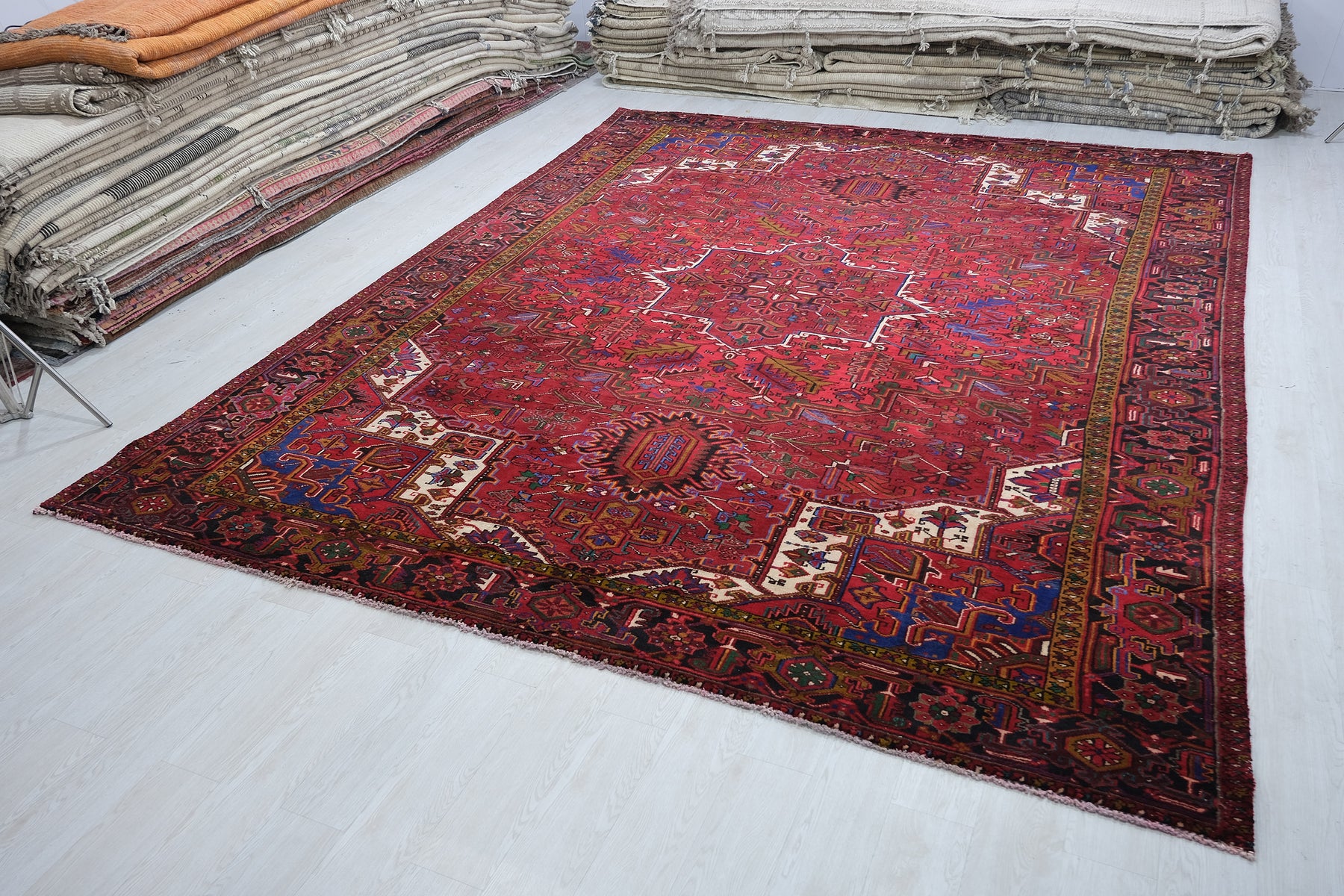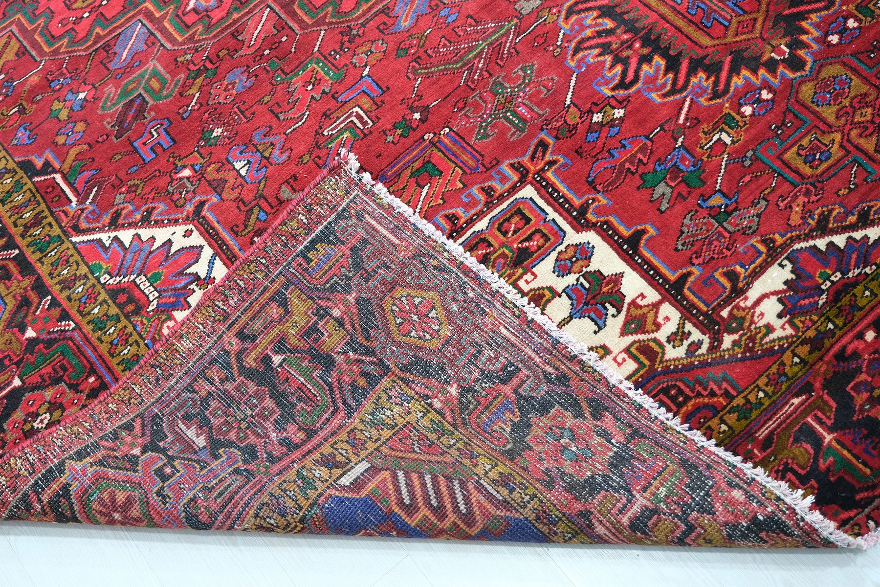 This is a hand-knotted, one-of-a-kind vintage rug. Due to the nature of this piece, there may be slight imperfections in its wear, shape, dimensions, and color. All of our rugs are professionally cleaned and repaired.
