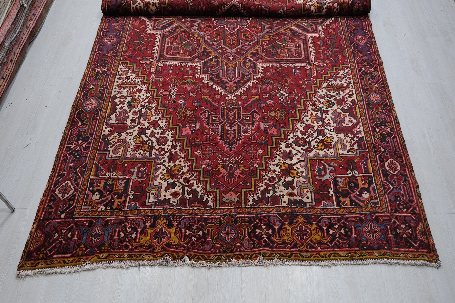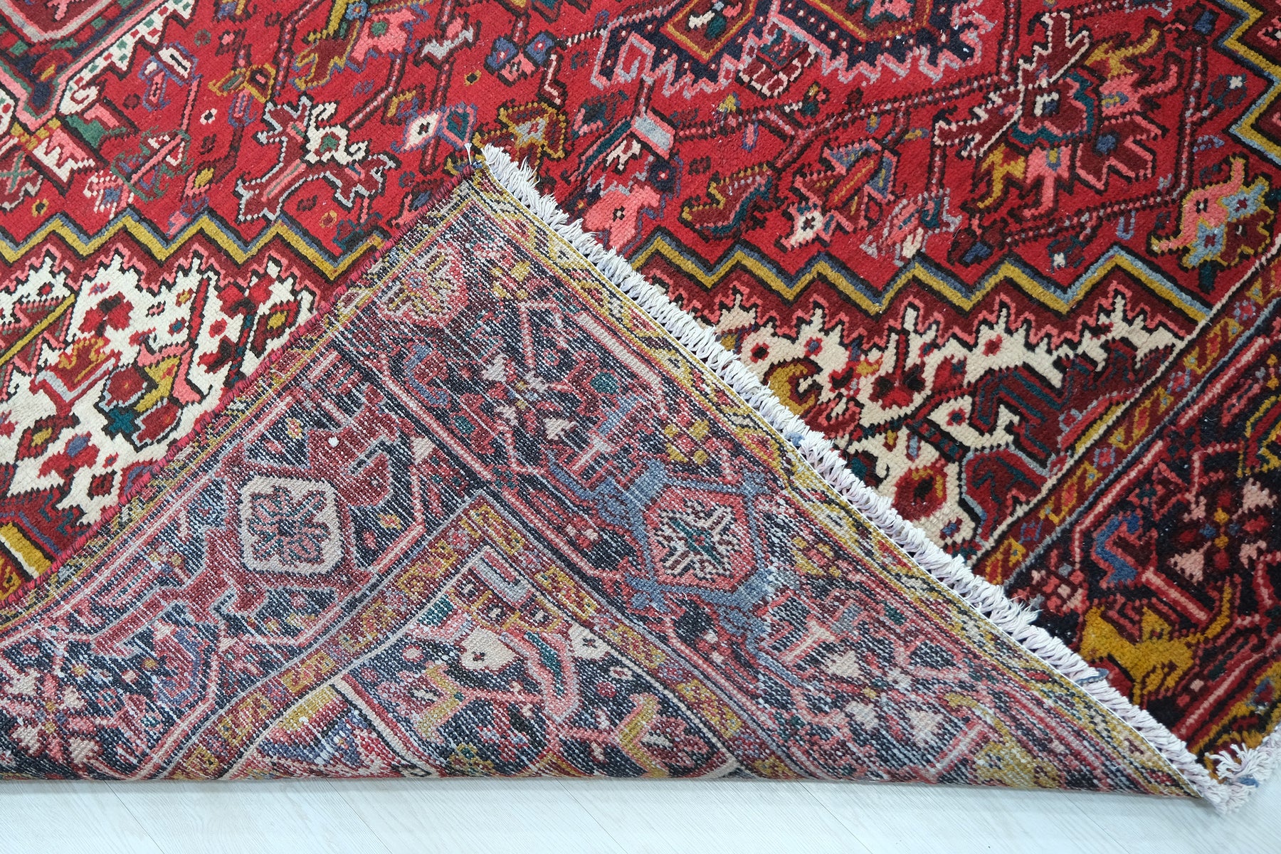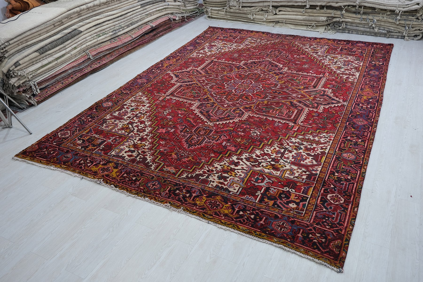 This is a hand-knotted, one-of-a-kind vintage rug. Due to the nature of this piece, there may be slight imperfections in its wear, shape, dimensions, and color. All of our rugs are professionally cleaned and repaired.
