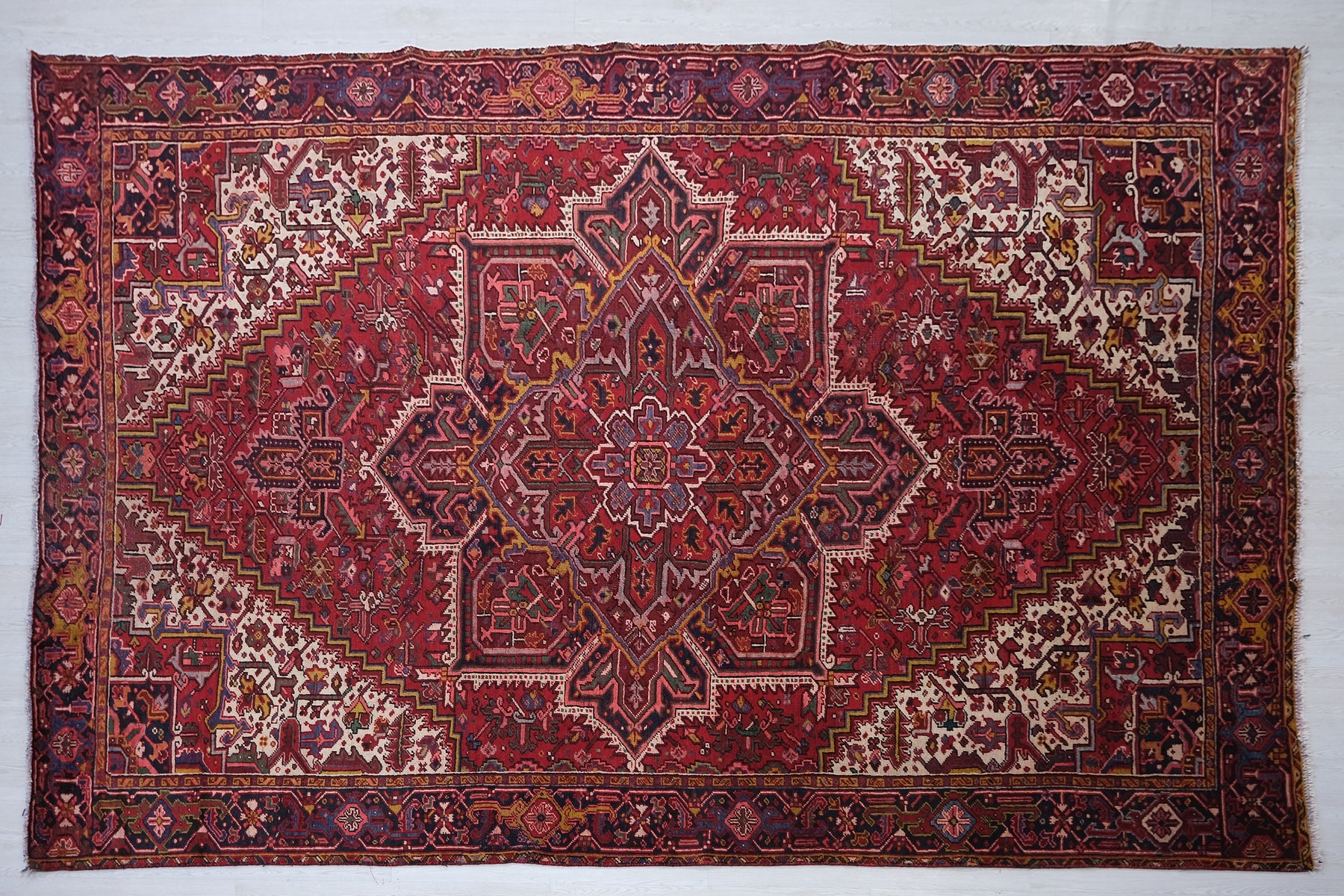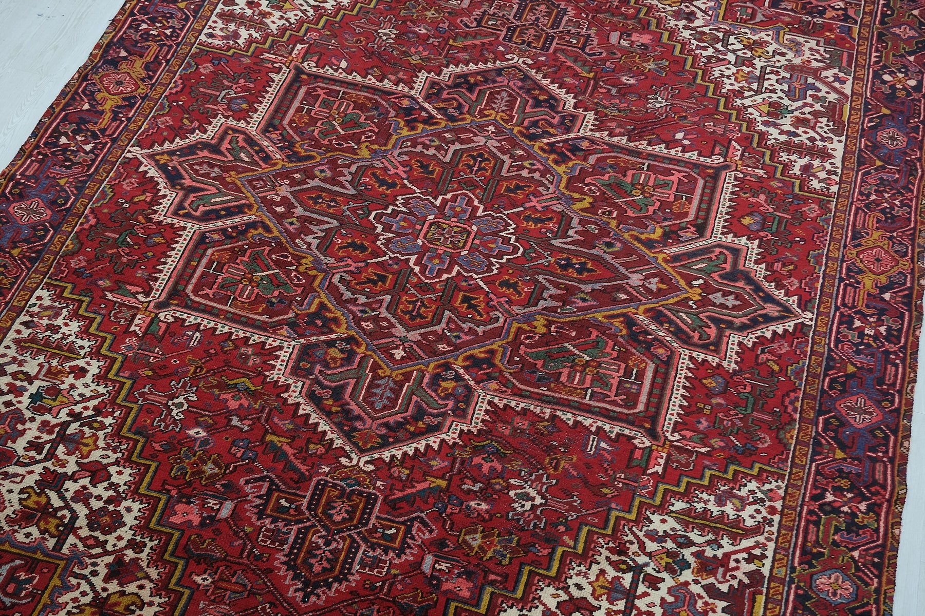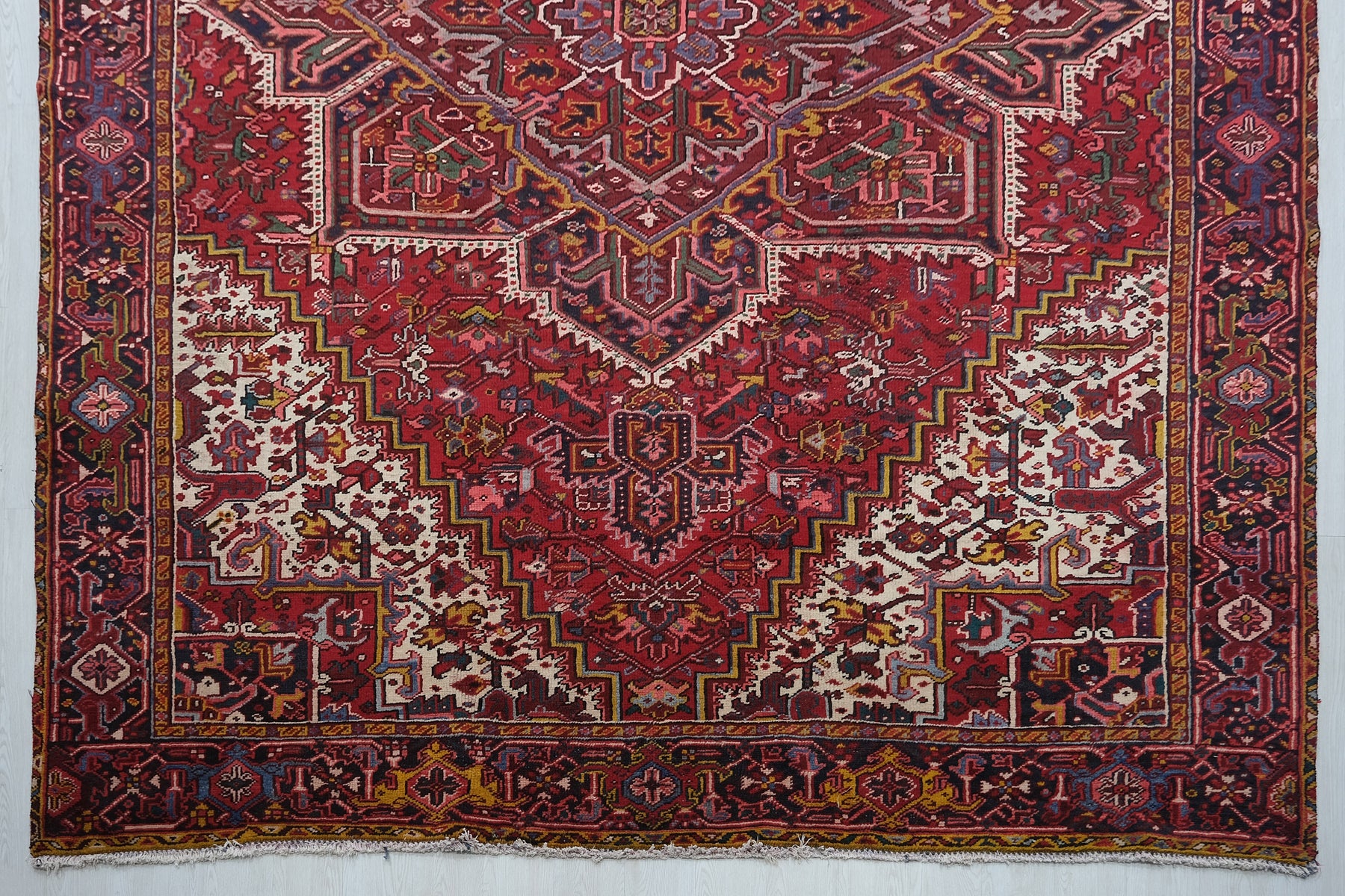 This is a hand-knotted, one-of-a-kind vintage rug. Due to the nature of this piece, there may be slight imperfections in its wear, shape, dimensions, and color. All of our rugs are professionally cleaned and repaired.