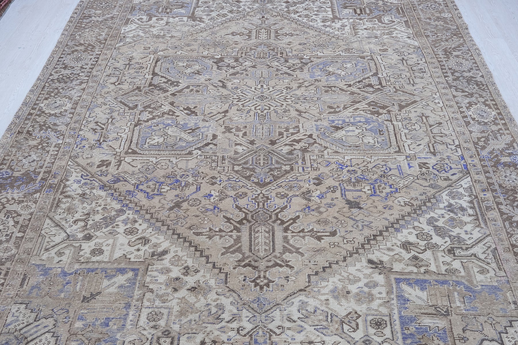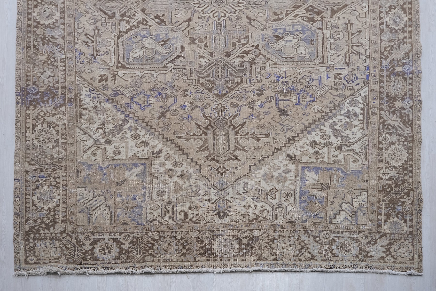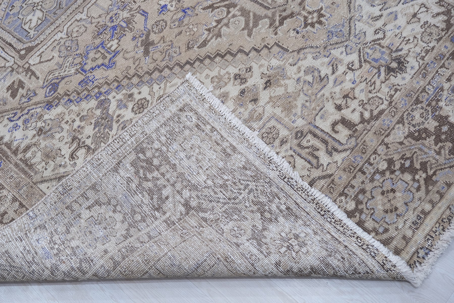 This is a hand-knotted, one-of-a-kind vintage rug. Due to the nature of this piece, there may be slight imperfections in its wear, shape, dimensions, and color. All of our rugs are professionally cleaned and repaired.