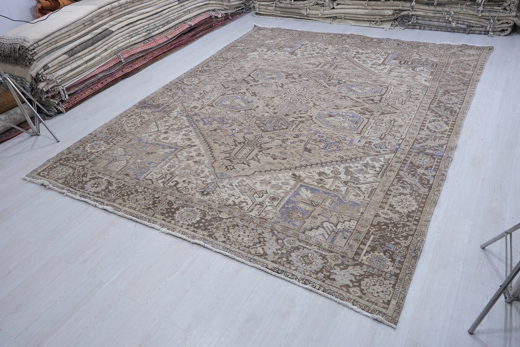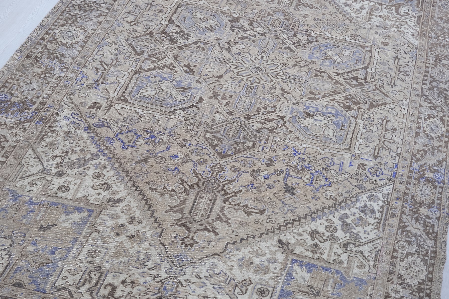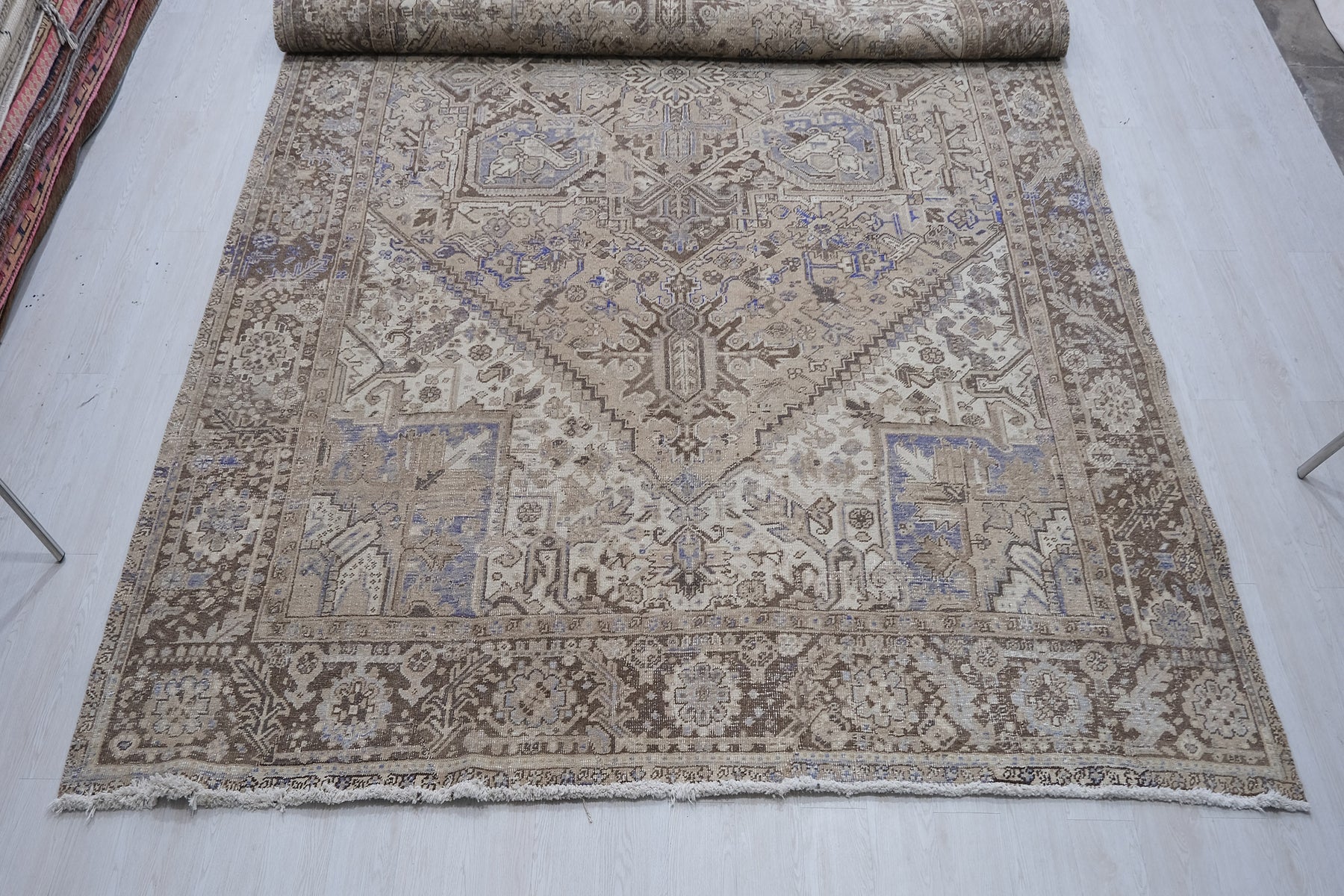 This is a hand-knotted, one-of-a-kind vintage rug. Due to the nature of this piece, there may be slight imperfections in its wear, shape, dimensions, and color. All of our rugs are professionally cleaned and repaired.