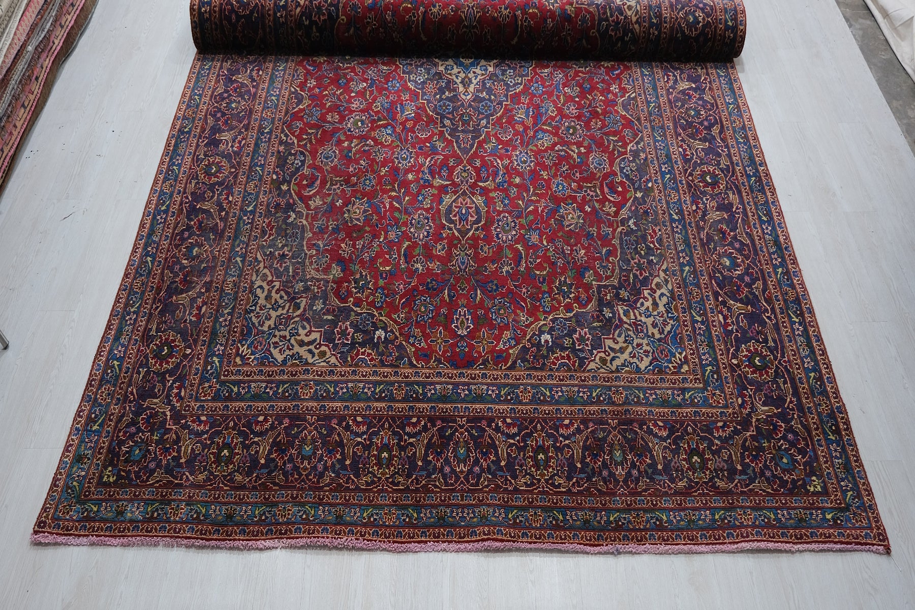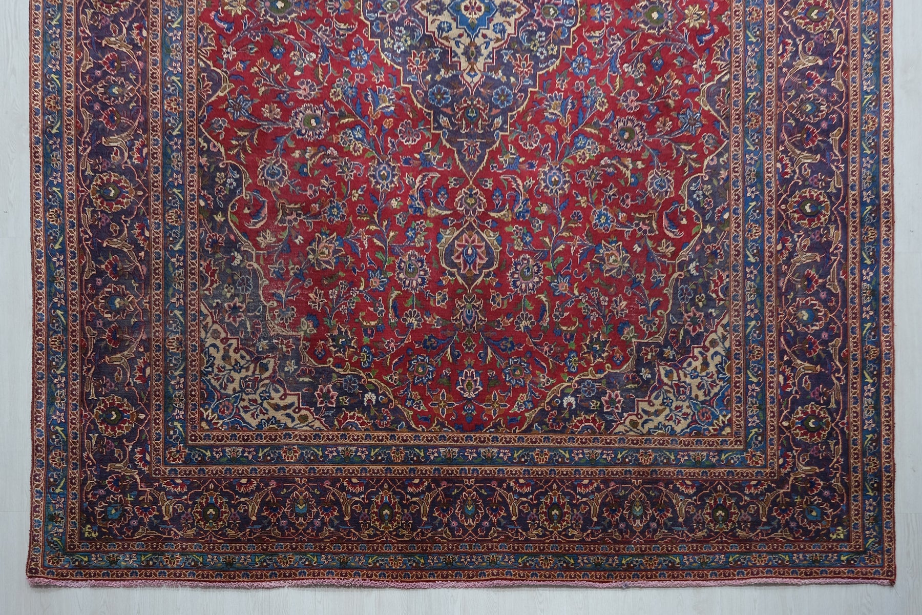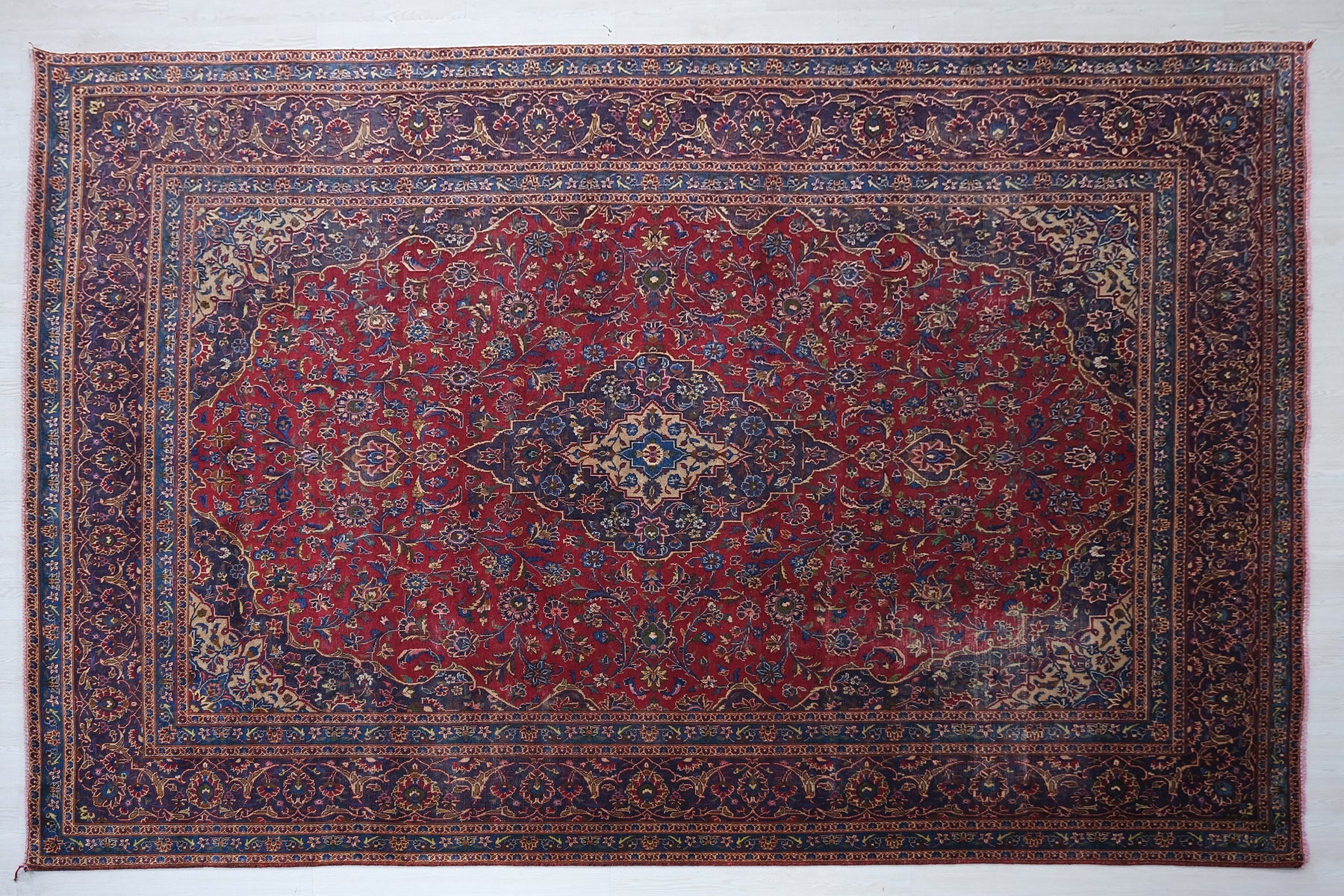 This is a hand-knotted, one-of-a-kind vintage rug. Due to the nature of this piece, there may be slight imperfections in its wear, shape, dimensions, and color. All of our rugs are professionally cleaned and repaired.