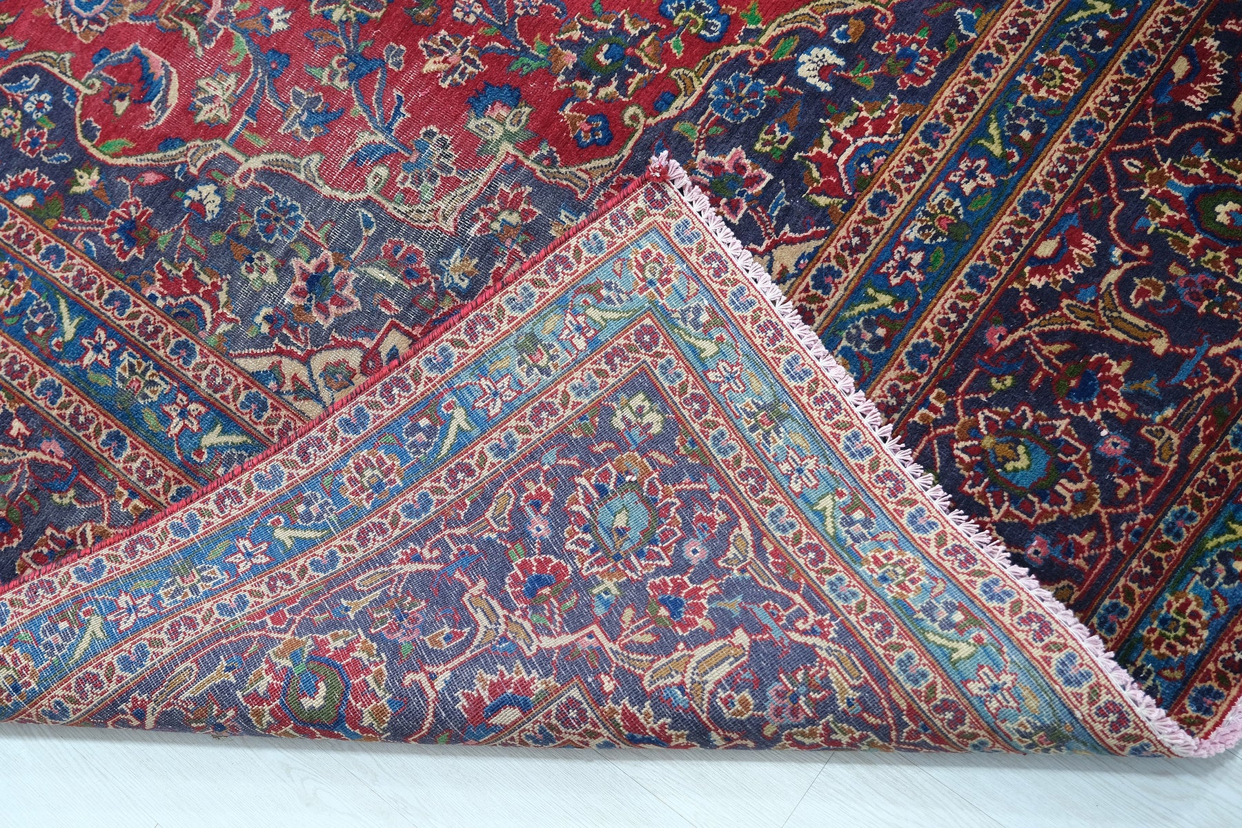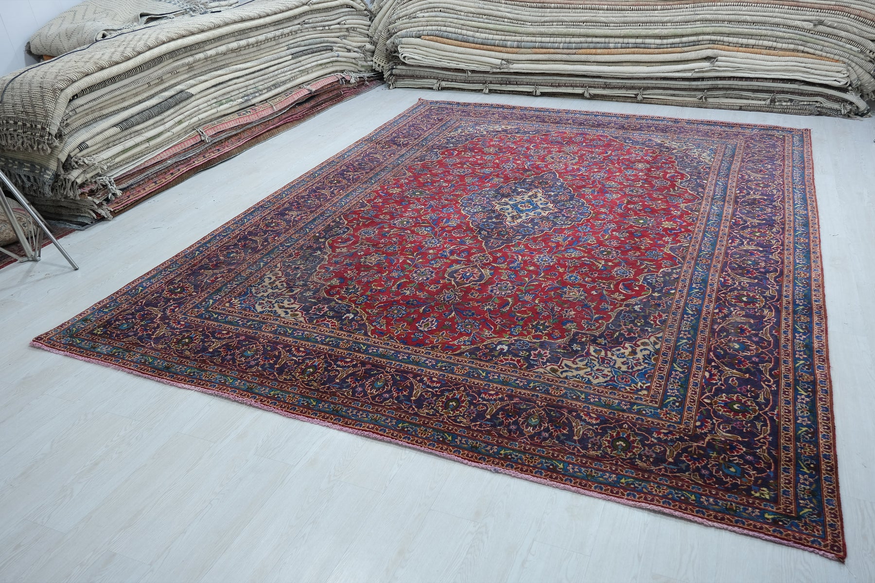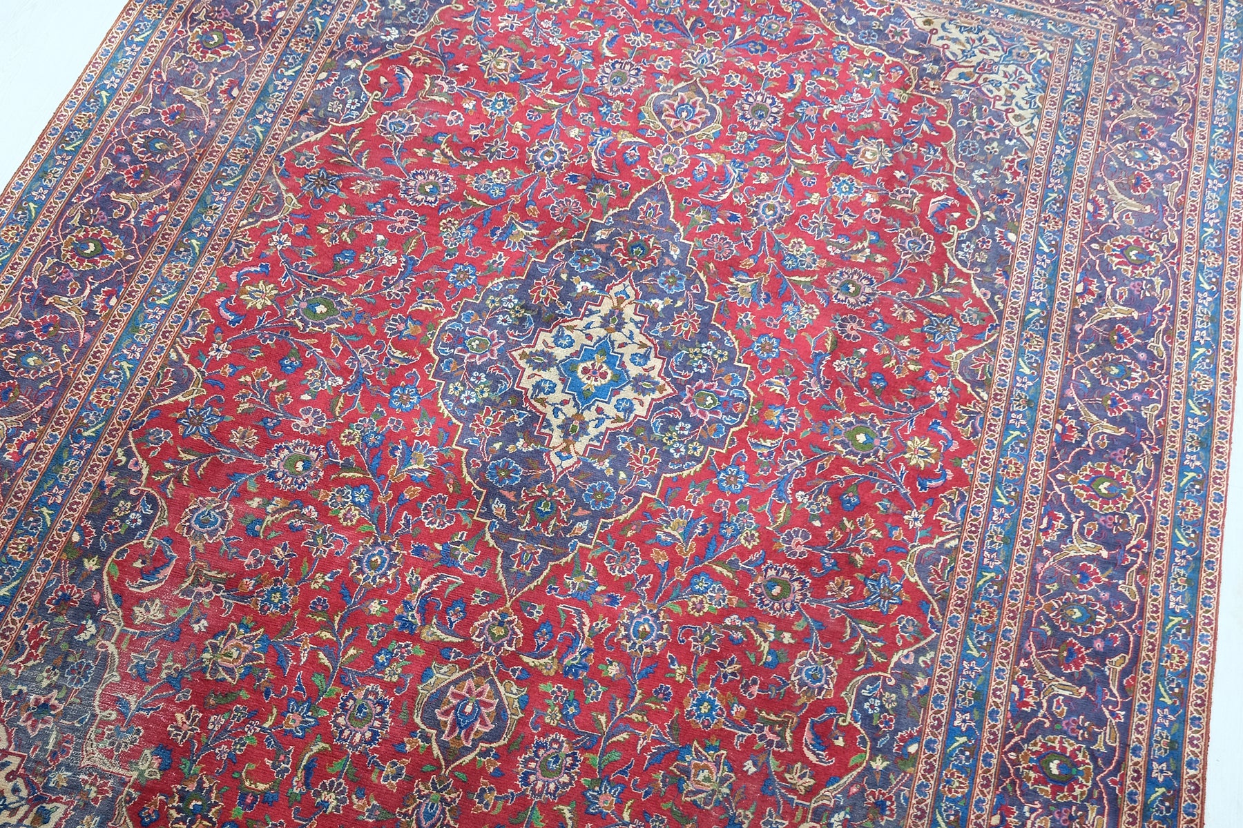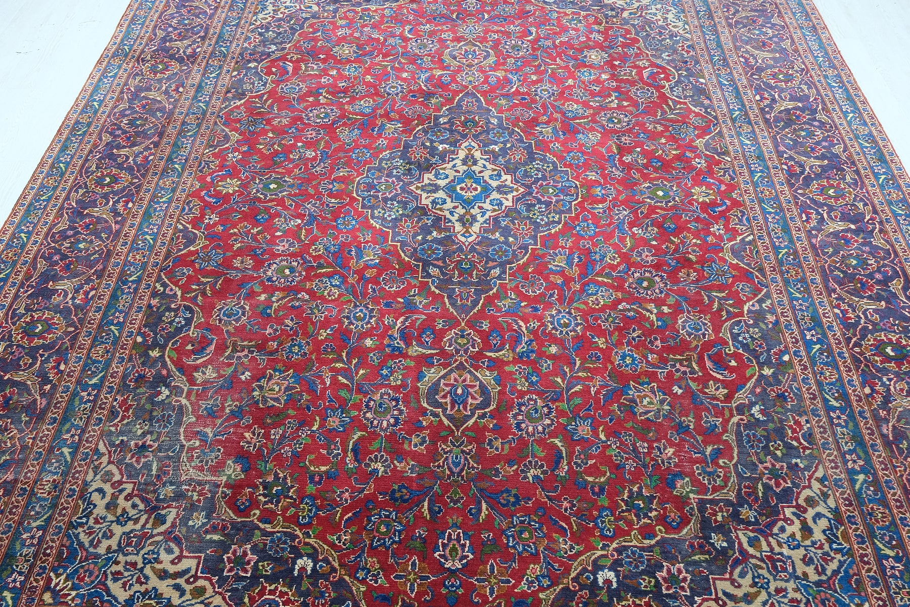 This is a hand-knotted, one-of-a-kind vintage rug. Due to the nature of this piece, there may be slight imperfections in its wear, shape, dimensions, and color. All of our rugs are professionally cleaned and repaired.