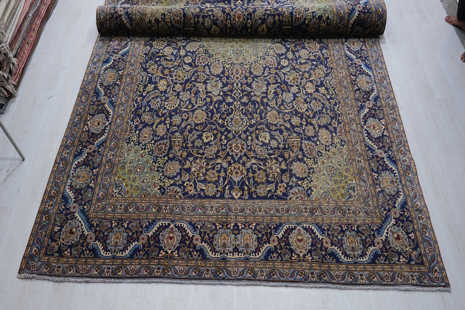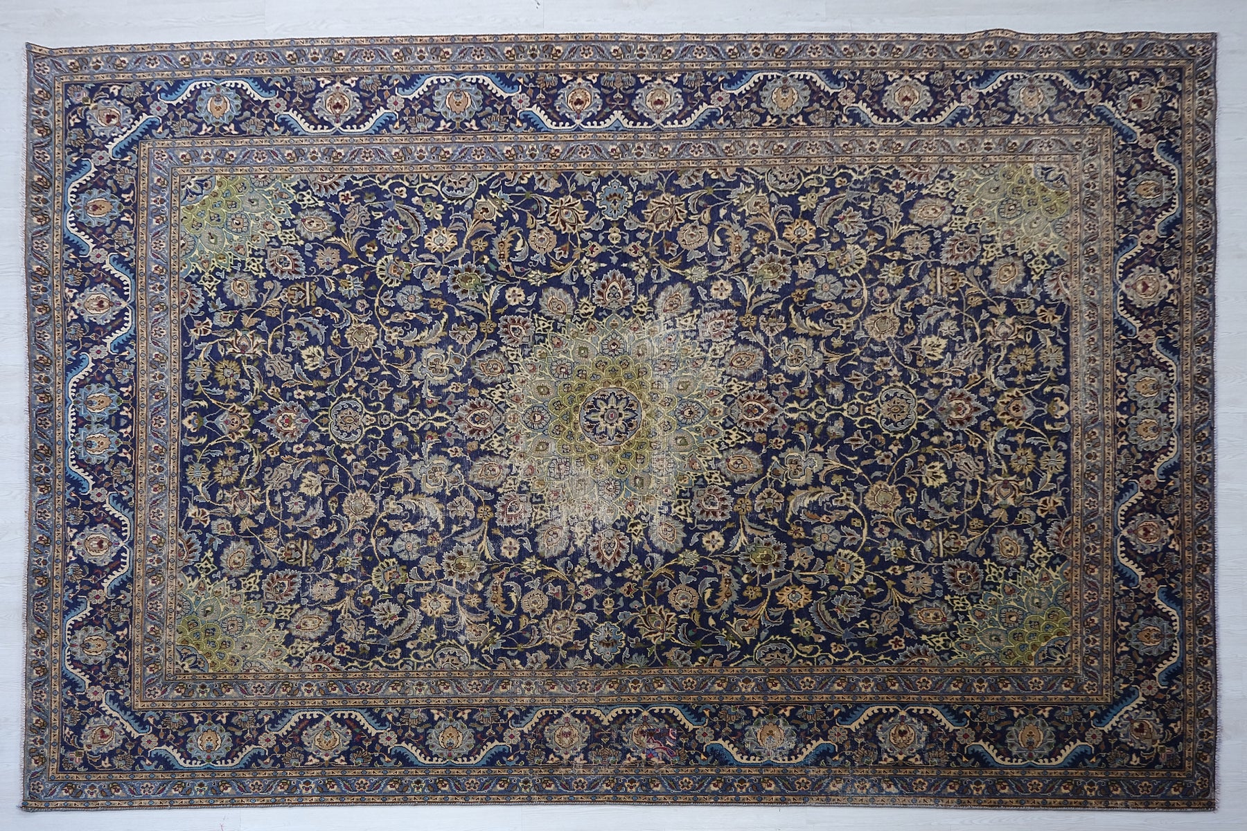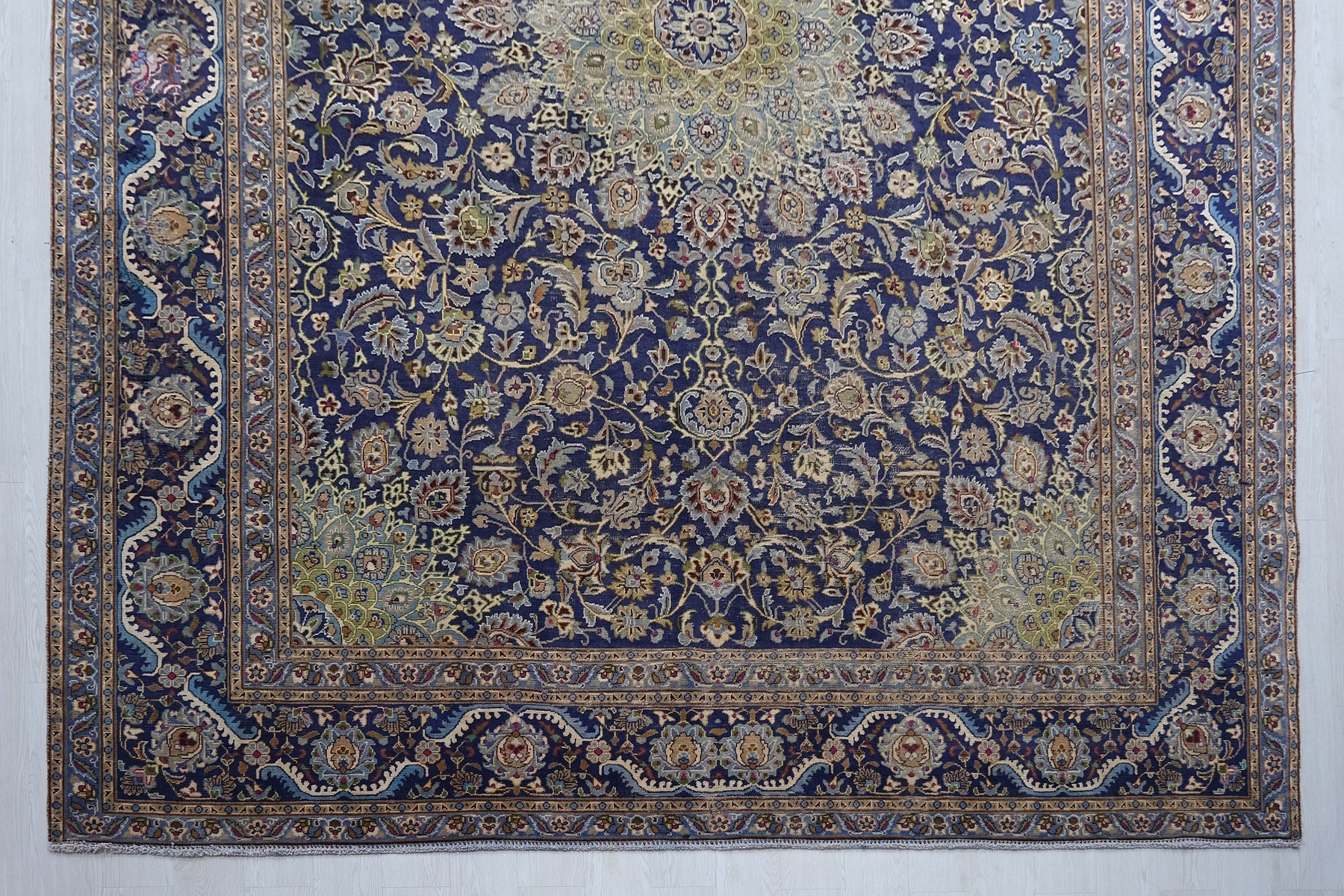 This is a hand-knotted, one-of-a-kind vintage rug. Due to the nature of this piece, there may be slight imperfections in its wear, shape, dimensions, and color. All of our rugs are professionally cleaned and repaired.