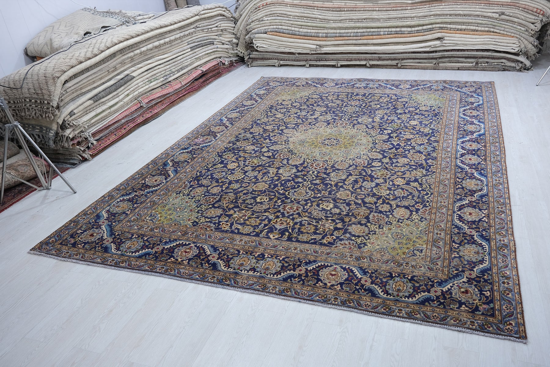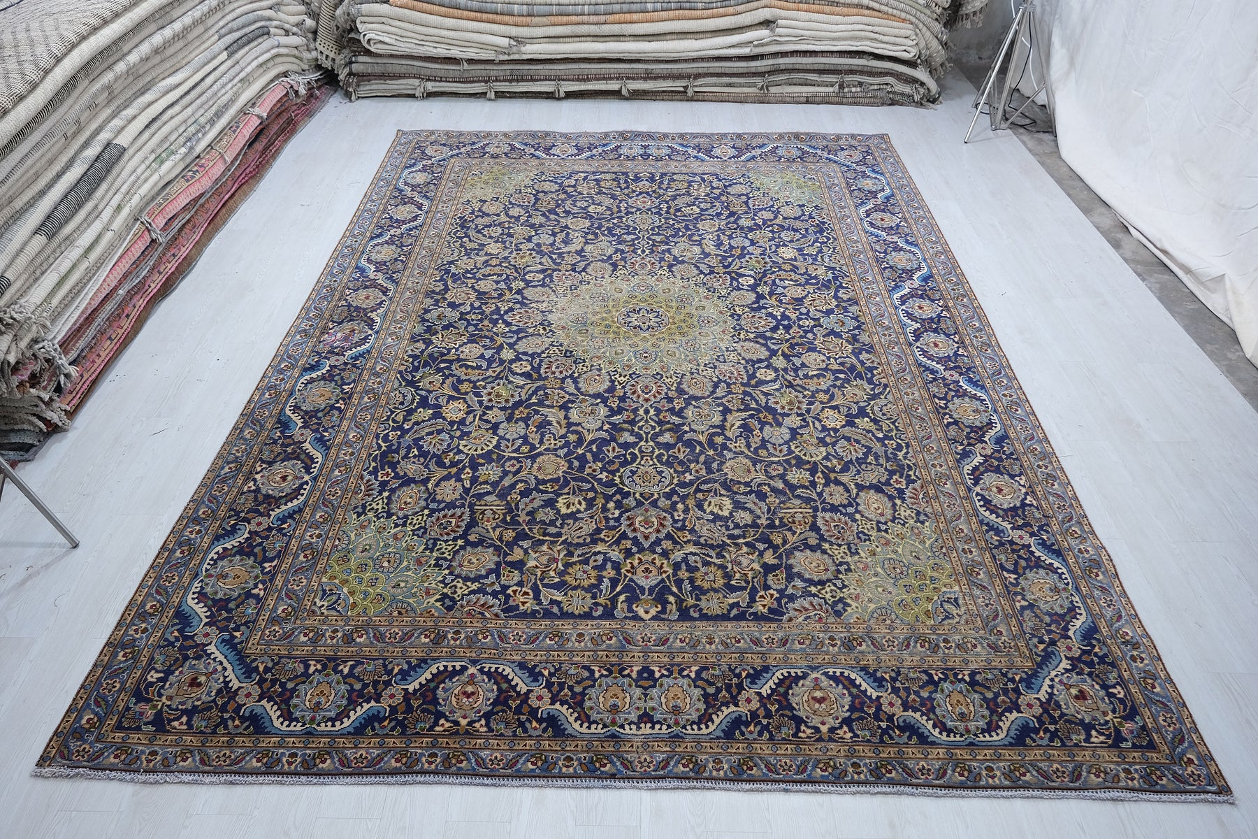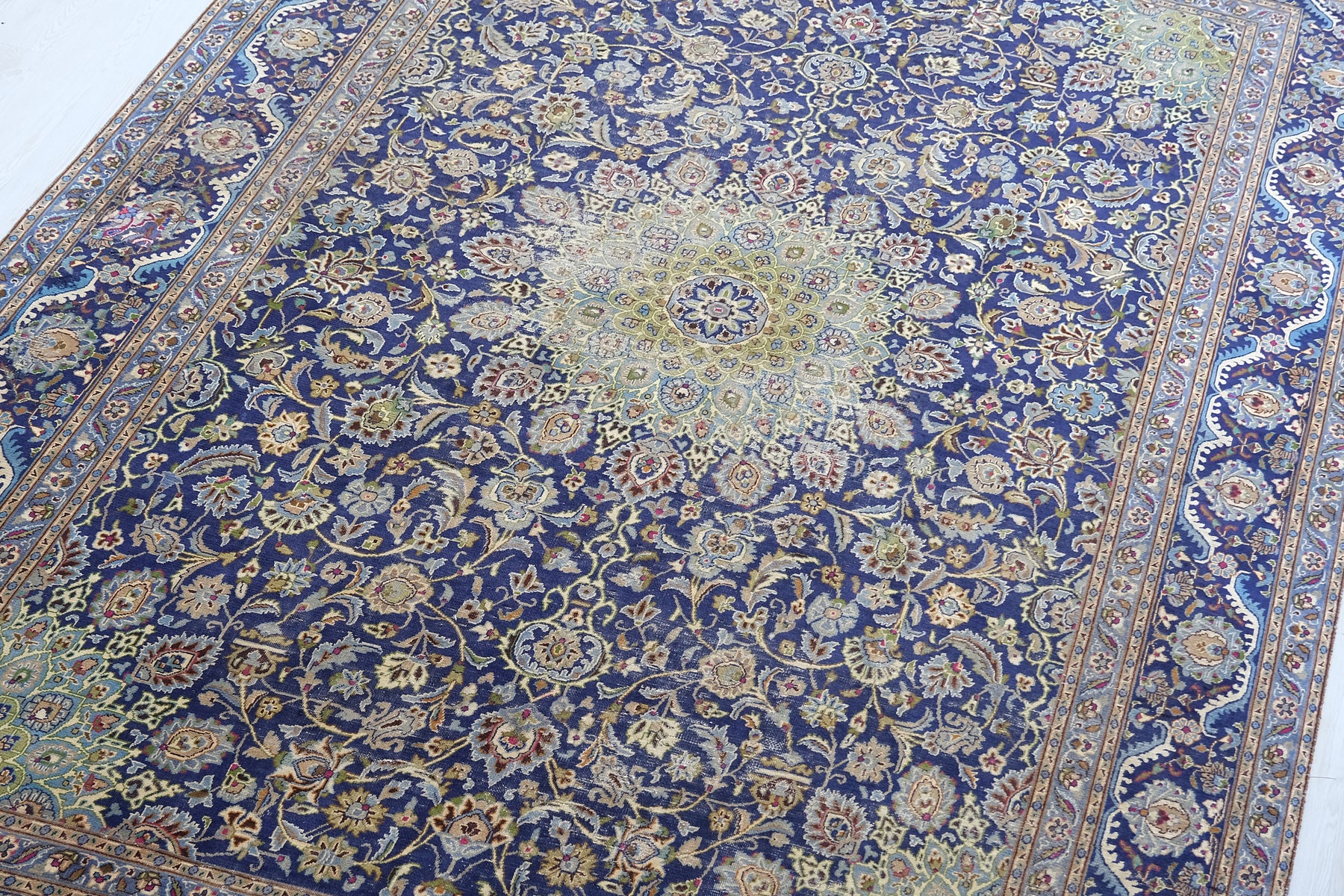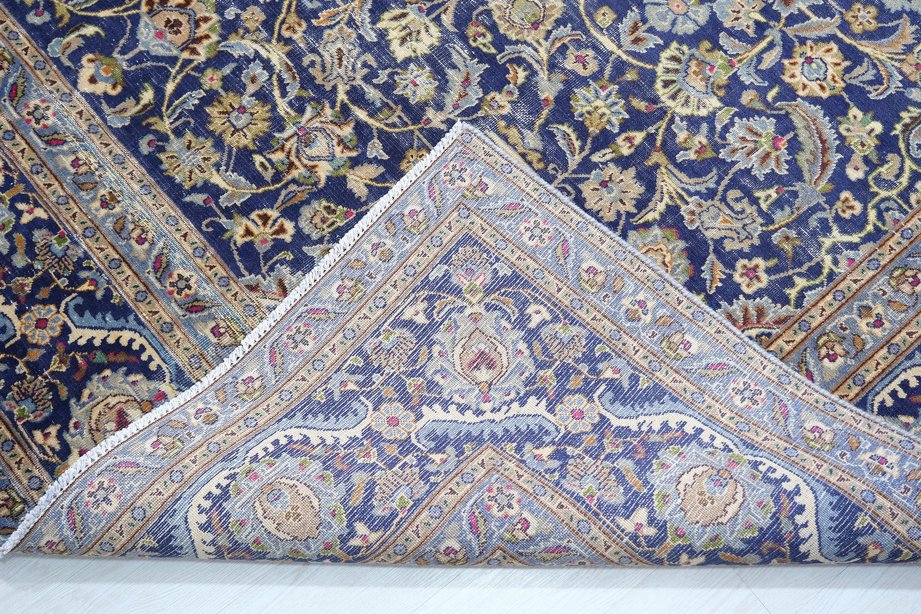 This is a hand-knotted, one-of-a-kind vintage rug. Due to the nature of this piece, there may be slight imperfections in its wear, shape, dimensions, and color. All of our rugs are professionally cleaned and repaired.