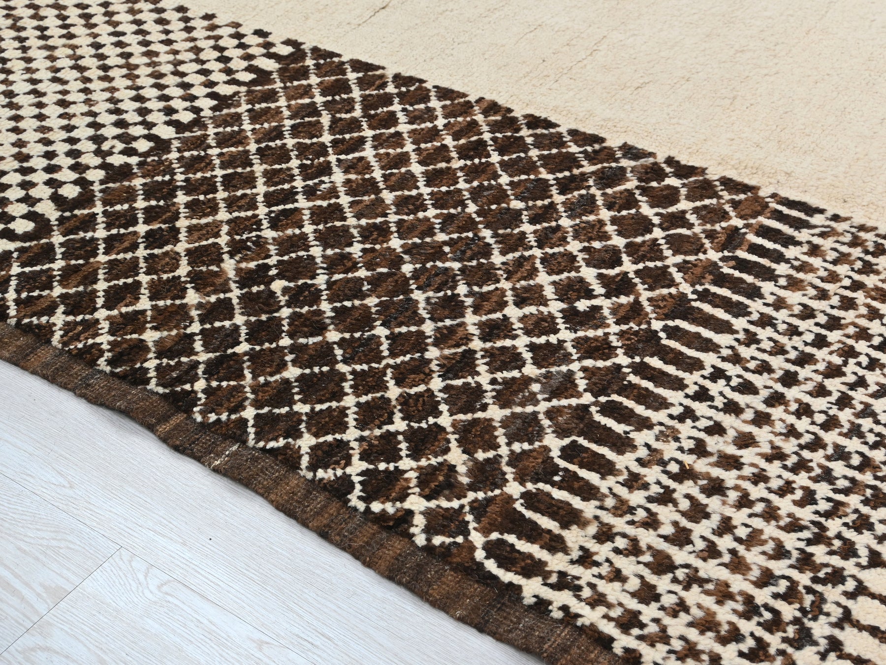 This is a hand-knotted, one-of-a-kind vintage rug. Due to the nature of this piece, there may be slight imperfections in its wear, shape, dimensions, and color. All of our rugs are professionally cleaned and repaired.
