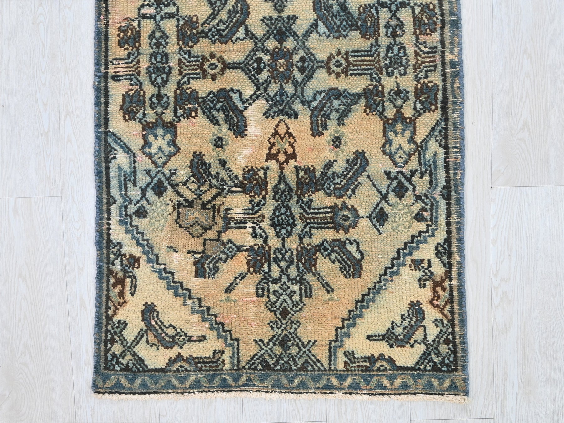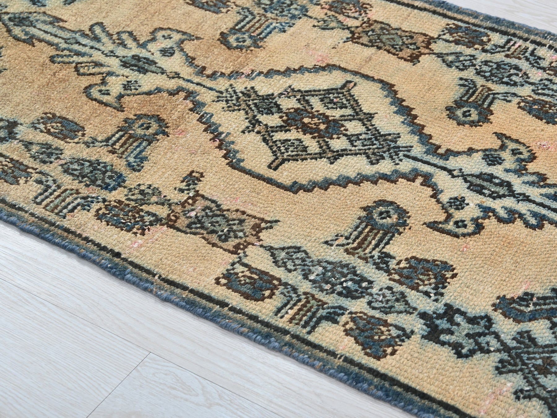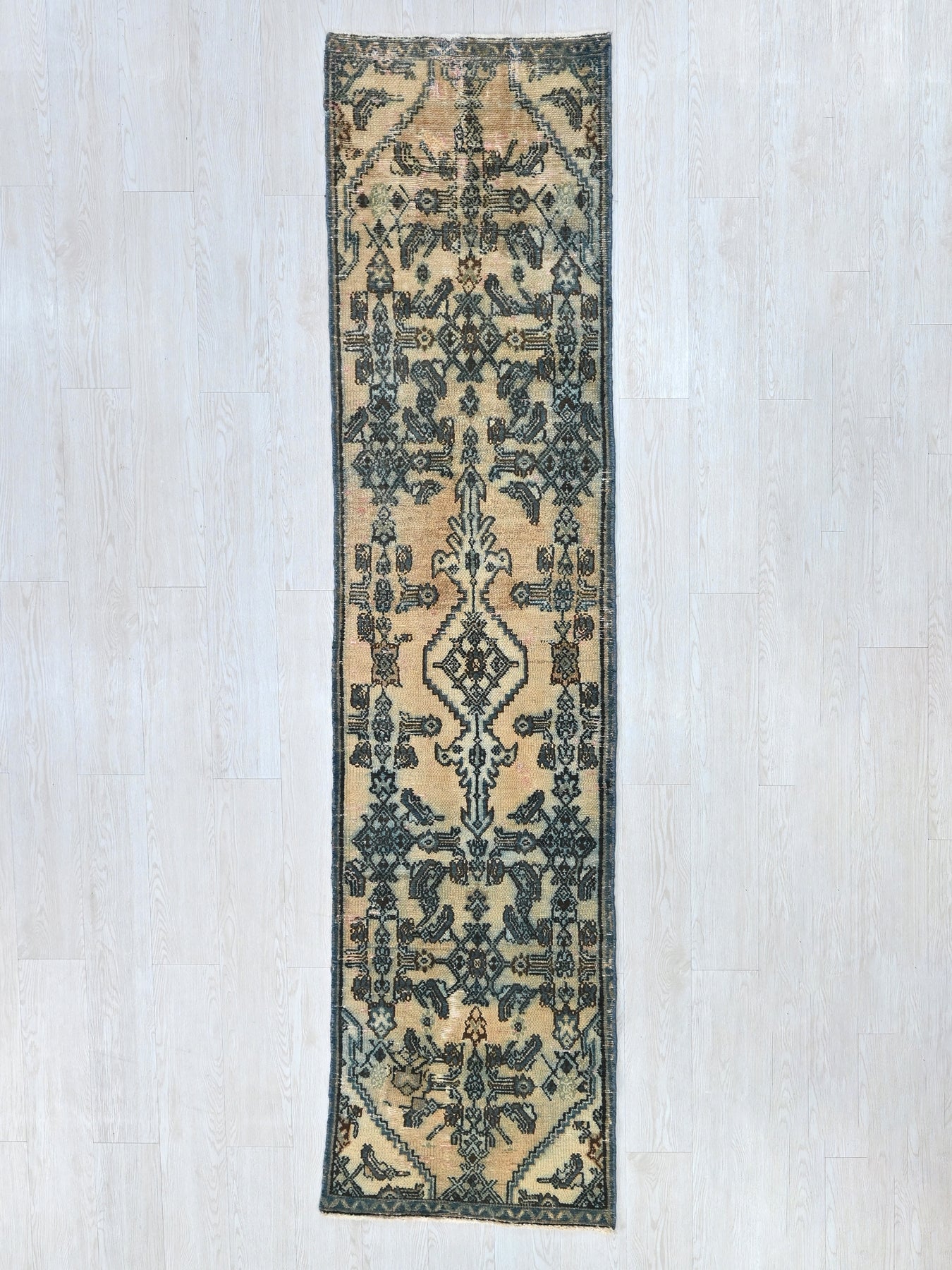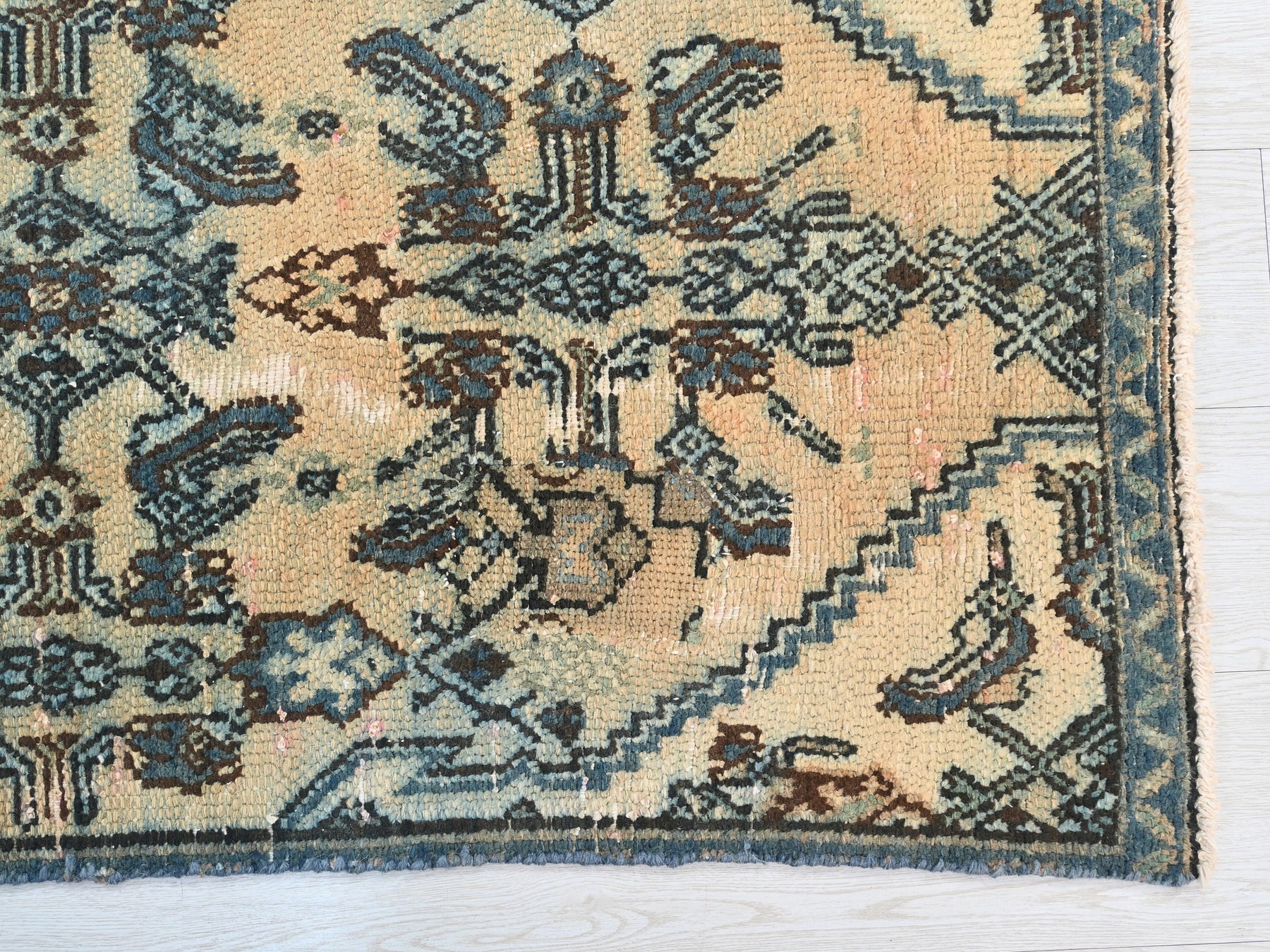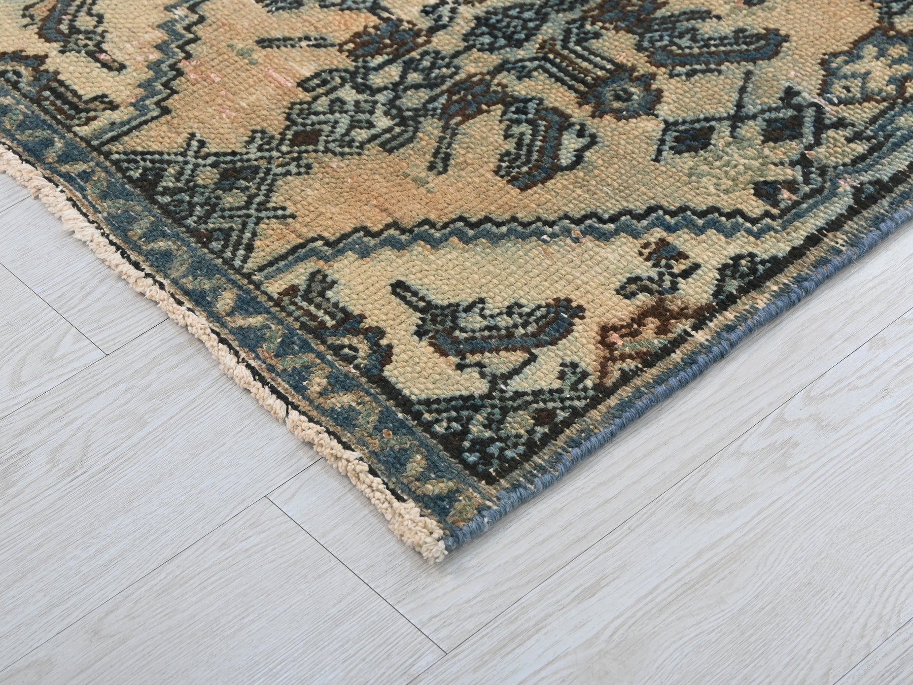 This is a hand-knotted, one-of-a-kind vintage rug. Due to the nature of this piece, there may be slight imperfections in its wear, shape, dimensions, and color. All of our rugs are professionally cleaned and repaired.