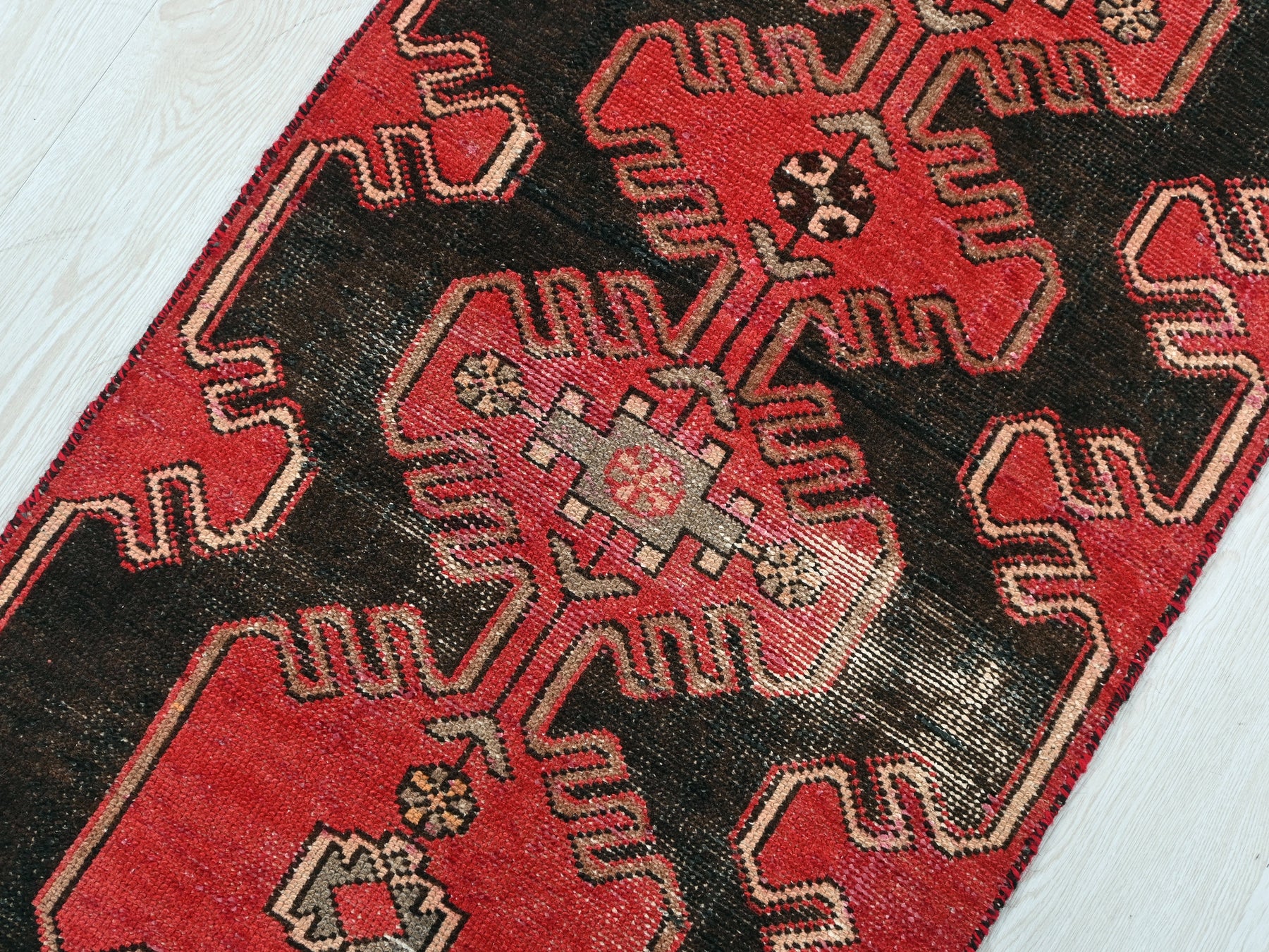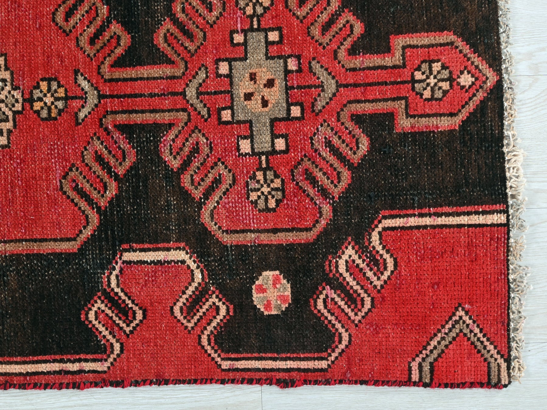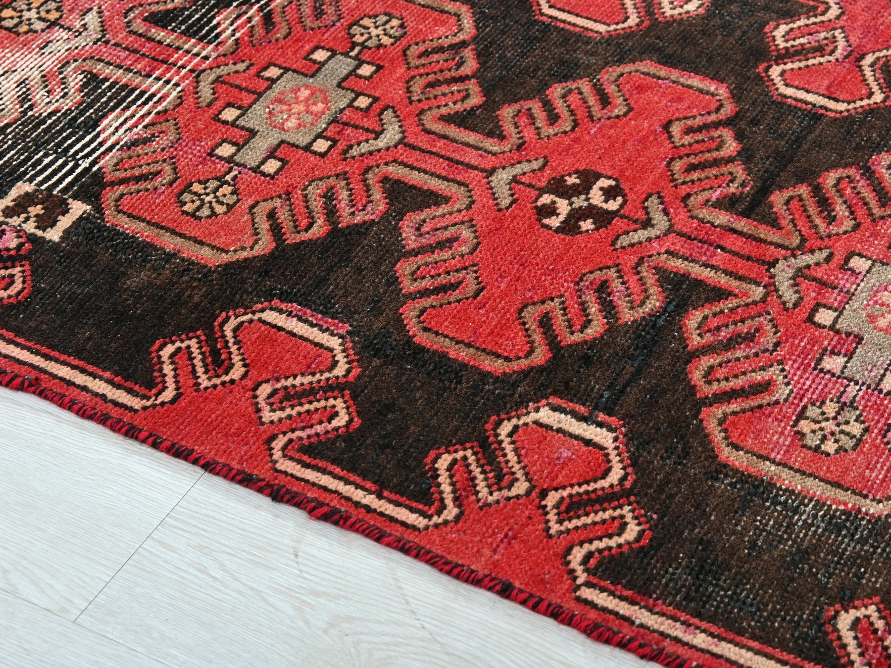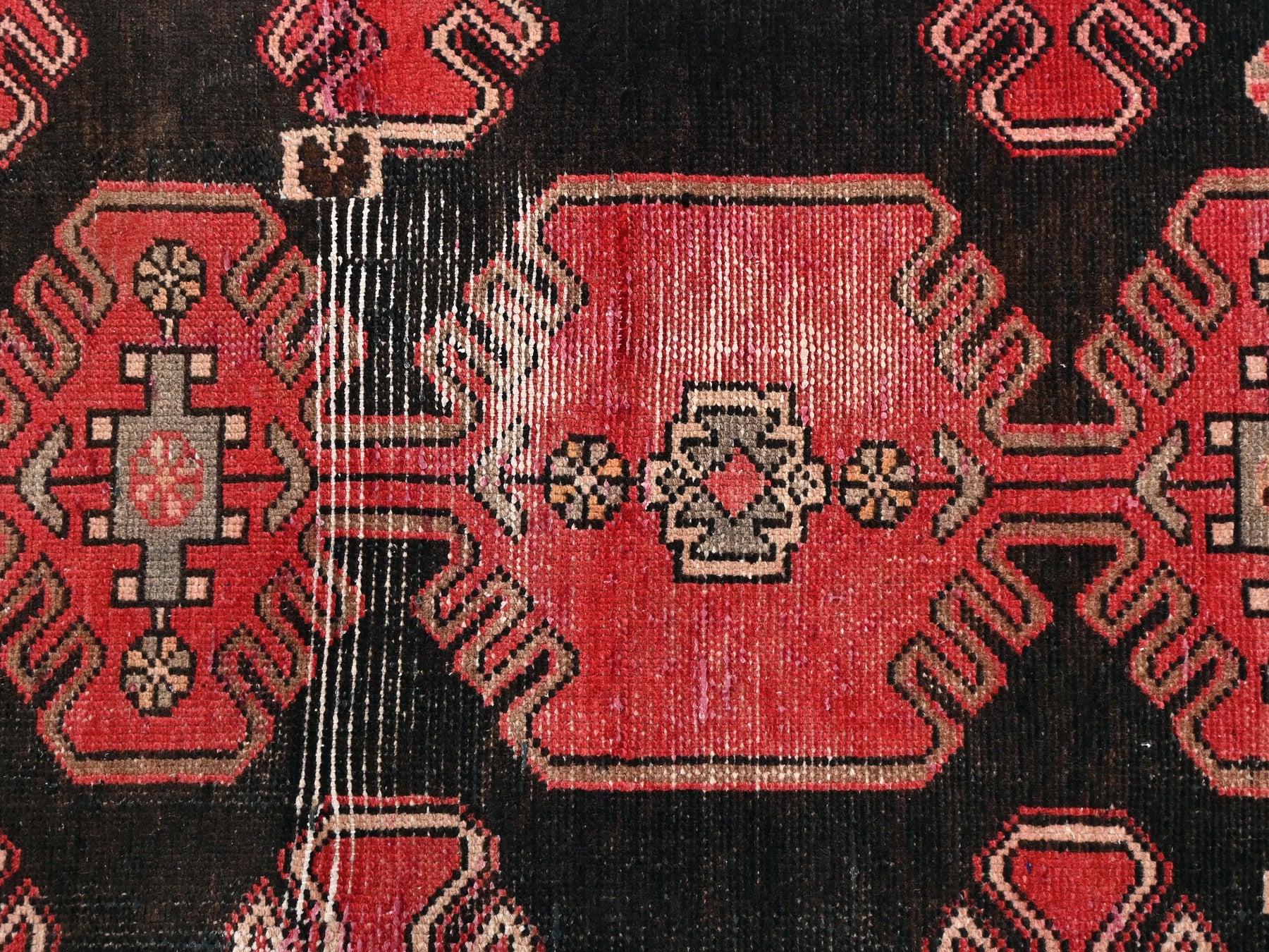 This is a hand-knotted, one-of-a-kind vintage rug. Due to the nature of this piece, there may be slight imperfections in its wear, shape, dimensions, and color. All of our rugs are professionally cleaned and repaired.