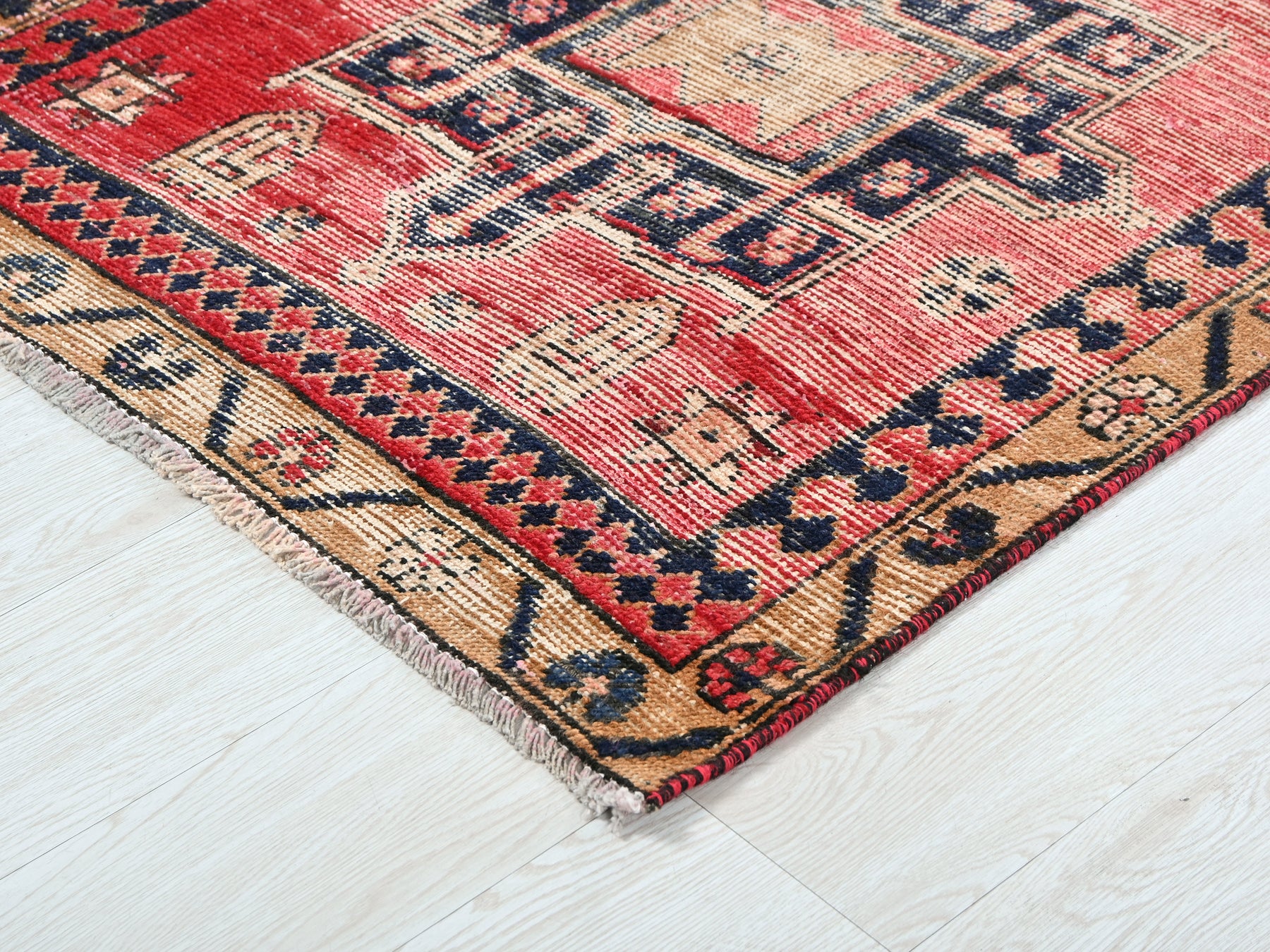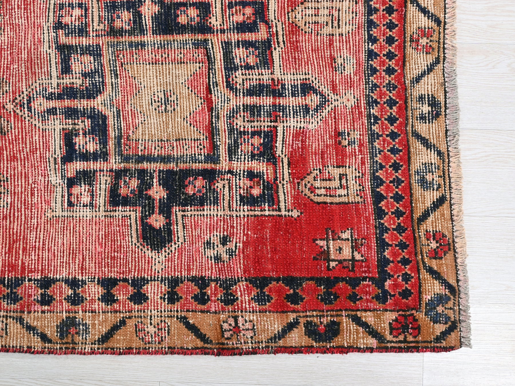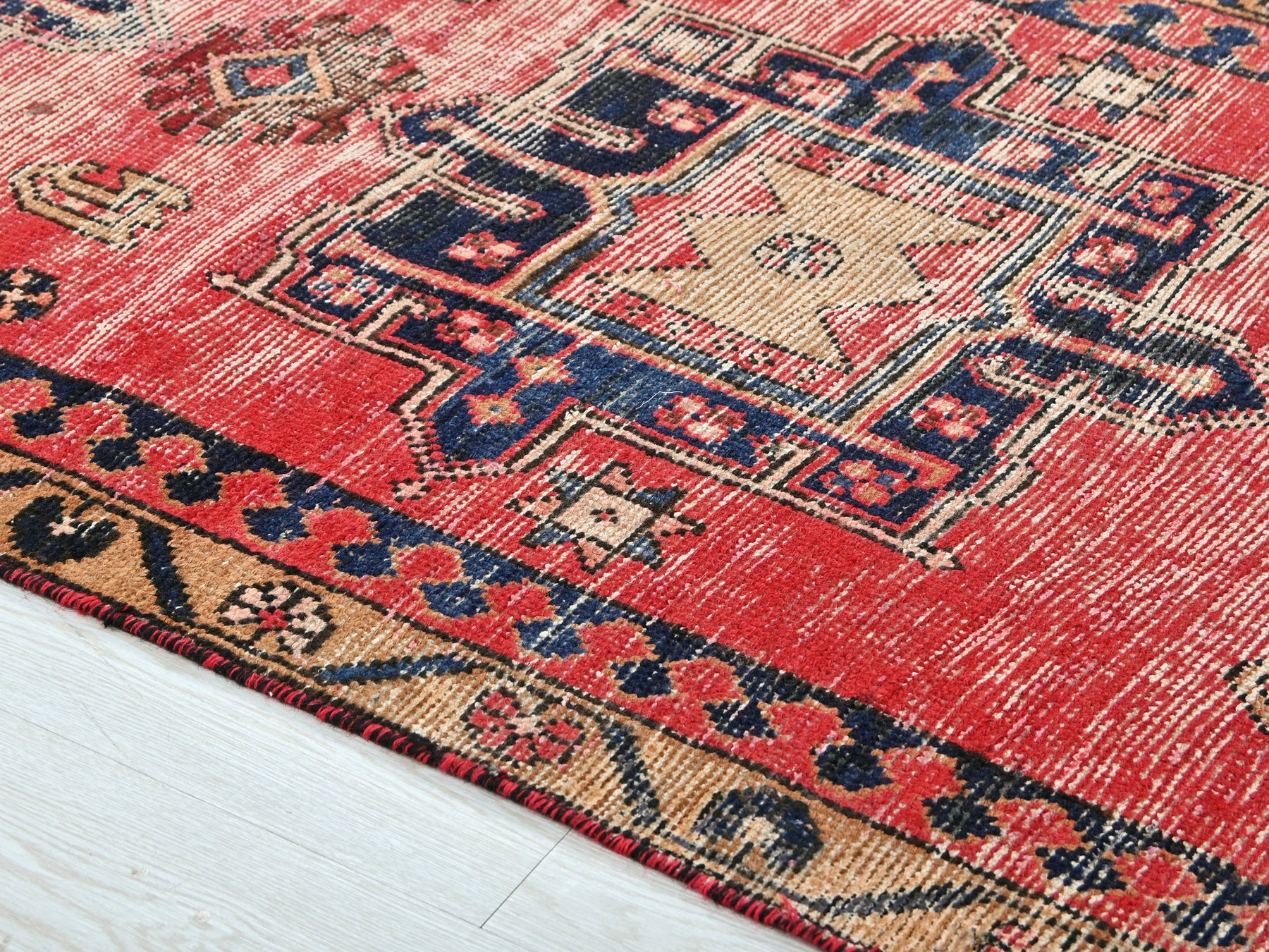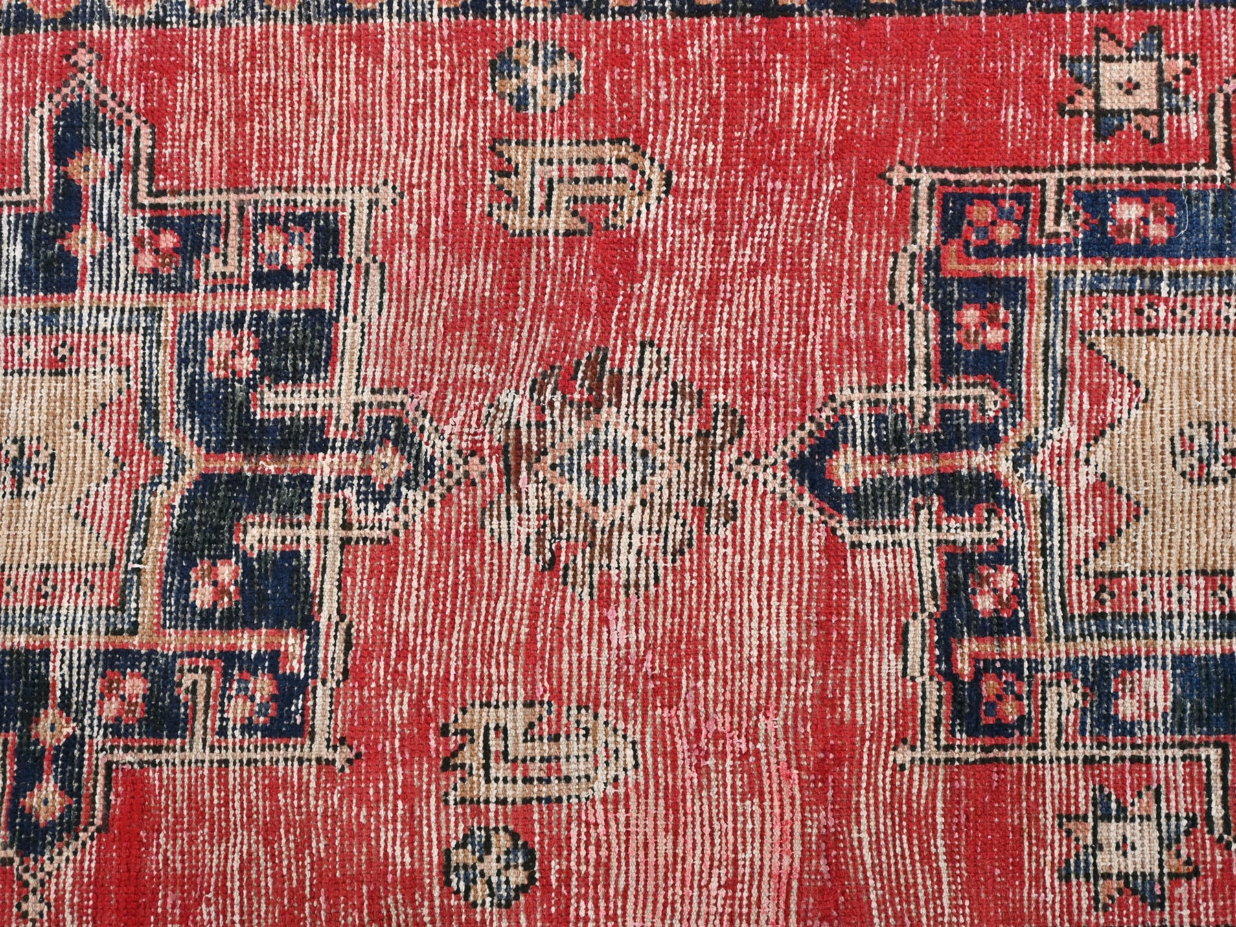 This is a hand-knotted, one-of-a-kind vintage rug. Due to the nature of this piece, there may be slight imperfections in its wear, shape, dimensions, and color. All of our rugs are professionally cleaned and repaired.