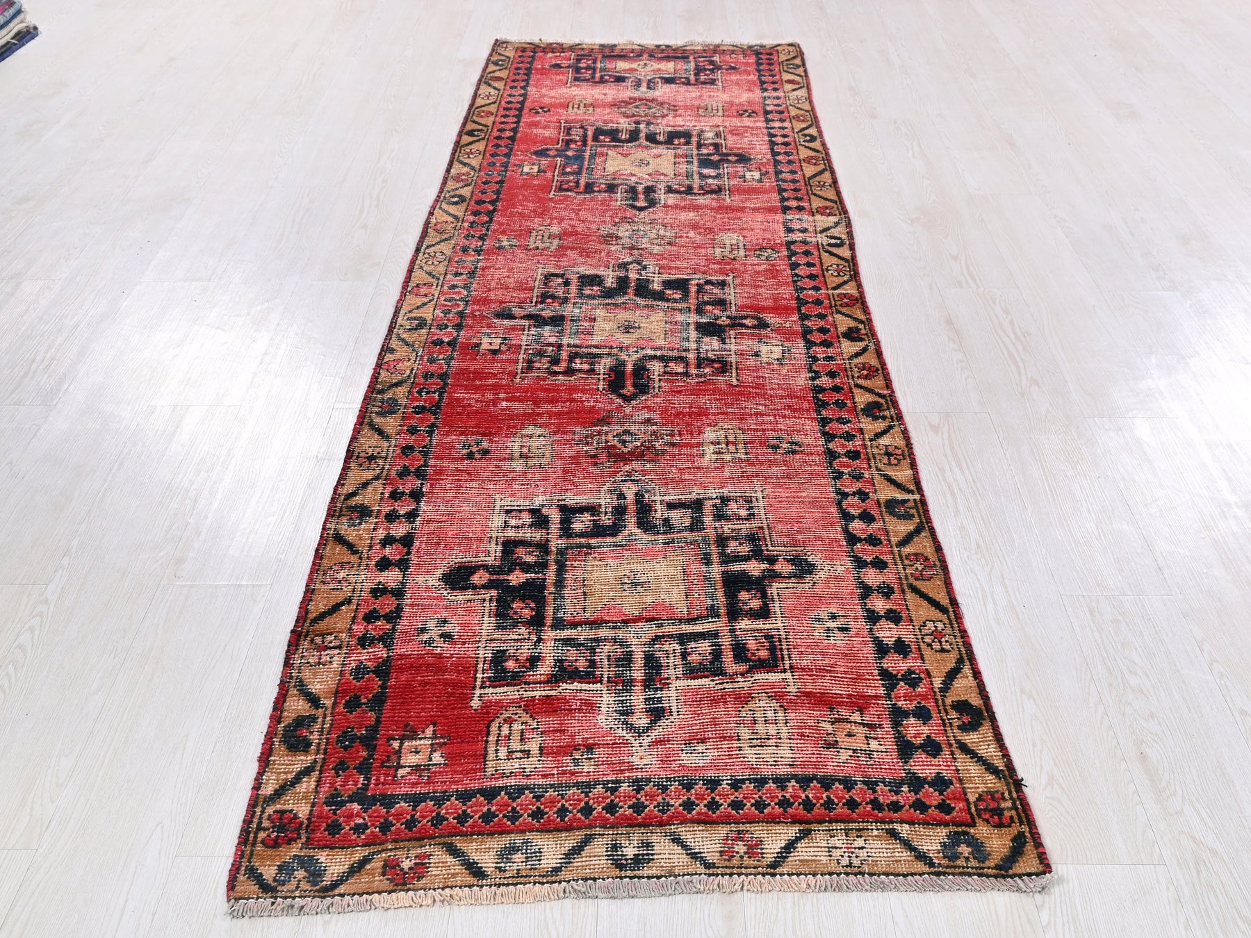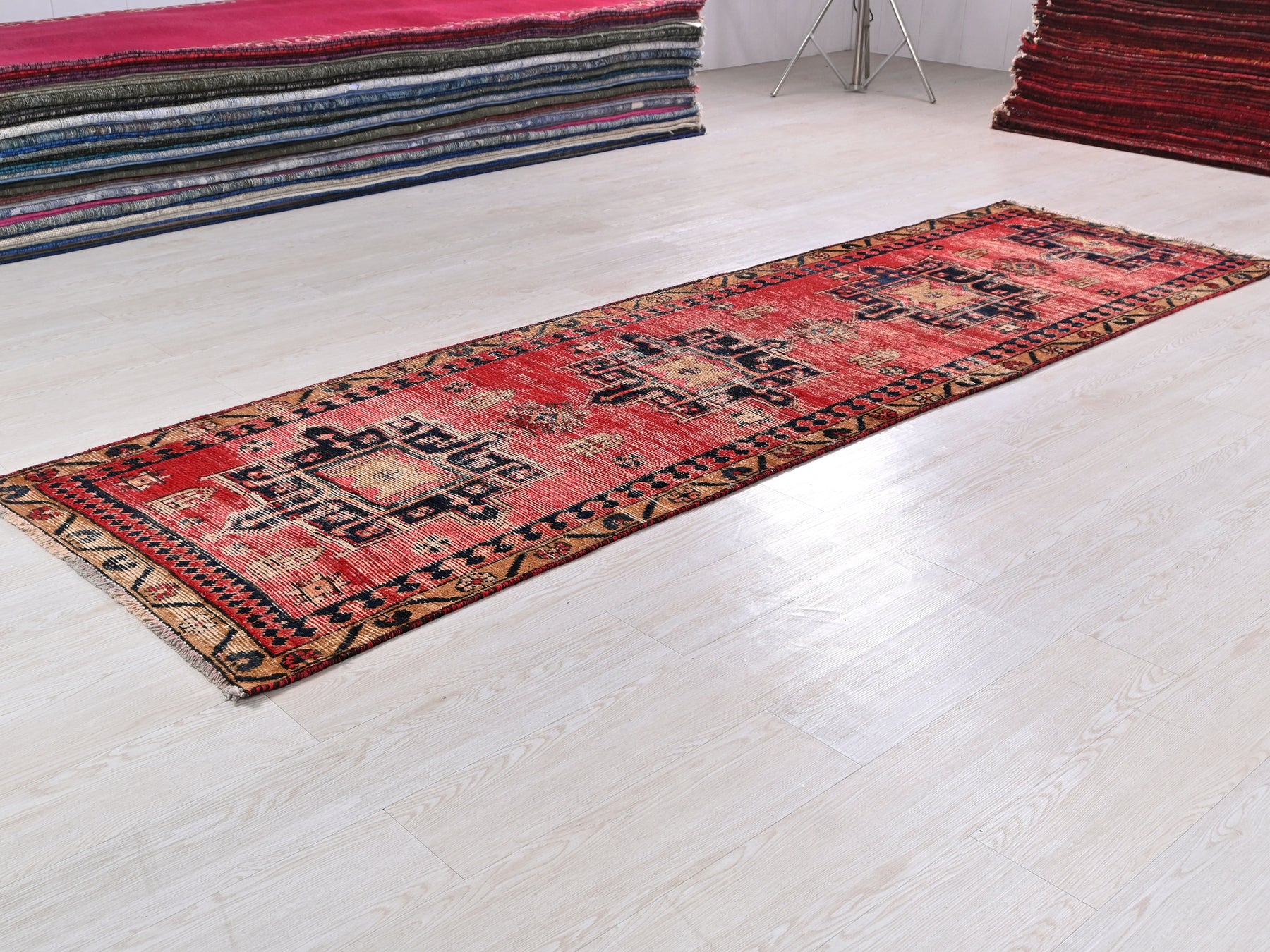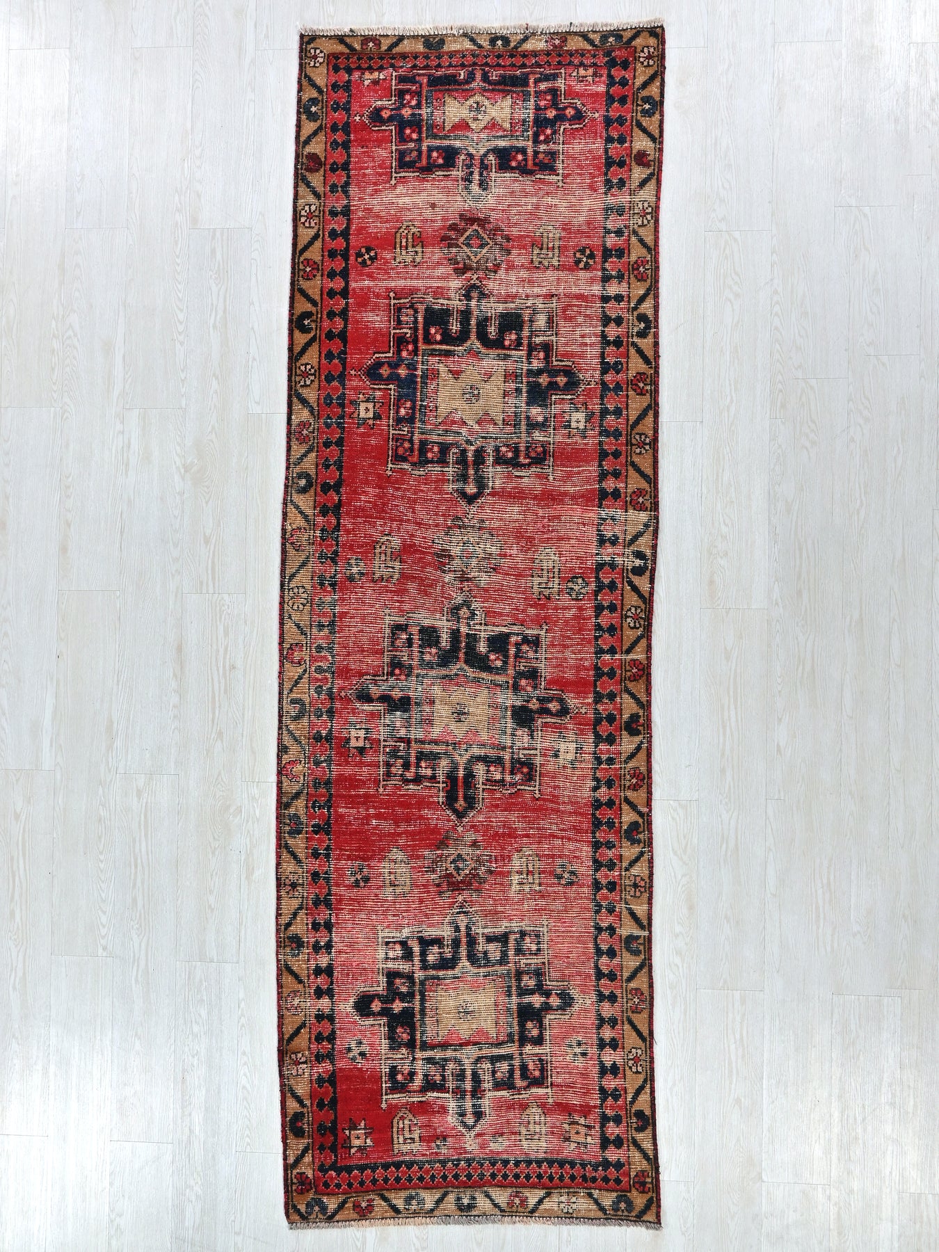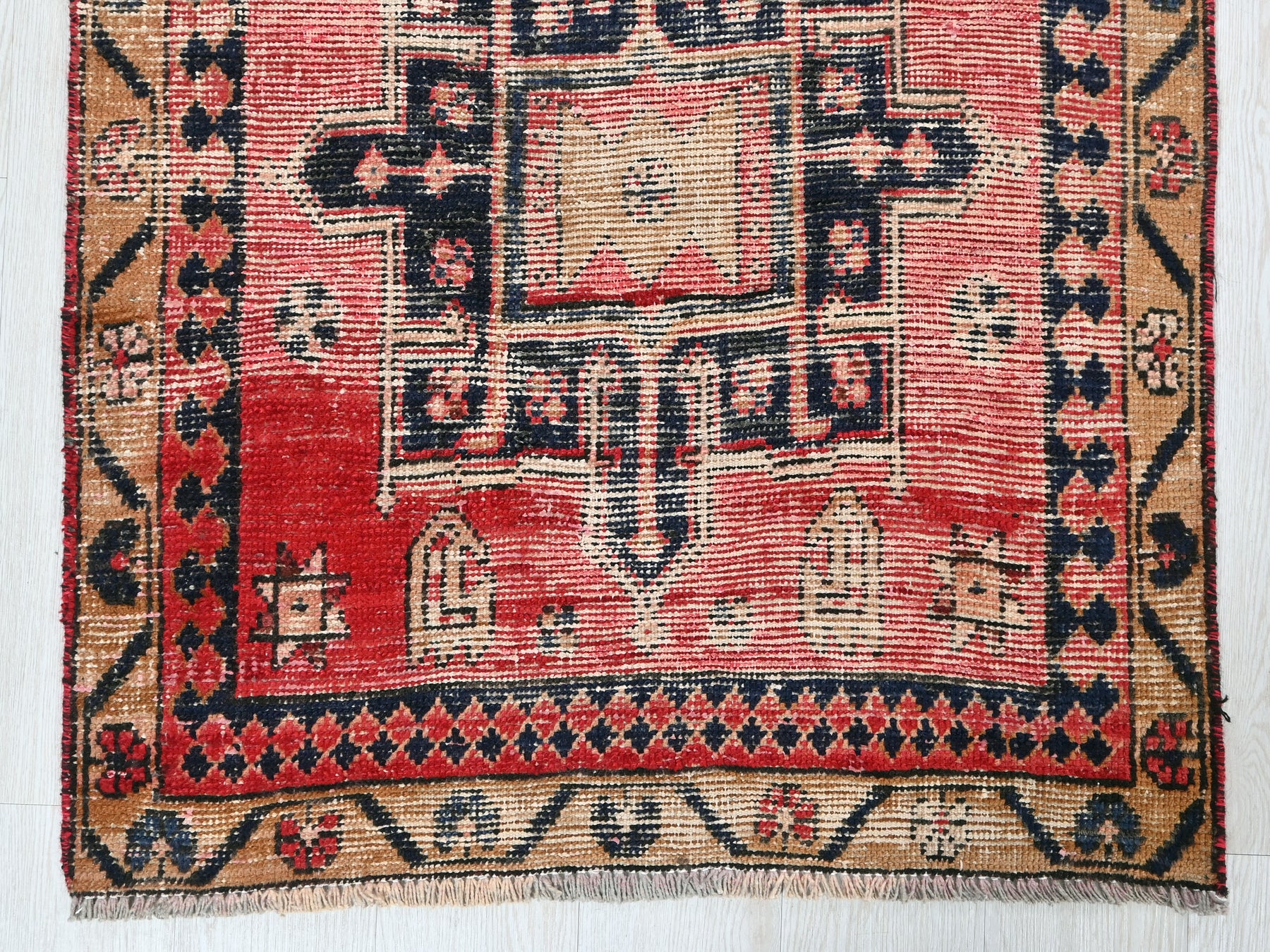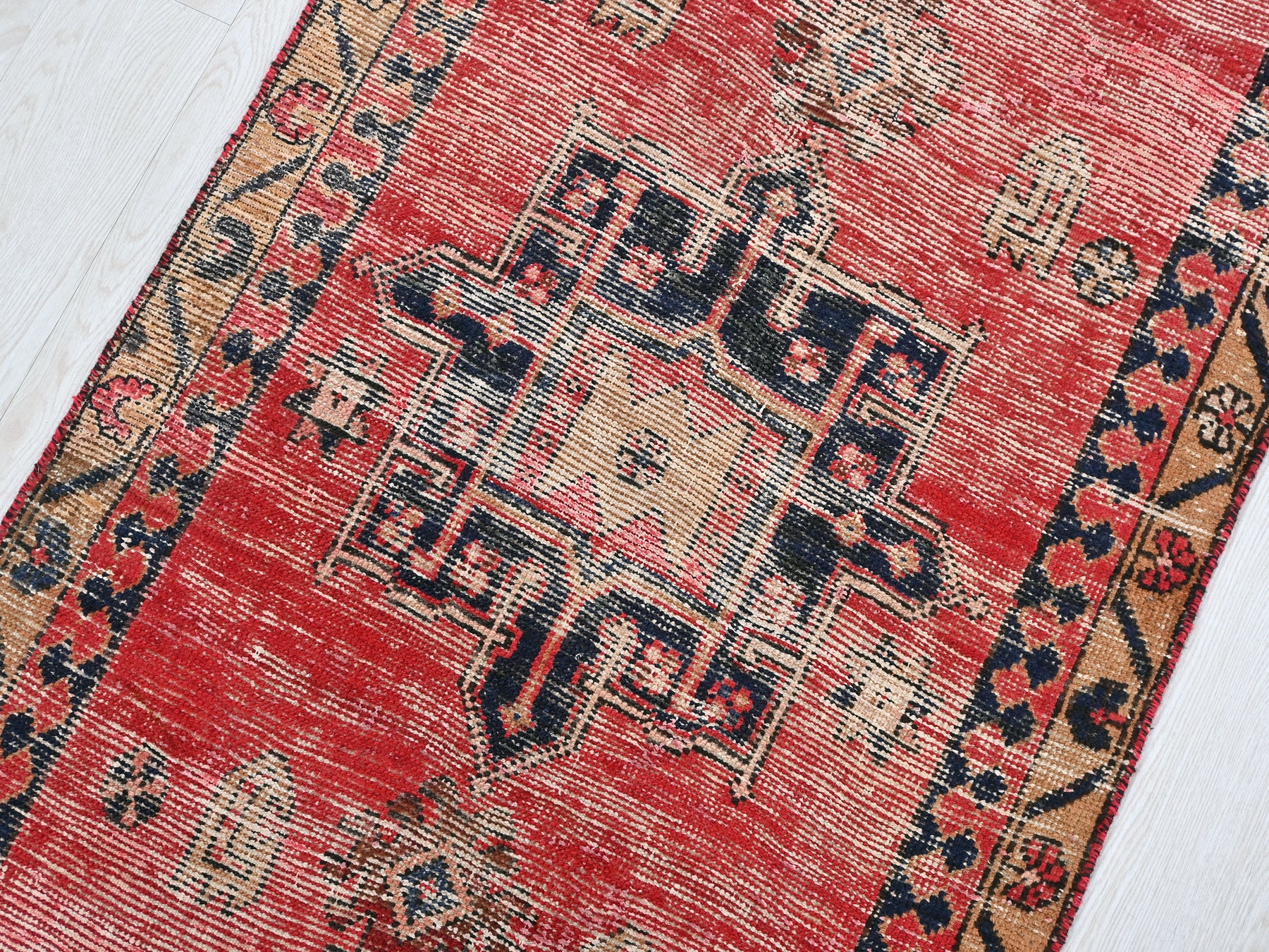 This is a hand-knotted, one-of-a-kind vintage rug. Due to the nature of this piece, there may be slight imperfections in its wear, shape, dimensions, and color. All of our rugs are professionally cleaned and repaired.