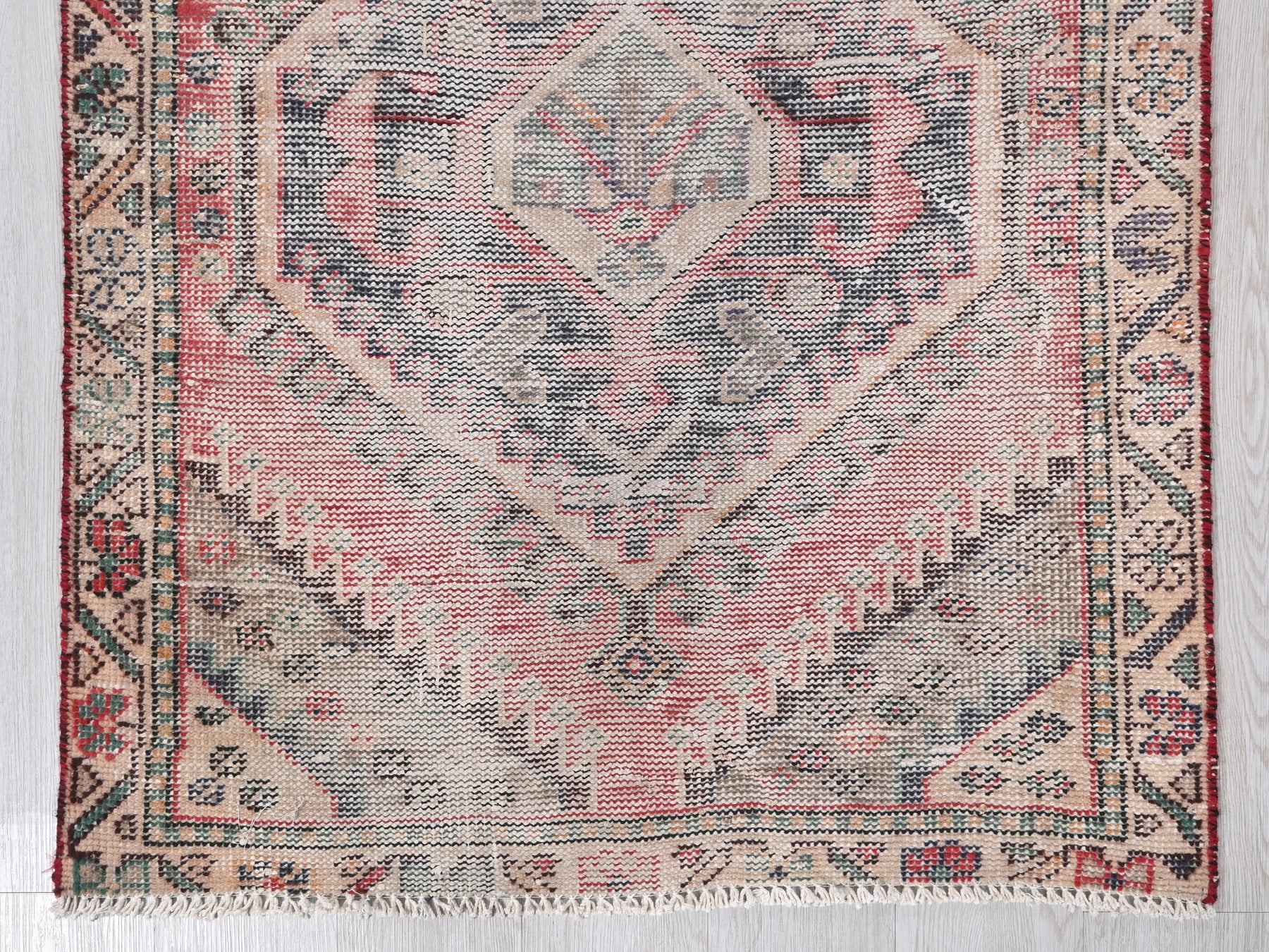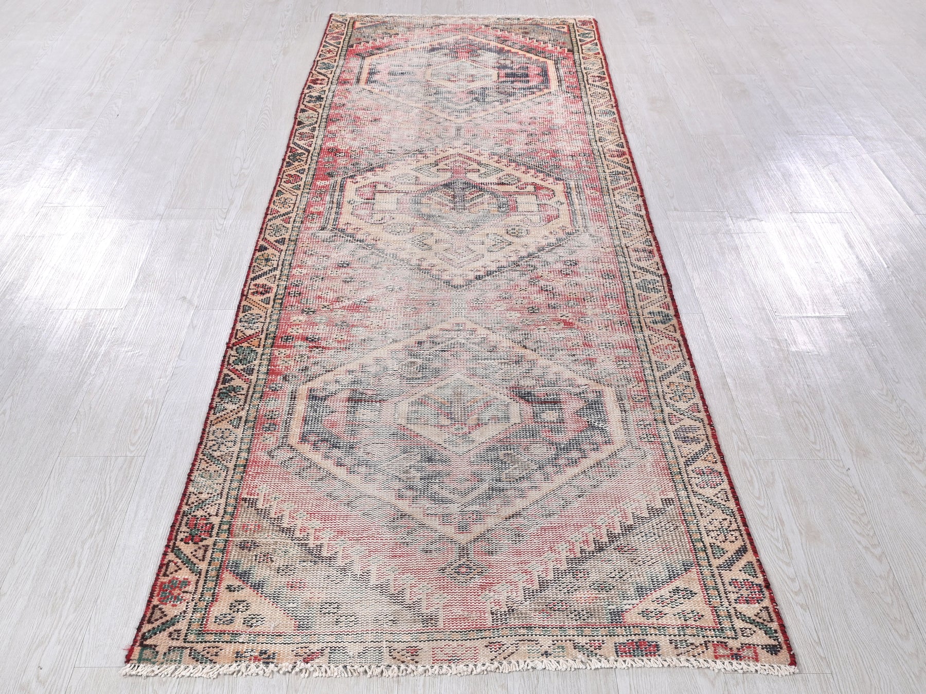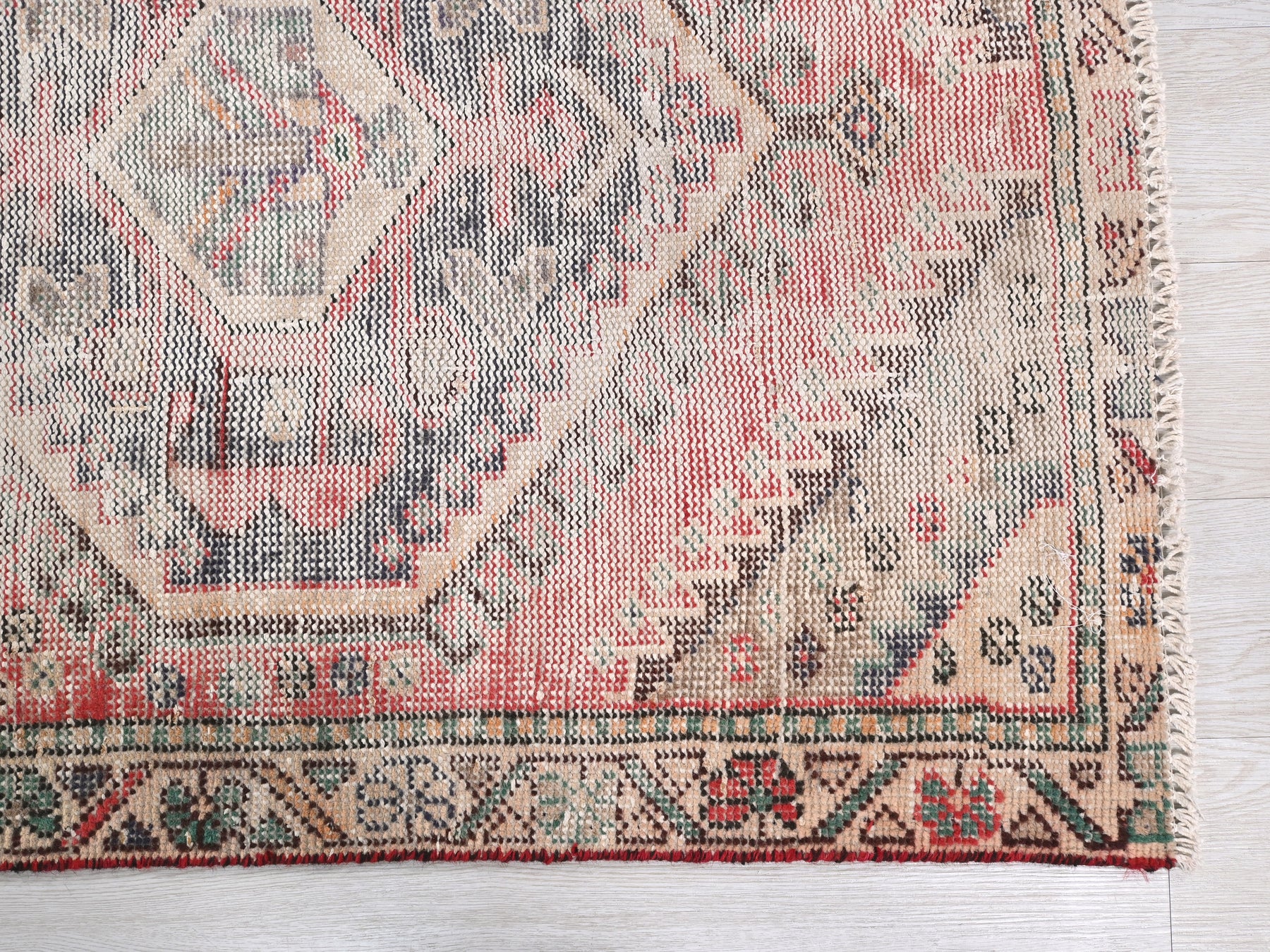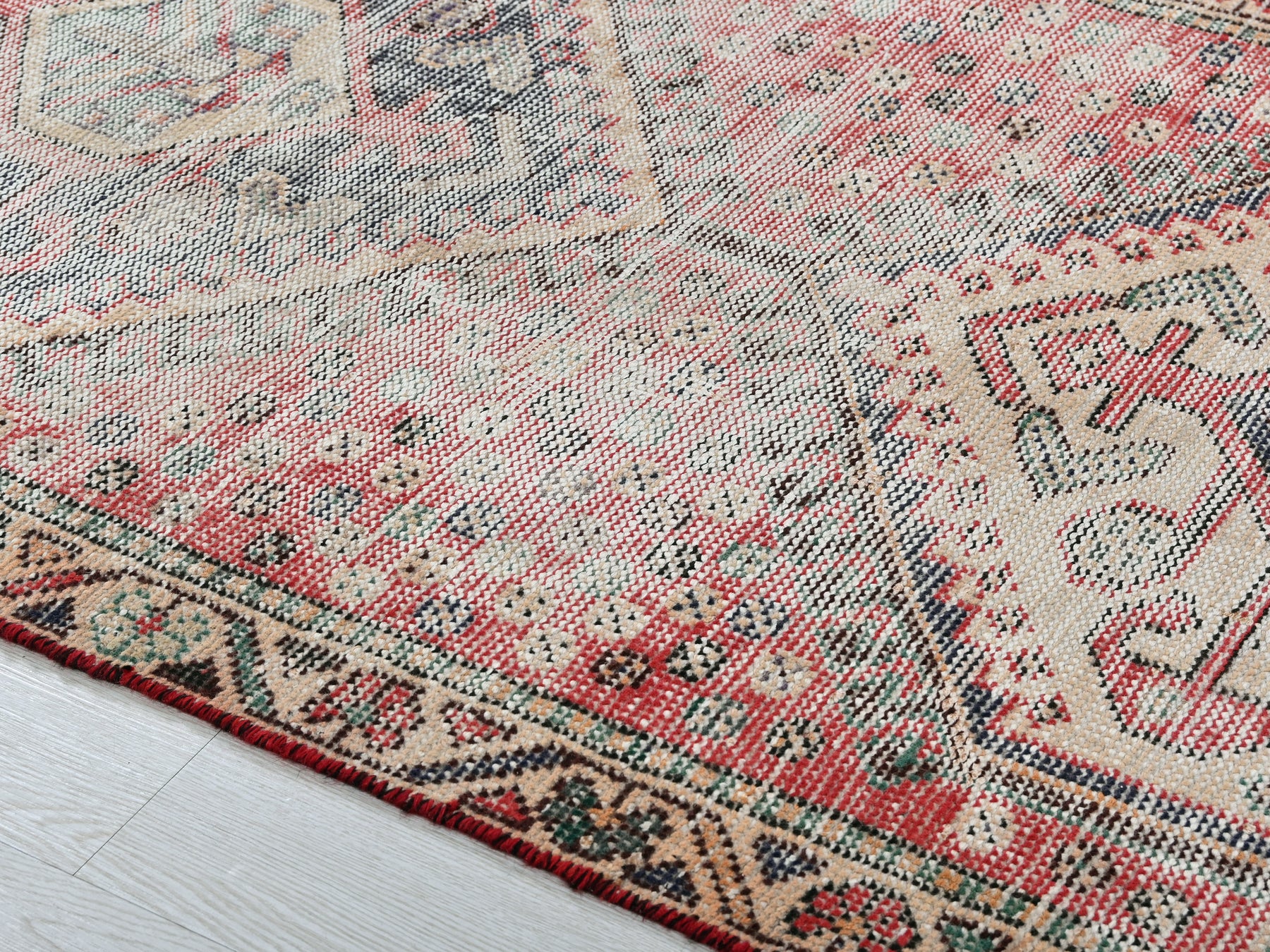 This is a hand-knotted, one-of-a-kind vintage rug. Due to the nature of this piece, there may be slight imperfections in its wear, shape, dimensions, and color. All of our rugs are professionally cleaned and repaired.
