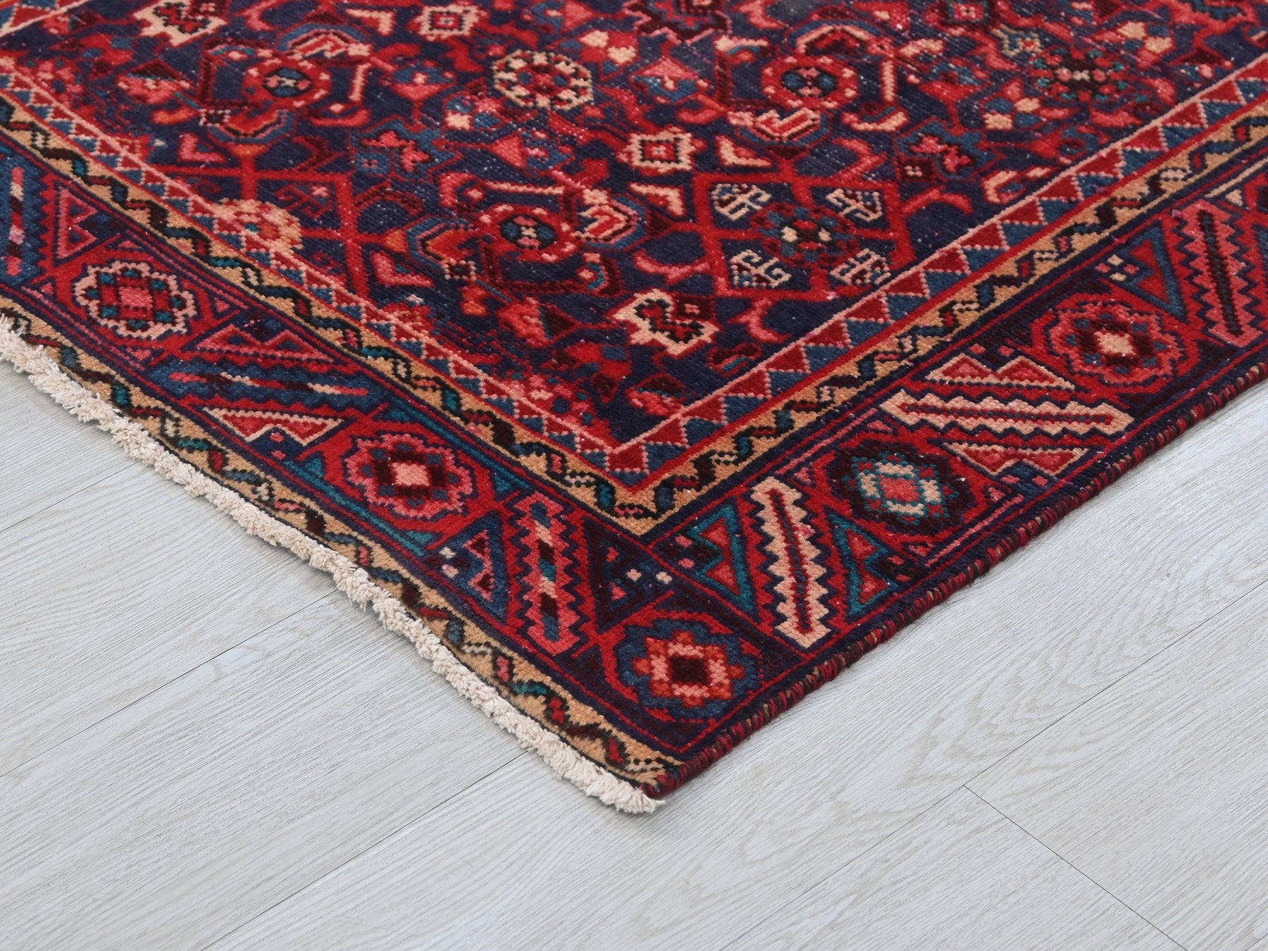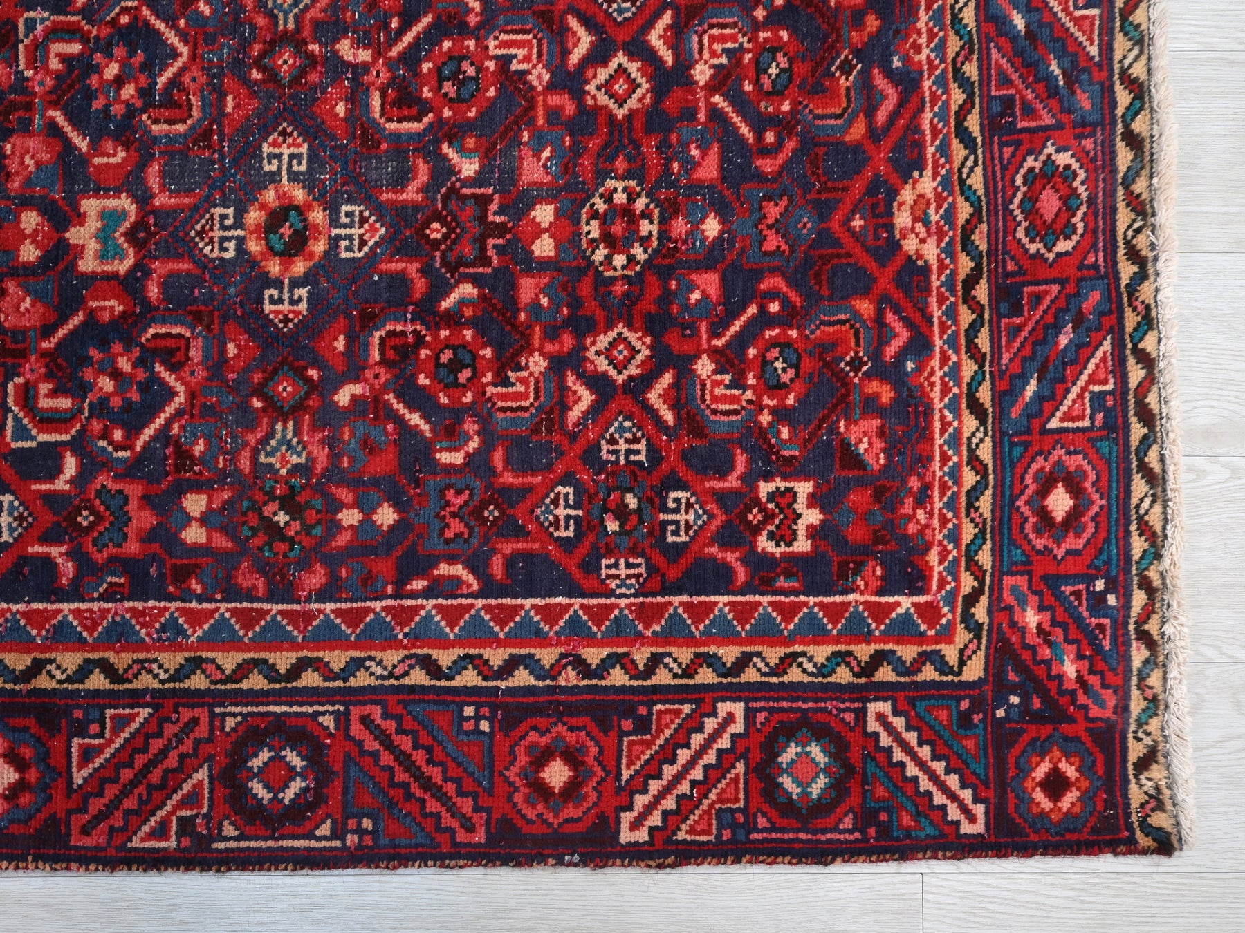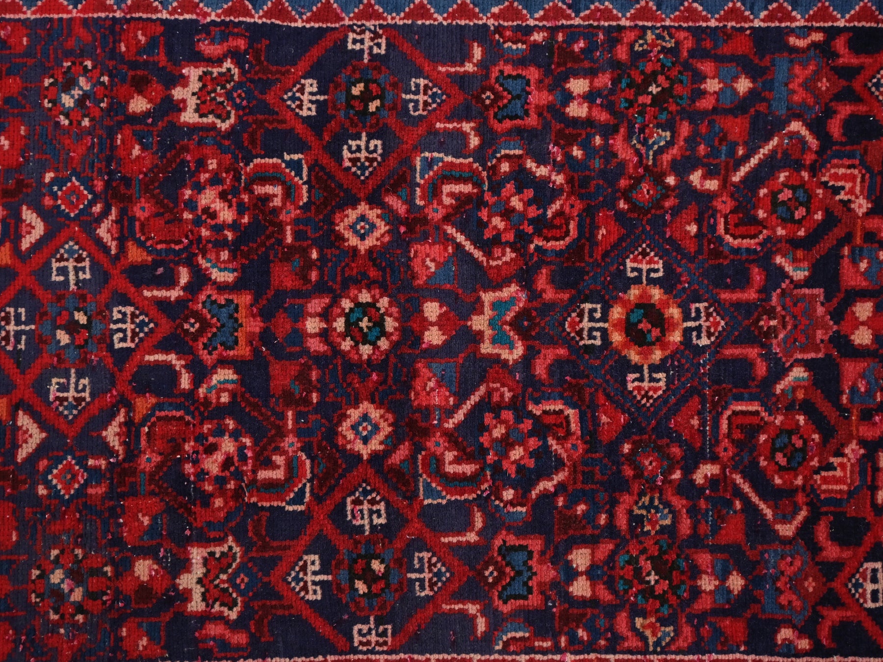 This is a hand-knotted, one-of-a-kind vintage rug. Due to the nature of this piece, there may be slight imperfections in its wear, shape, dimensions, and color. All of our rugs are professionally cleaned and repaired.