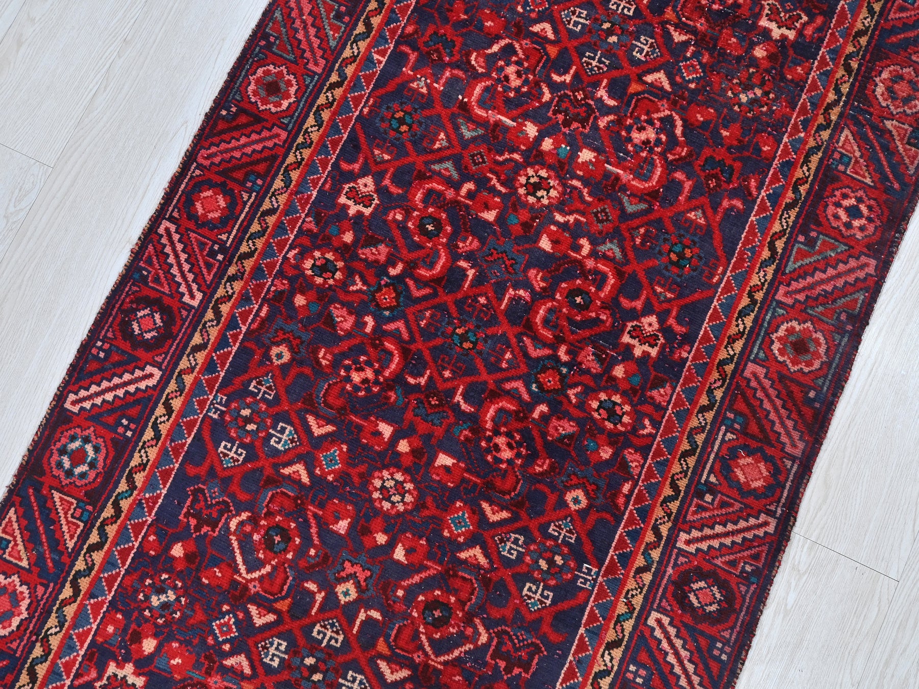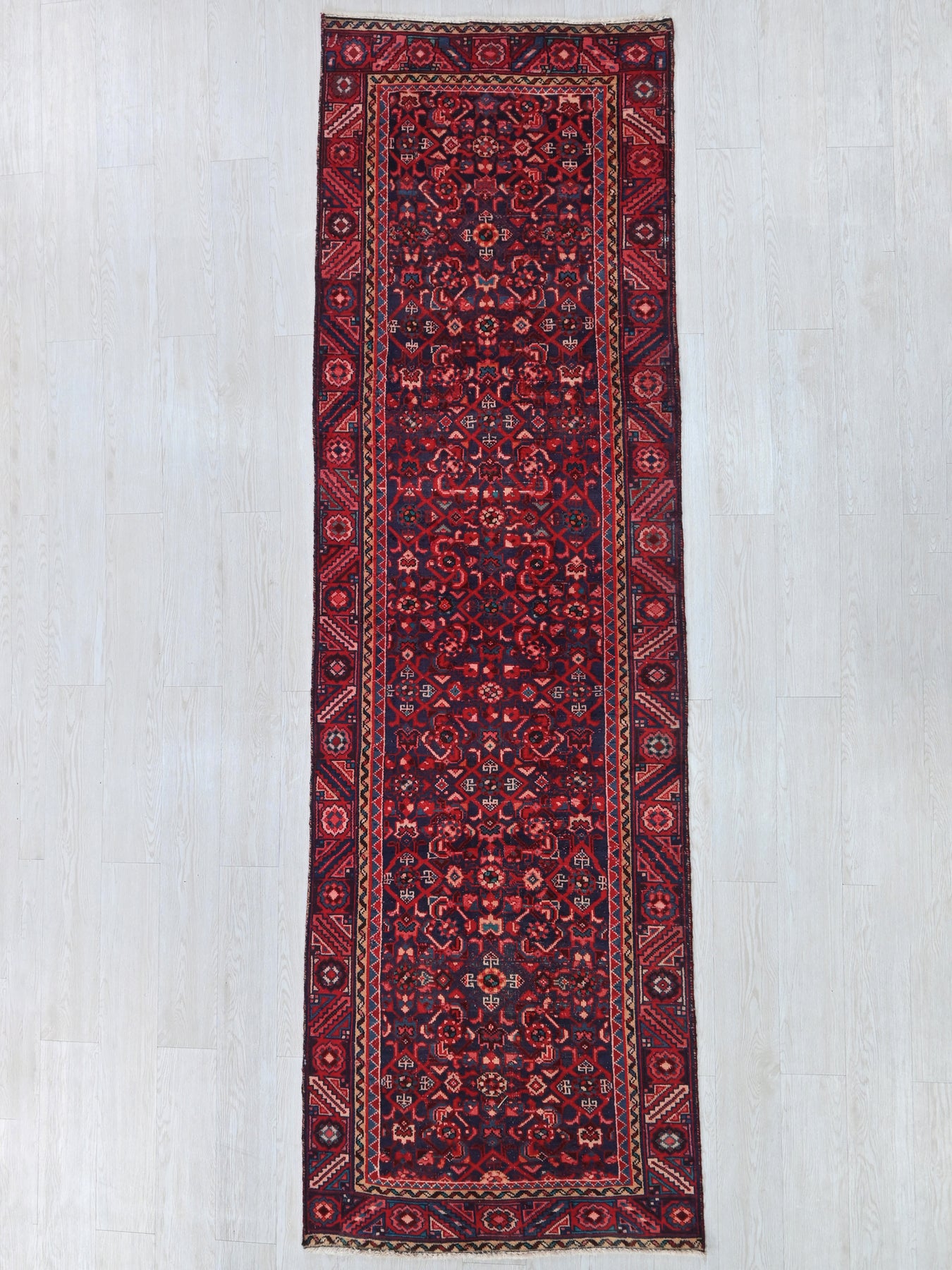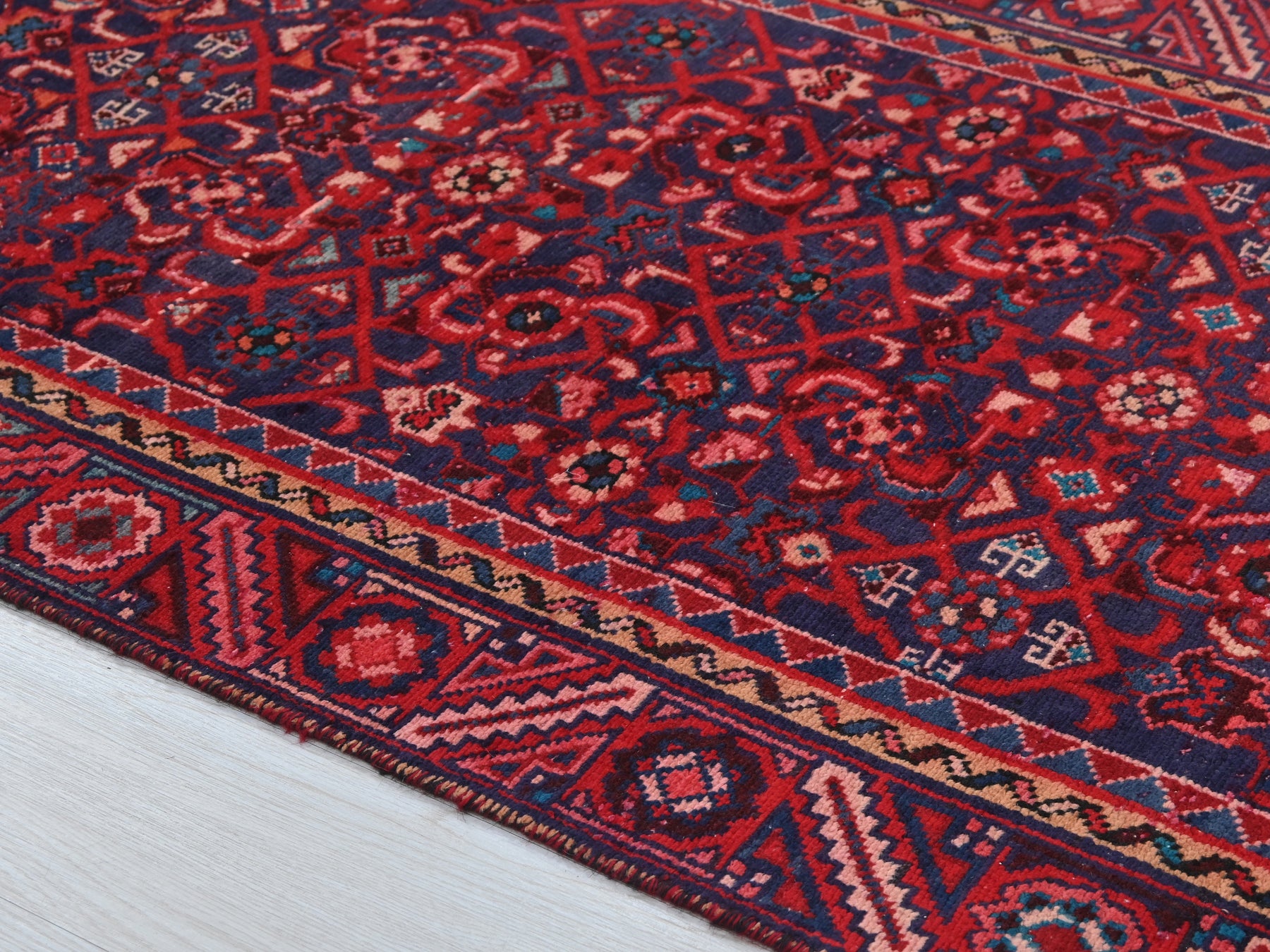 This is a hand-knotted, one-of-a-kind vintage rug. Due to the nature of this piece, there may be slight imperfections in its wear, shape, dimensions, and color. All of our rugs are professionally cleaned and repaired.