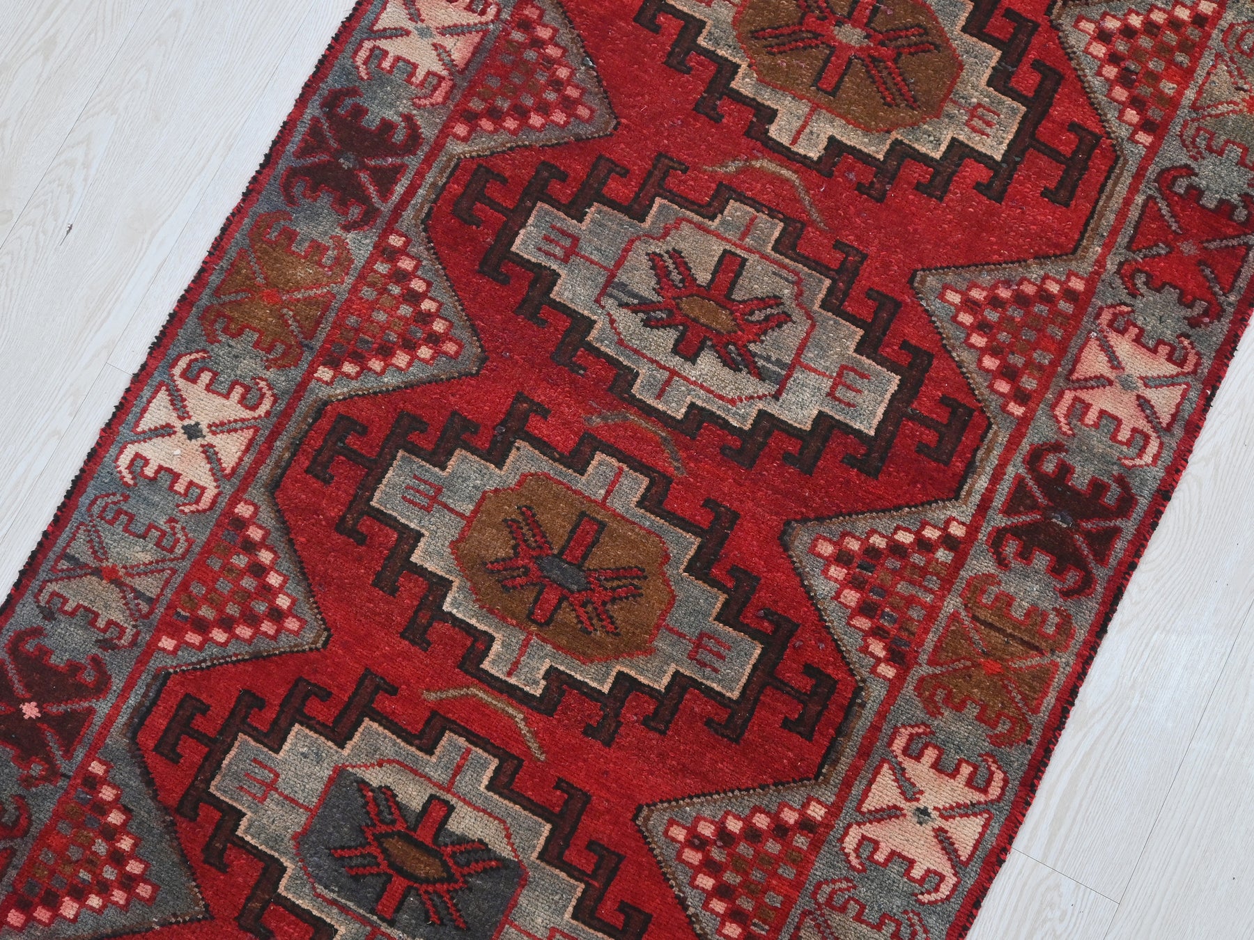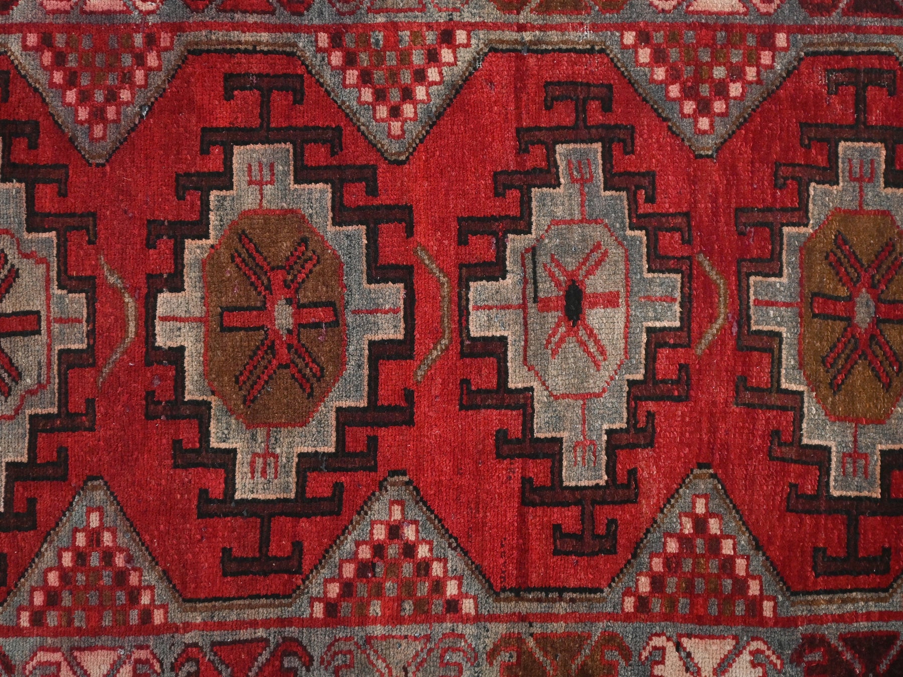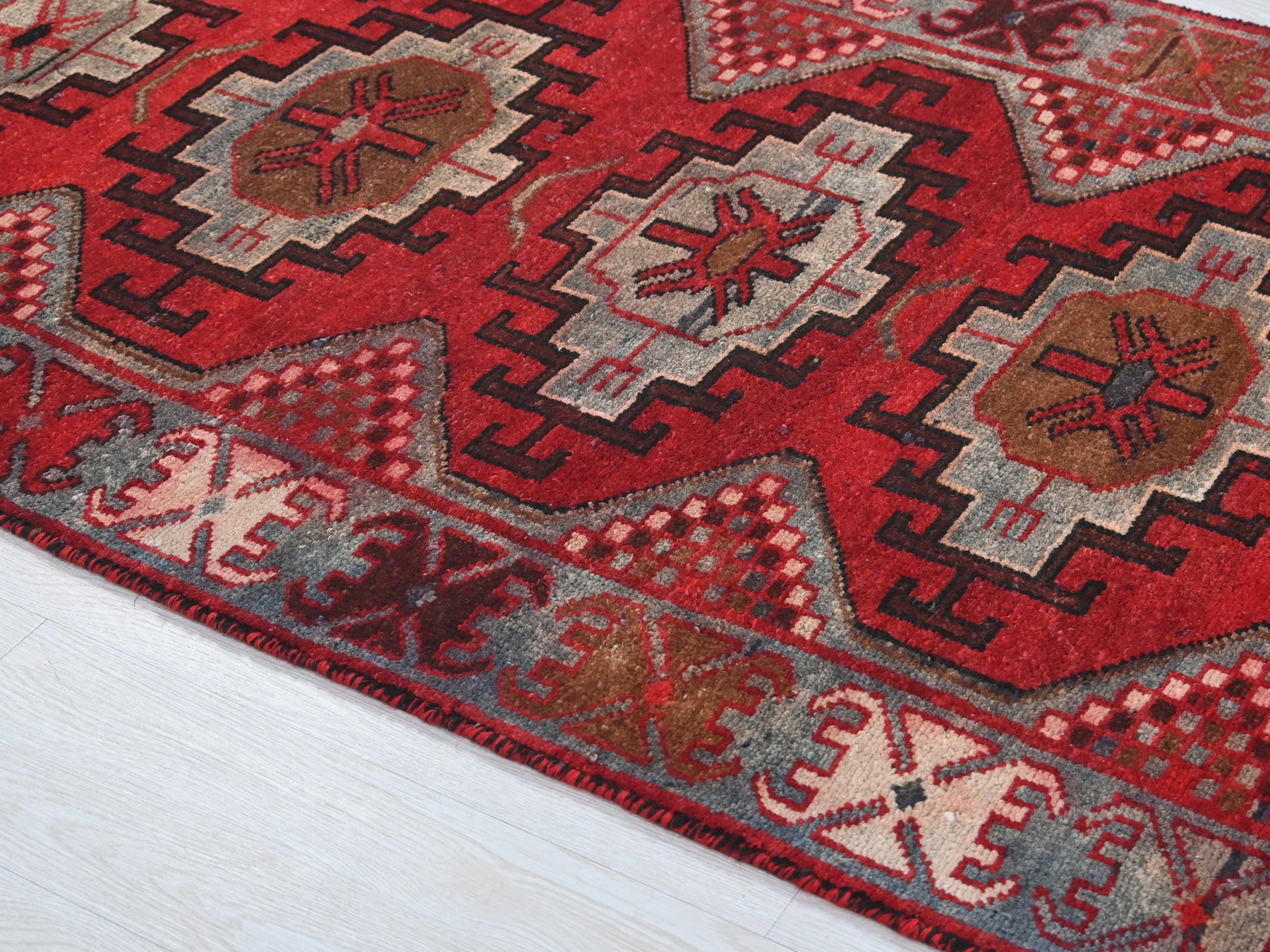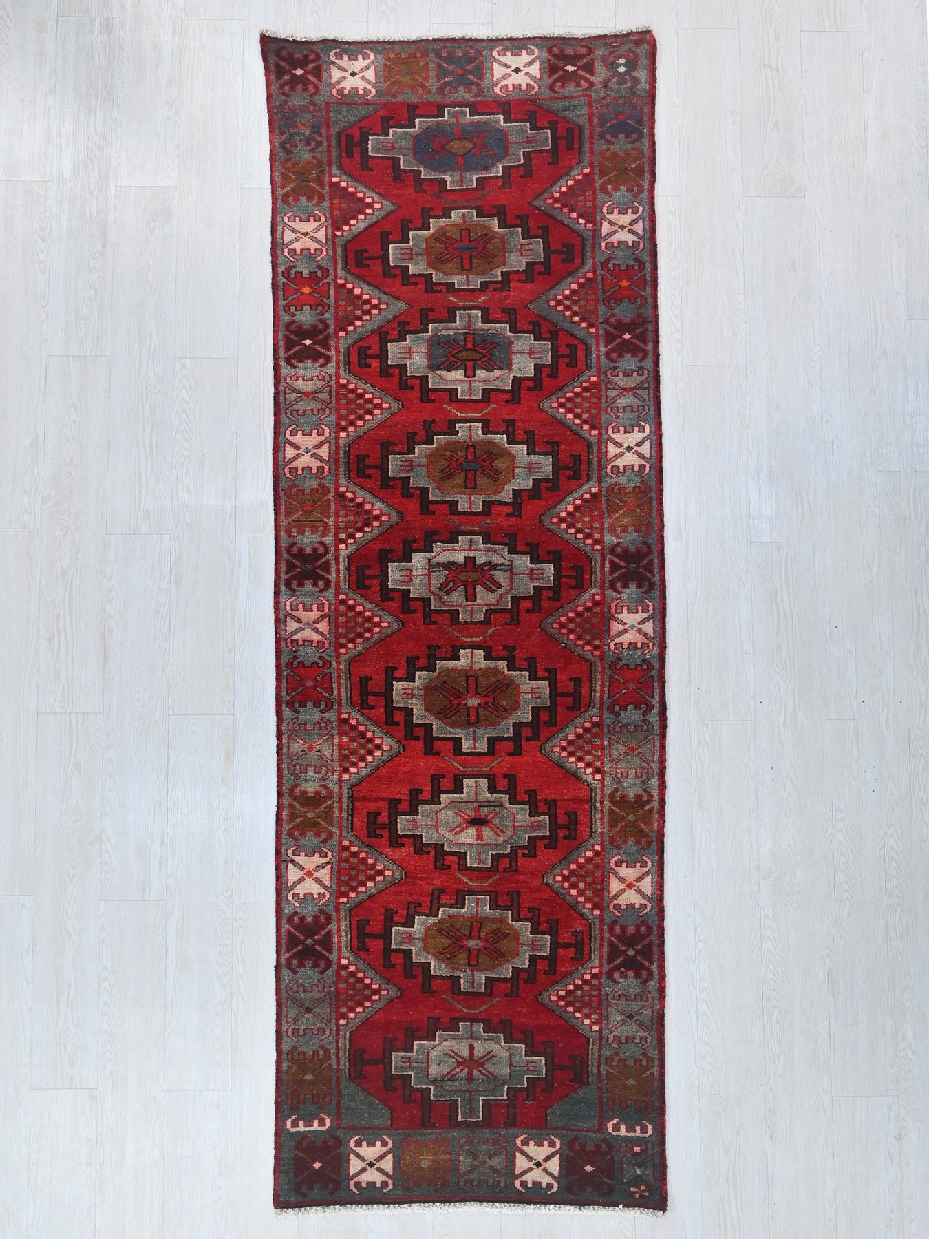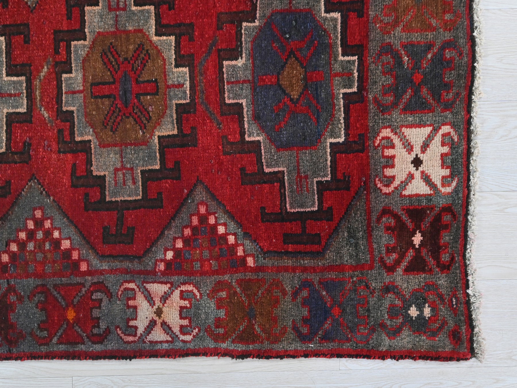 This is a hand-knotted, one-of-a-kind vintage rug. Due to the nature of this piece, there may be slight imperfections in its wear, shape, dimensions, and color. All of our rugs are professionally cleaned and repaired.