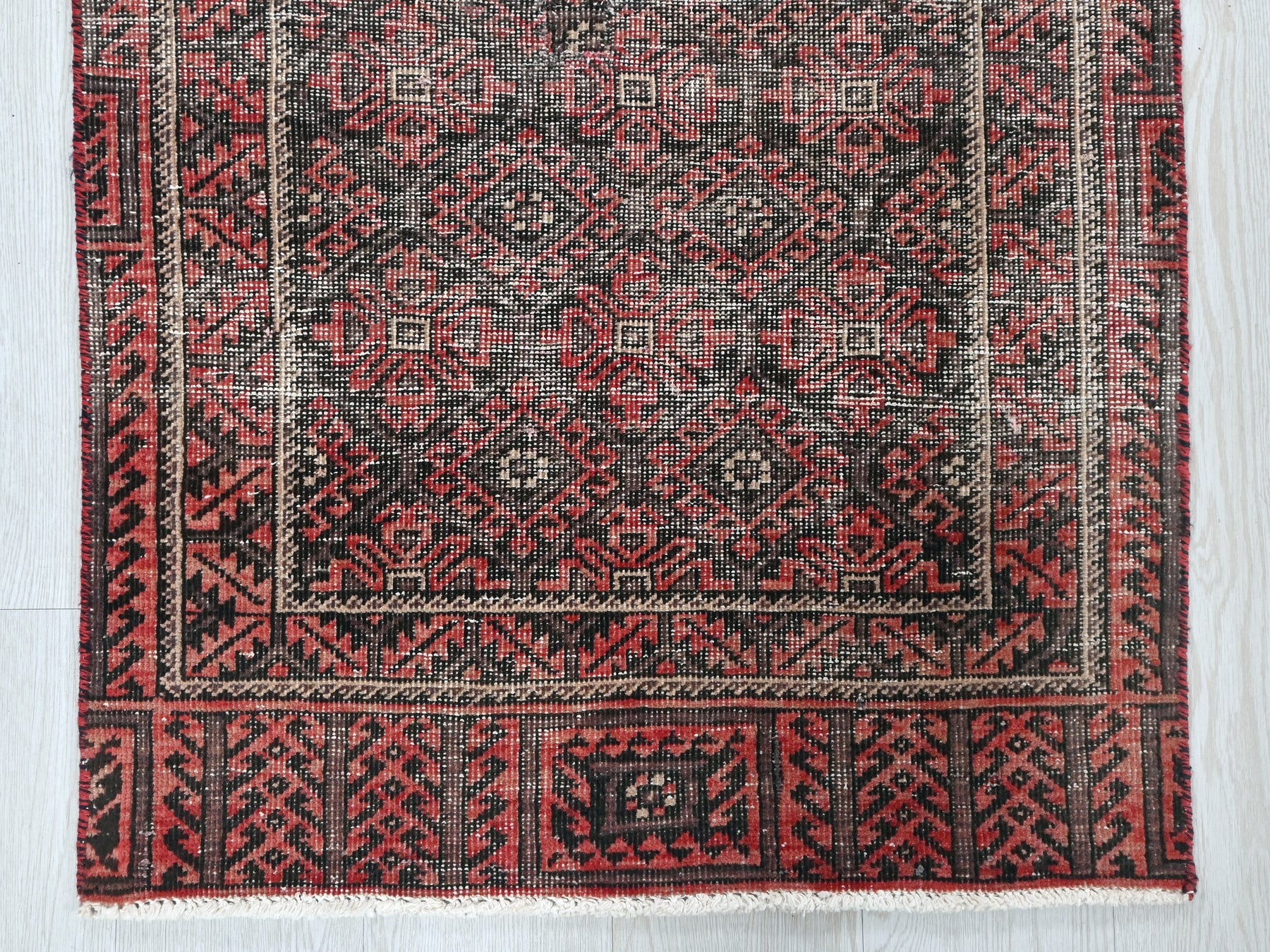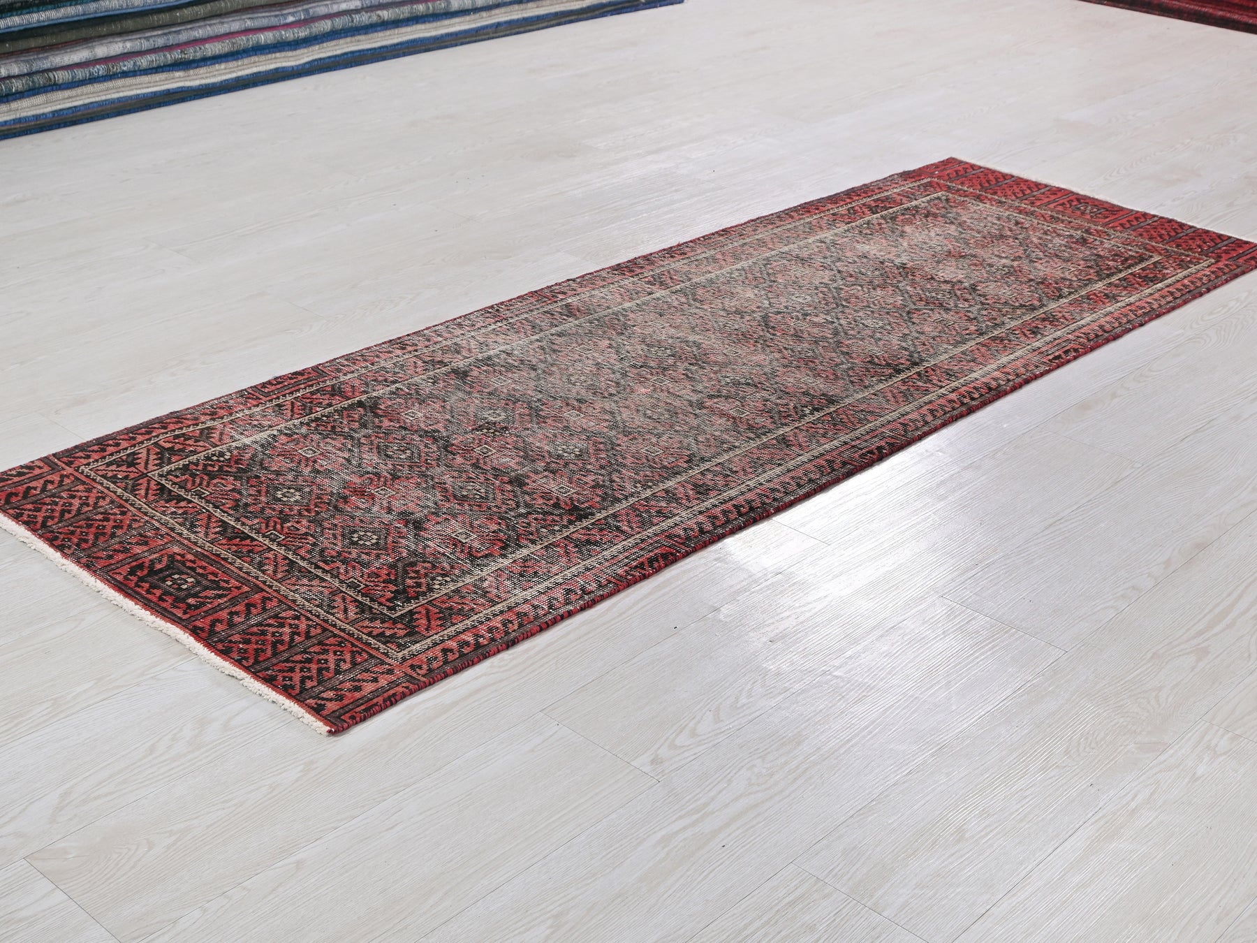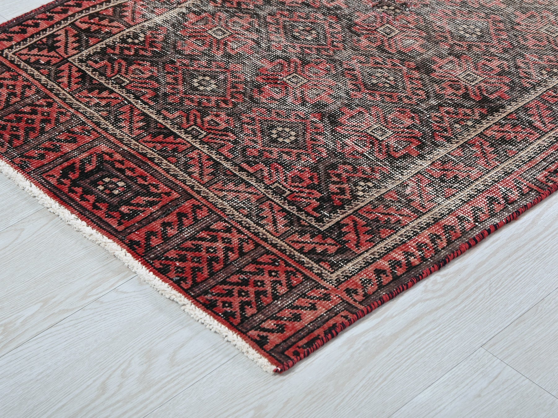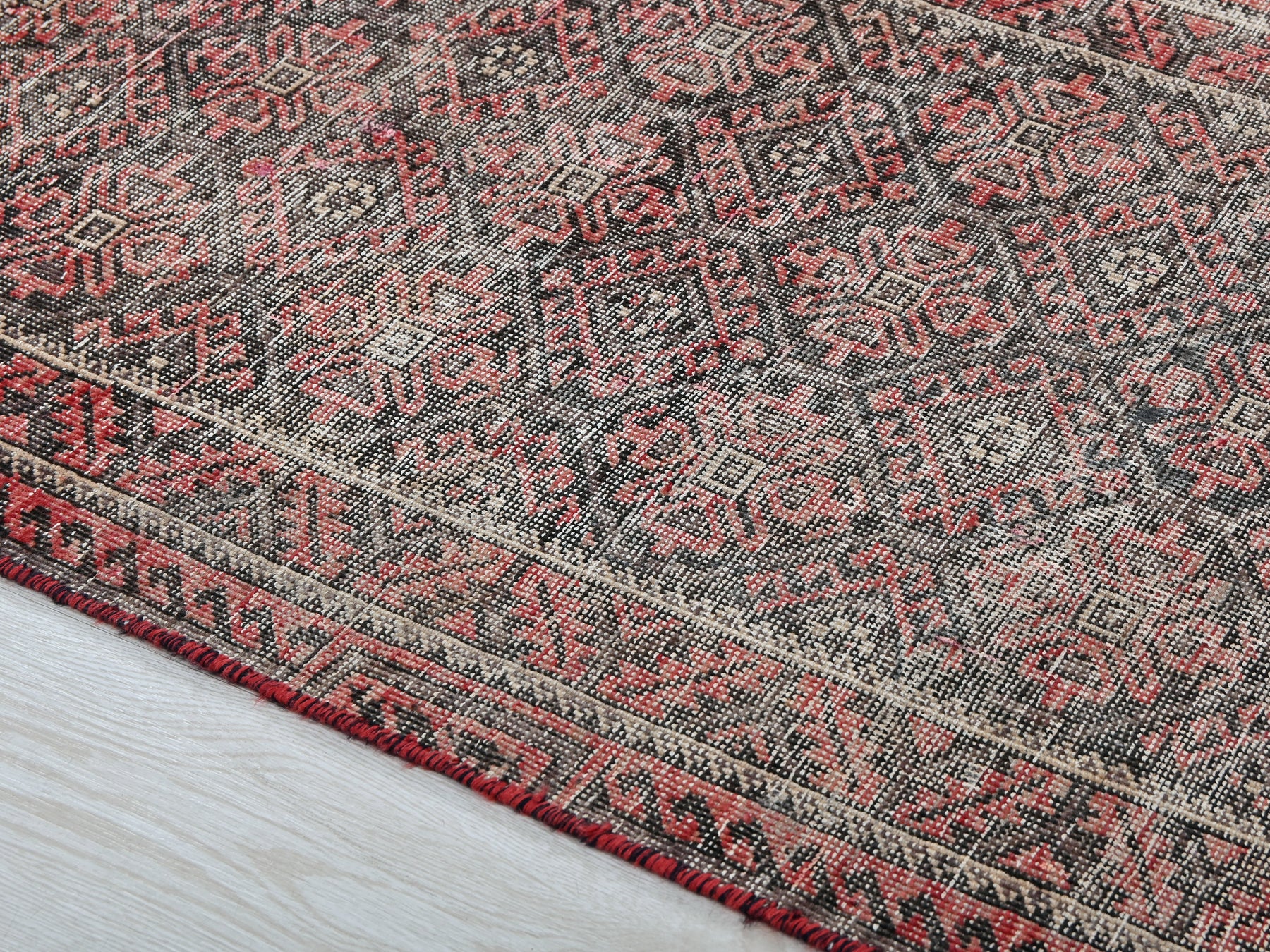 This is a hand-knotted, one-of-a-kind vintage rug. Due to the nature of this piece, there may be slight imperfections in its wear, shape, dimensions, and color. All of our rugs are professionally cleaned and repaired.