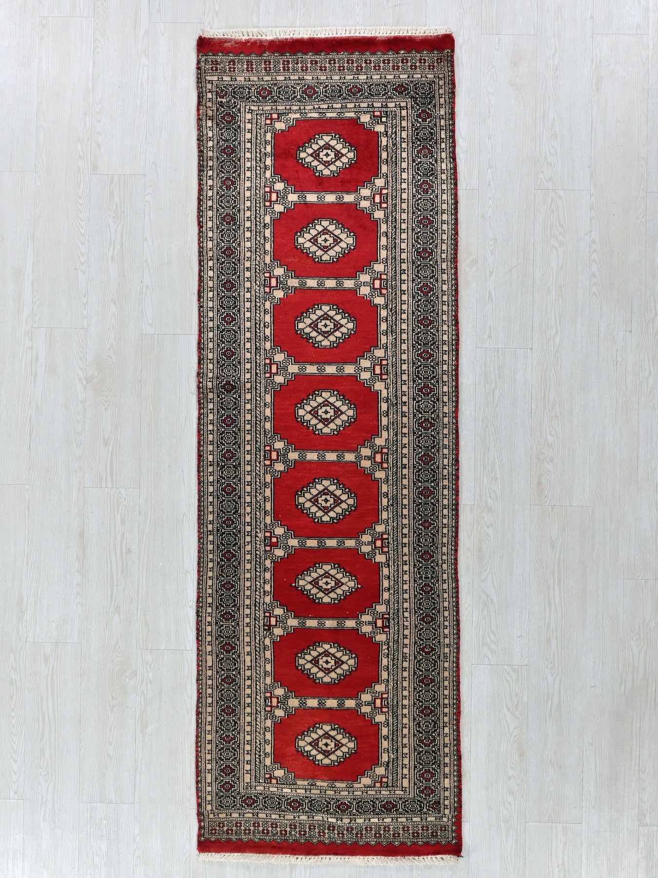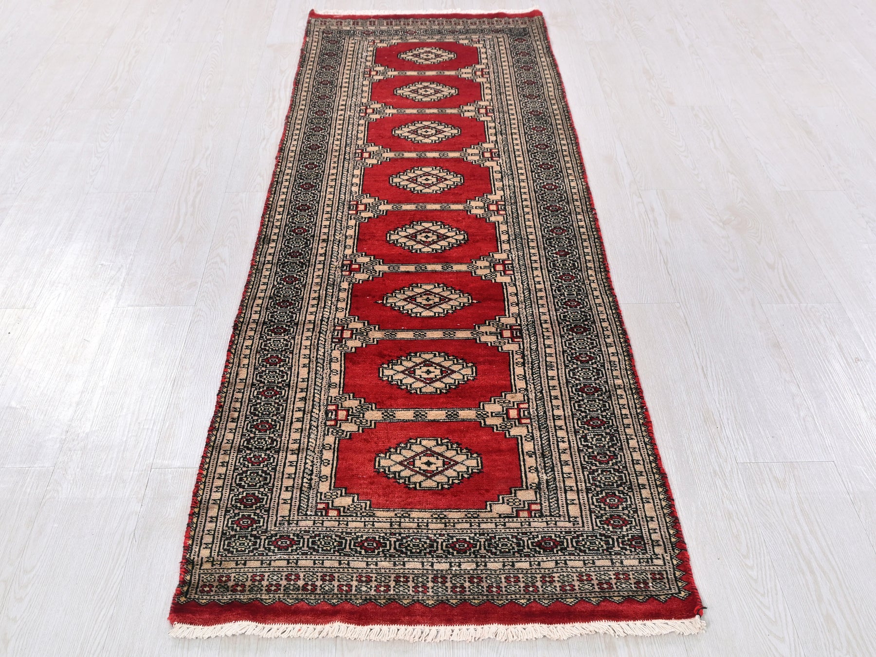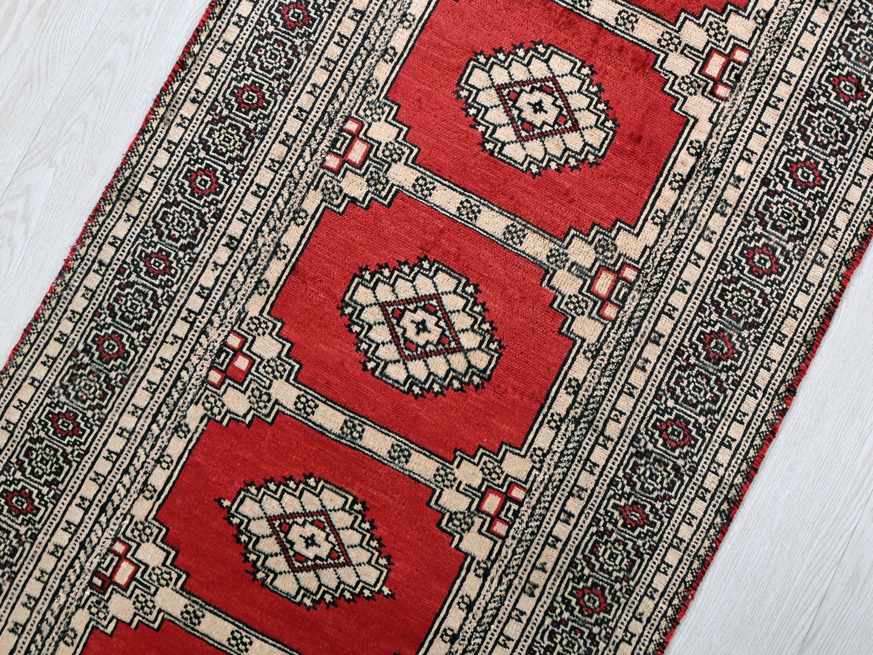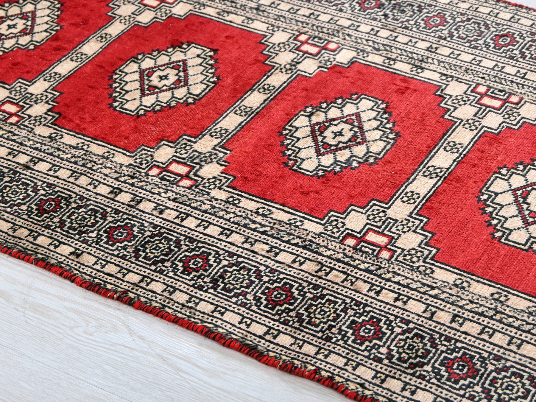 This is a hand-knotted, one-of-a-kind vintage rug. Due to the nature of this piece, there may be slight imperfections in its wear, shape, dimensions, and color. All of our rugs are professionally cleaned and repaired.