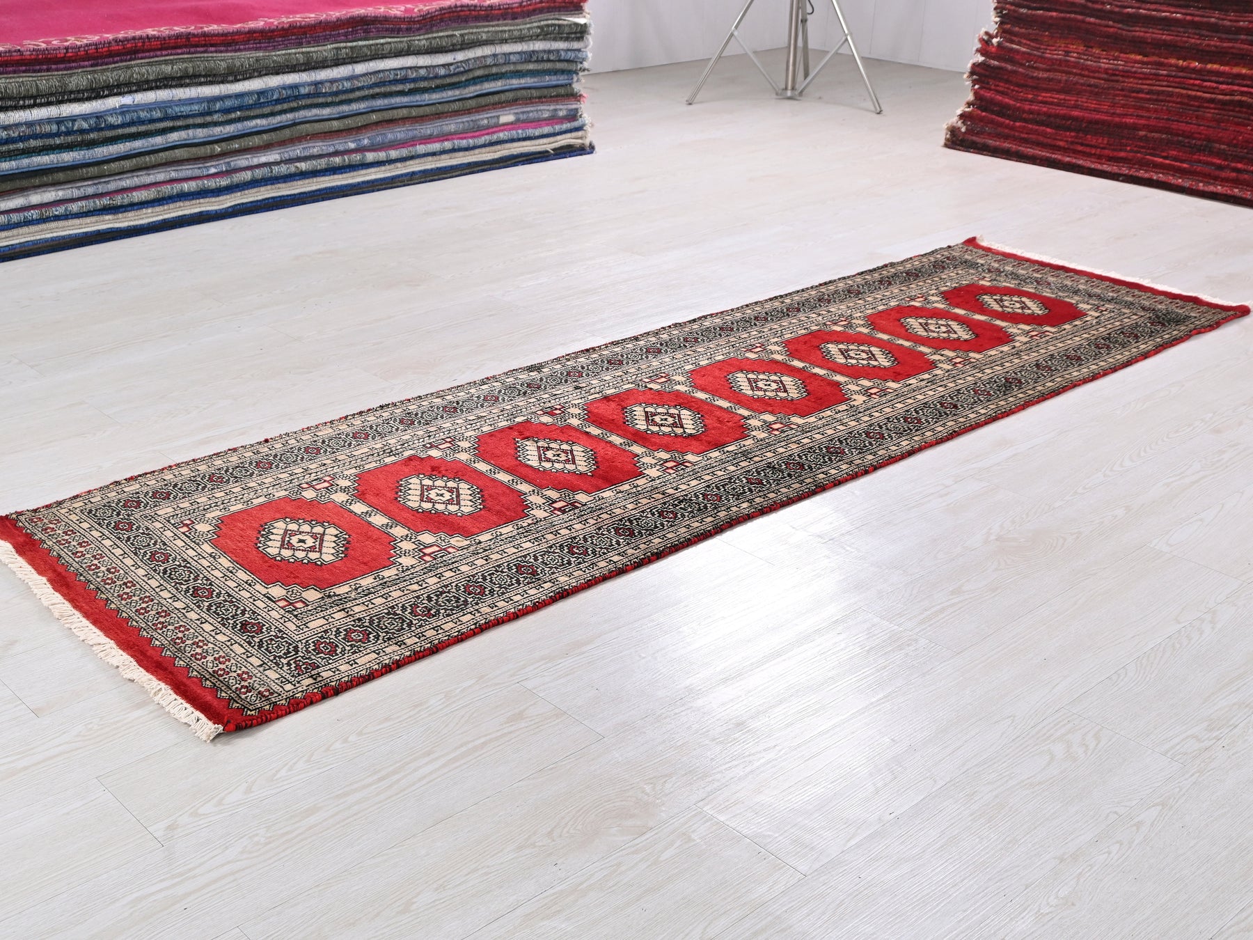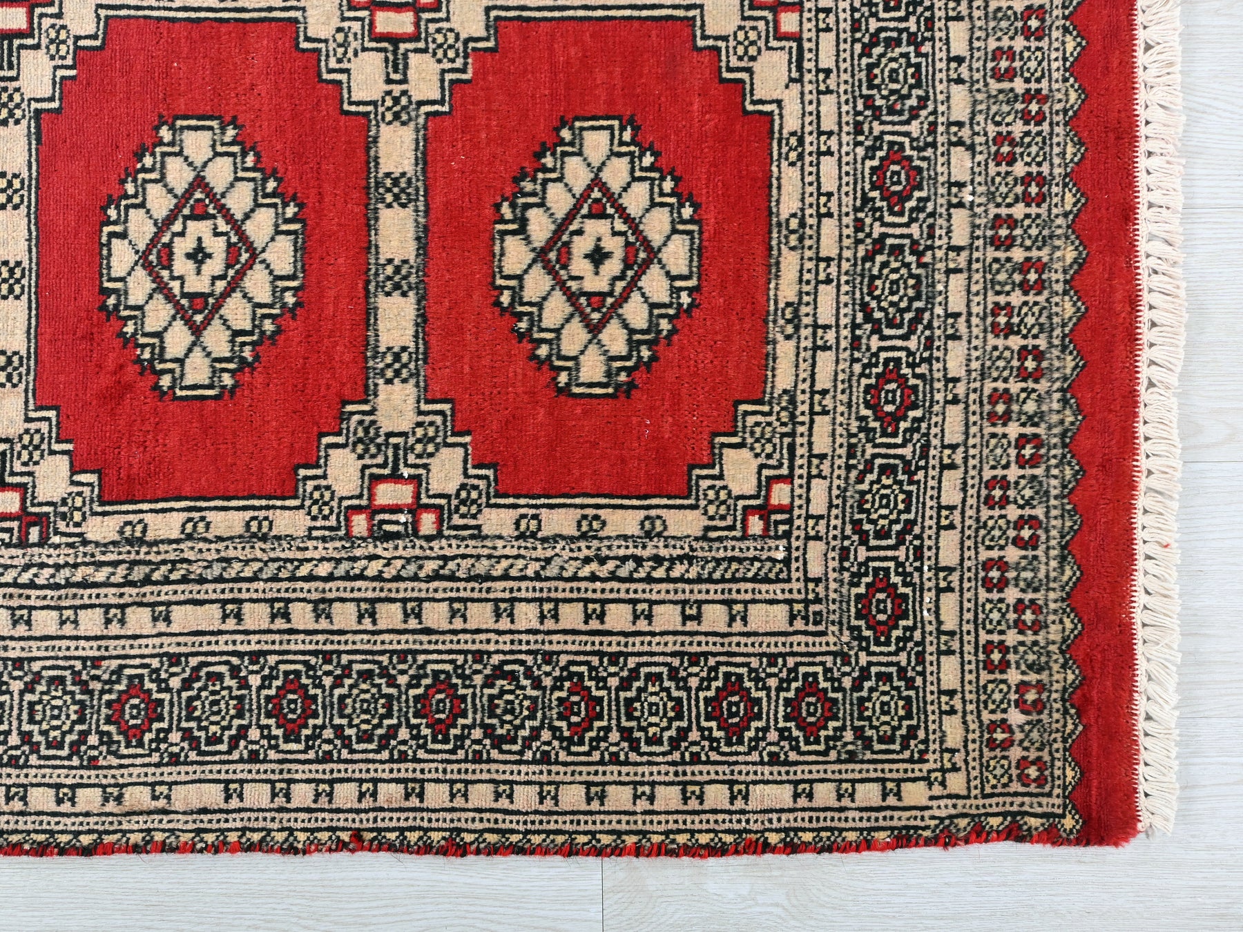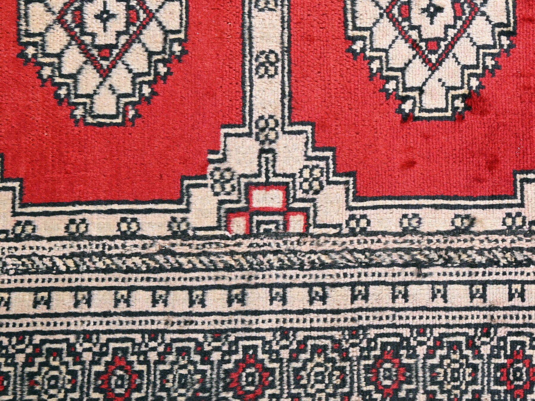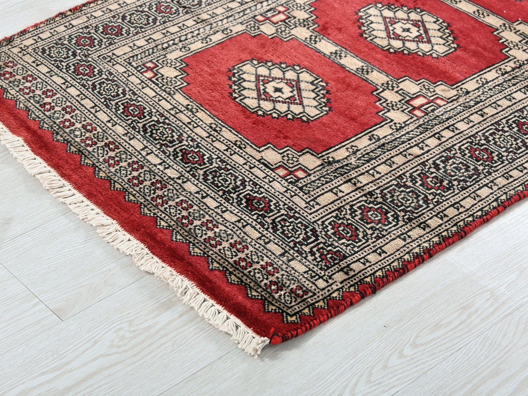 This is a hand-knotted, one-of-a-kind vintage rug. Due to the nature of this piece, there may be slight imperfections in its wear, shape, dimensions, and color. All of our rugs are professionally cleaned and repaired.