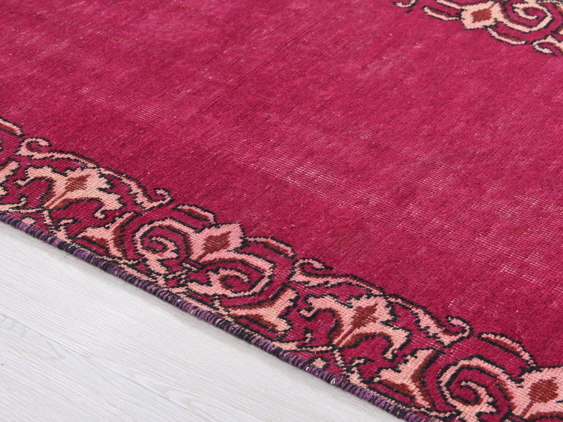 This is a hand-knotted, one-of-a-kind vintage rug. Due to the nature of this piece, there may be slight imperfections in its wear, shape, dimensions, and color. All of our rugs are professionally cleaned and repaired.