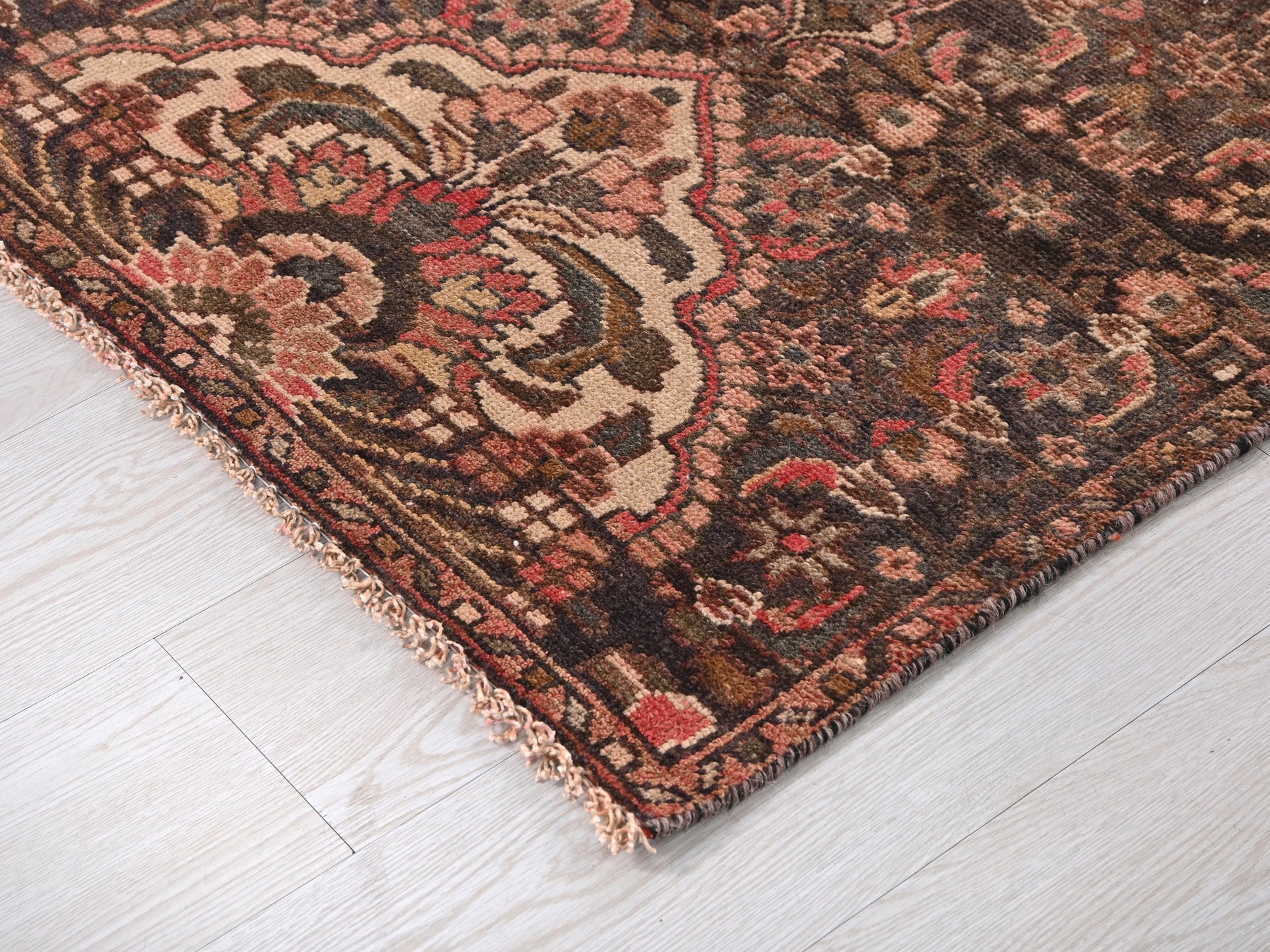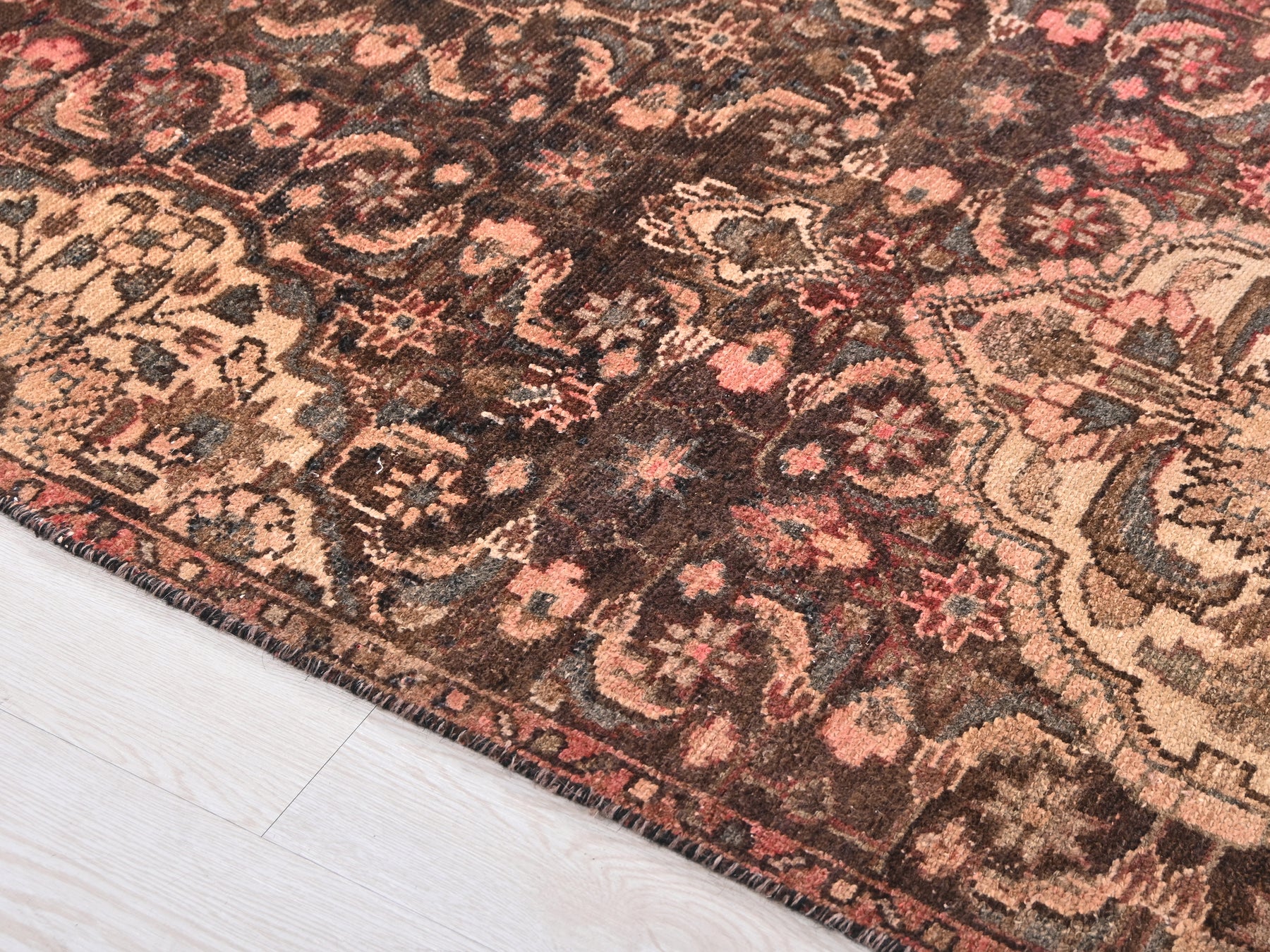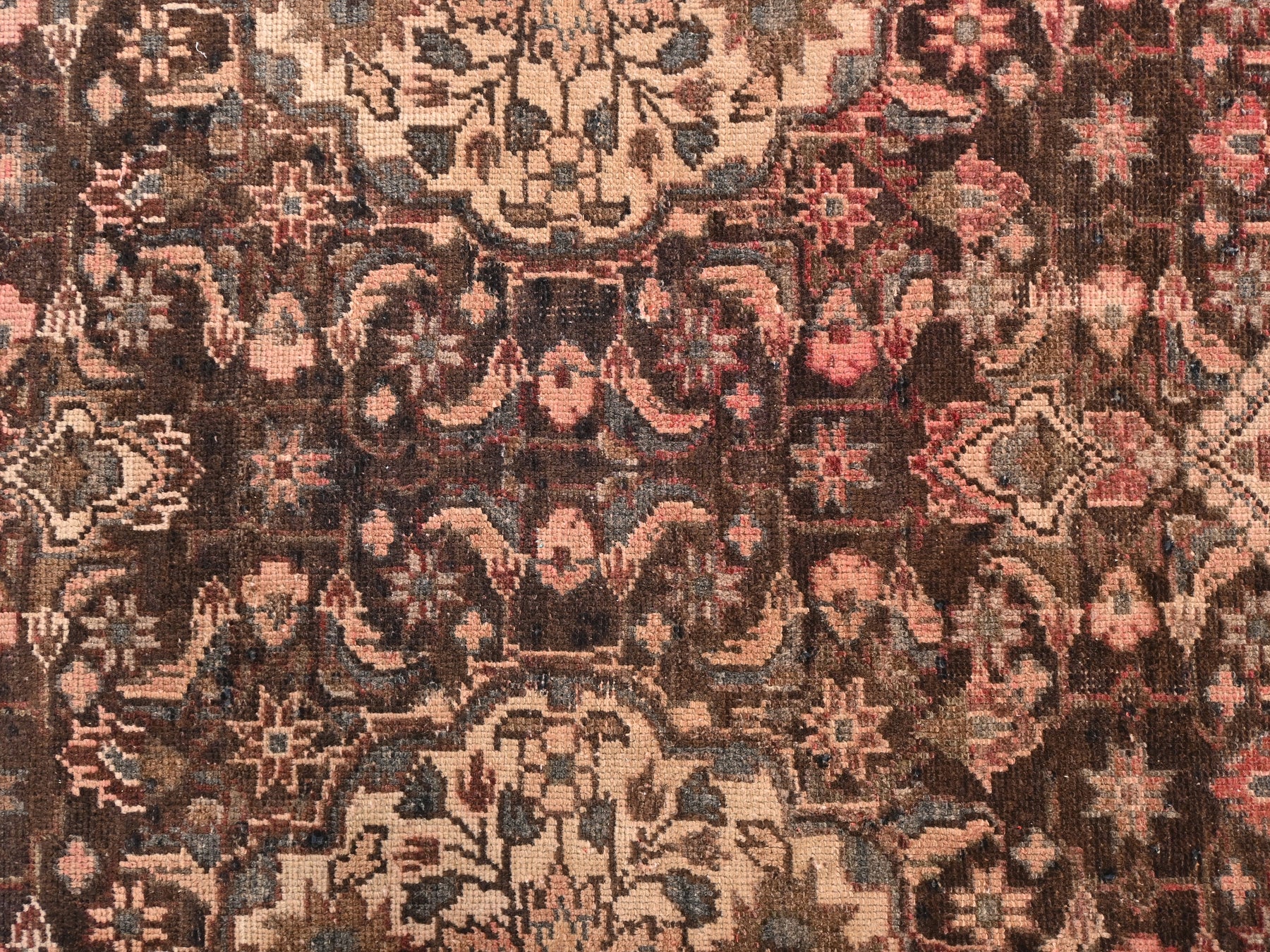 This is a hand-knotted, one-of-a-kind vintage rug. Due to the nature of this piece, there may be slight imperfections in its wear, shape, dimensions, and color. All of our rugs are professionally cleaned and repaired.