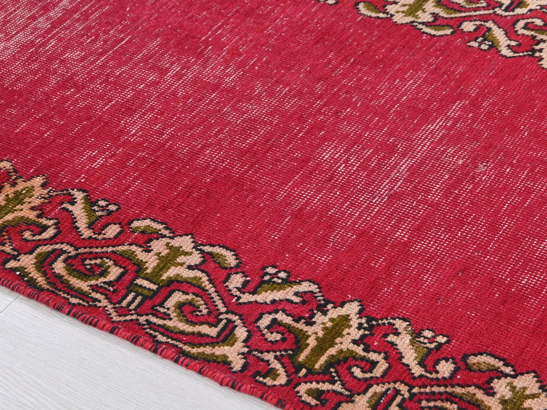 This is a hand-knotted, one-of-a-kind vintage rug. Due to the nature of this piece, there may be slight imperfections in its wear, shape, dimensions, and color. All of our rugs are professionally cleaned and repaired.