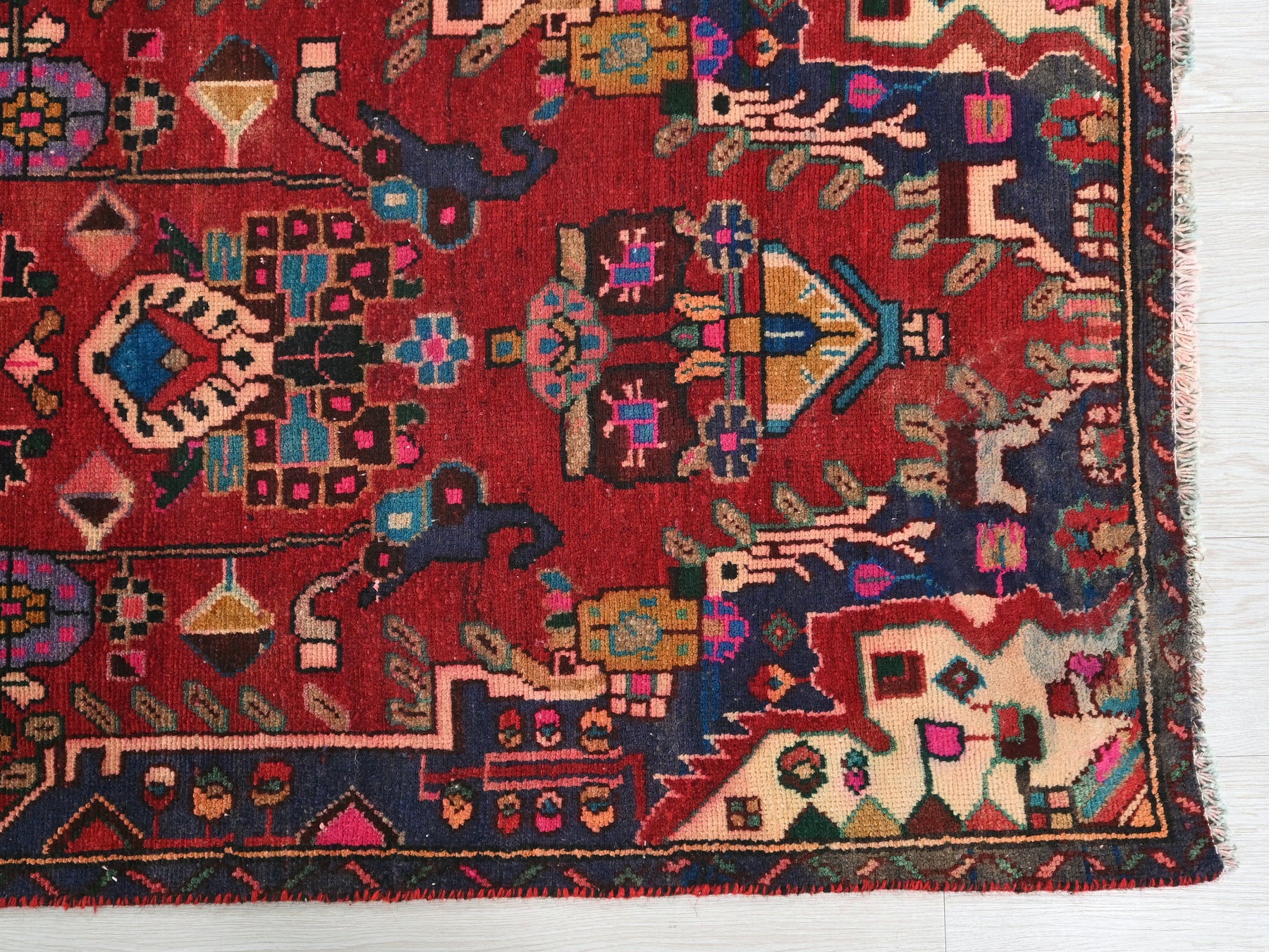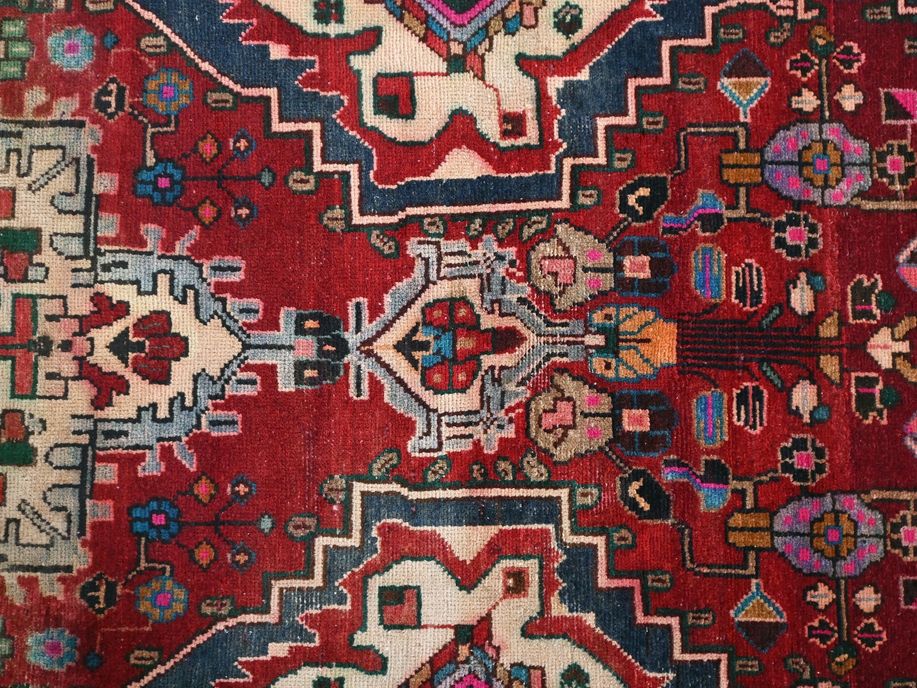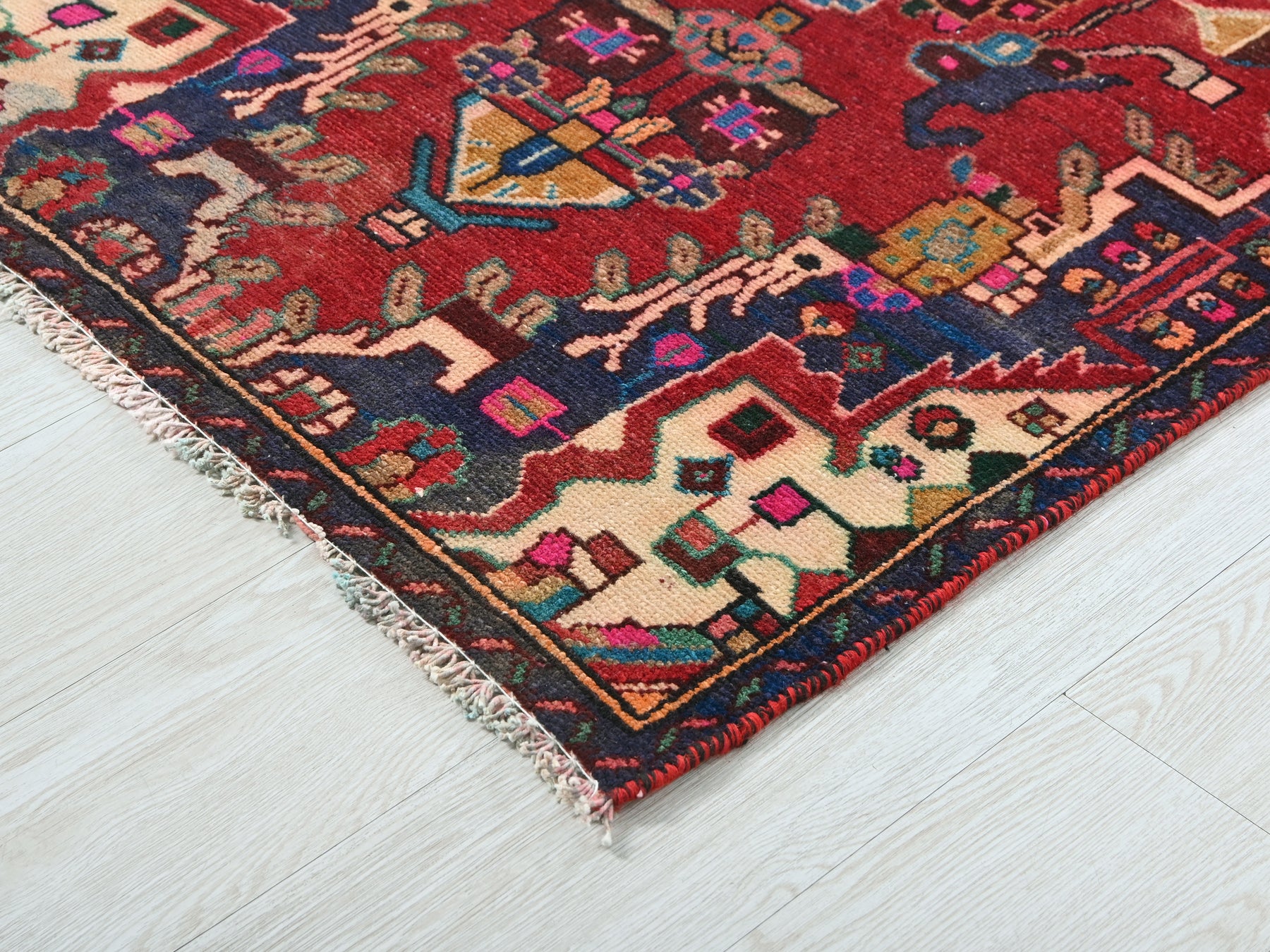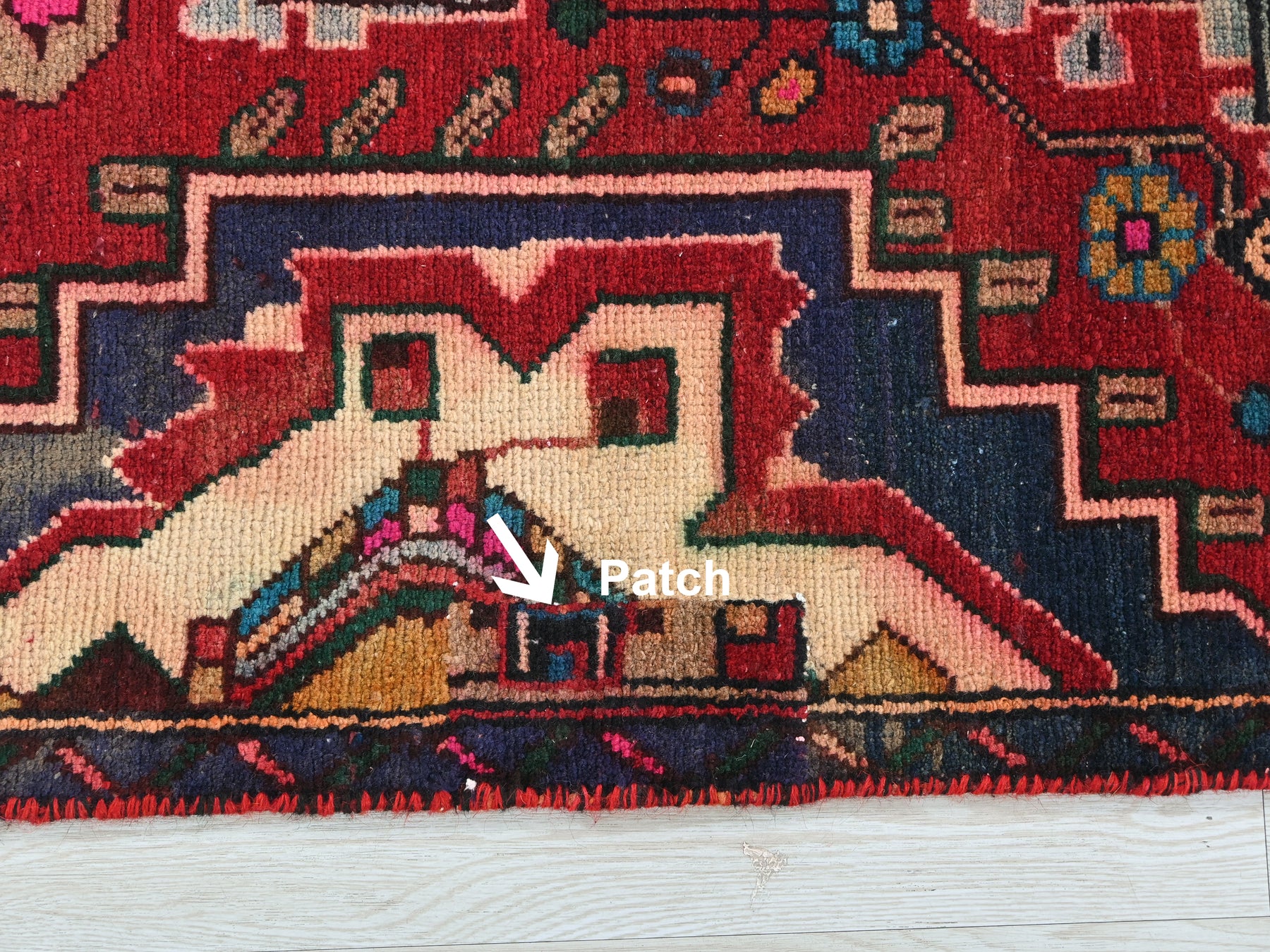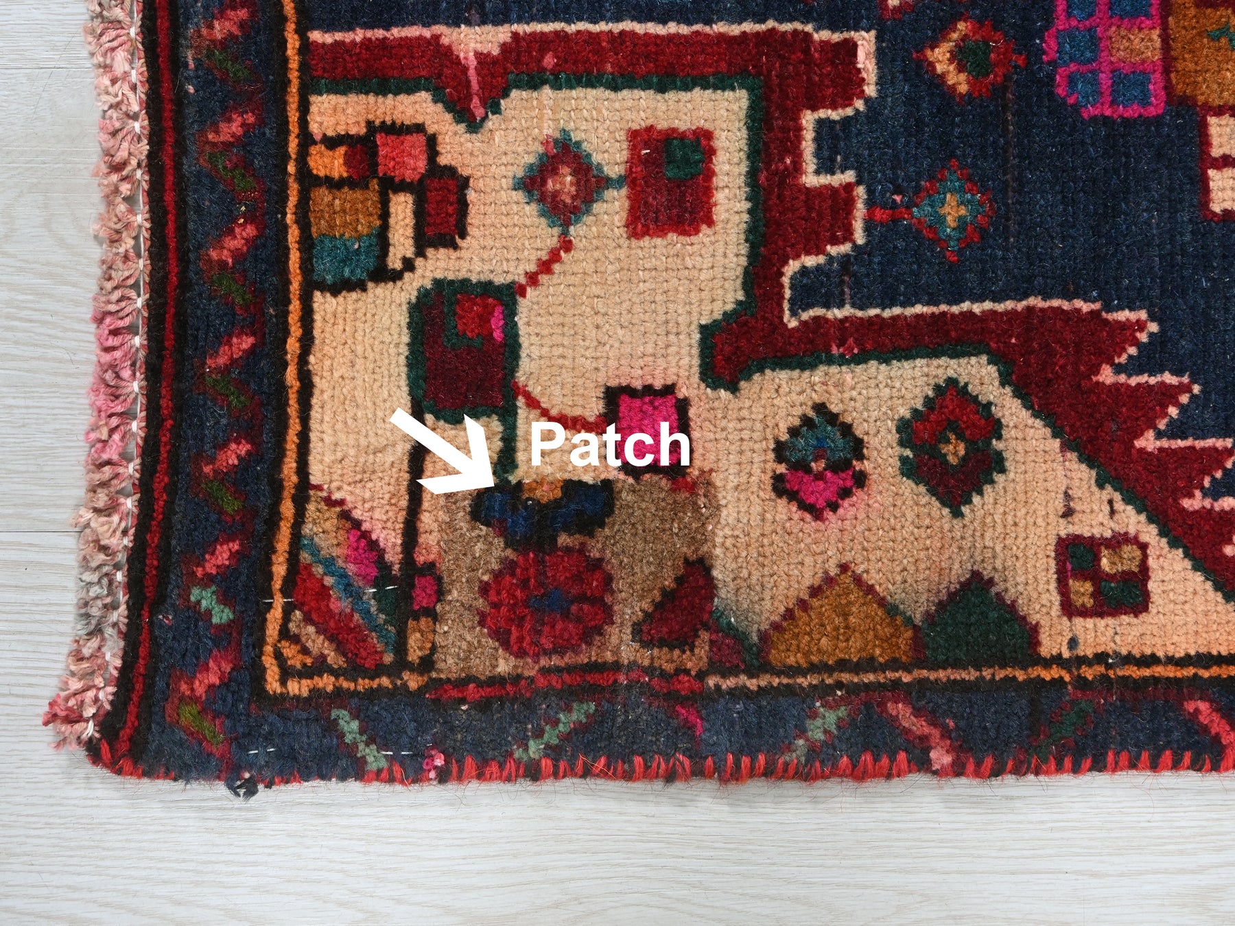 This is a hand-knotted, one-of-a-kind vintage rug. Due to the nature of this piece, there may be slight imperfections in its wear, shape, dimensions, and color. All of our rugs are professionally cleaned and repaired.
