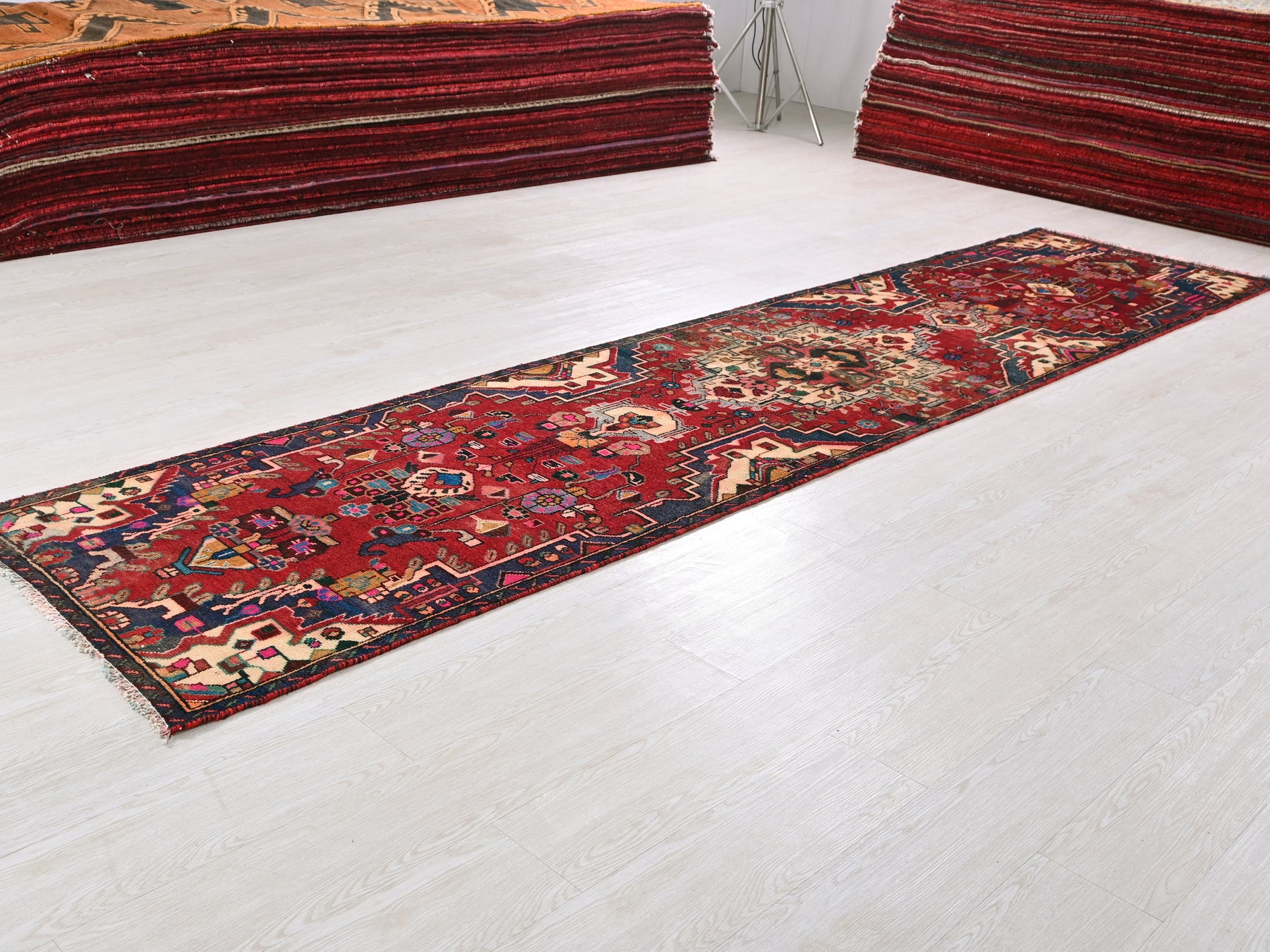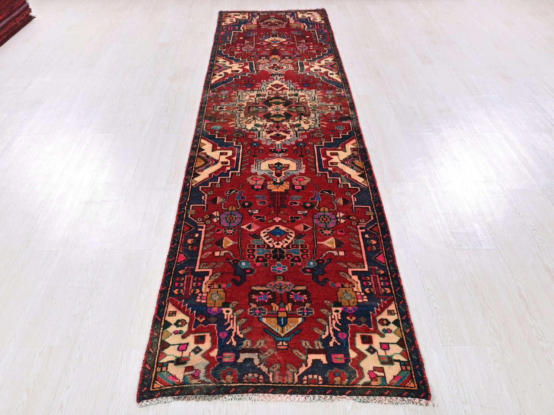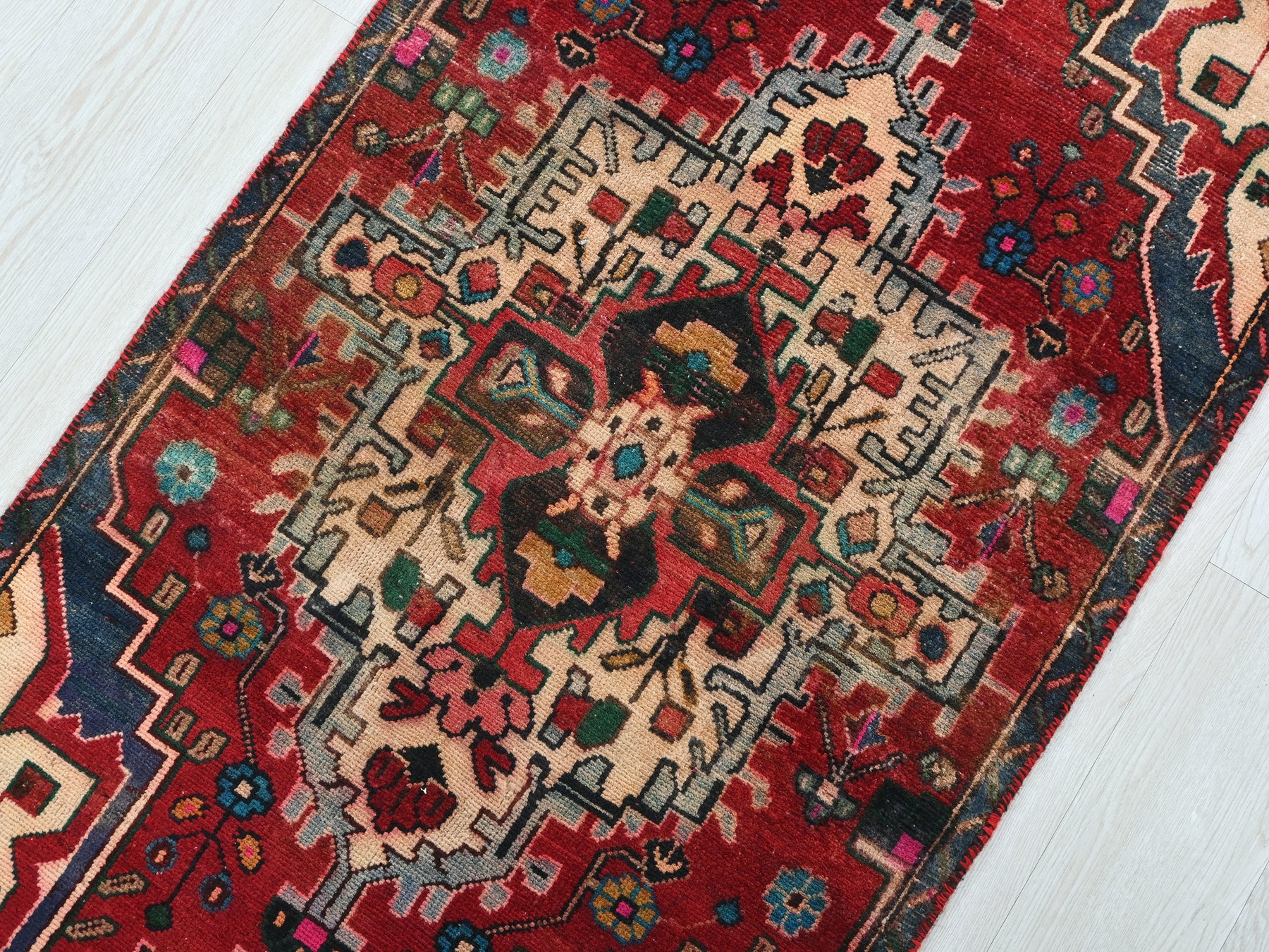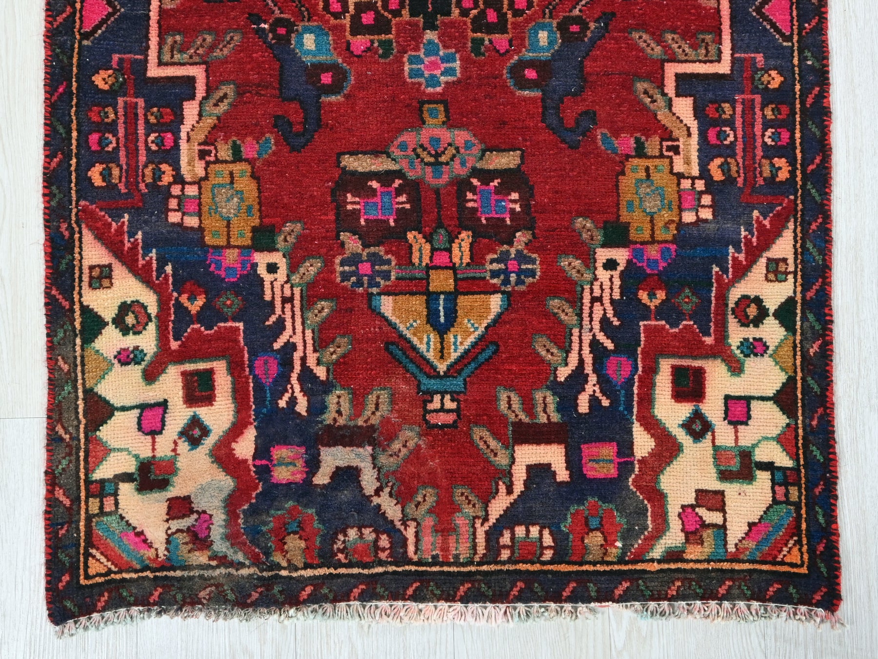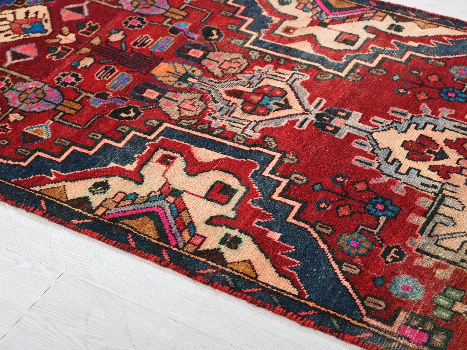 This is a hand-knotted, one-of-a-kind vintage rug. Due to the nature of this piece, there may be slight imperfections in its wear, shape, dimensions, and color. All of our rugs are professionally cleaned and repaired.