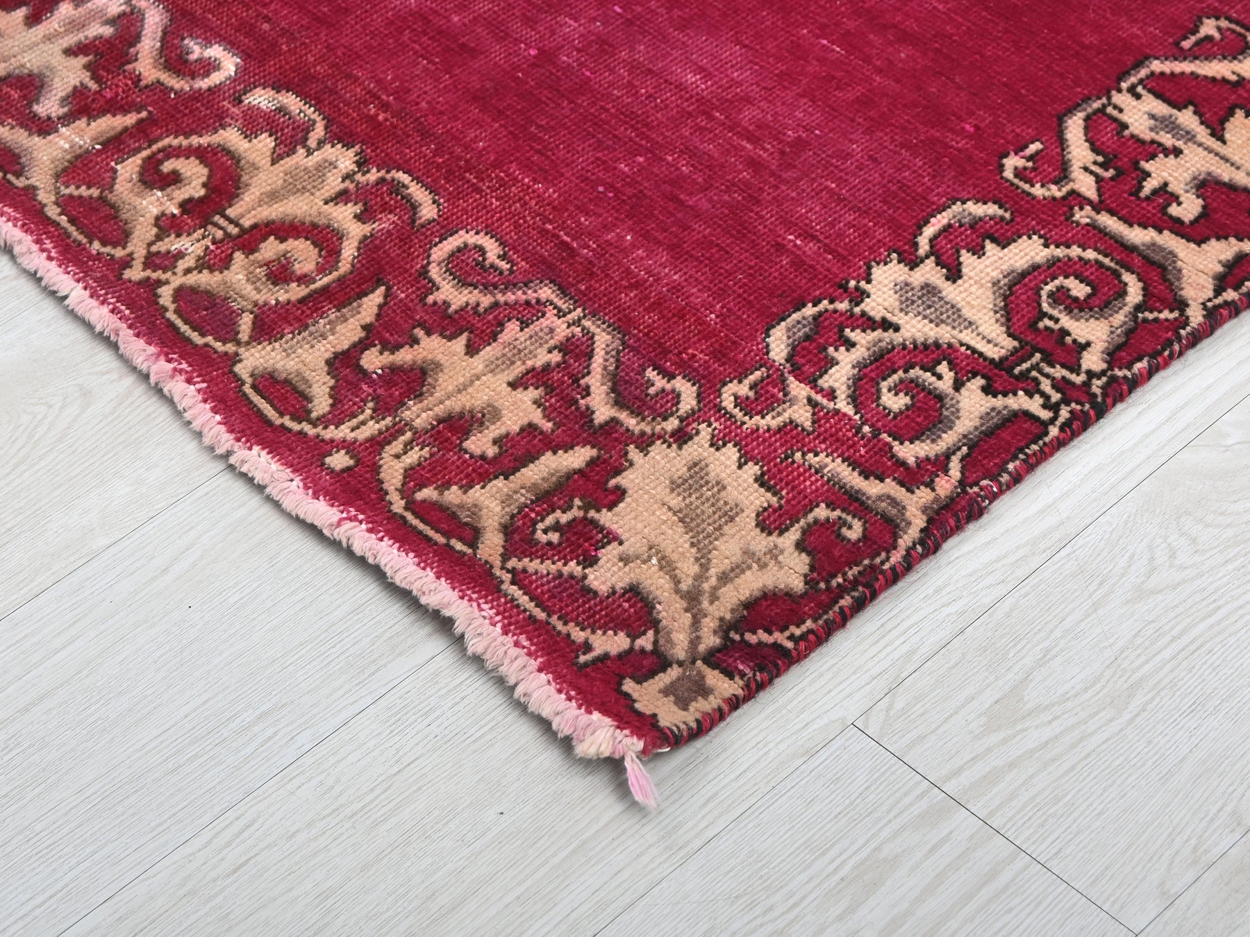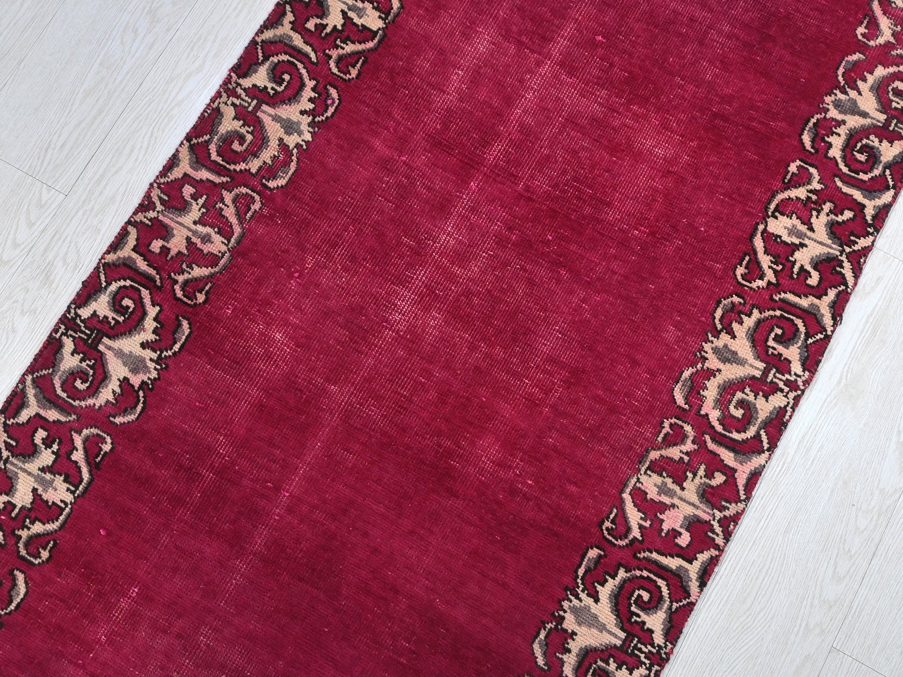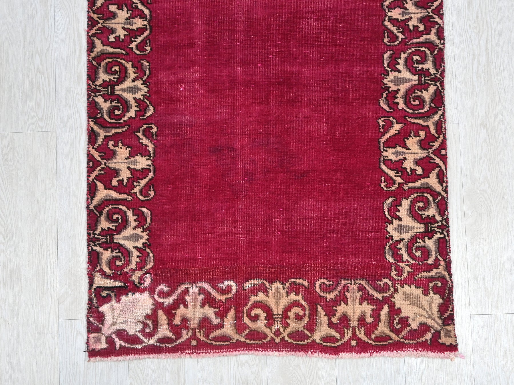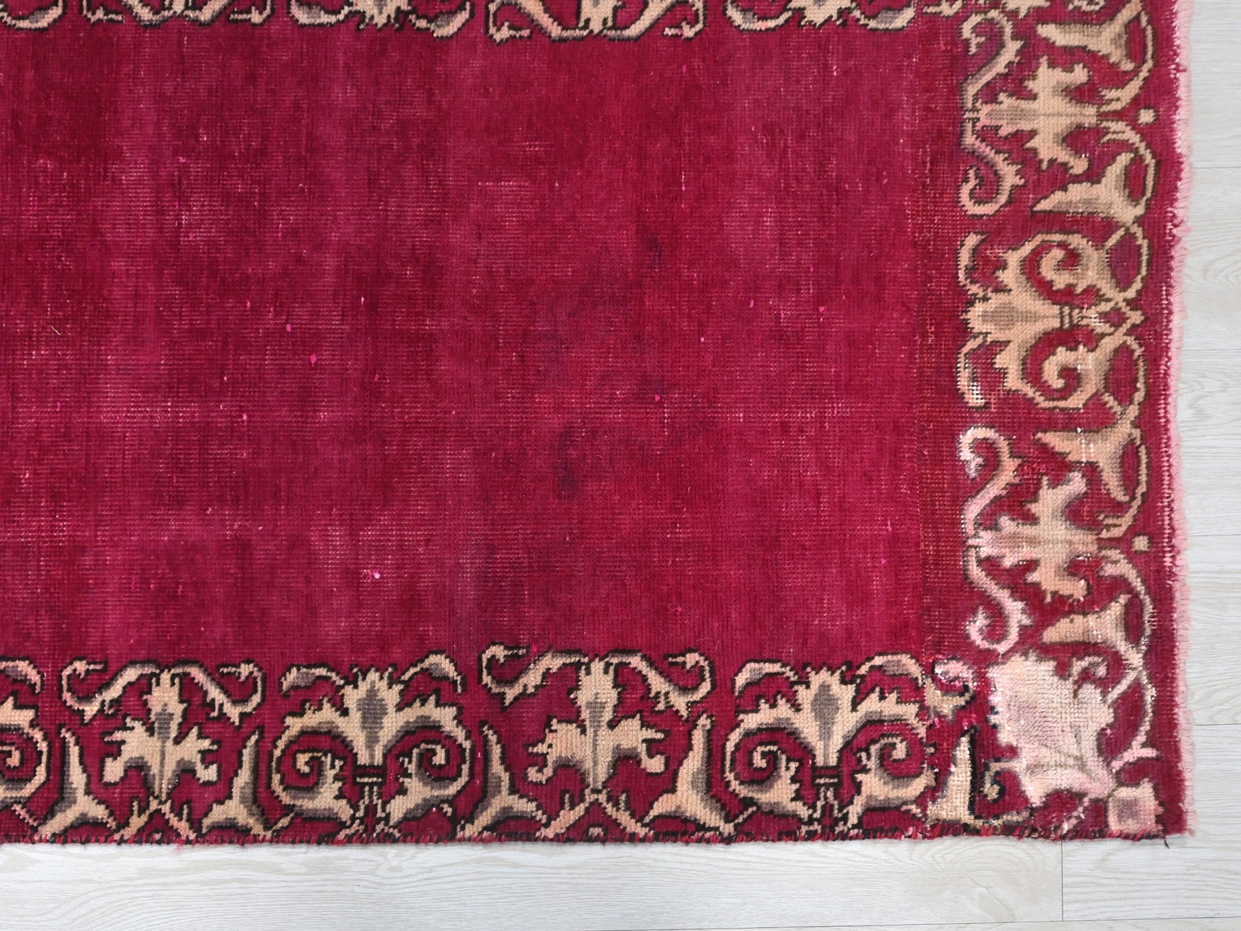 This is a hand-knotted, one-of-a-kind vintage rug. Due to the nature of this piece, there may be slight imperfections in its wear, shape, dimensions, and color. All of our rugs are professionally cleaned and repaired.