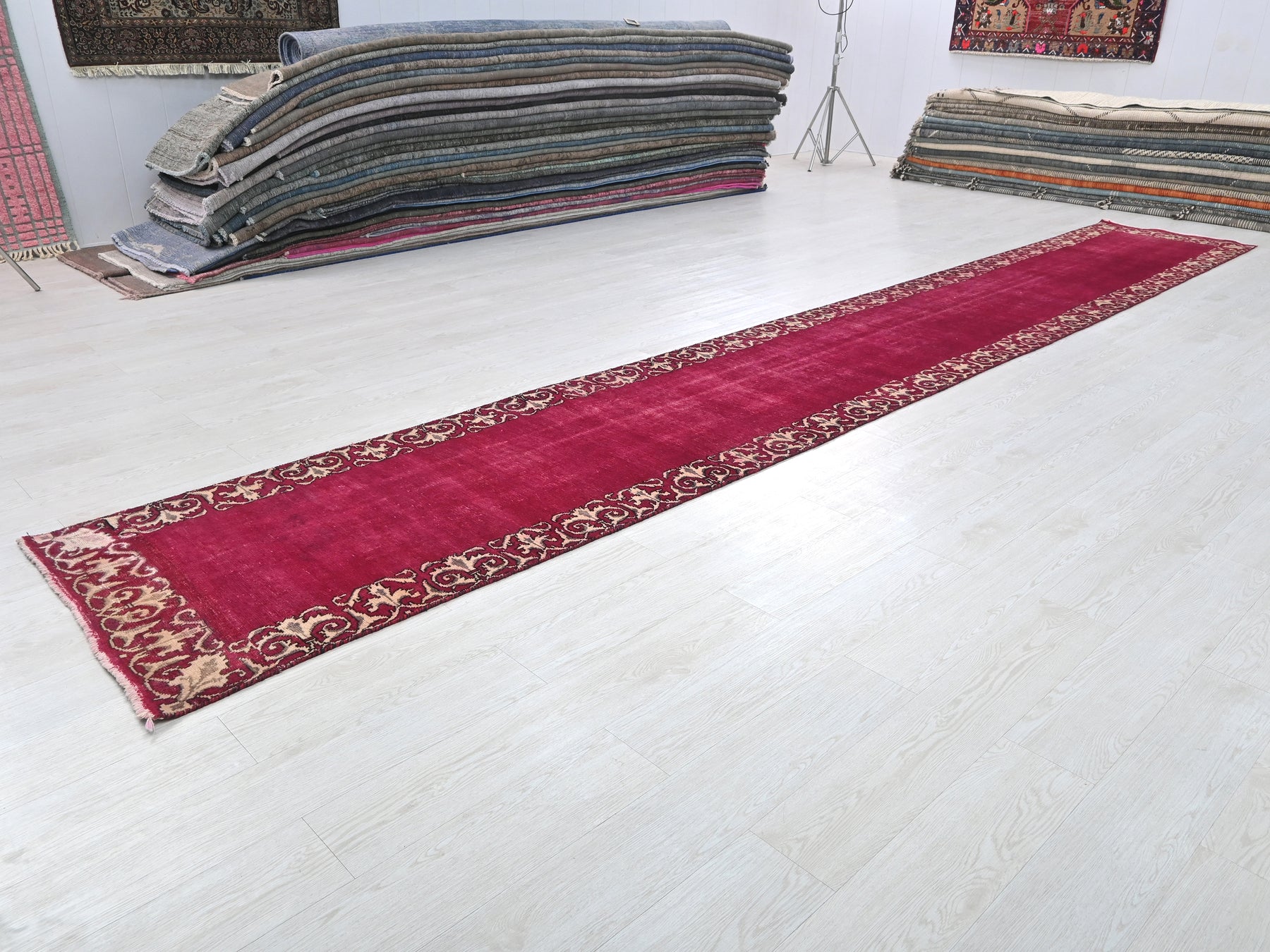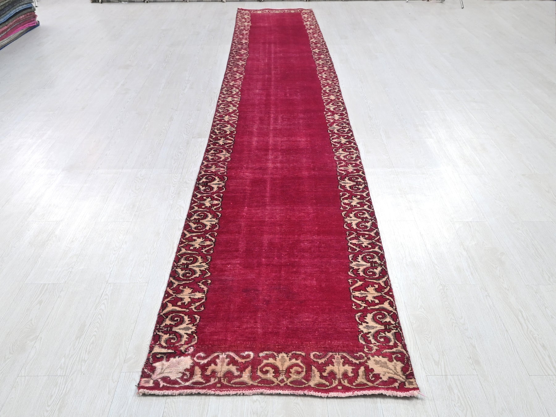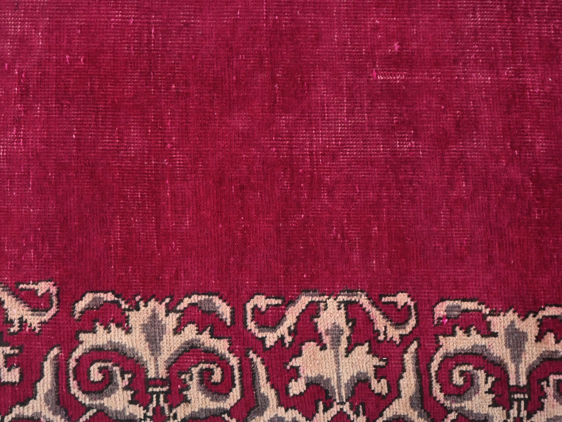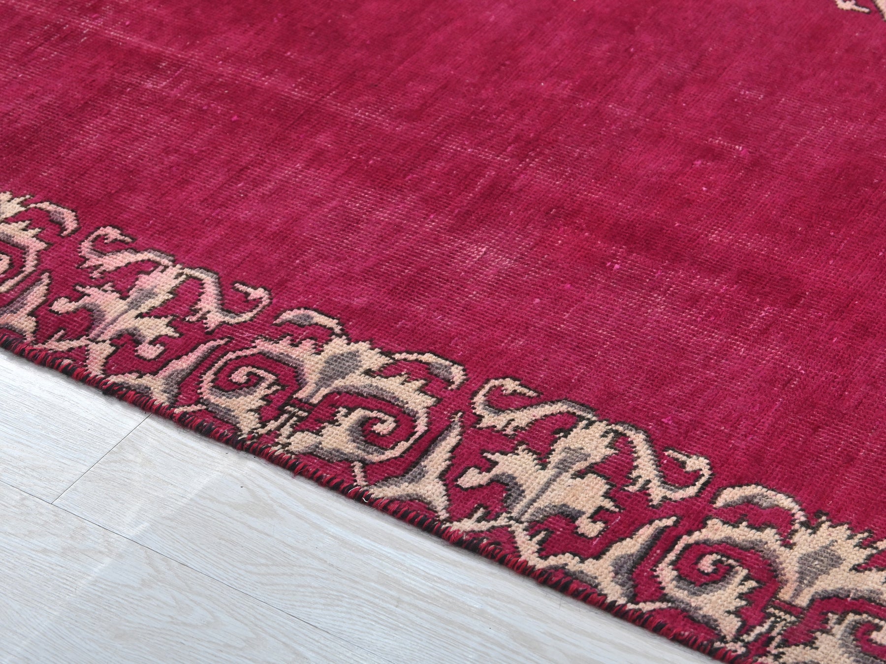 This is a hand-knotted, one-of-a-kind vintage rug. Due to the nature of this piece, there may be slight imperfections in its wear, shape, dimensions, and color. All of our rugs are professionally cleaned and repaired.